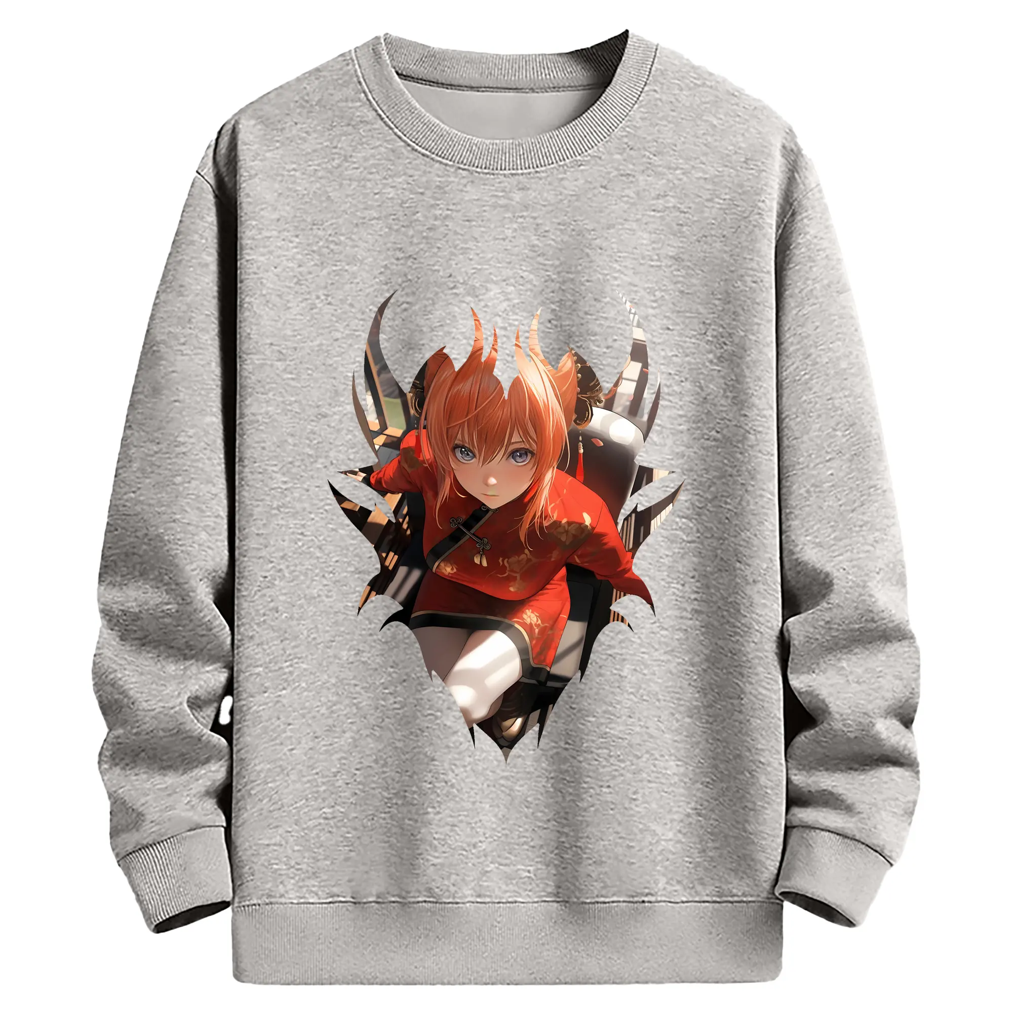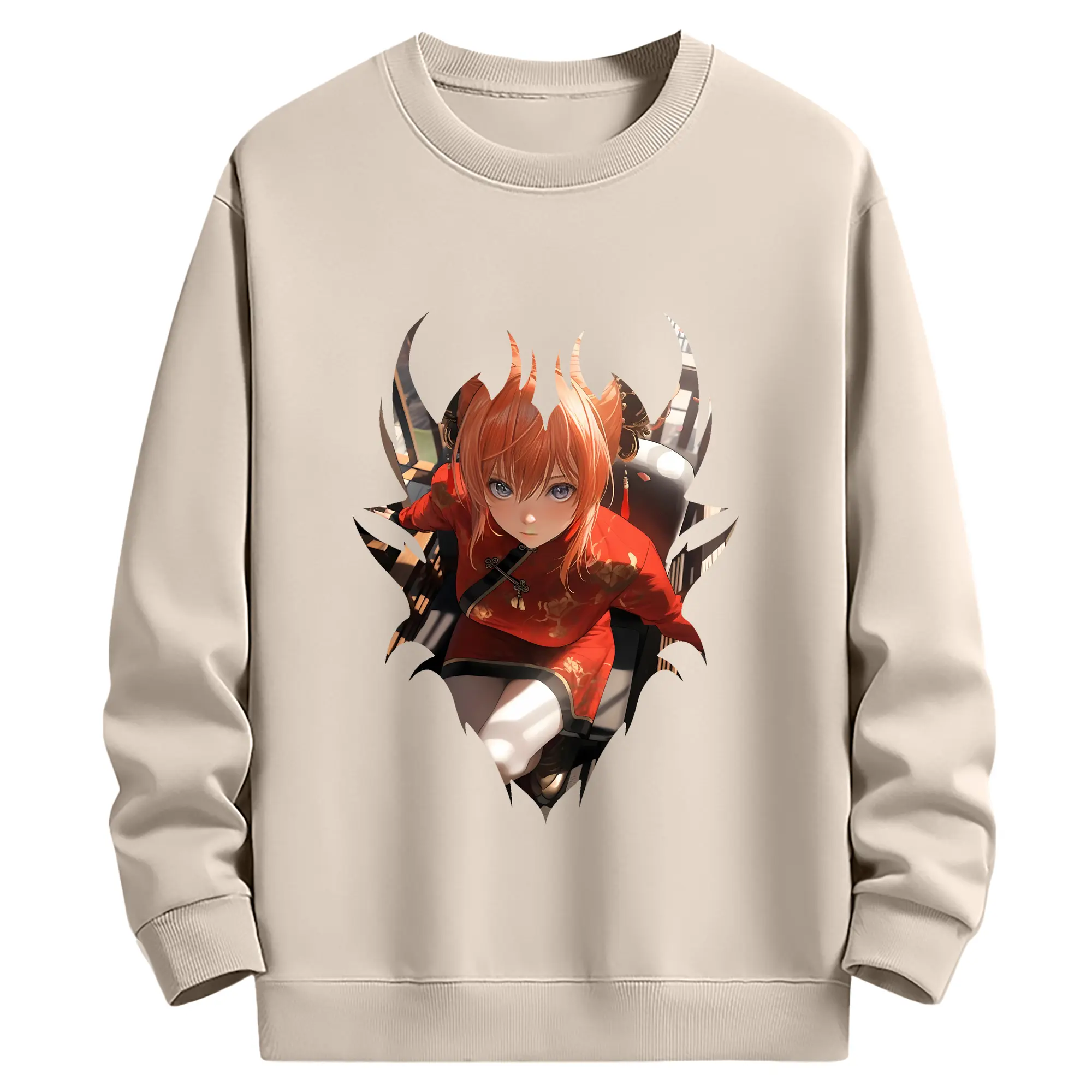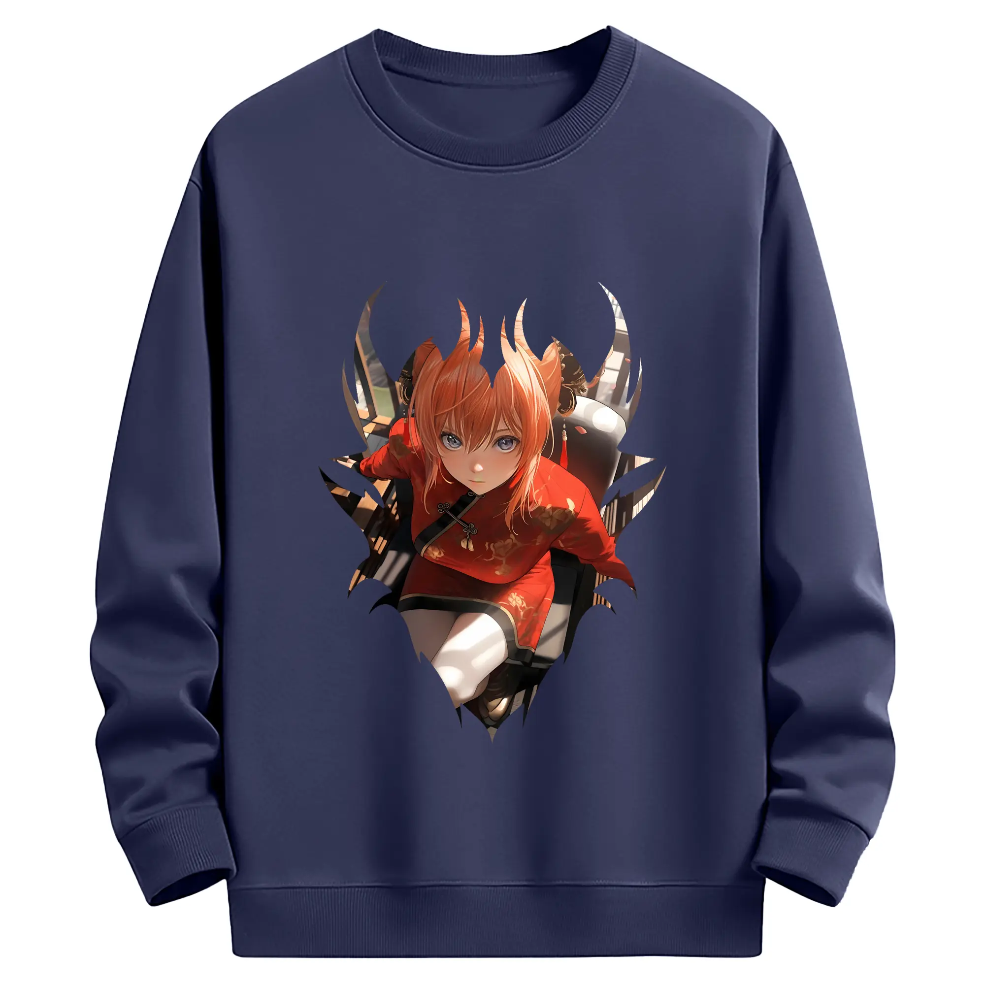 銀魂 グッズ 神楽 - 薄手 クルーネック スウェット 裏毛260g · ポリエステル 春秋向け カジュアル 男女兼用 · トレーナー デイリー スポーツ 散歩に最適