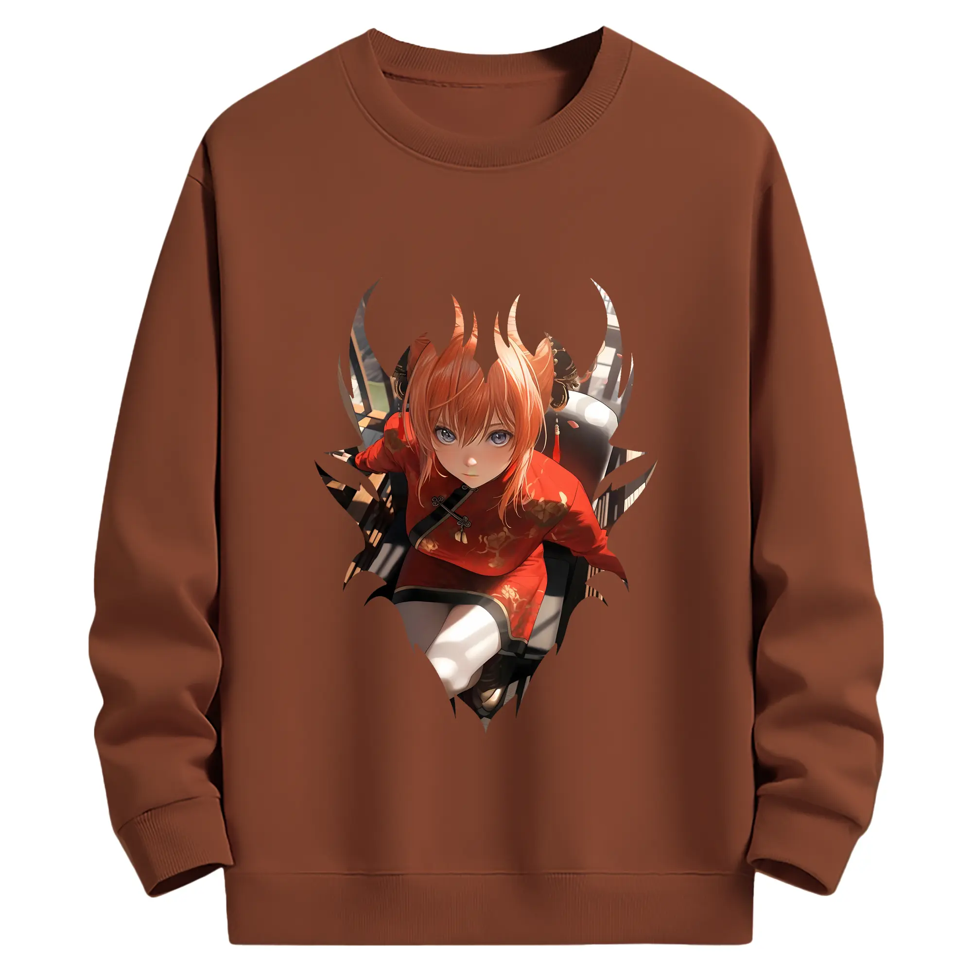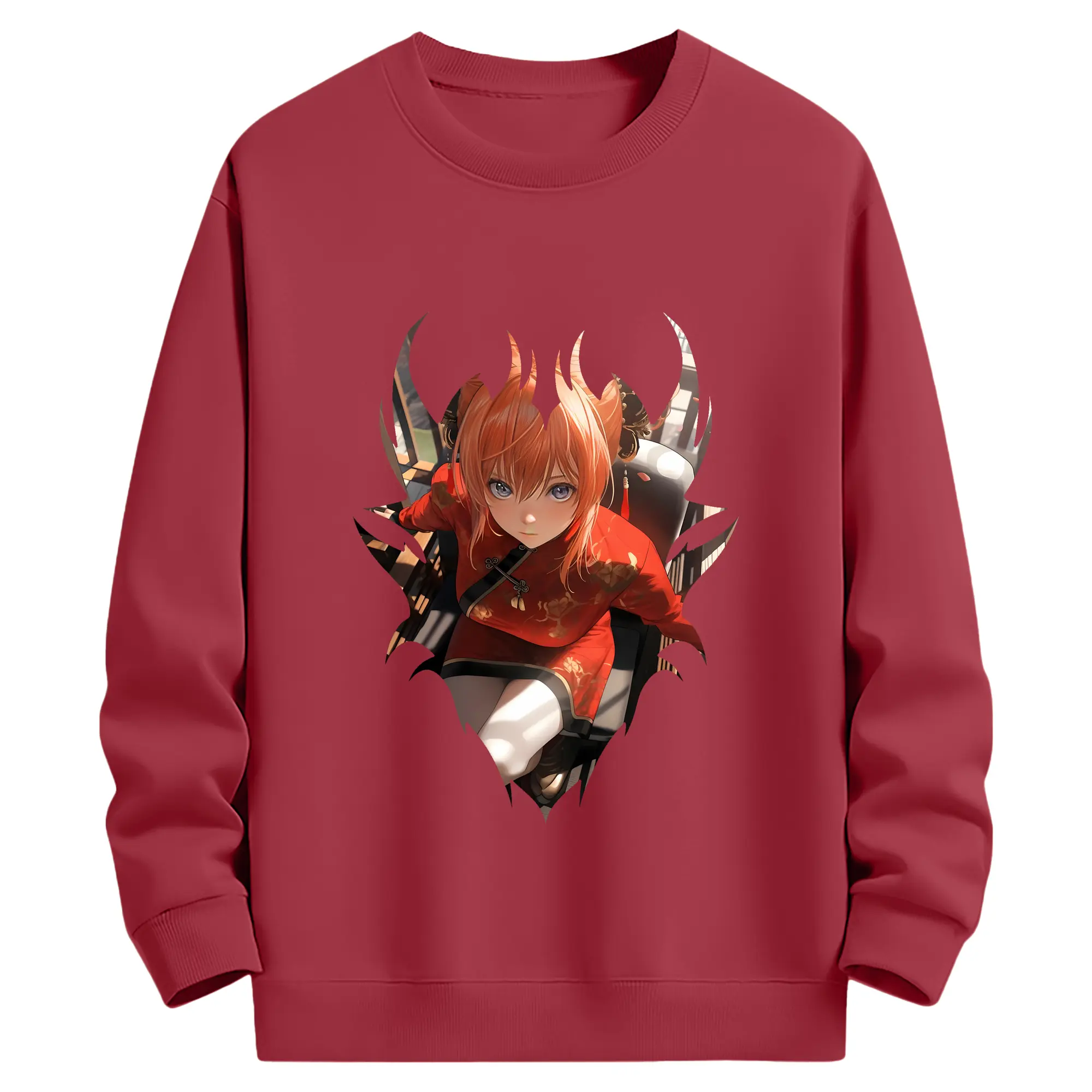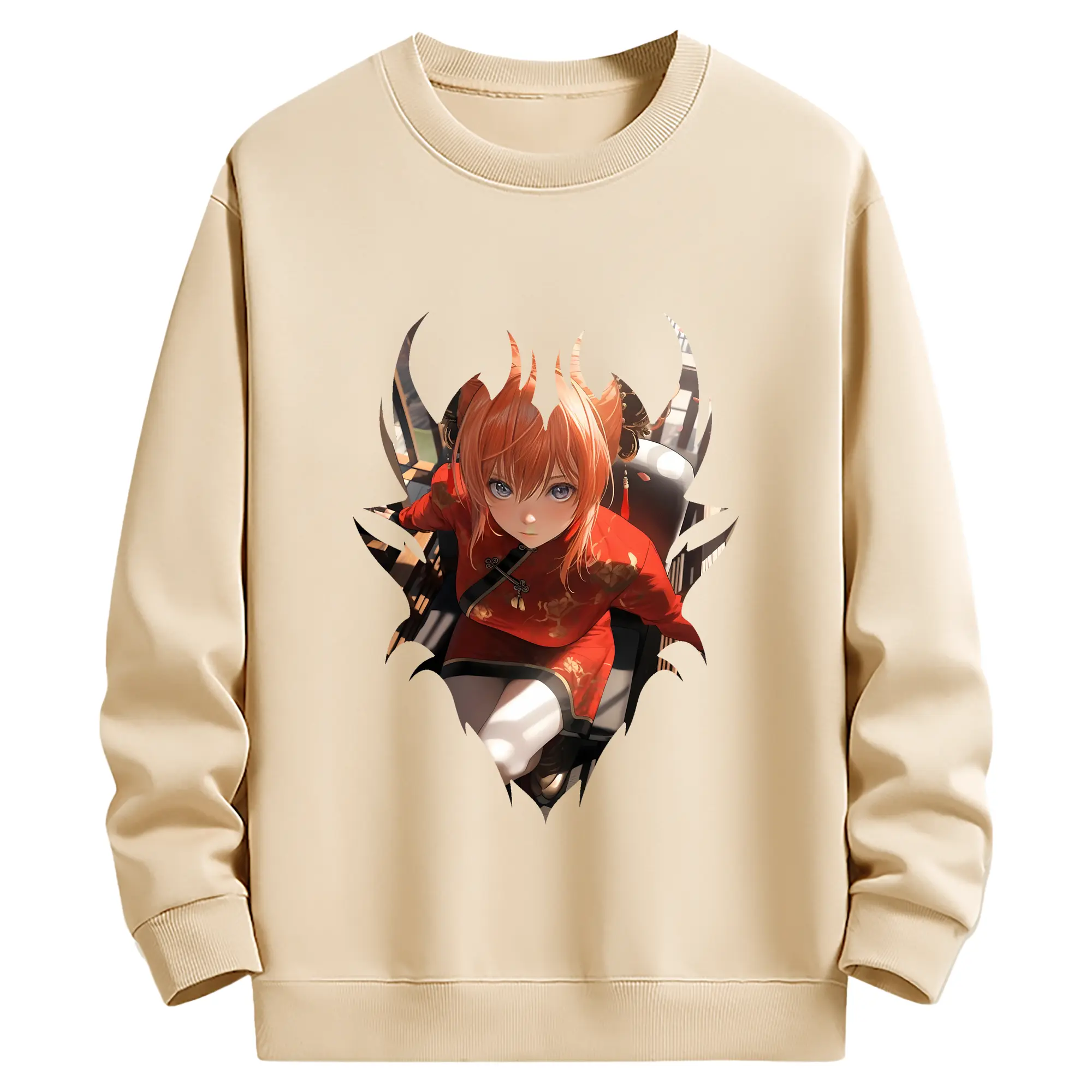銀魂 グッズ 神楽 - 薄手 クルーネック スウェット 裏毛260g · ポリエステル 春秋向け カジュアル 男女兼用 · トレーナー デイリー スポーツ 散歩に最適