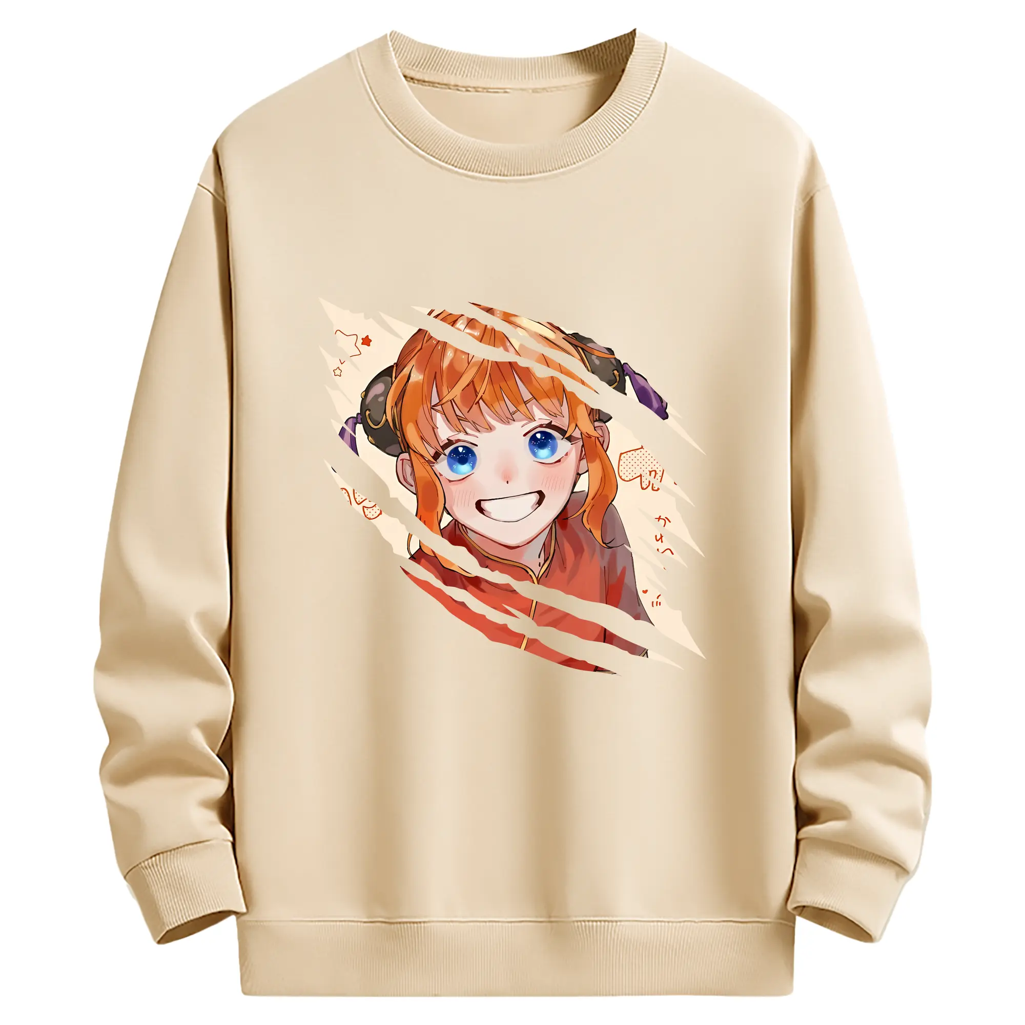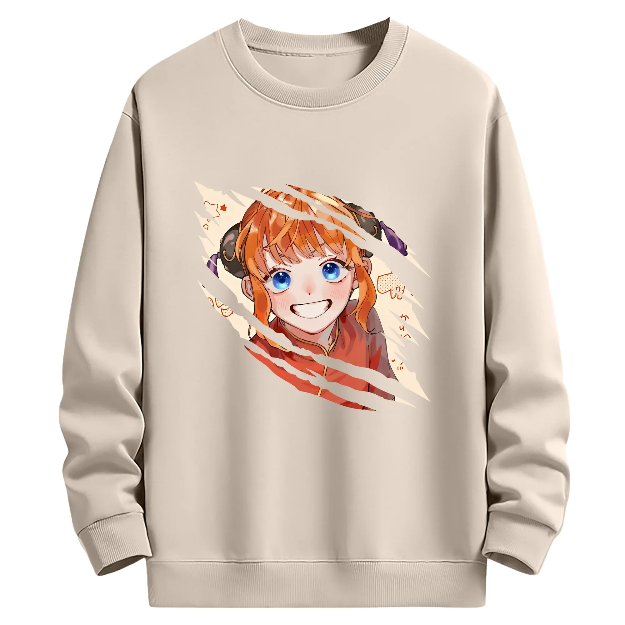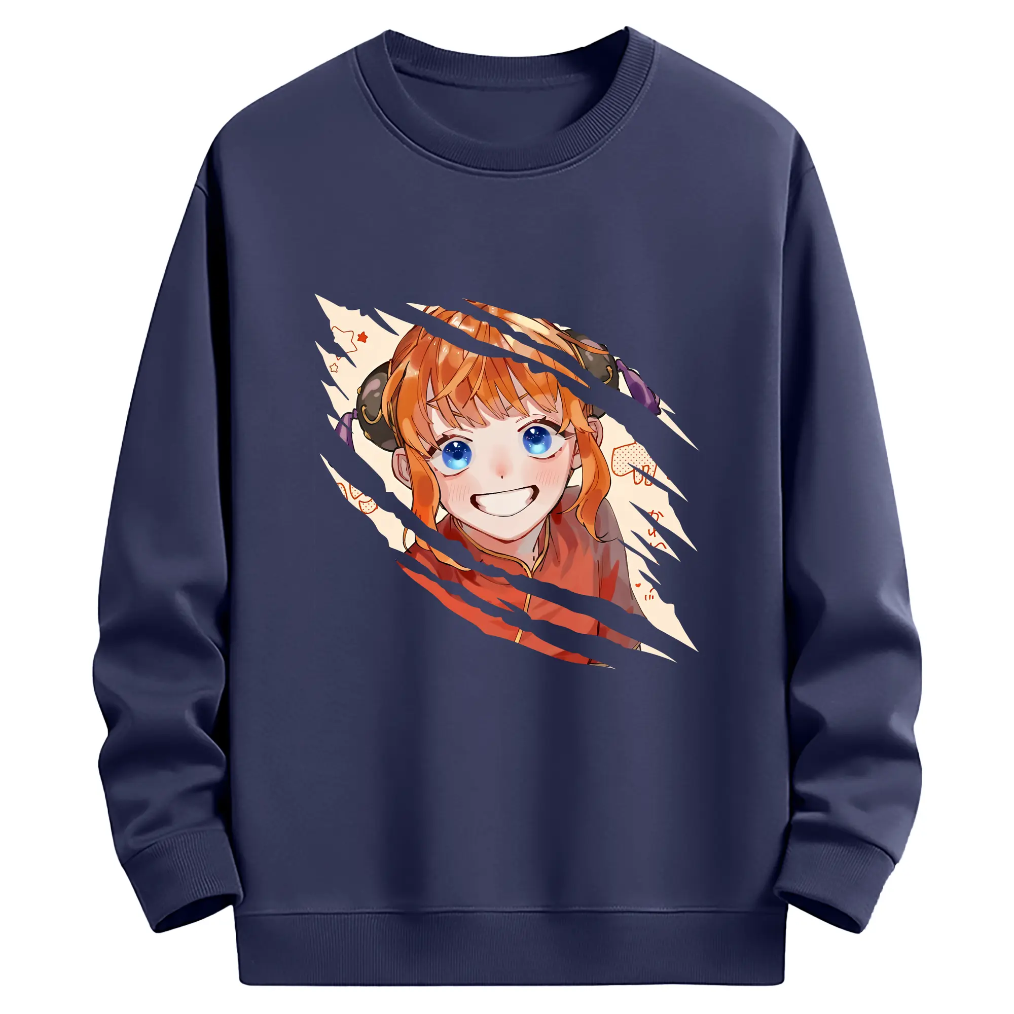 銀魂 グッズ 神楽 - 薄手 クルーネック スウェット 裏毛260g · ポリエステル 春秋向け カジュアル 男女兼用 · トレーナー デイリー スポーツ 散歩に最適
