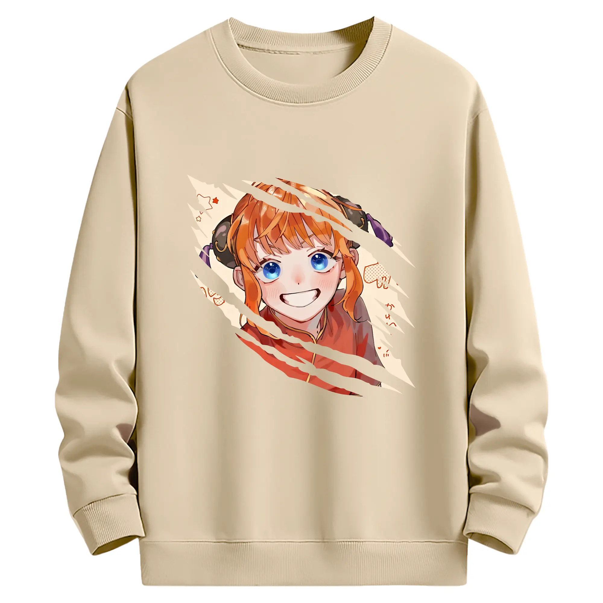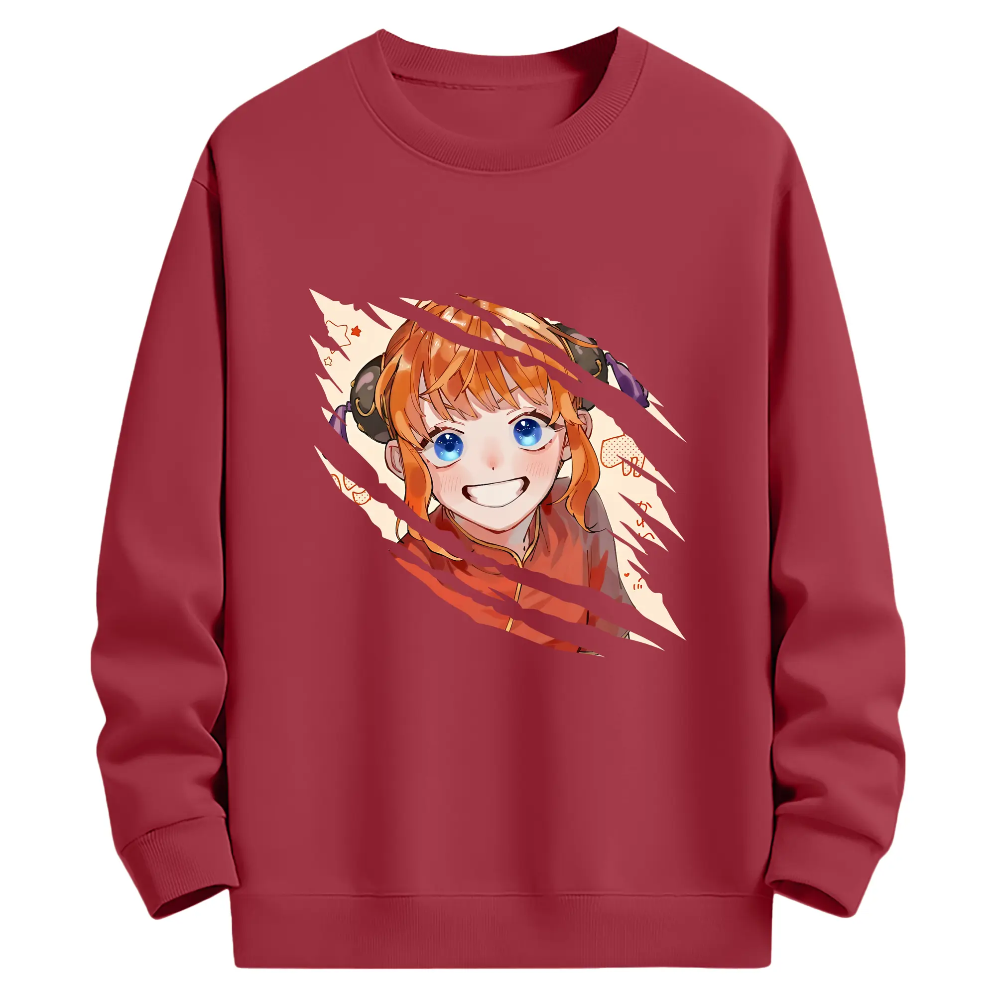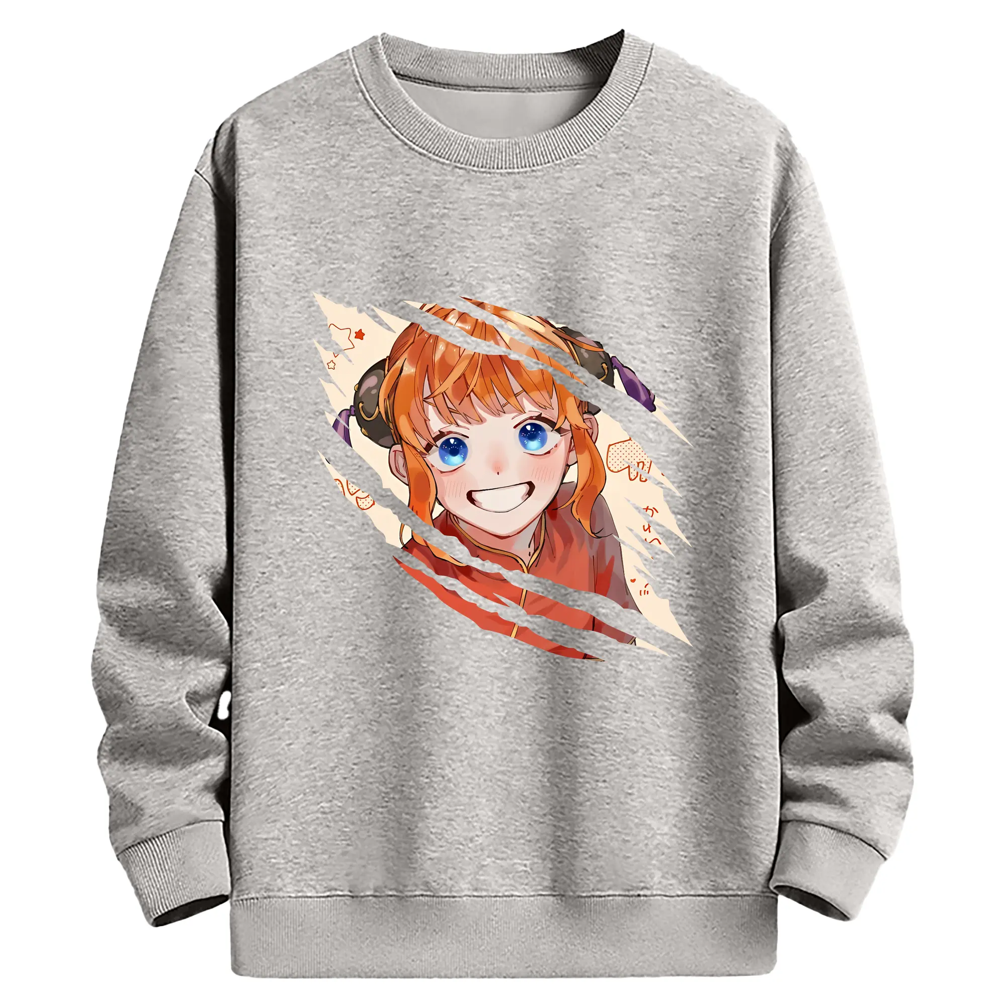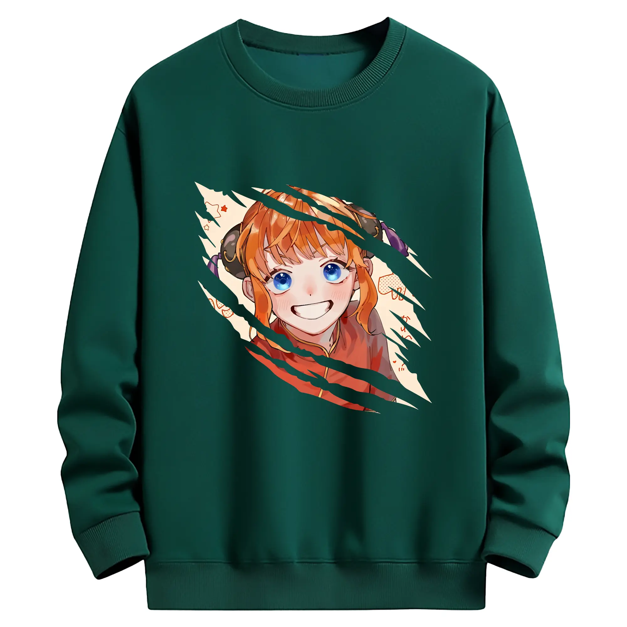 銀魂 グッズ 神楽 - 薄手 クルーネック スウェット 裏毛260g · ポリエステル 春秋向け カジュアル 男女兼用 · トレーナー デイリー スポーツ 散歩に最適
