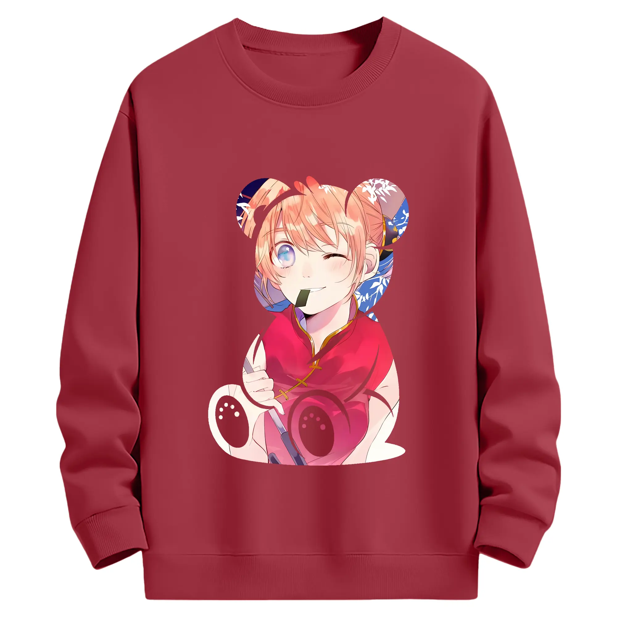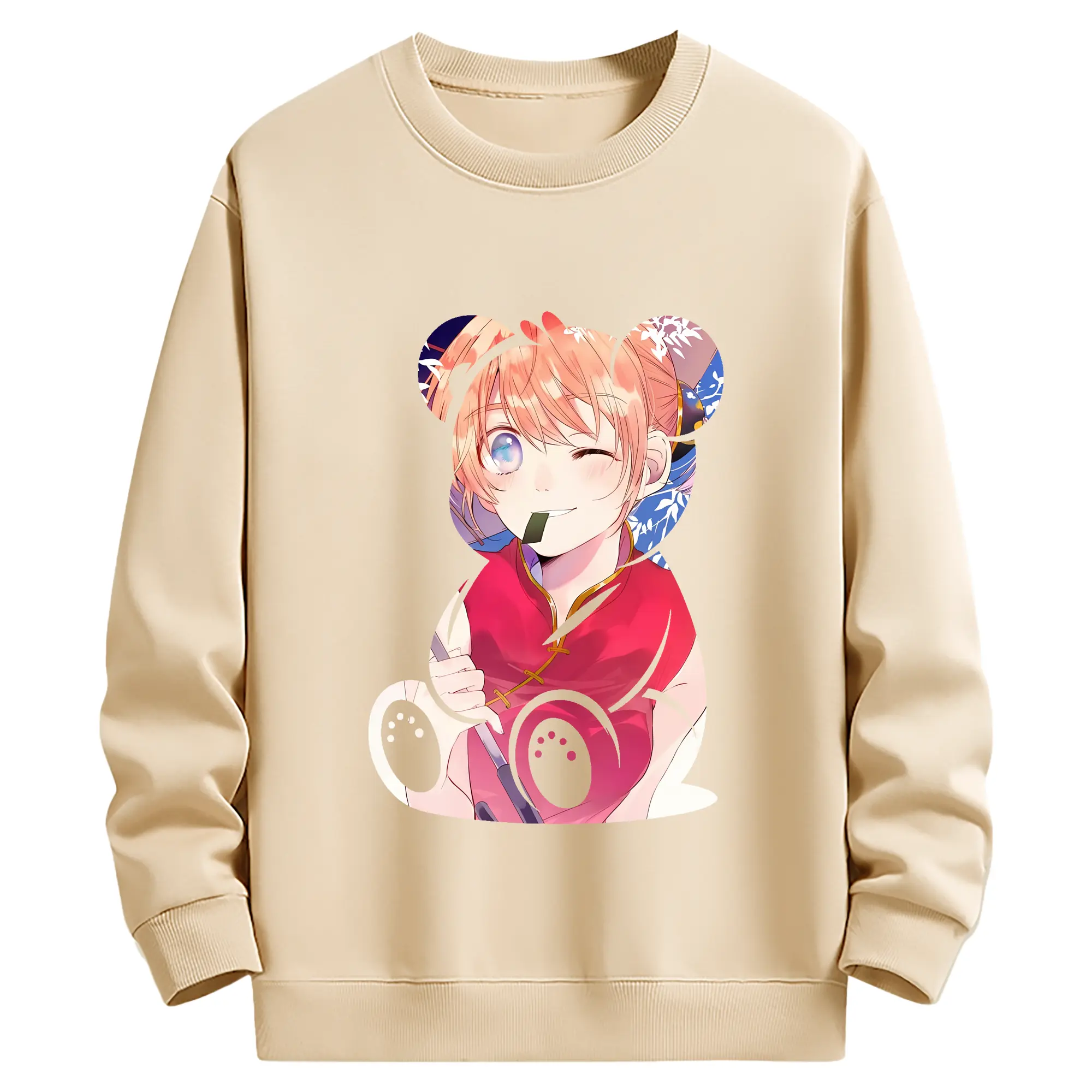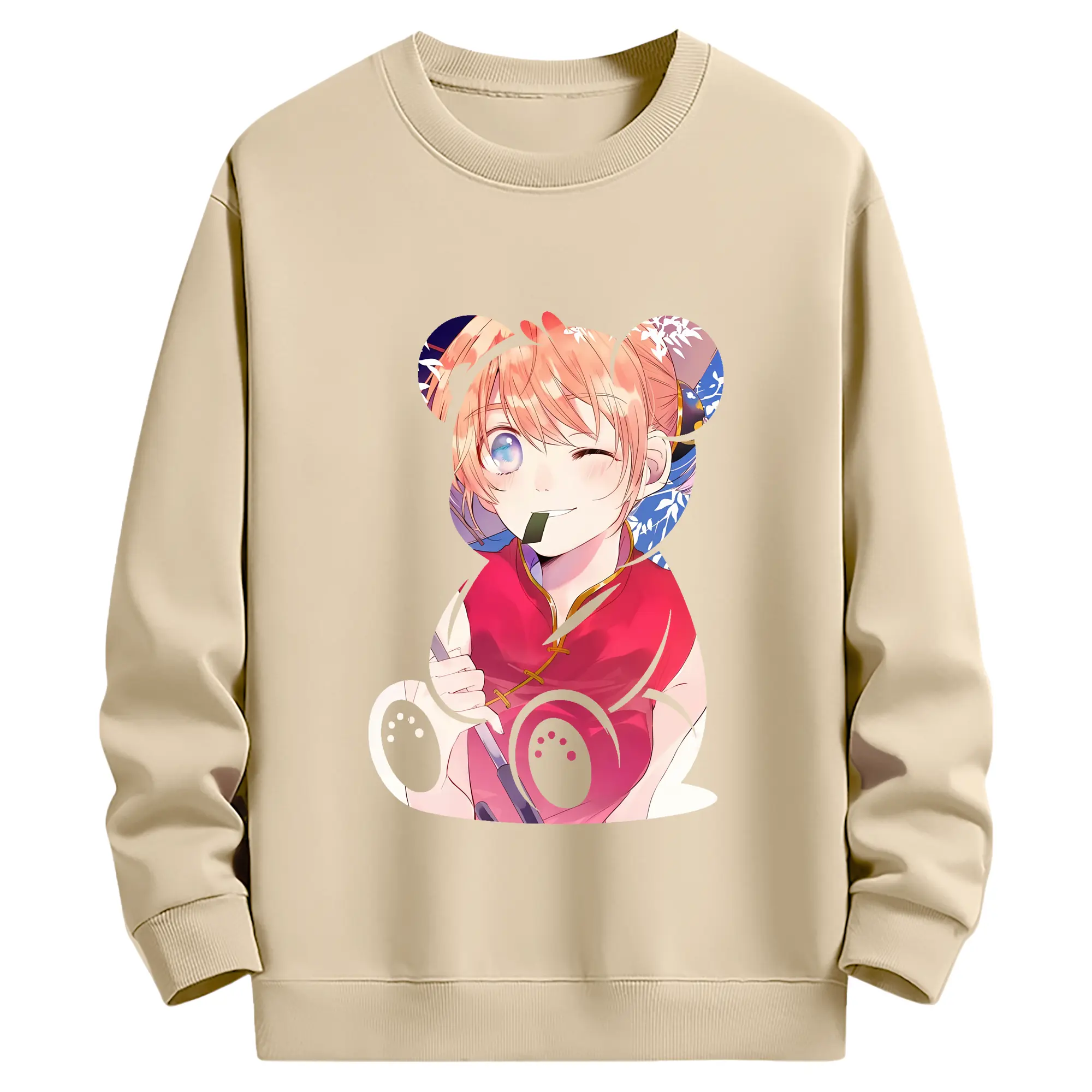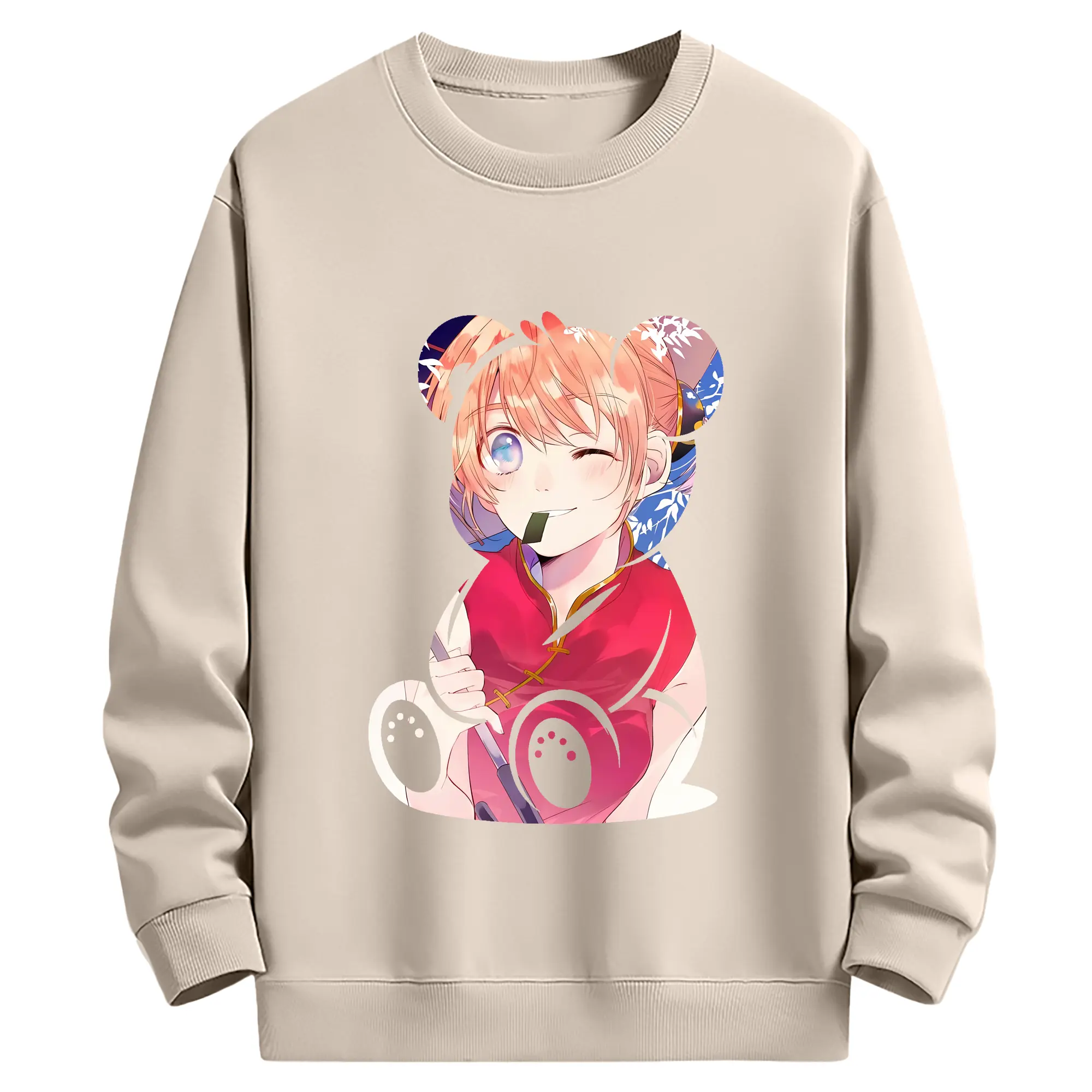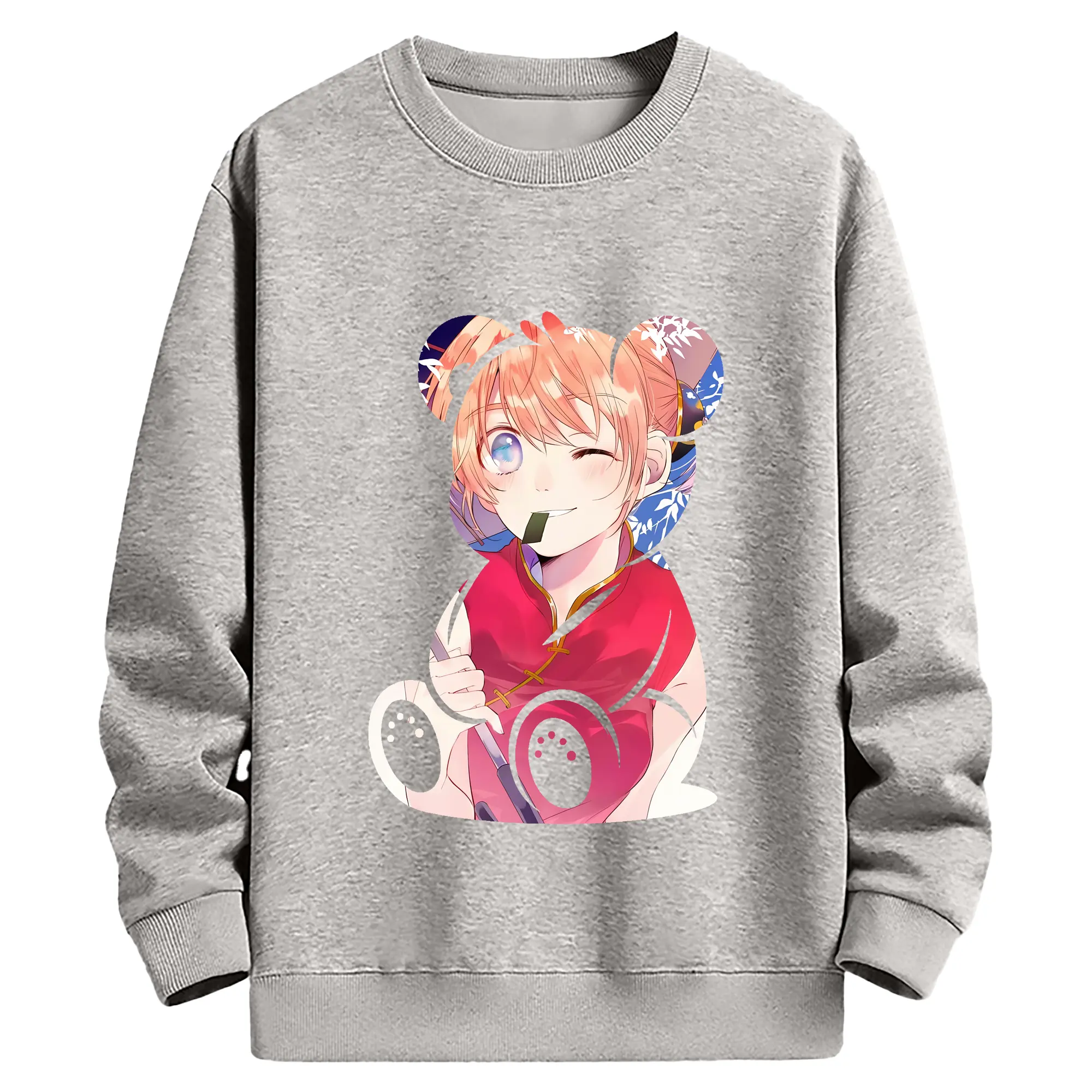 銀魂 グッズ 神楽 - 薄手 クルーネック スウェット 裏毛260g · ポリエステル 春秋向け カジュアル 男女兼用 · トレーナー デイリー スポーツ 散歩に最適