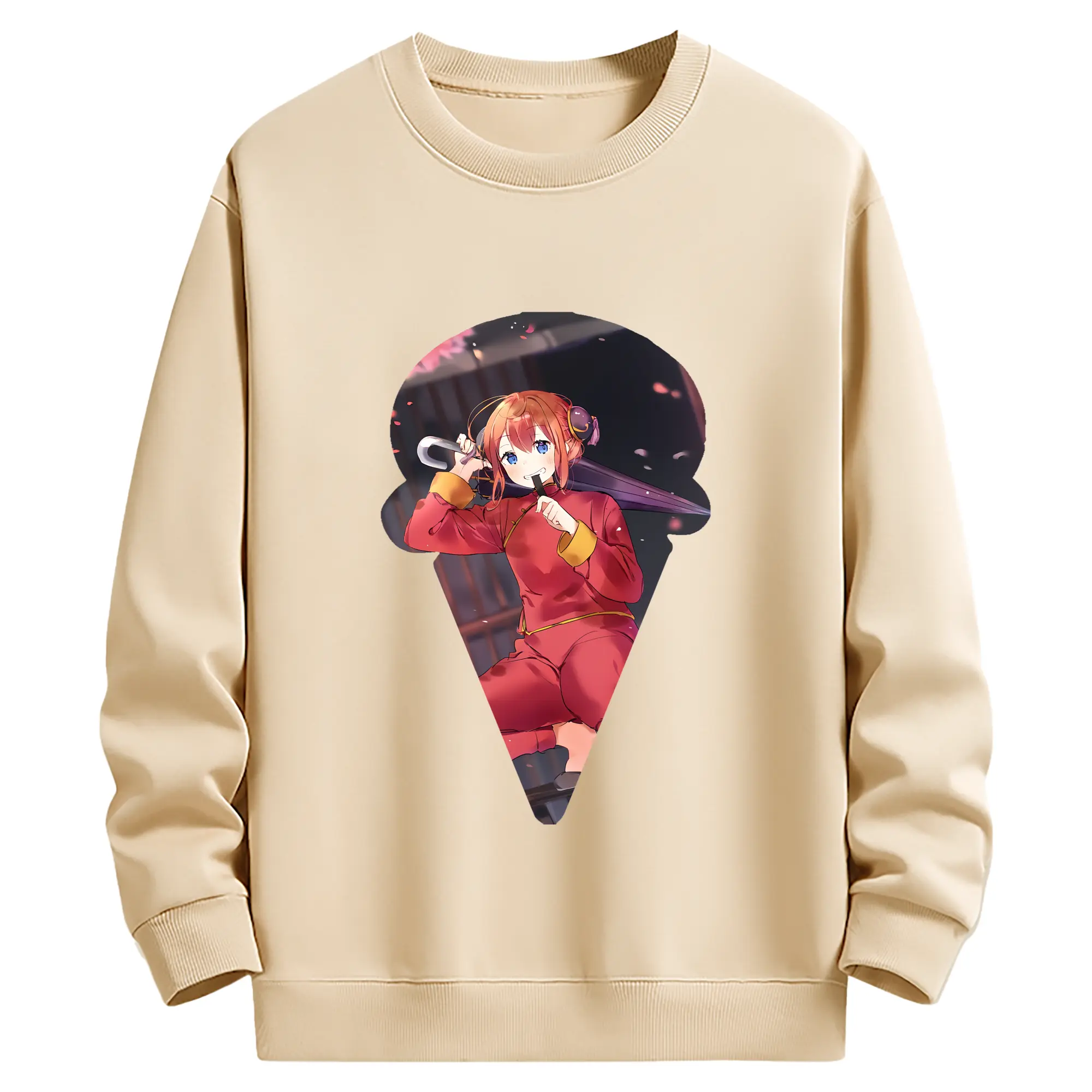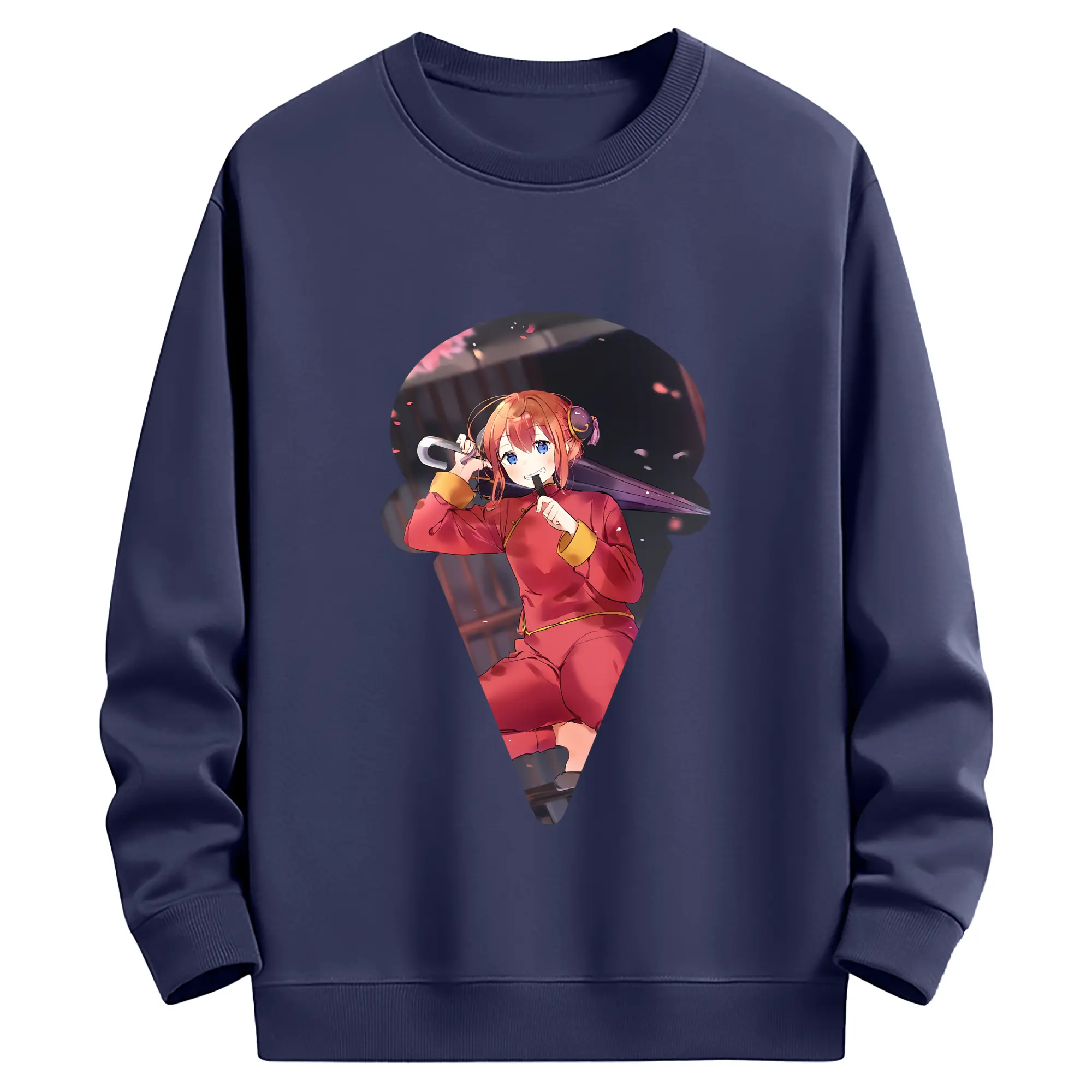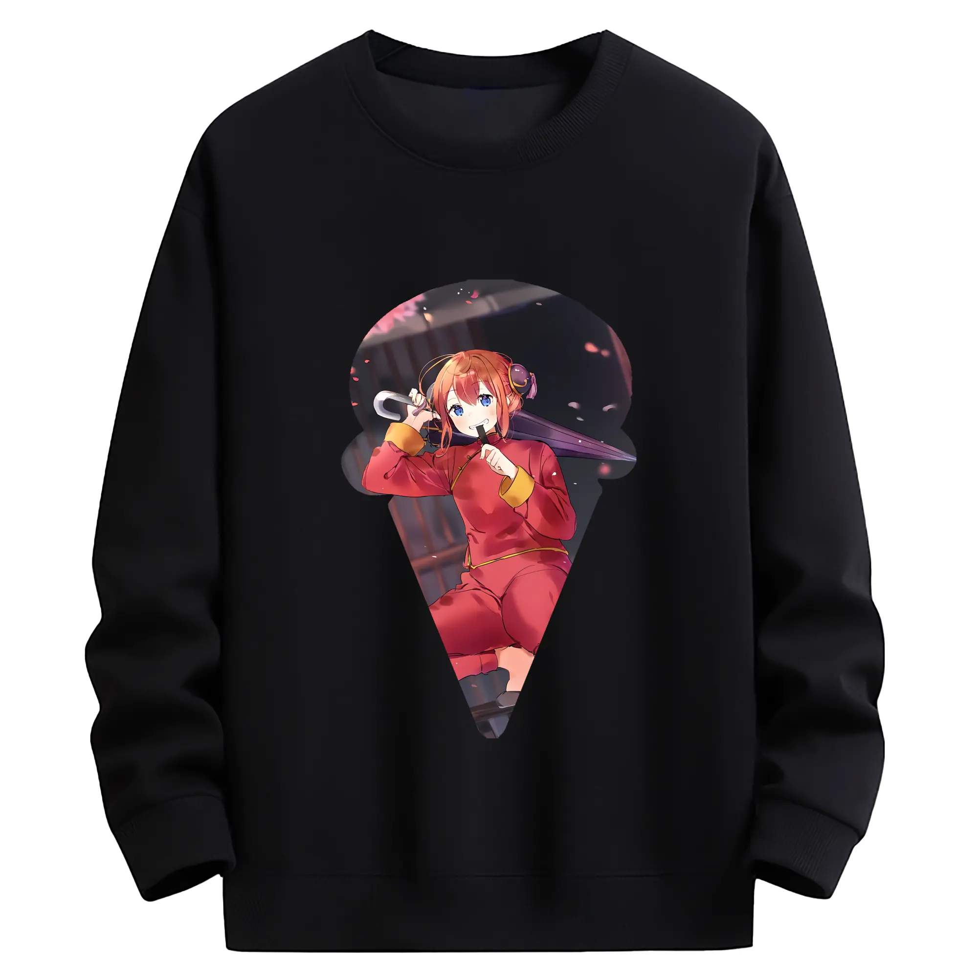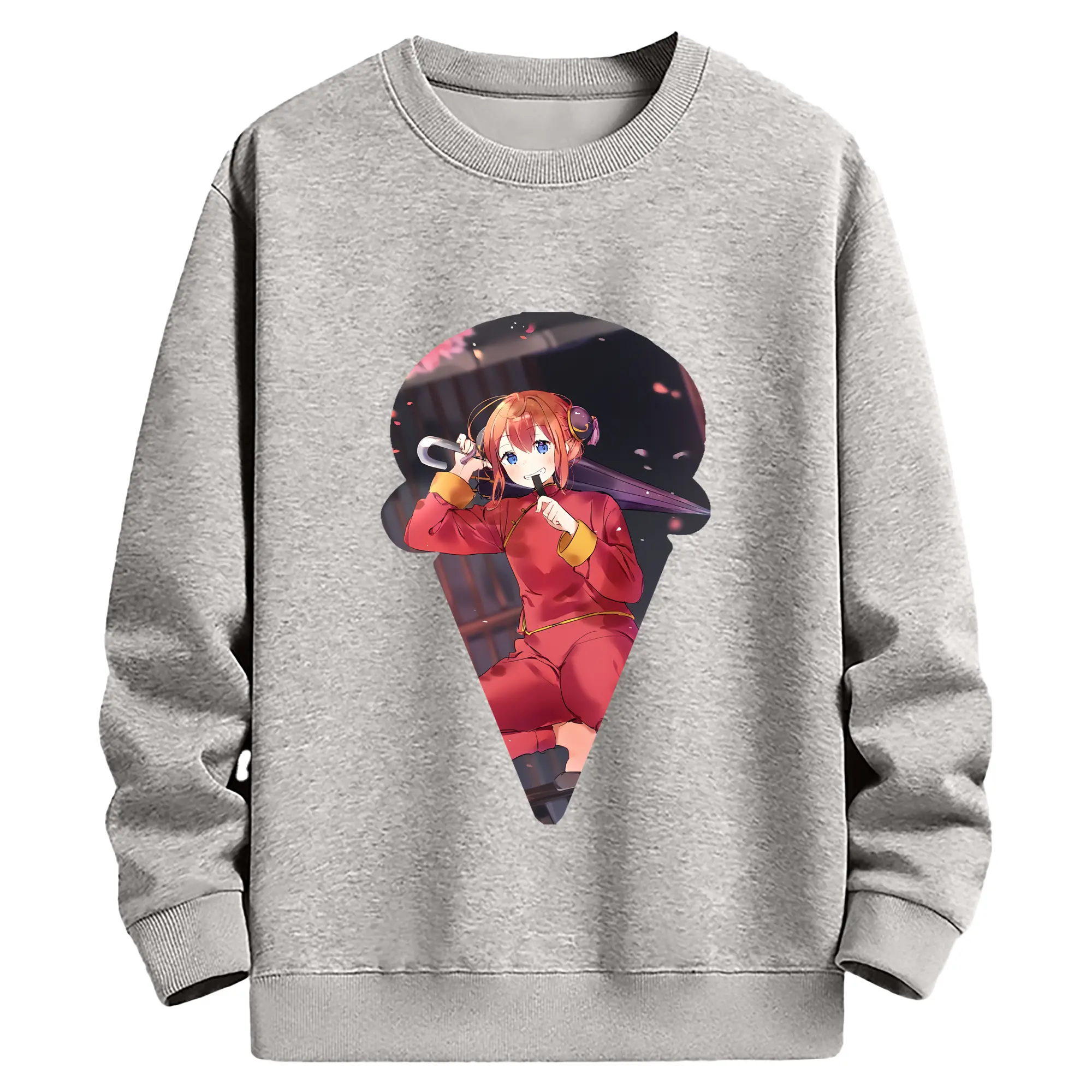 銀魂 グッズ 神楽 - 薄手 クルーネック スウェット 裏毛260g · ポリエステル 春秋向け カジュアル 男女兼用 · トレーナー デイリー スポーツ 散歩に最適
