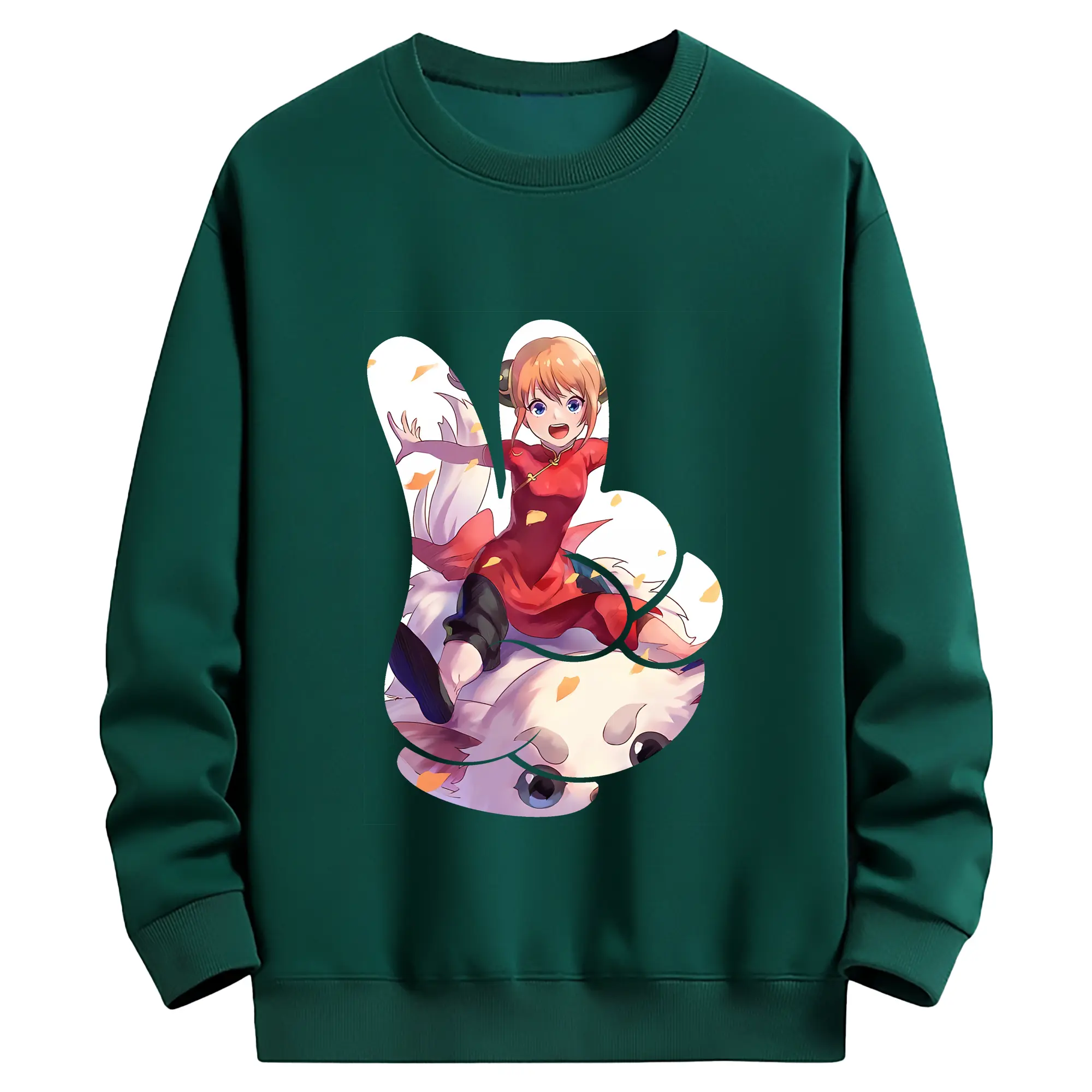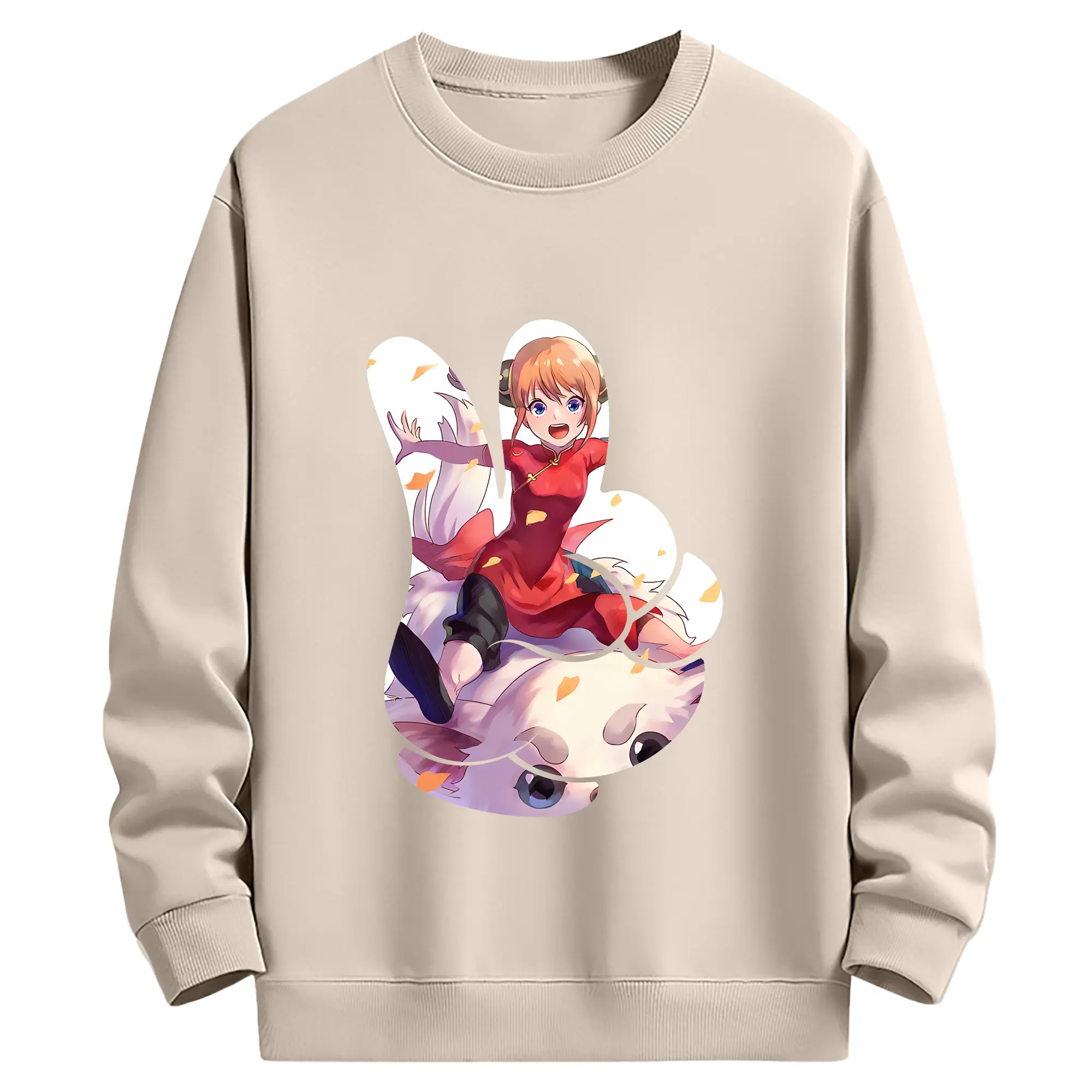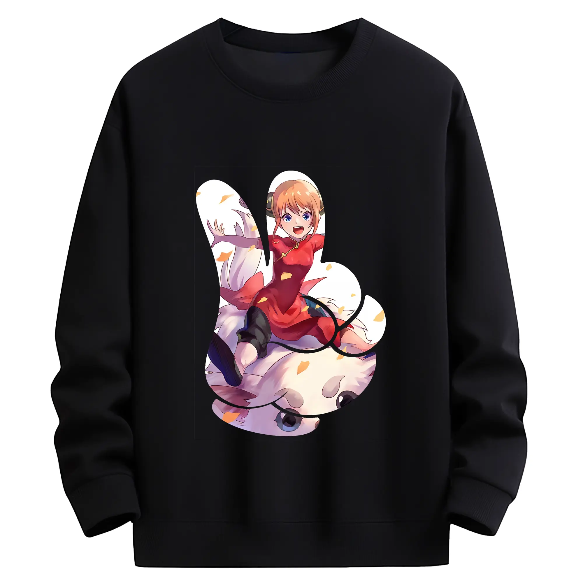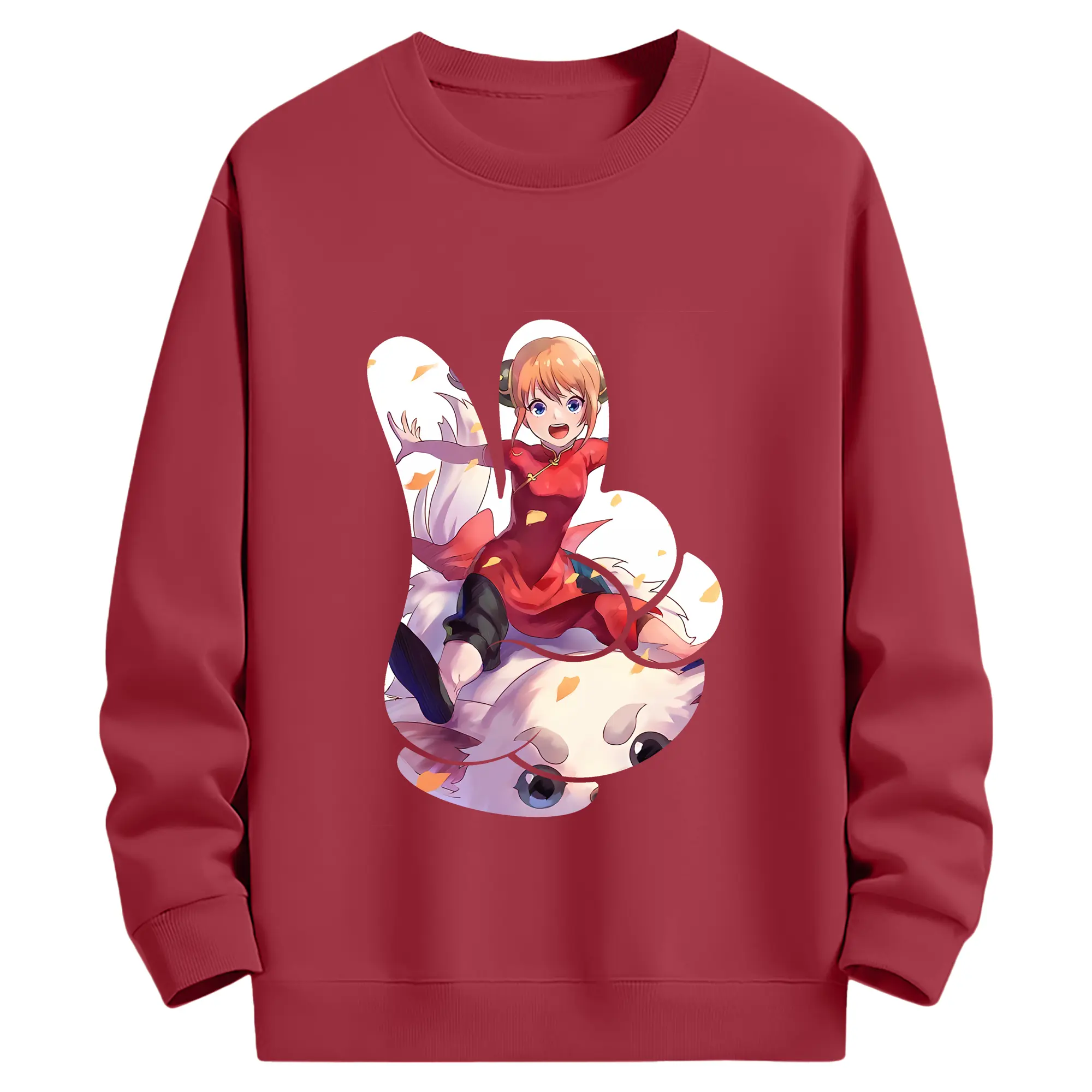 銀魂 グッズ 神楽 - 薄手 クルーネック スウェット 裏毛260g · ポリエステル 春秋向け カジュアル 男女兼用 · トレーナー デイリー スポーツ 散歩に最適