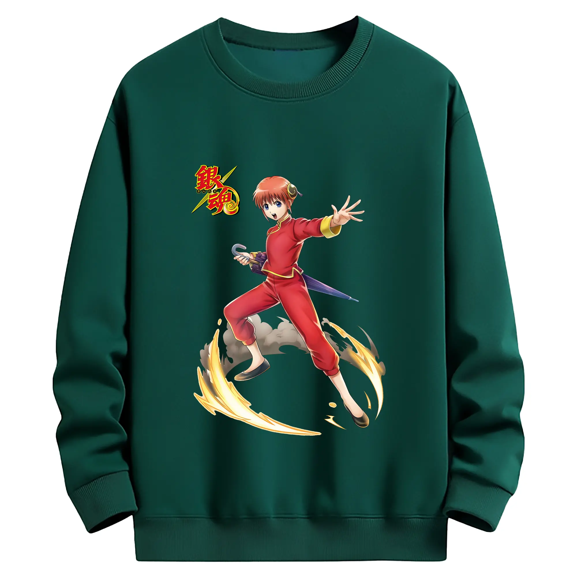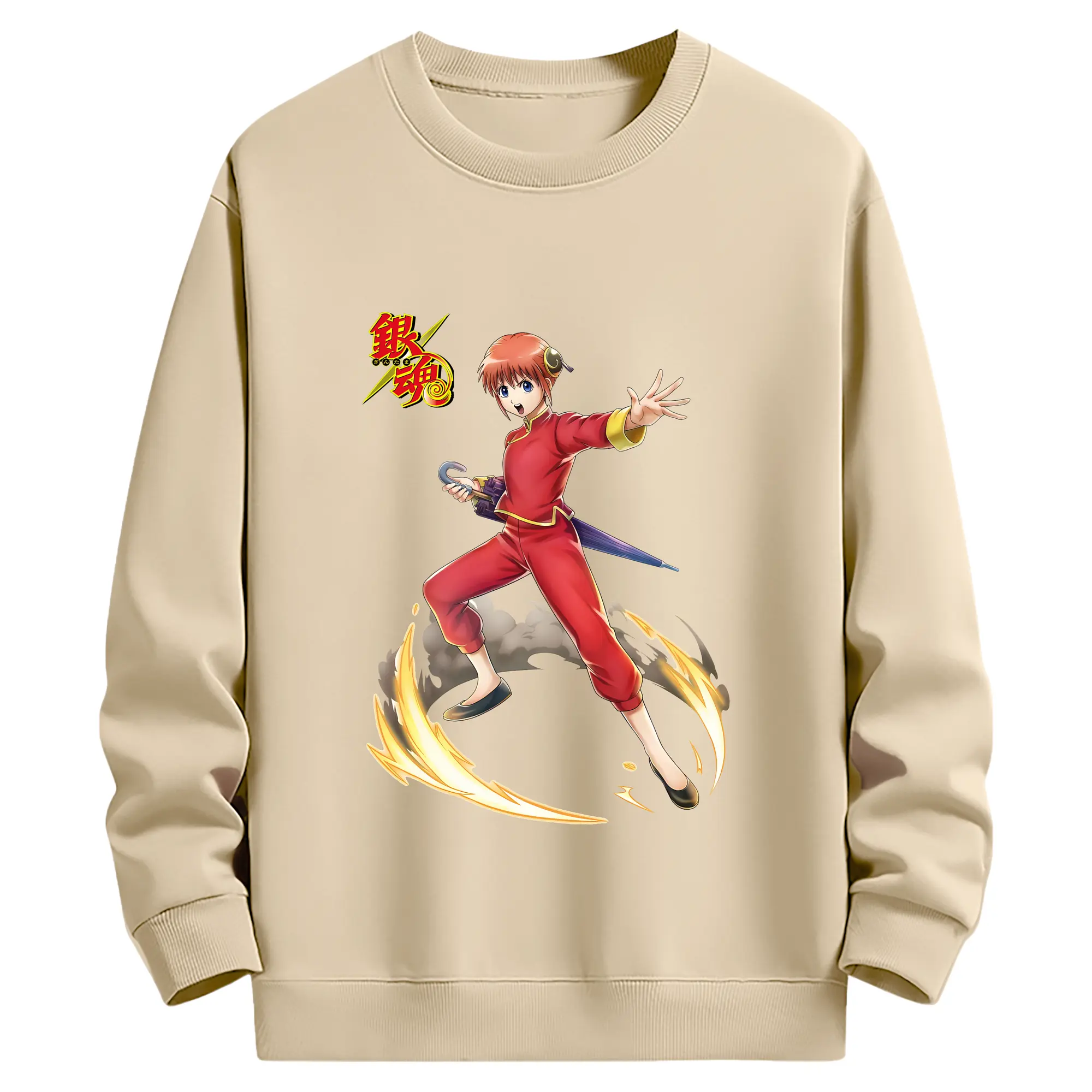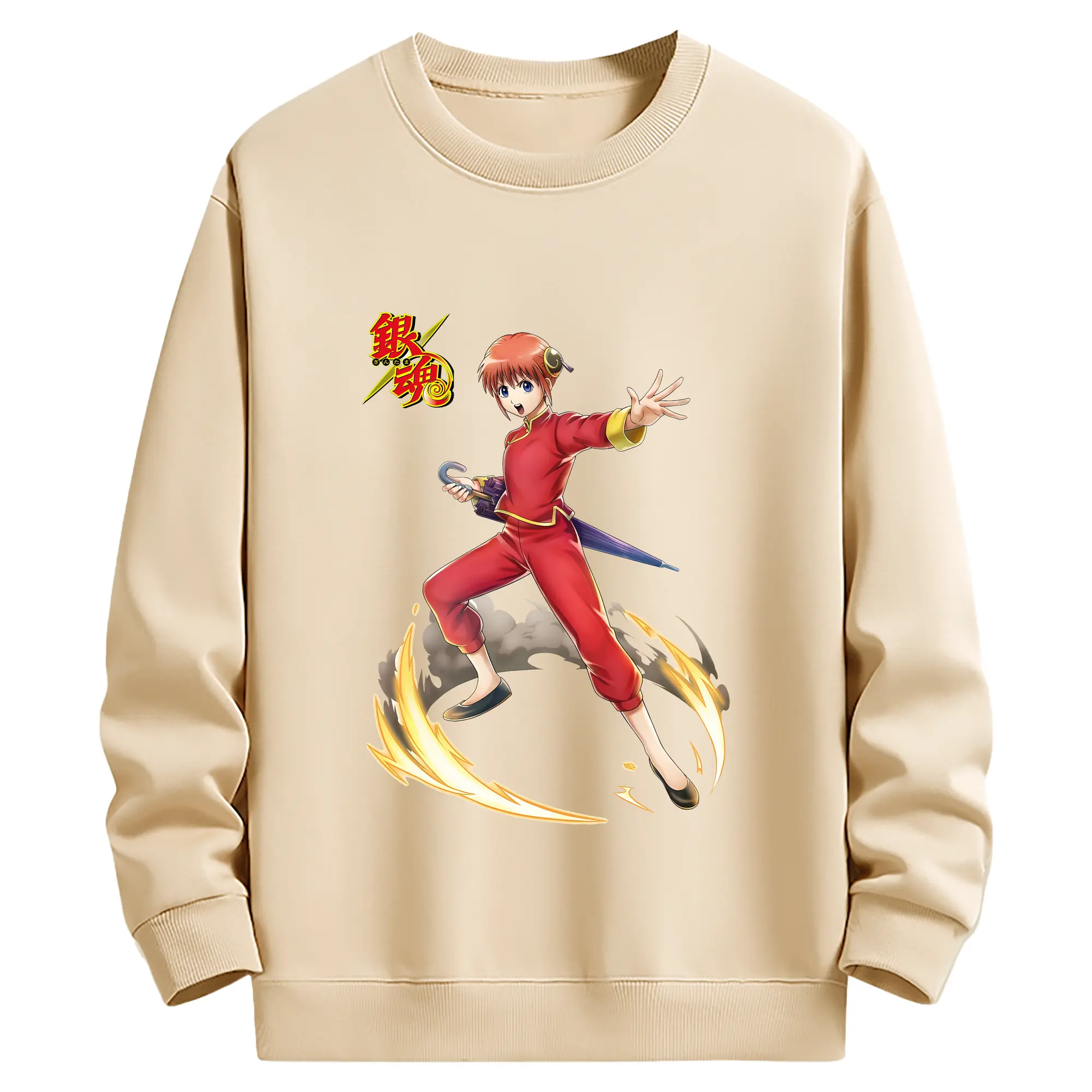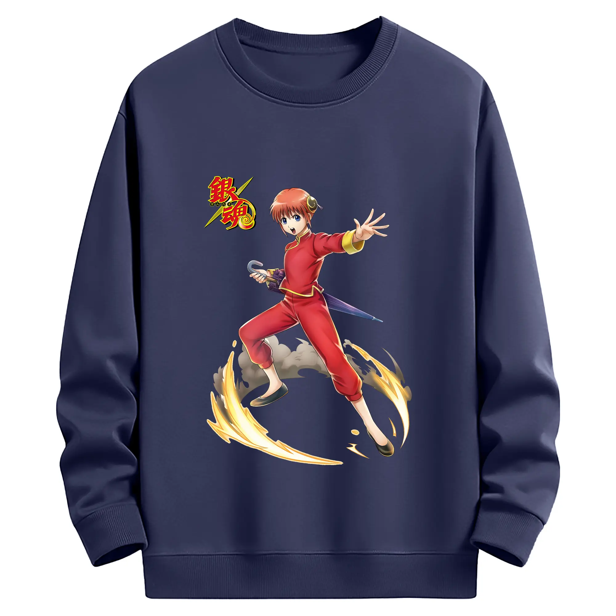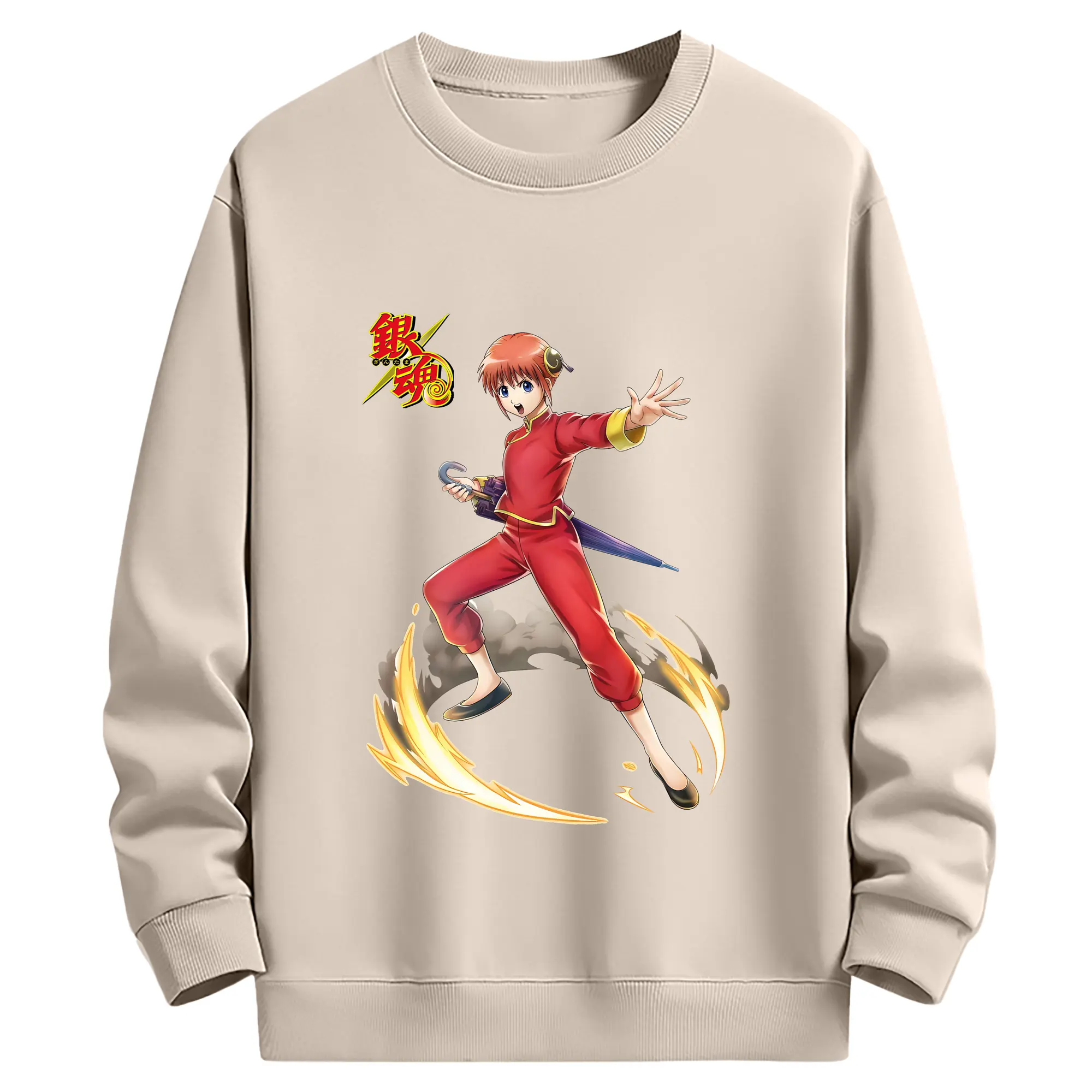 銀魂 グッズ 神楽 - 薄手 クルーネック スウェット 裏毛260g · ポリエステル 春秋向け カジュアル 男女兼用 · トレーナー デイリー スポーツ 散歩に最適