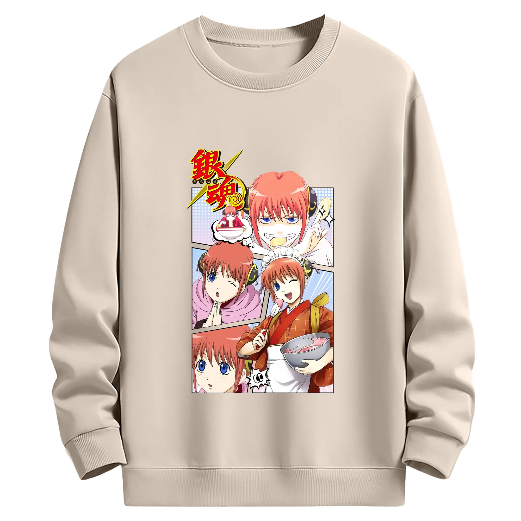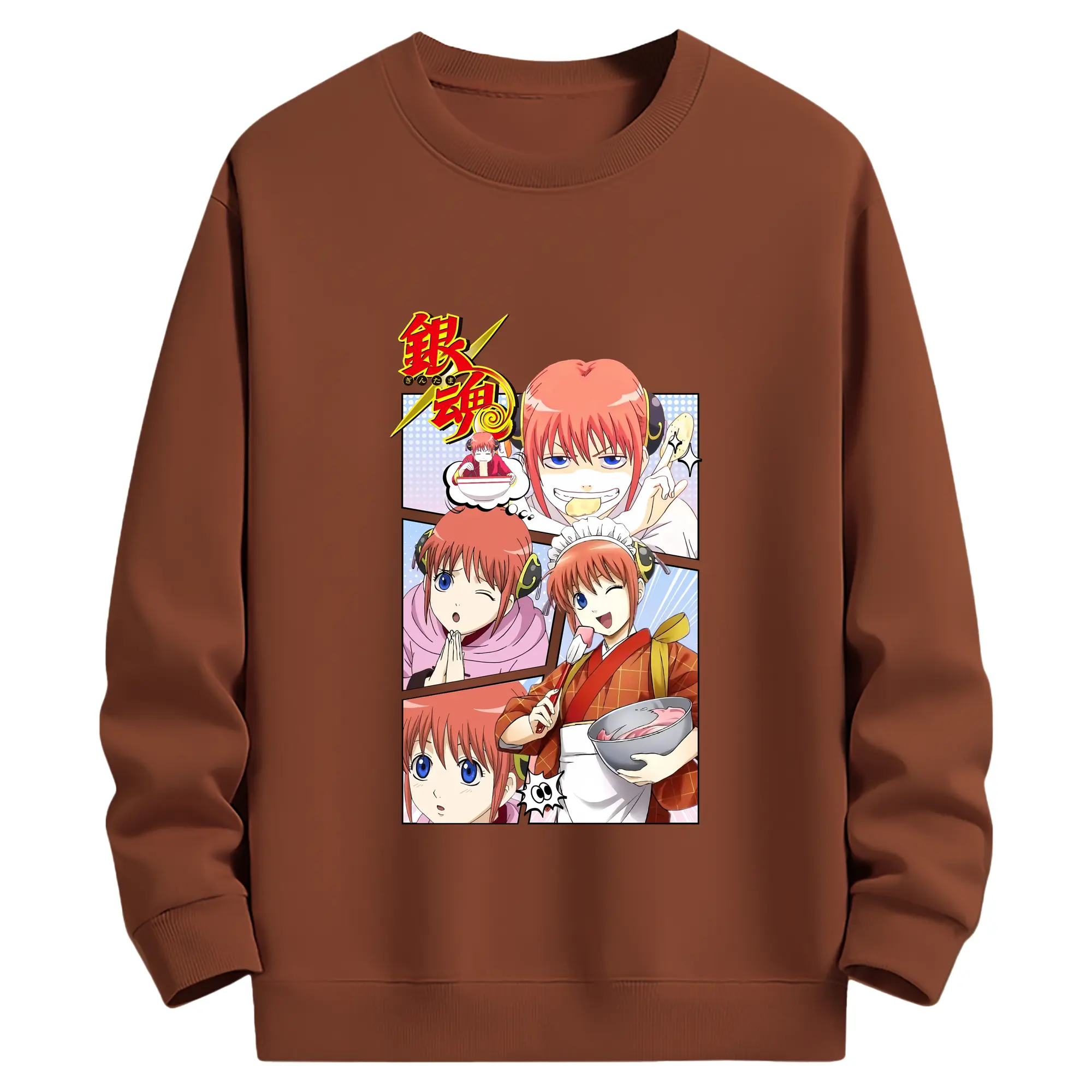 銀魂 グッズ 神楽 - 薄手 クルーネック スウェット 裏毛260g · ポリエステル 春秋向け カジュアル 男女兼用 · トレーナー デイリー スポーツ 散歩に最適