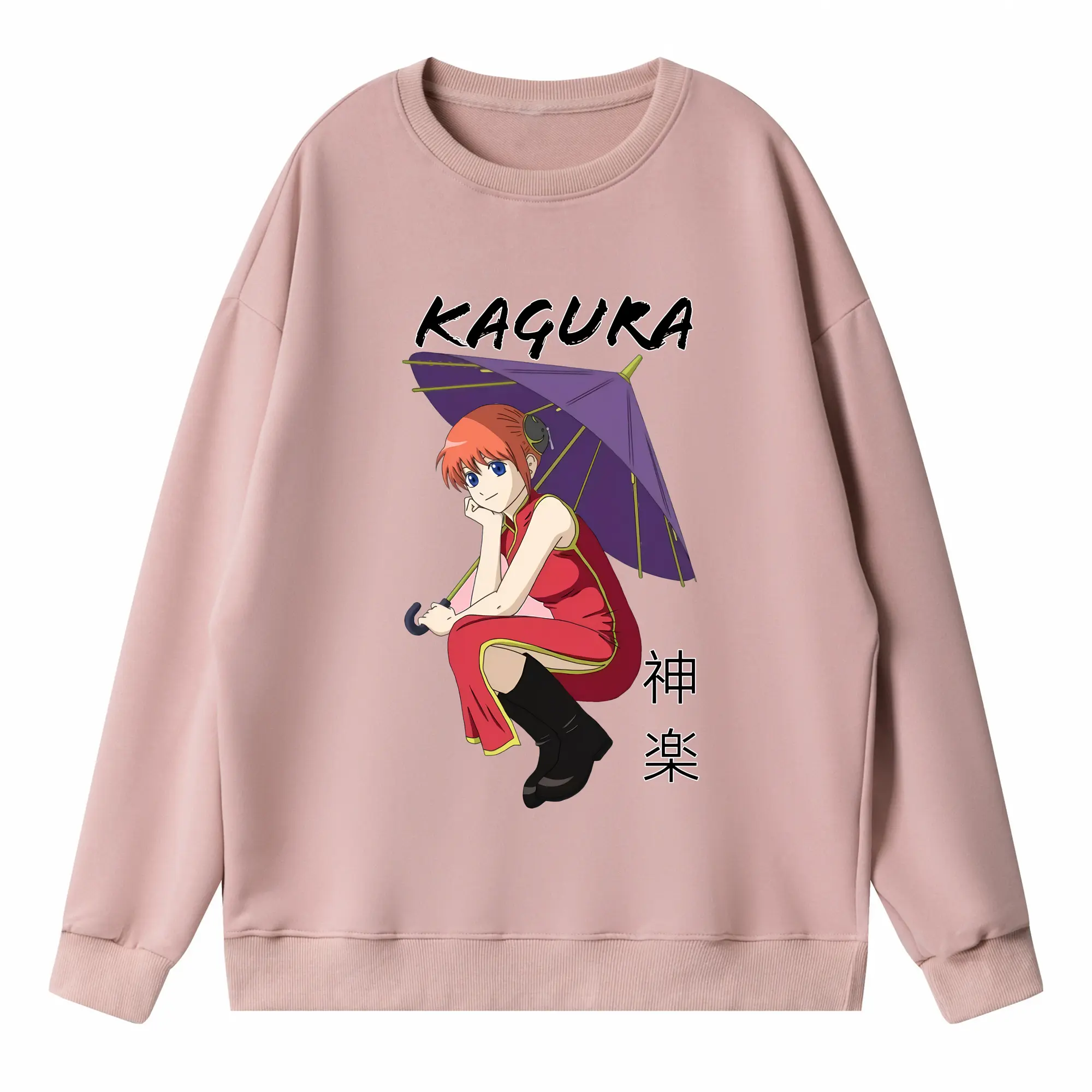 銀魂 グッズ 神楽 - 高品質 クルーネック スウェット ・ コットン59% ポリエステル41% ・ ユニセックス 長袖 トレーナー ・ カジュアル デイリー スポーツ 散歩用