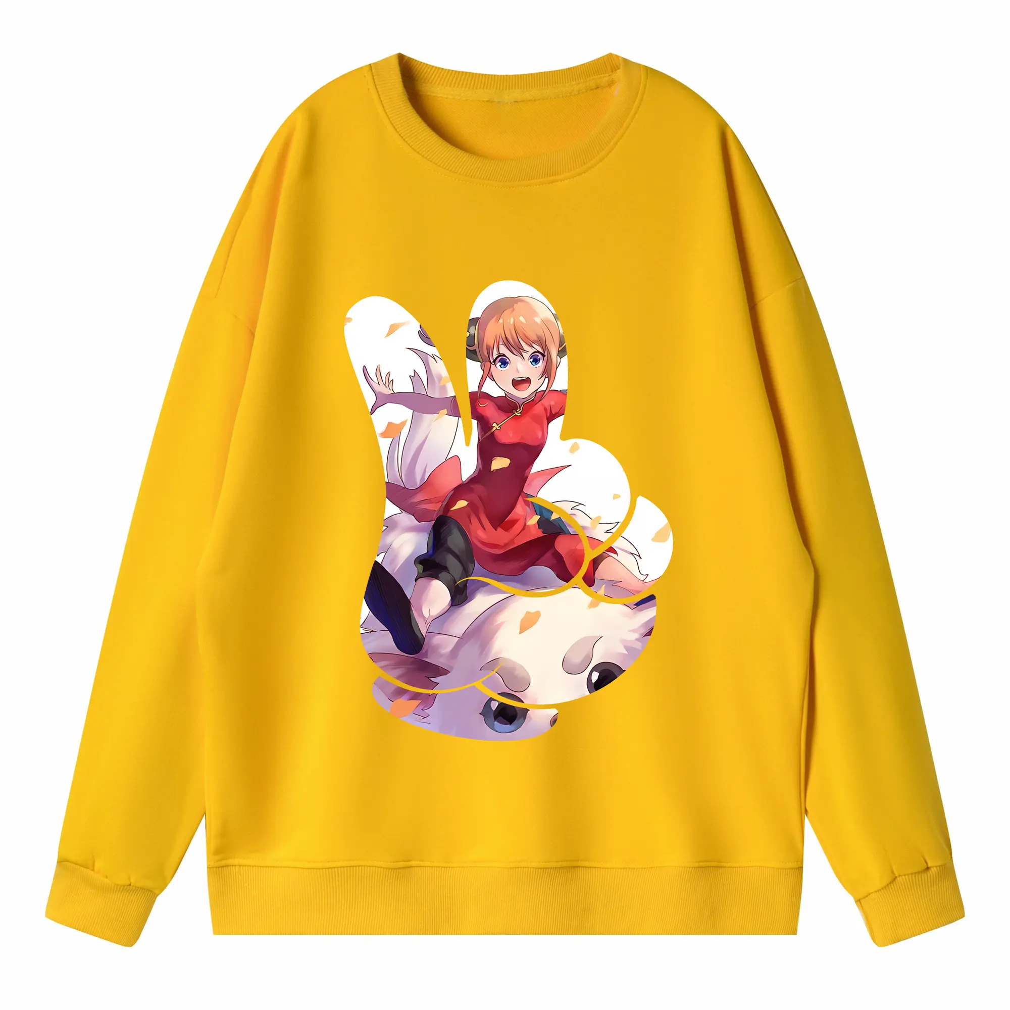 銀魂 グッズ 神楽 - 高品質 クルーネック スウェット ・ コットン59% ポリエステル41% ・ ユニセックス 長袖 トレーナー ・ カジュアル デイリー スポーツ 散歩用