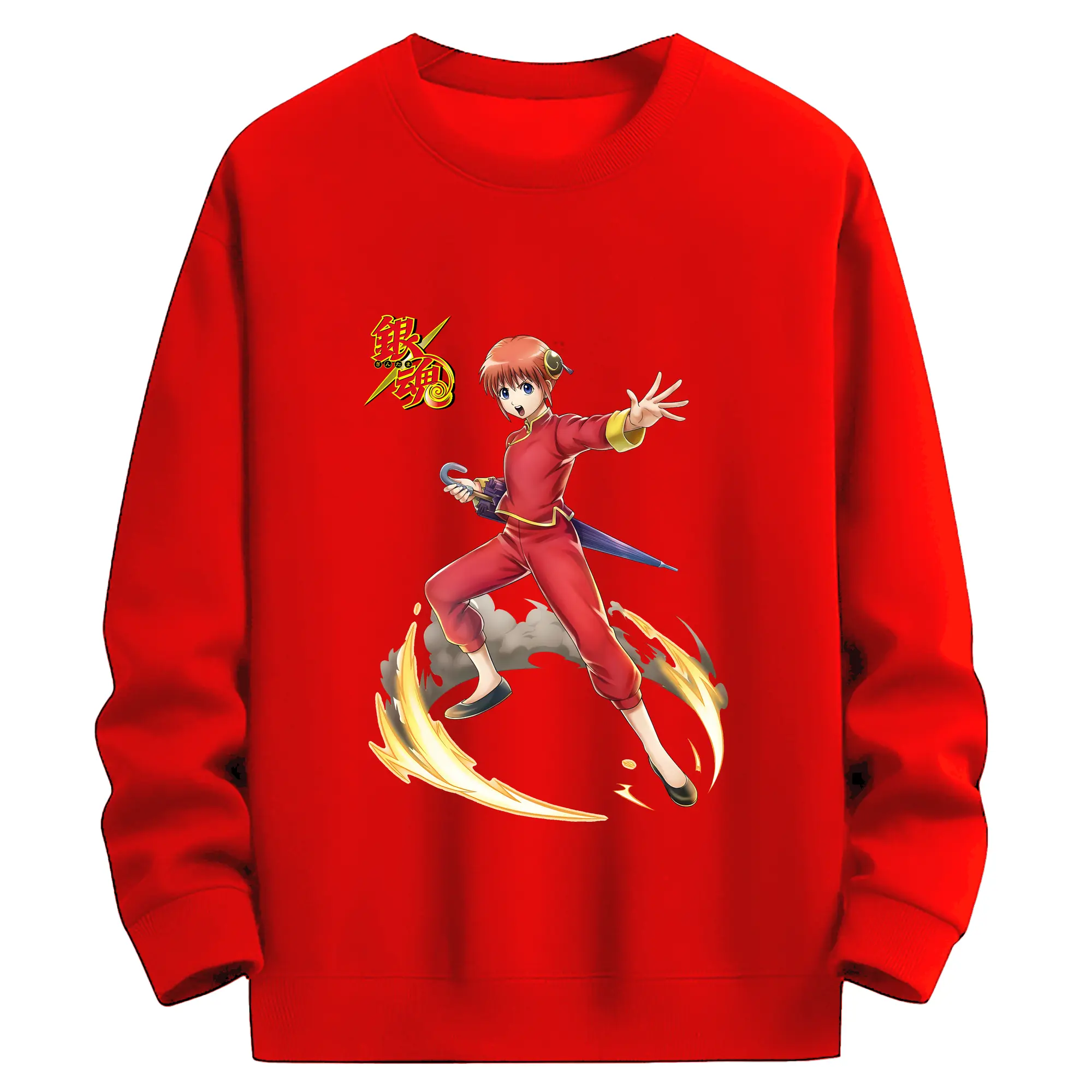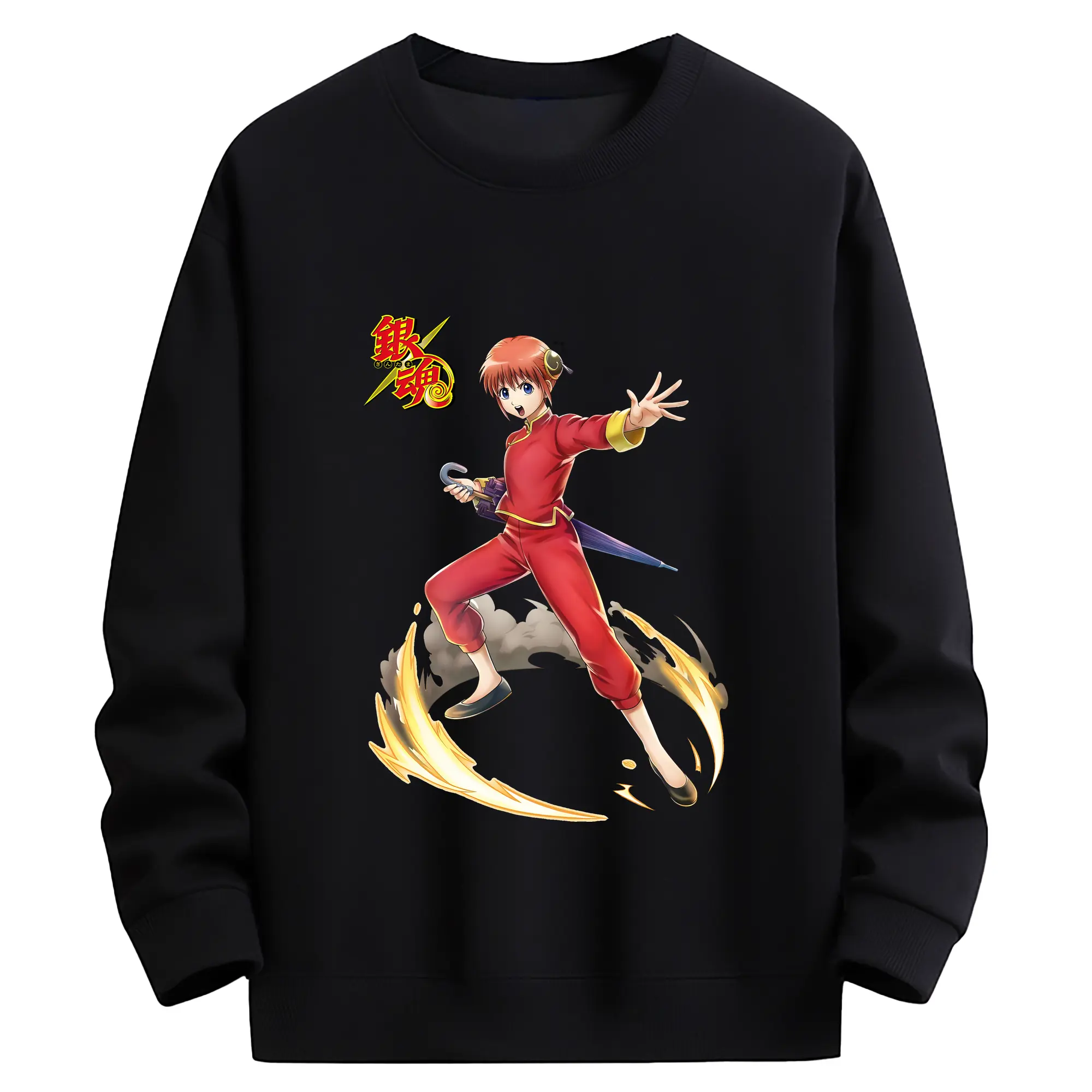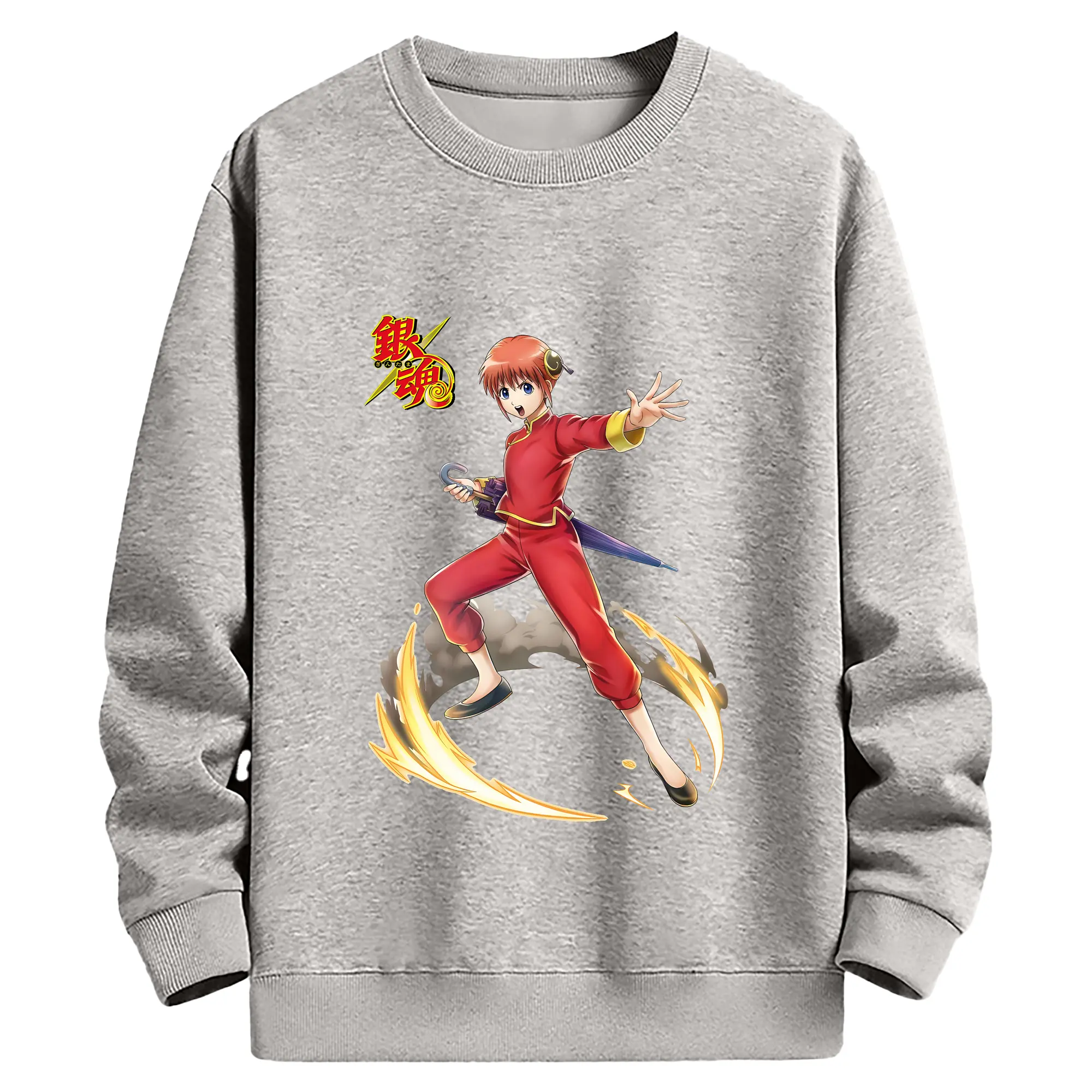 銀魂 グッズ 神楽 - 薄手 クルーネック スウェット 裏毛260g · ポリエステル 春秋向け カジュアル 男女兼用 · トレーナー デイリー スポーツ 散歩に最適