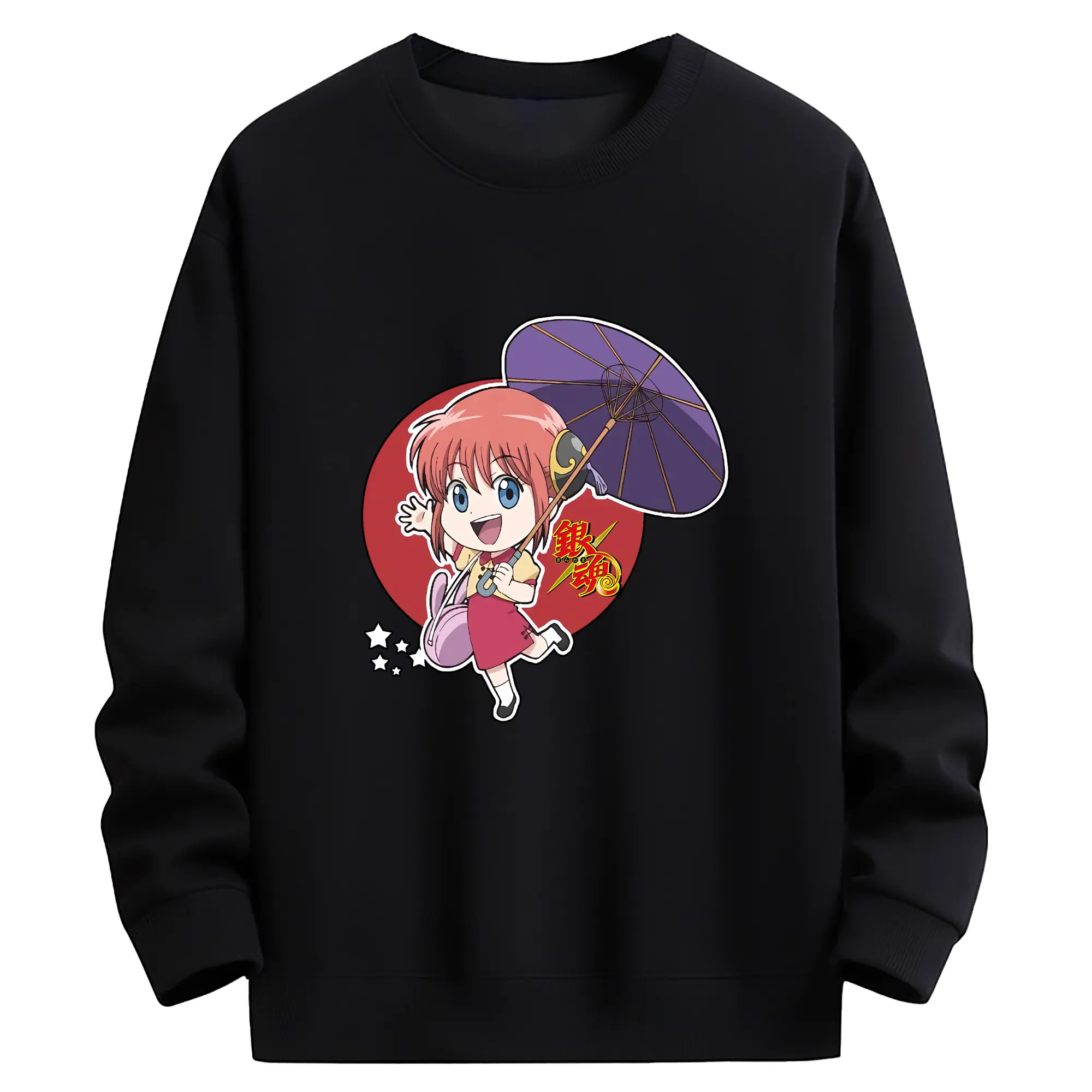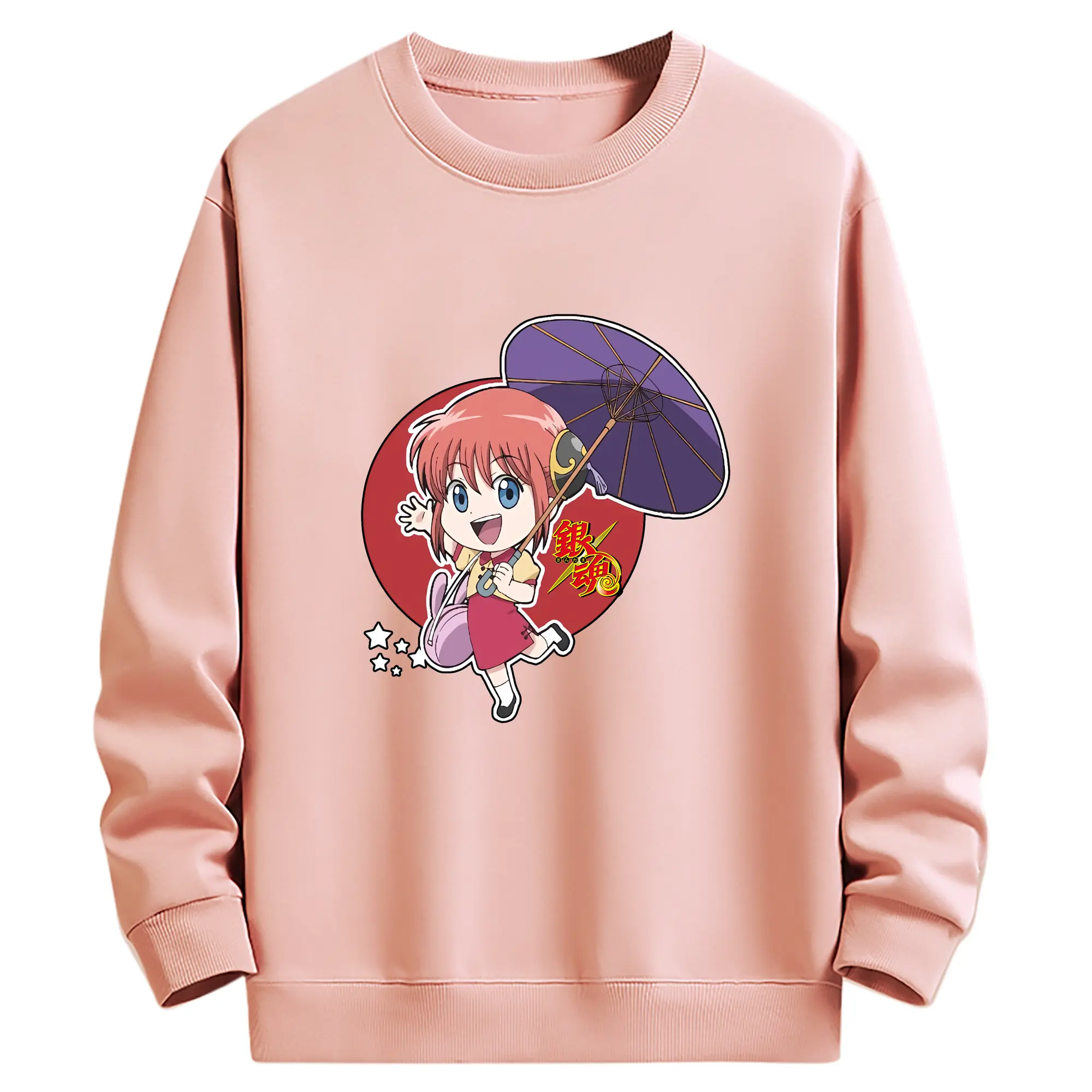 銀魂 グッズ 神楽 - 薄手 クルーネック スウェット 裏毛260g · ポリエステル 春秋向け カジュアル 男女兼用 · トレーナー デイリー スポーツ 散歩に最適