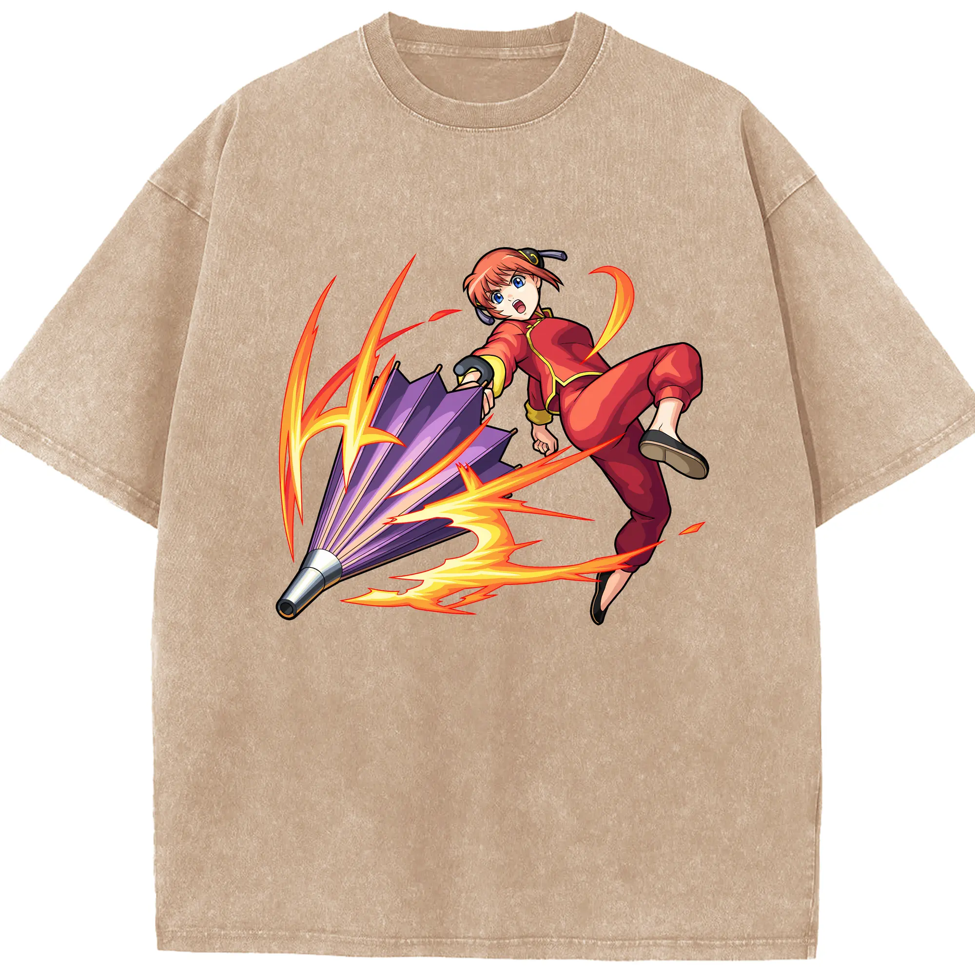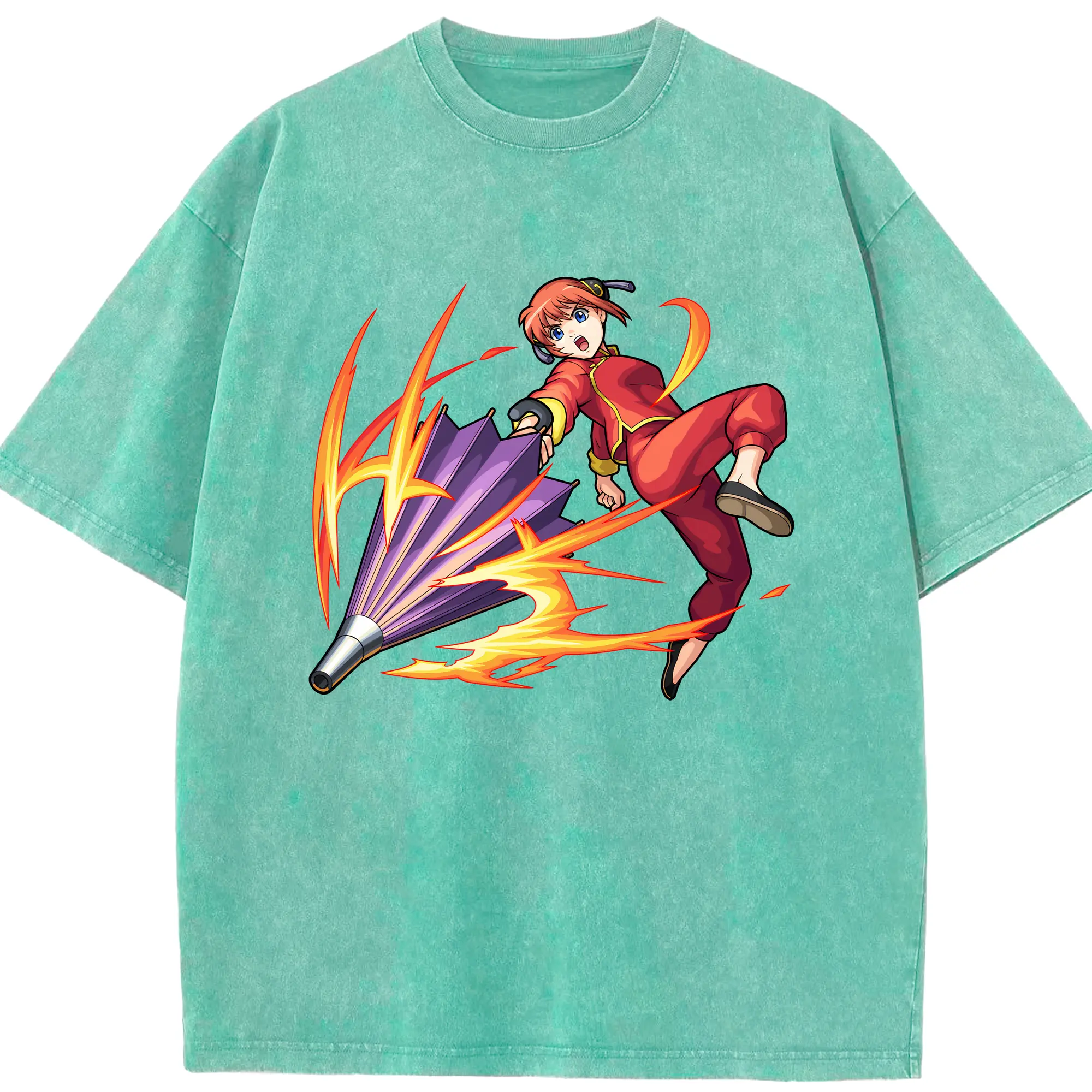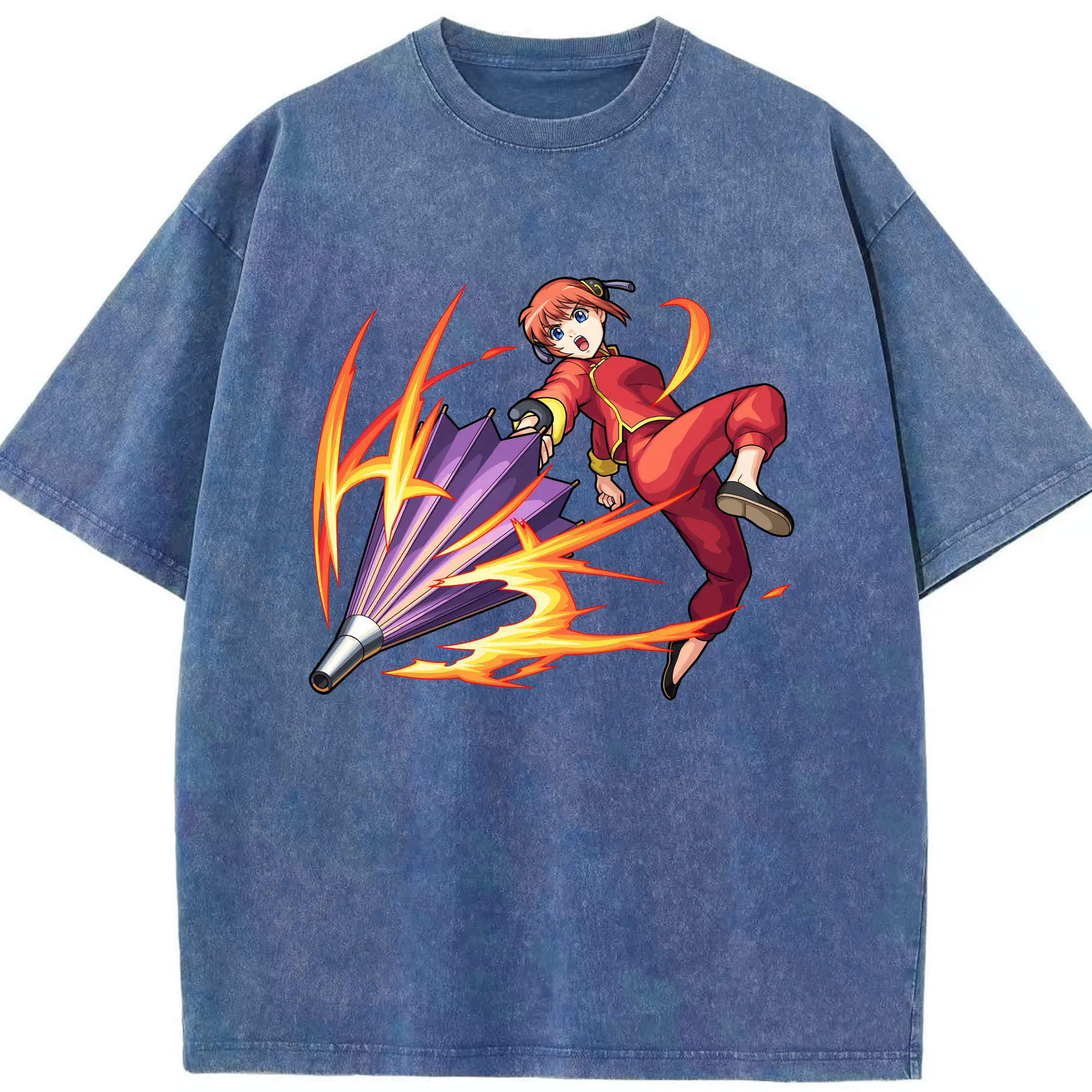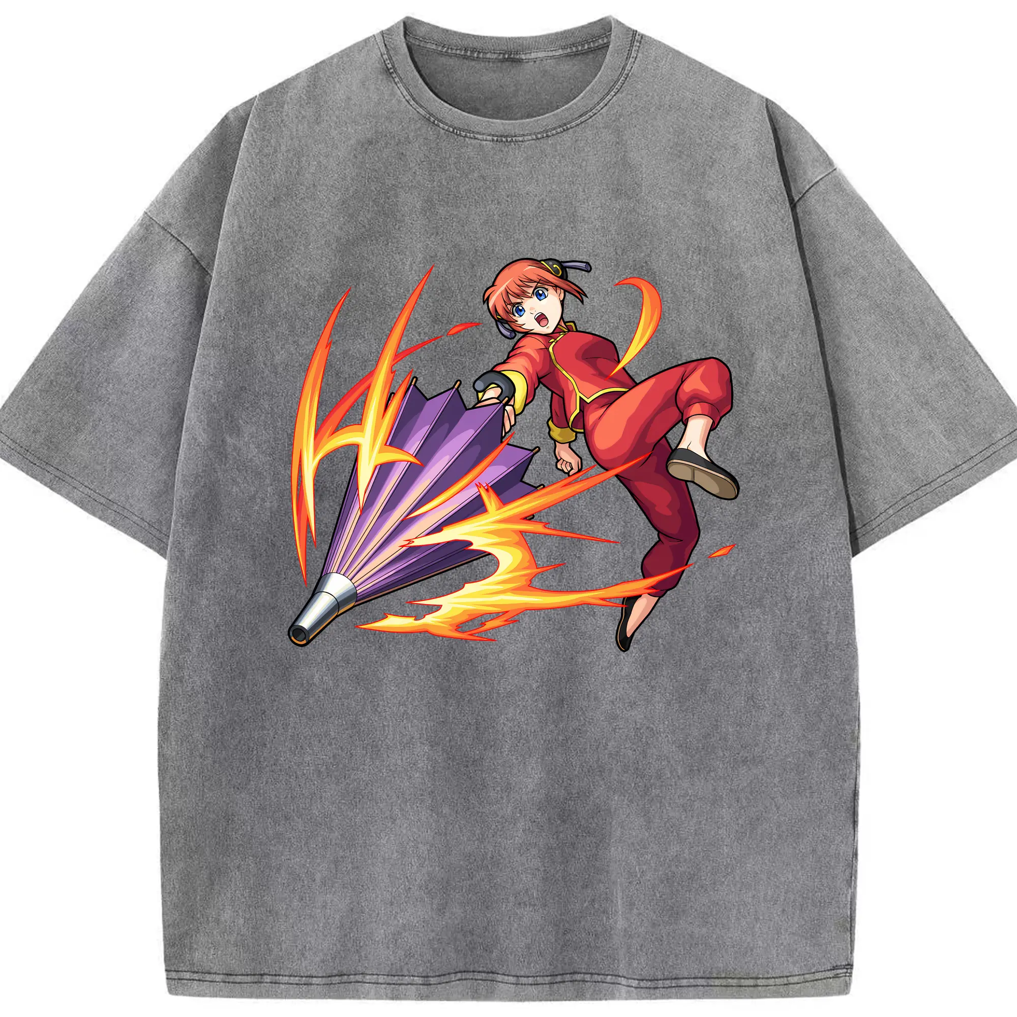銀魂 グッズ 神楽 - 綿100% ヴィンテージ風 半袖Tシャツ ・ 背面プリント ・ 柔らか肌触り ・ 通気性 快適 ・ スポーツ カジュアル 外出用