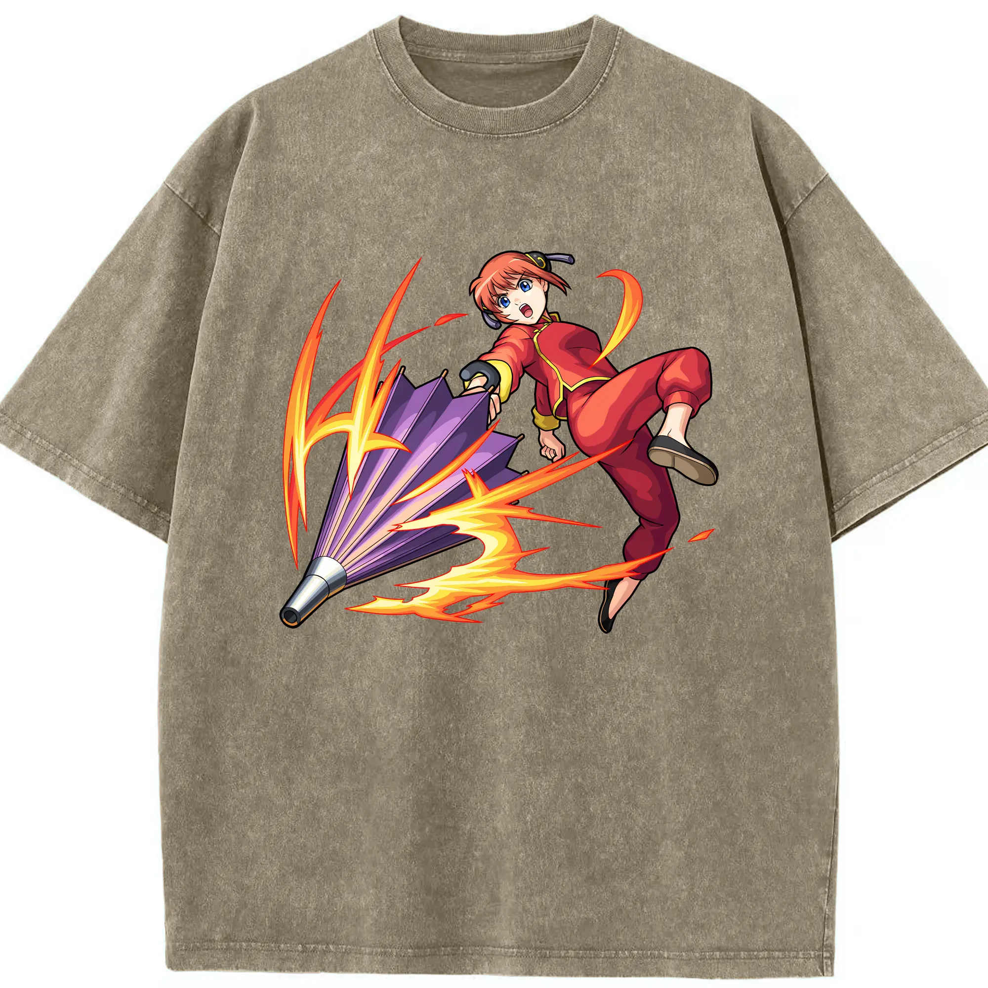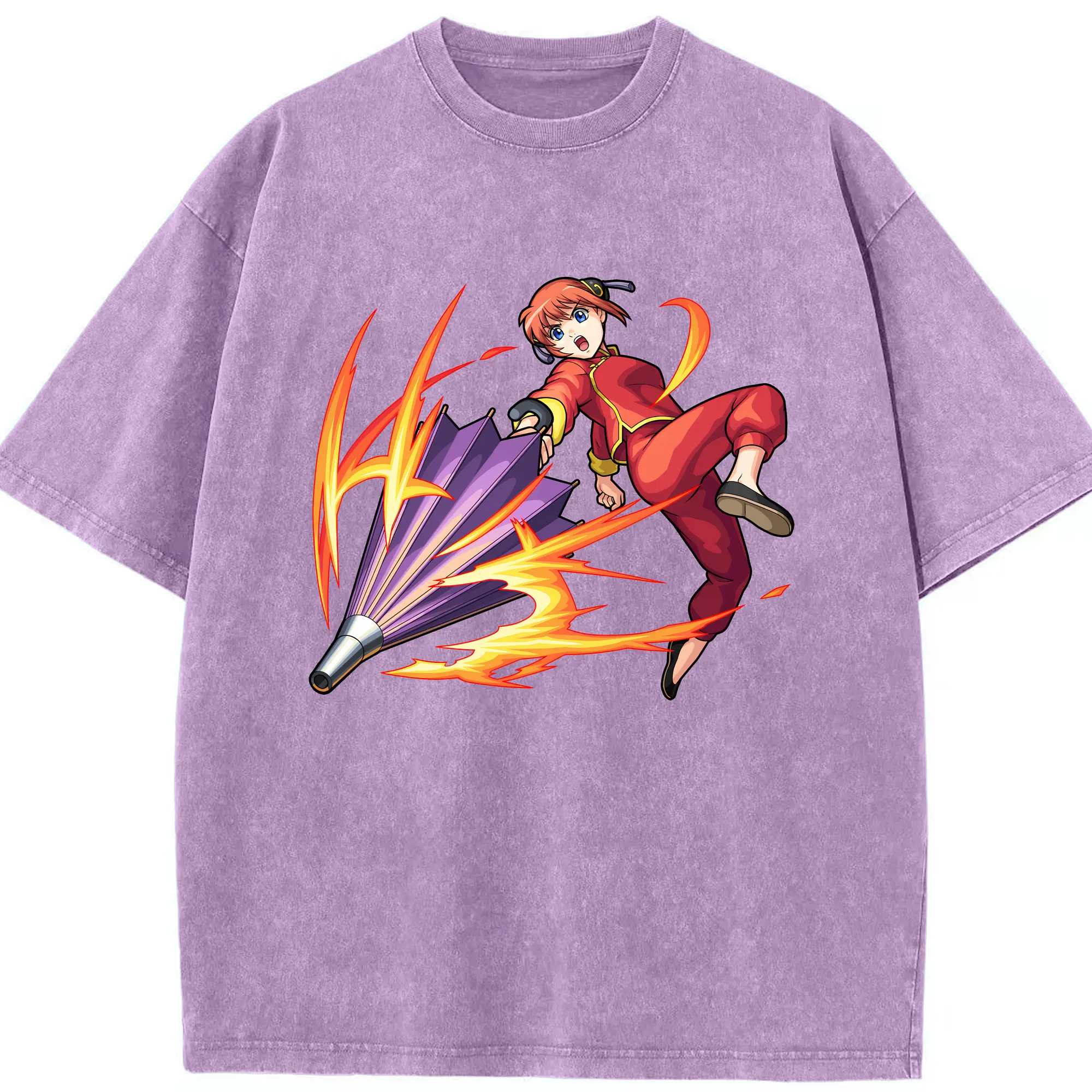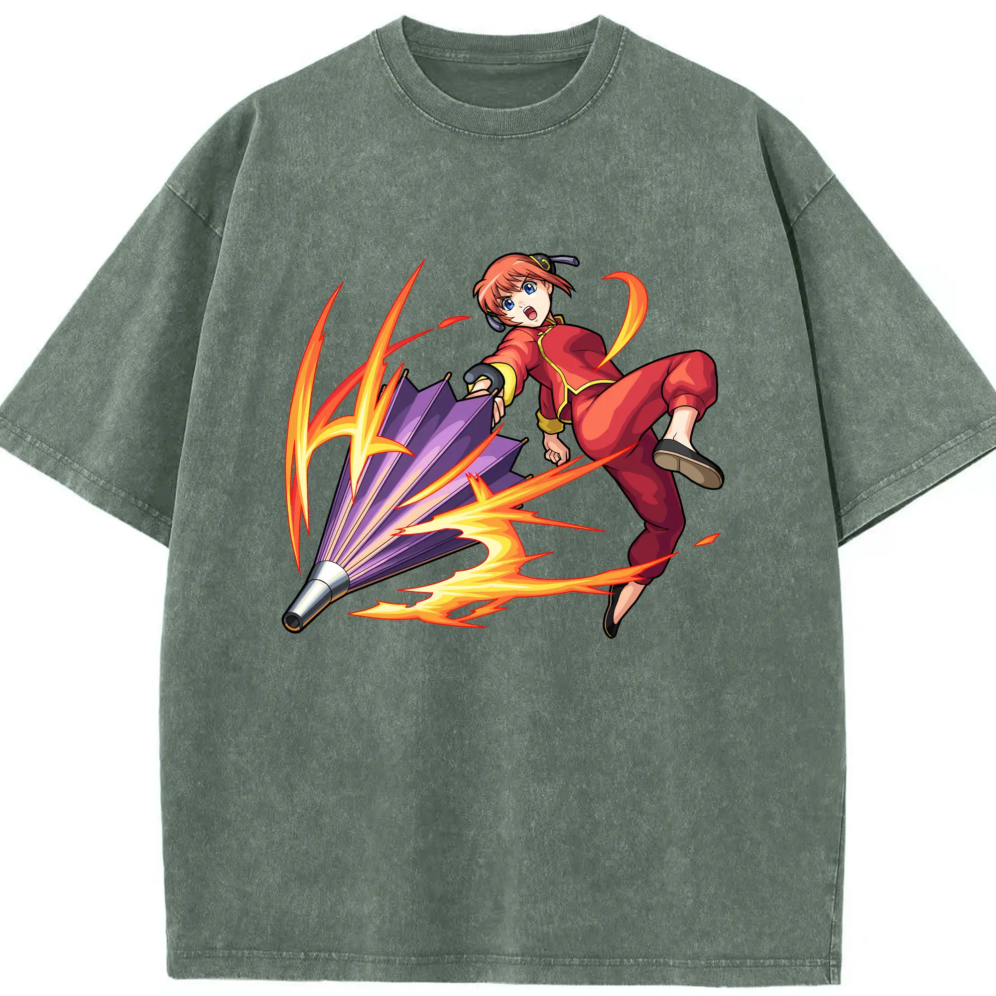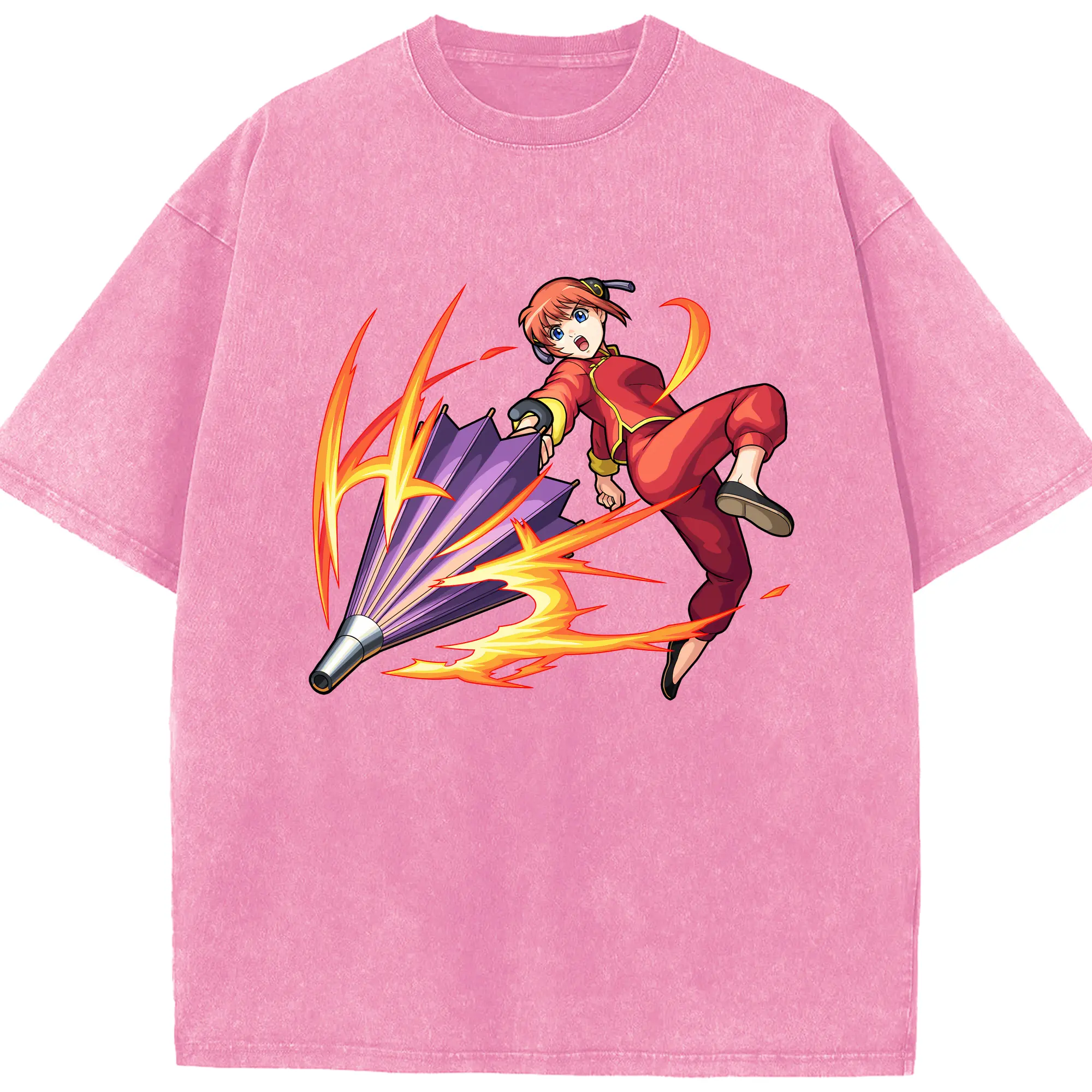銀魂 グッズ 神楽 - 綿100% ヴィンテージ風 半袖Tシャツ ・ 背面プリント ・ 柔らか肌触り ・ 通気性 快適 ・ スポーツ カジュアル 外出用