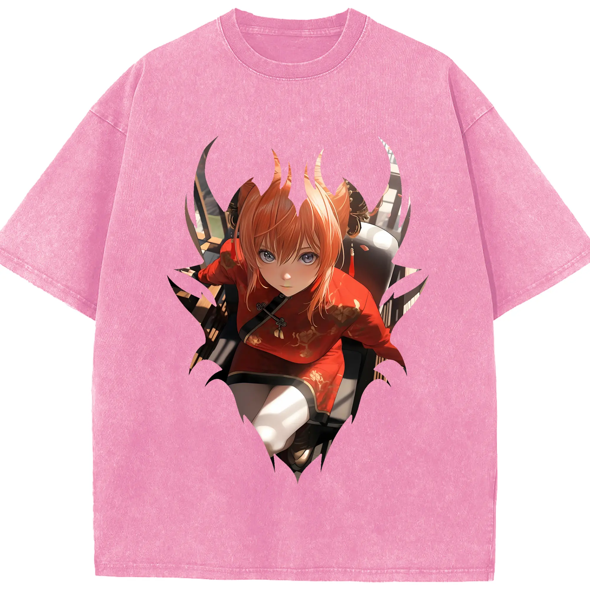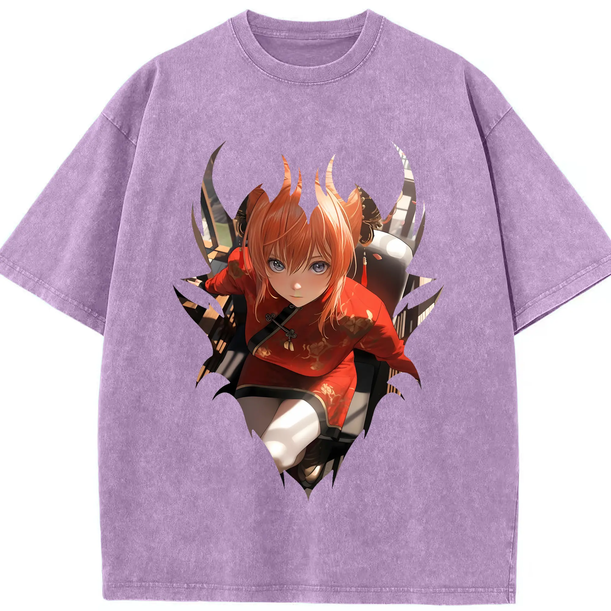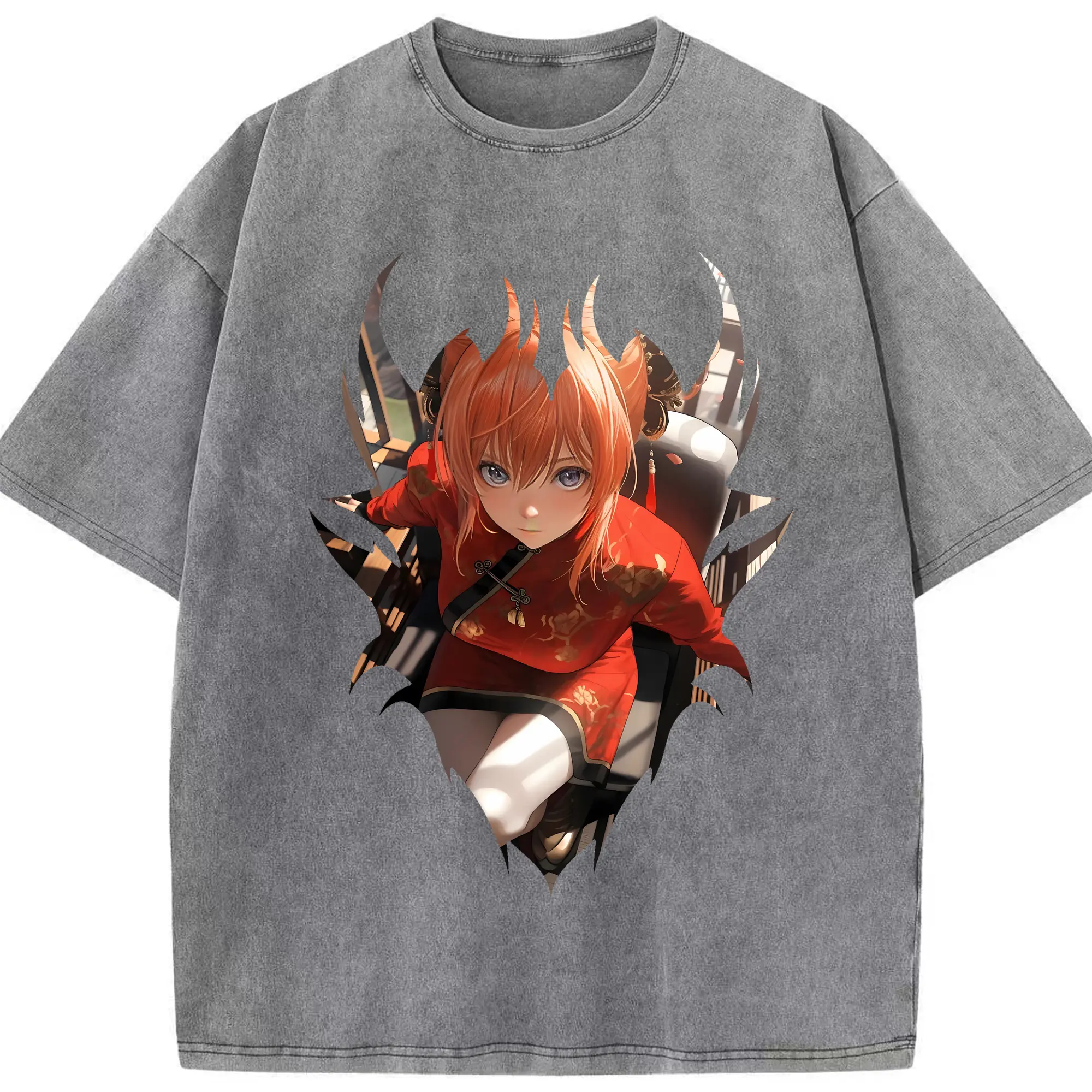 銀魂 グッズ 神楽 - 綿100% ヴィンテージ風 半袖Tシャツ ・ 背面プリント ・ 柔らか肌触り ・ 通気性 快適 ・ スポーツ カジュアル 外出用