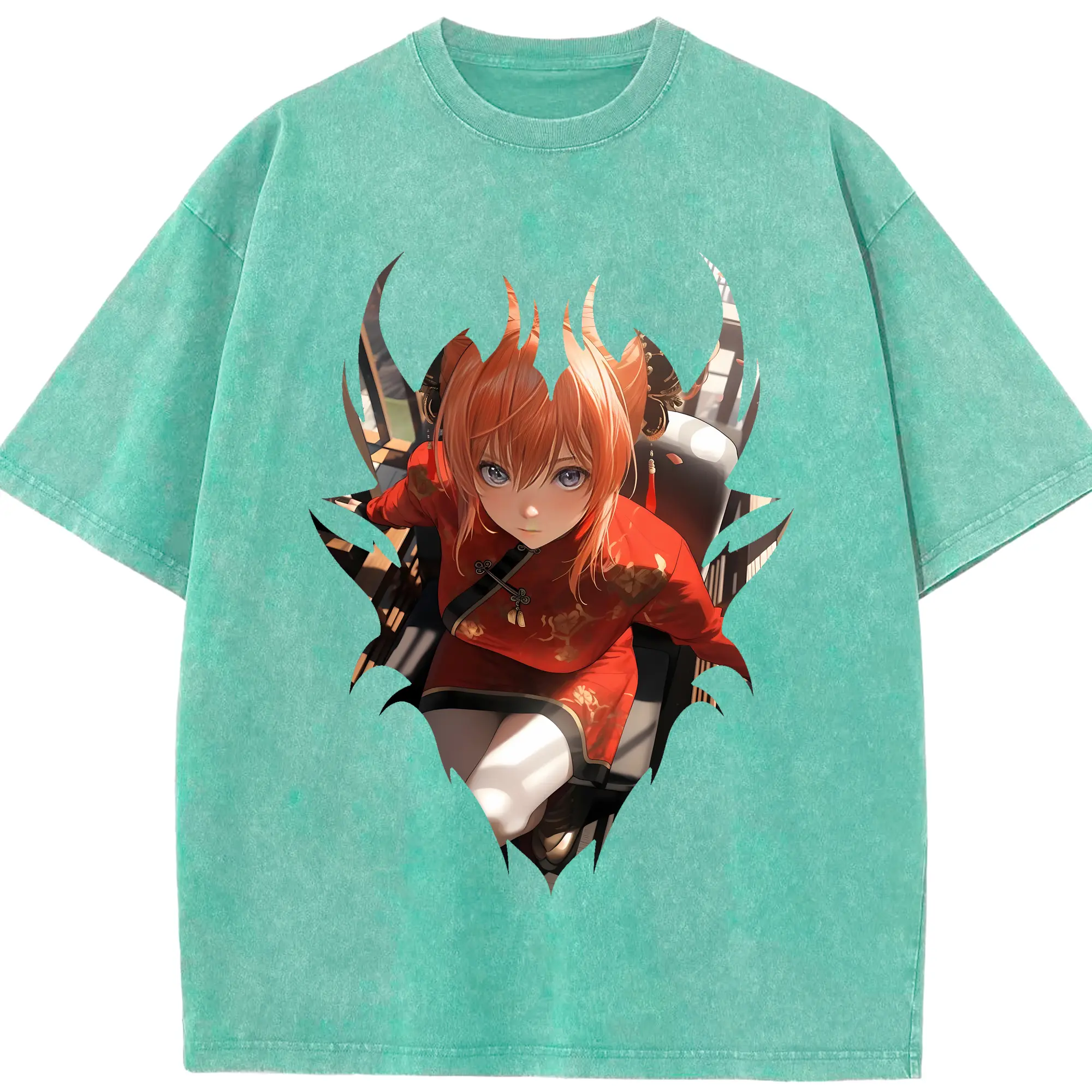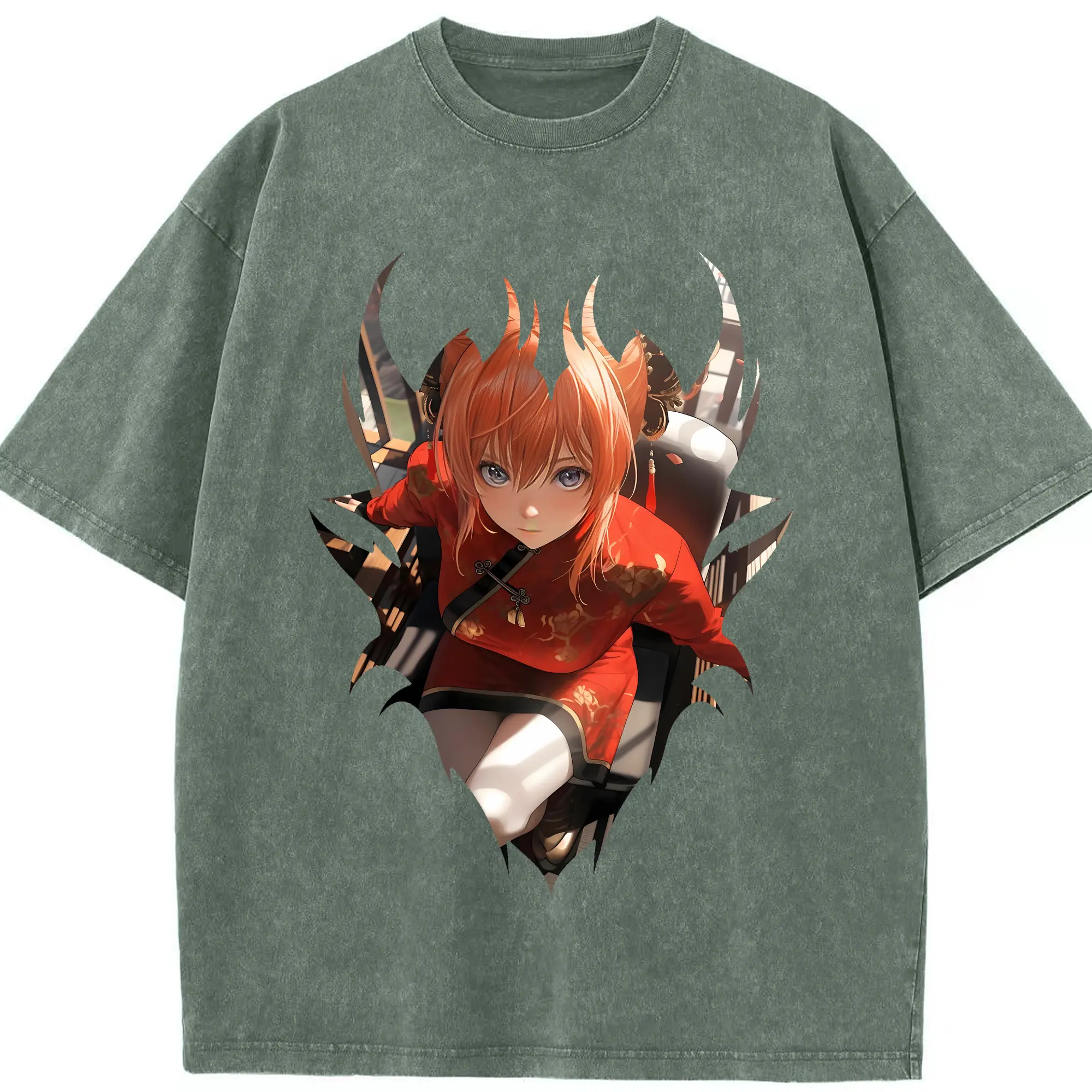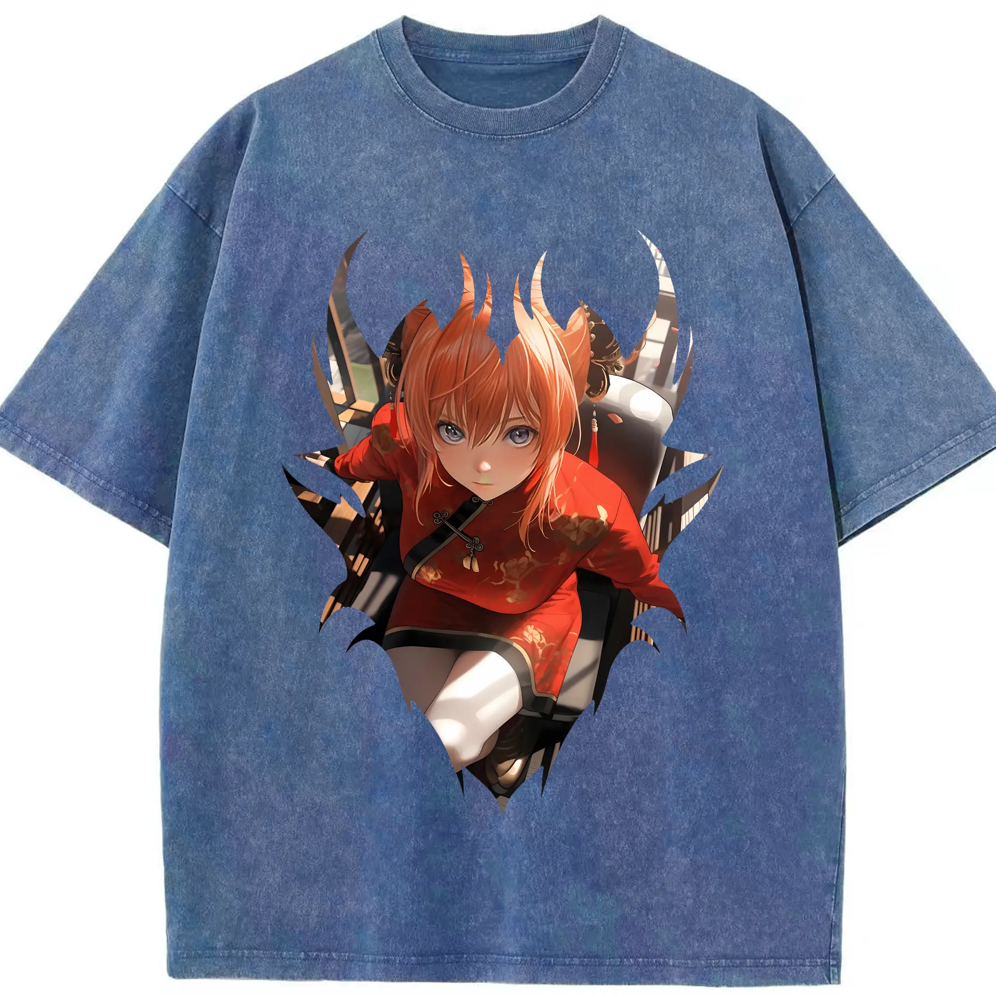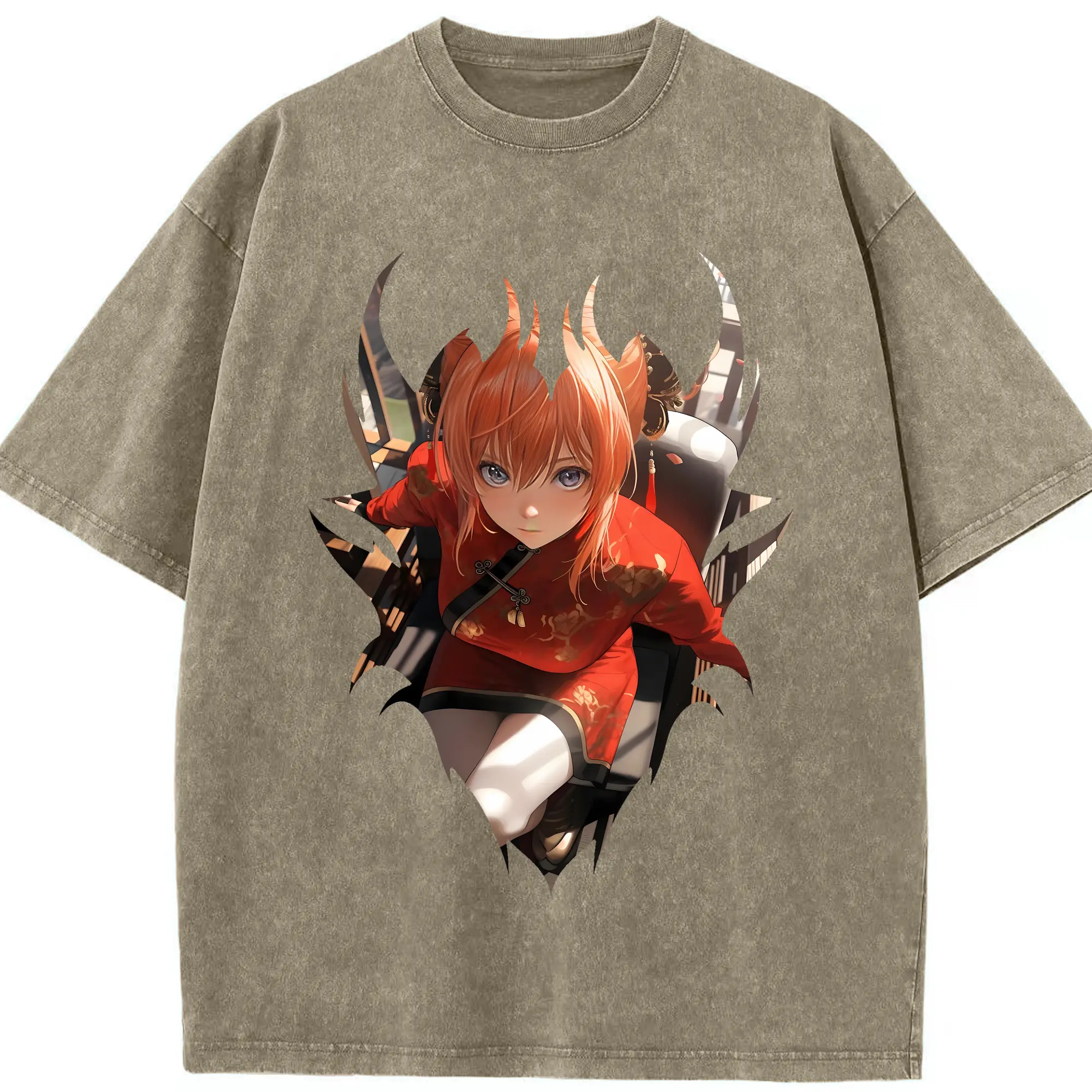 銀魂 グッズ 神楽 - 綿100% ヴィンテージ風 半袖Tシャツ ・ 背面プリント ・ 柔らか肌触り ・ 通気性 快適 ・ スポーツ カジュアル 外出用