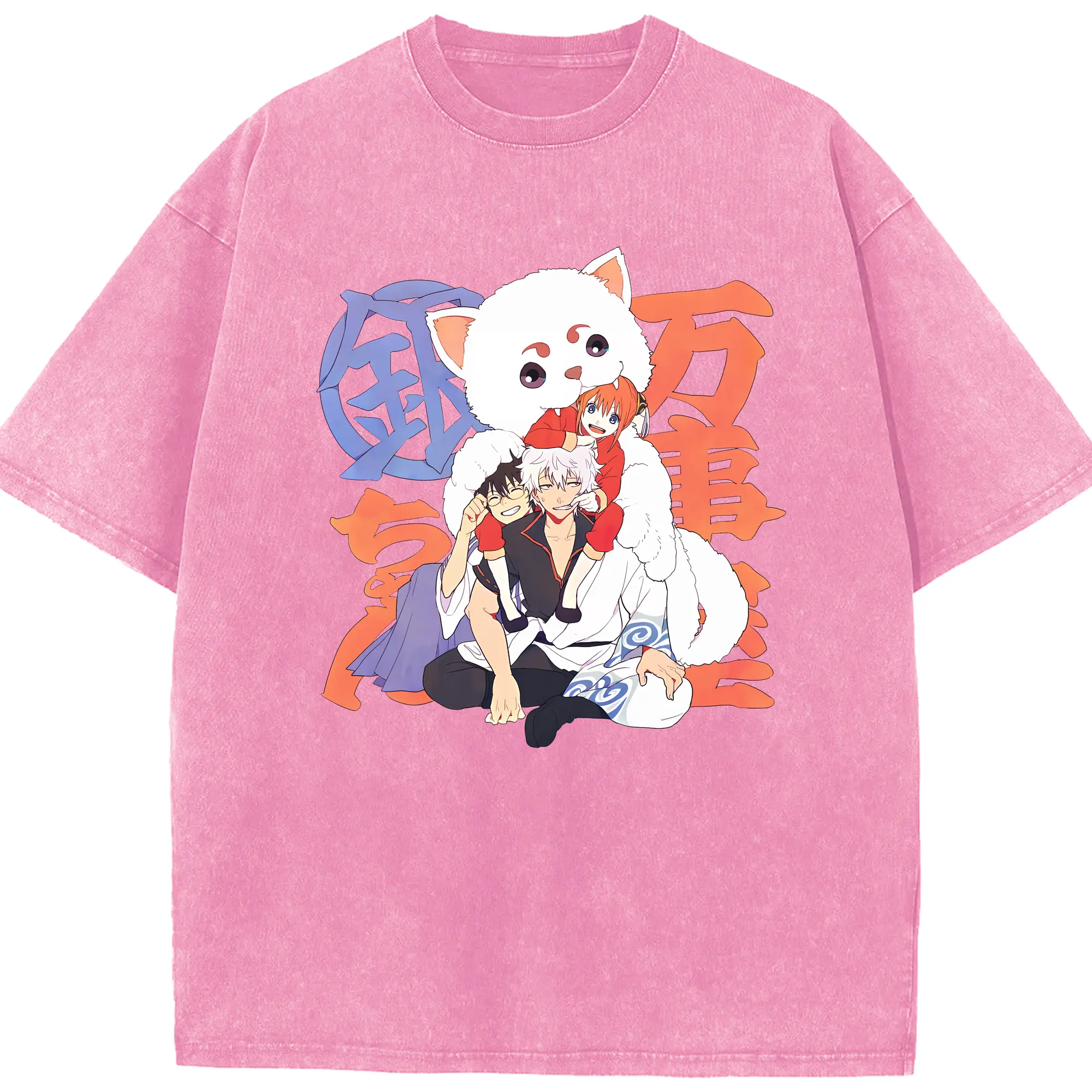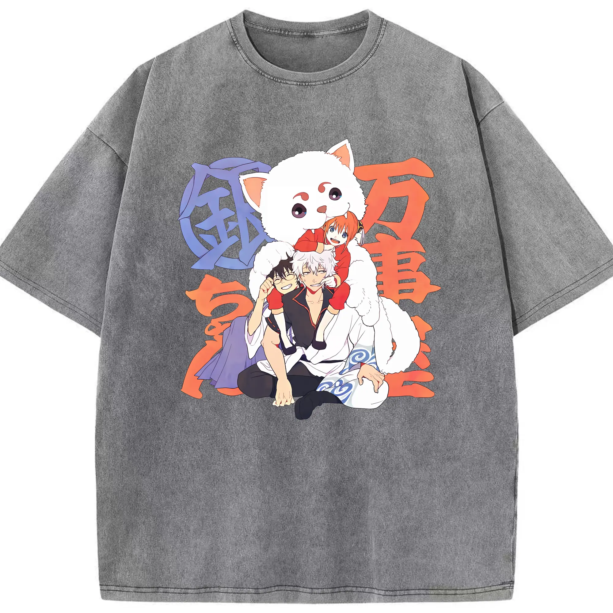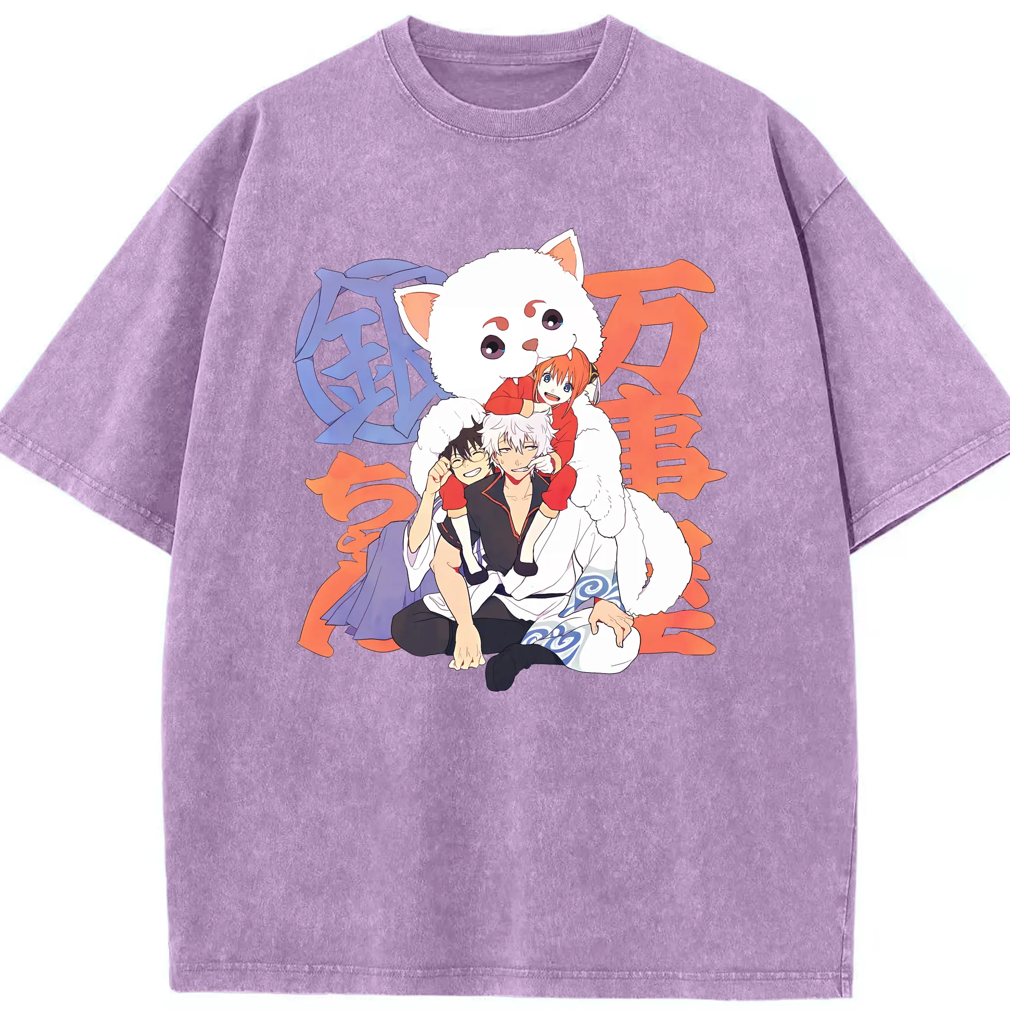 銀魂 グッズ 神楽 - 綿100% ヴィンテージ風 半袖Tシャツ ・ 背面プリント ・ 柔らか肌触り ・ 通気性 快適 ・ スポーツ カジュアル 外出用