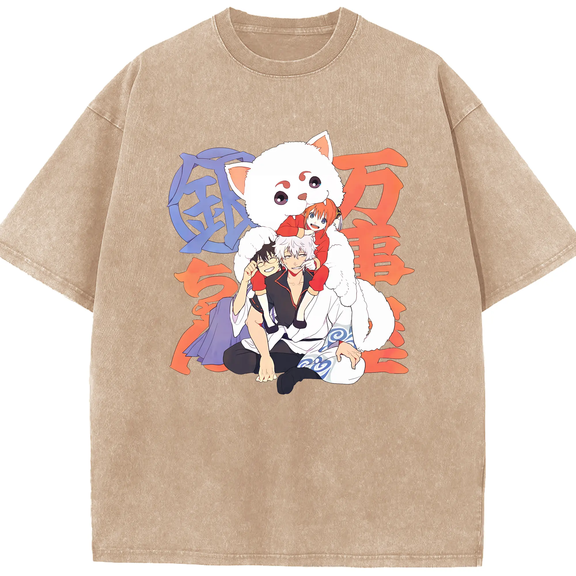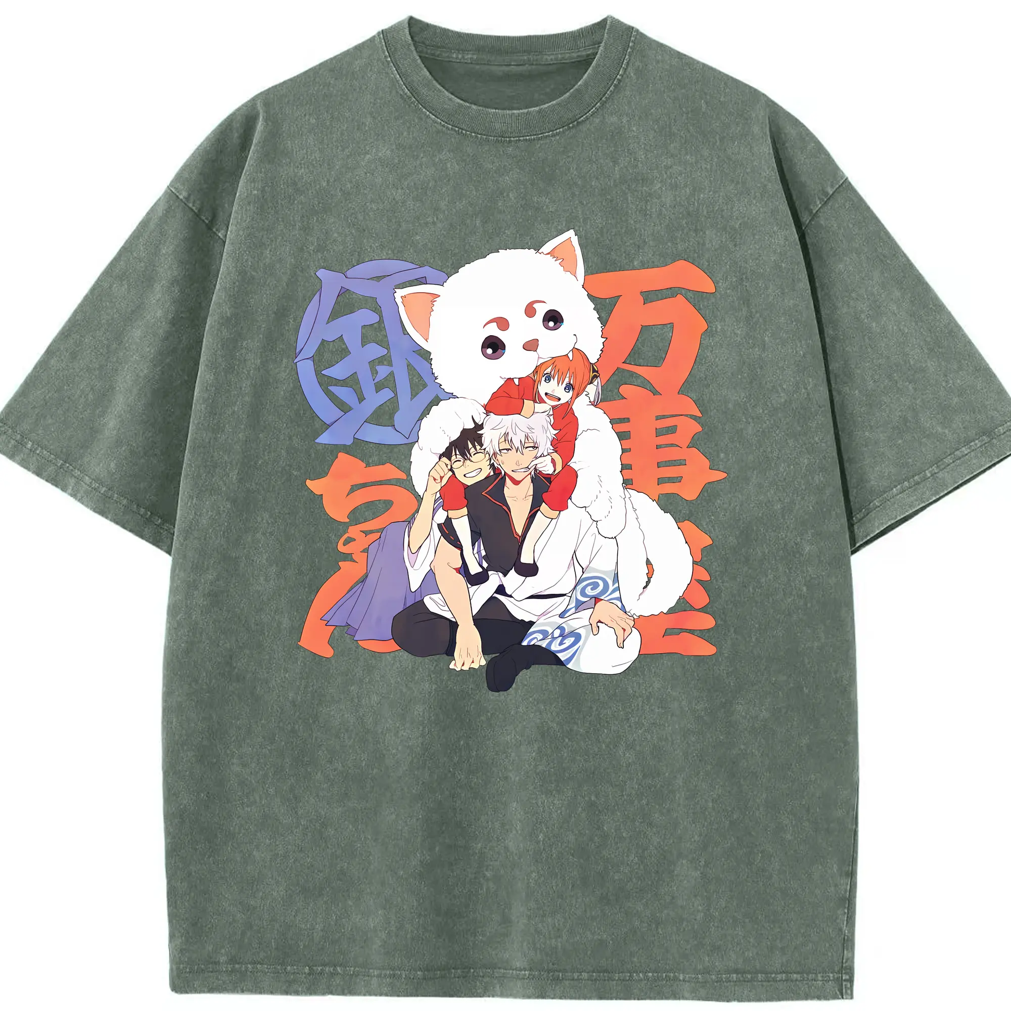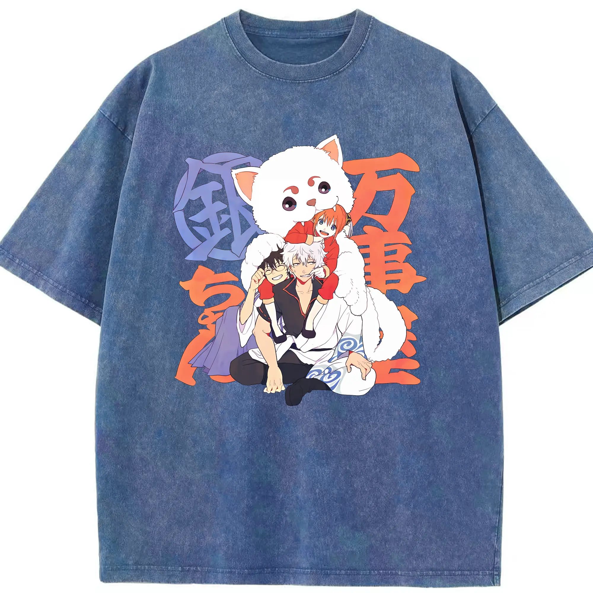 銀魂 グッズ 神楽 - 綿100% ヴィンテージ風 半袖Tシャツ ・ 背面プリント ・ 柔らか肌触り ・ 通気性 快適 ・ スポーツ カジュアル 外出用
