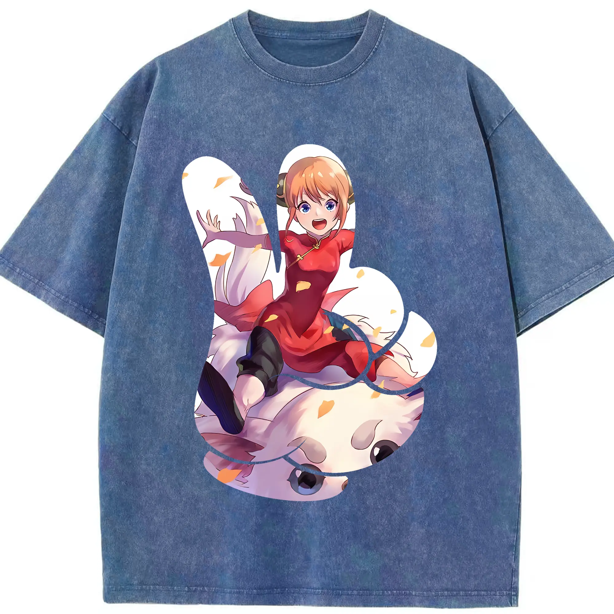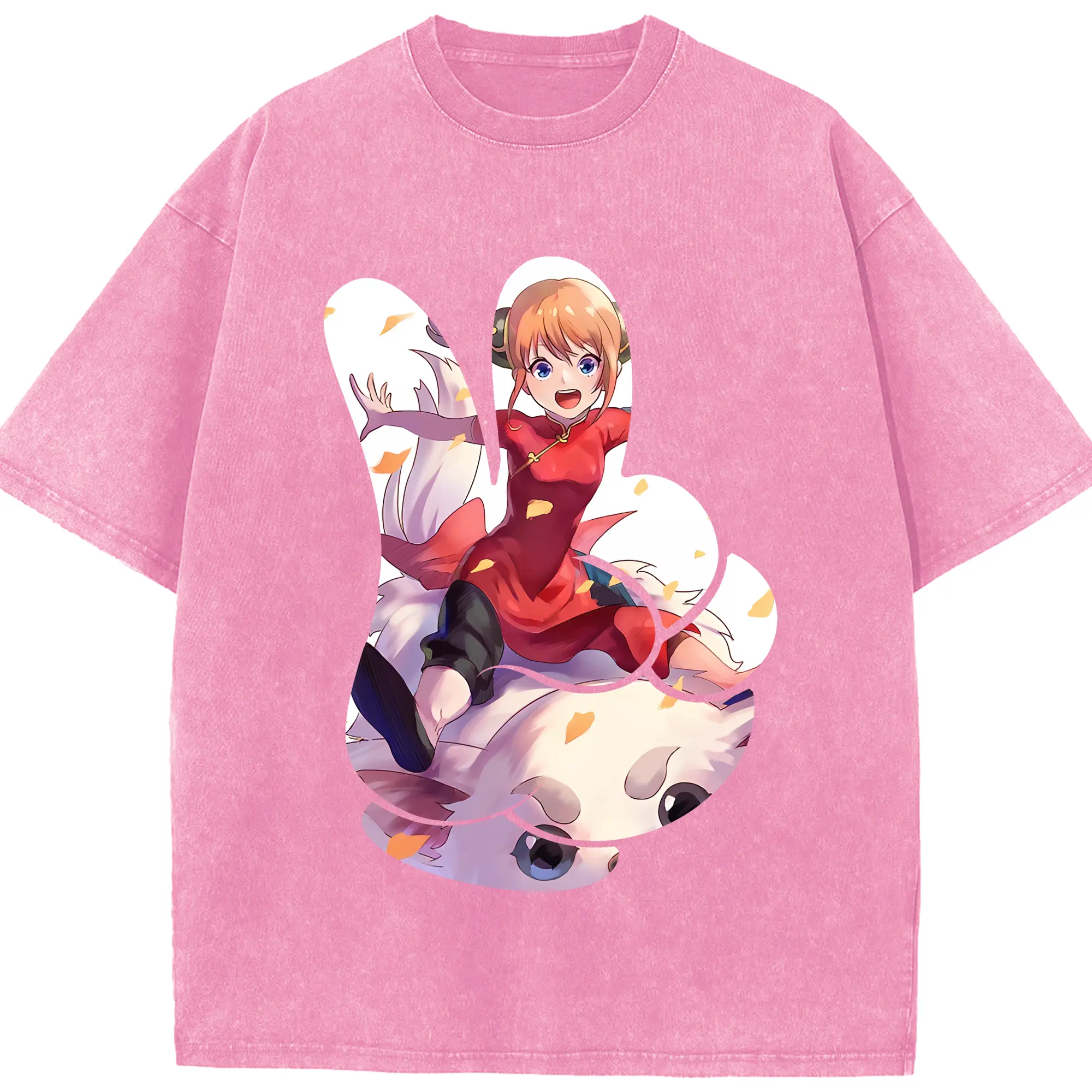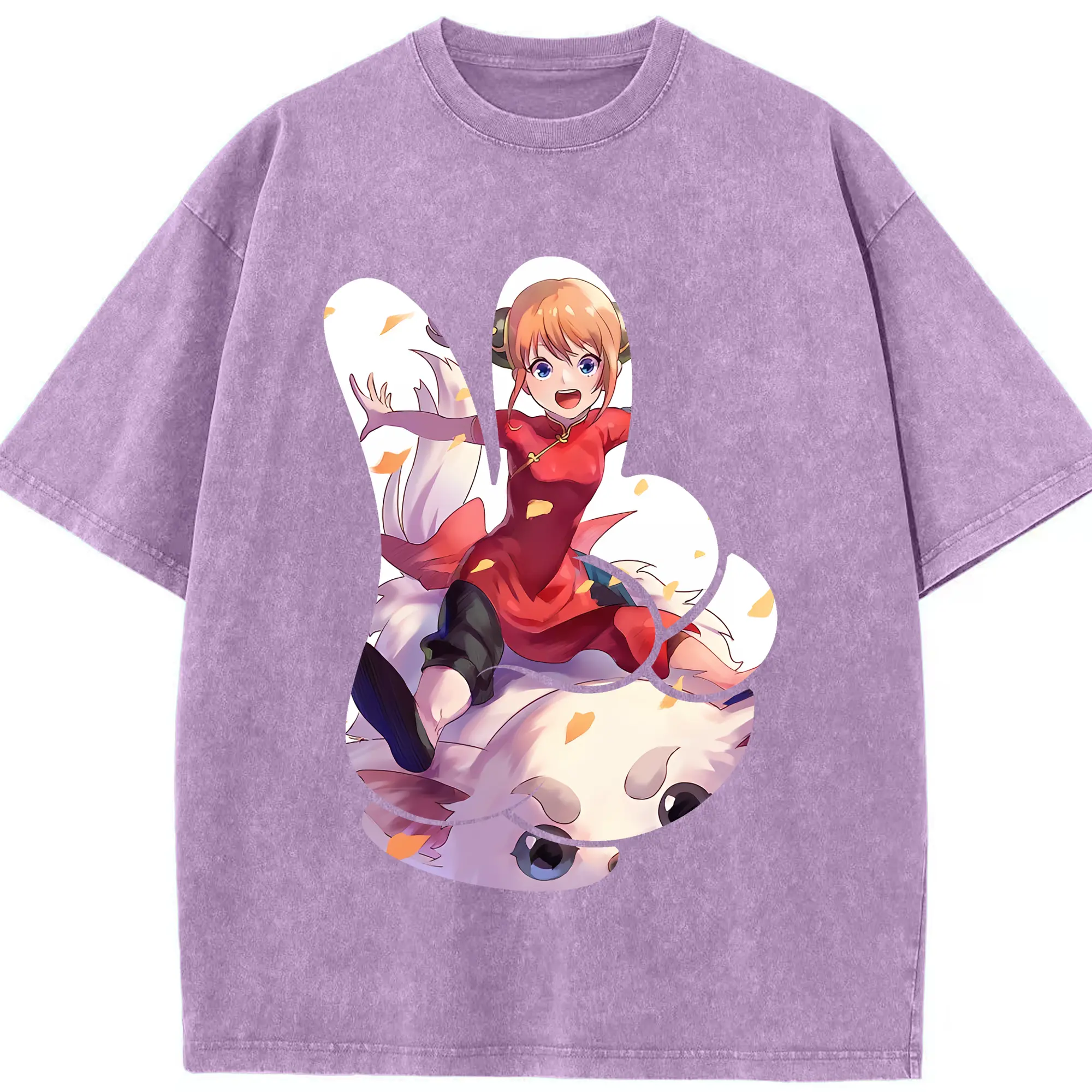 銀魂 グッズ 神楽 - 綿100% ヴィンテージ風 半袖Tシャツ ・ 背面プリント ・ 柔らか肌触り ・ 通気性 快適 ・ スポーツ カジュアル 外出用