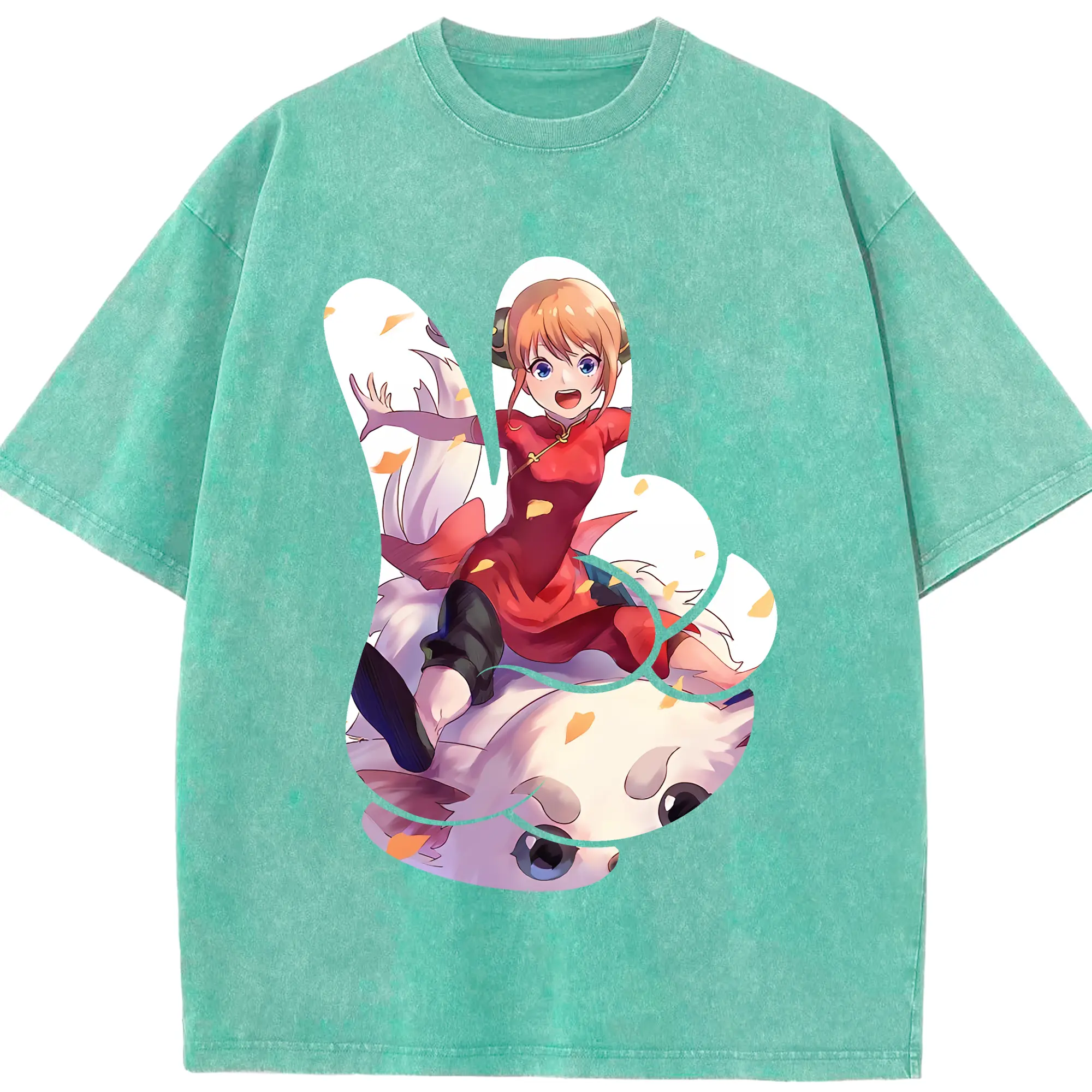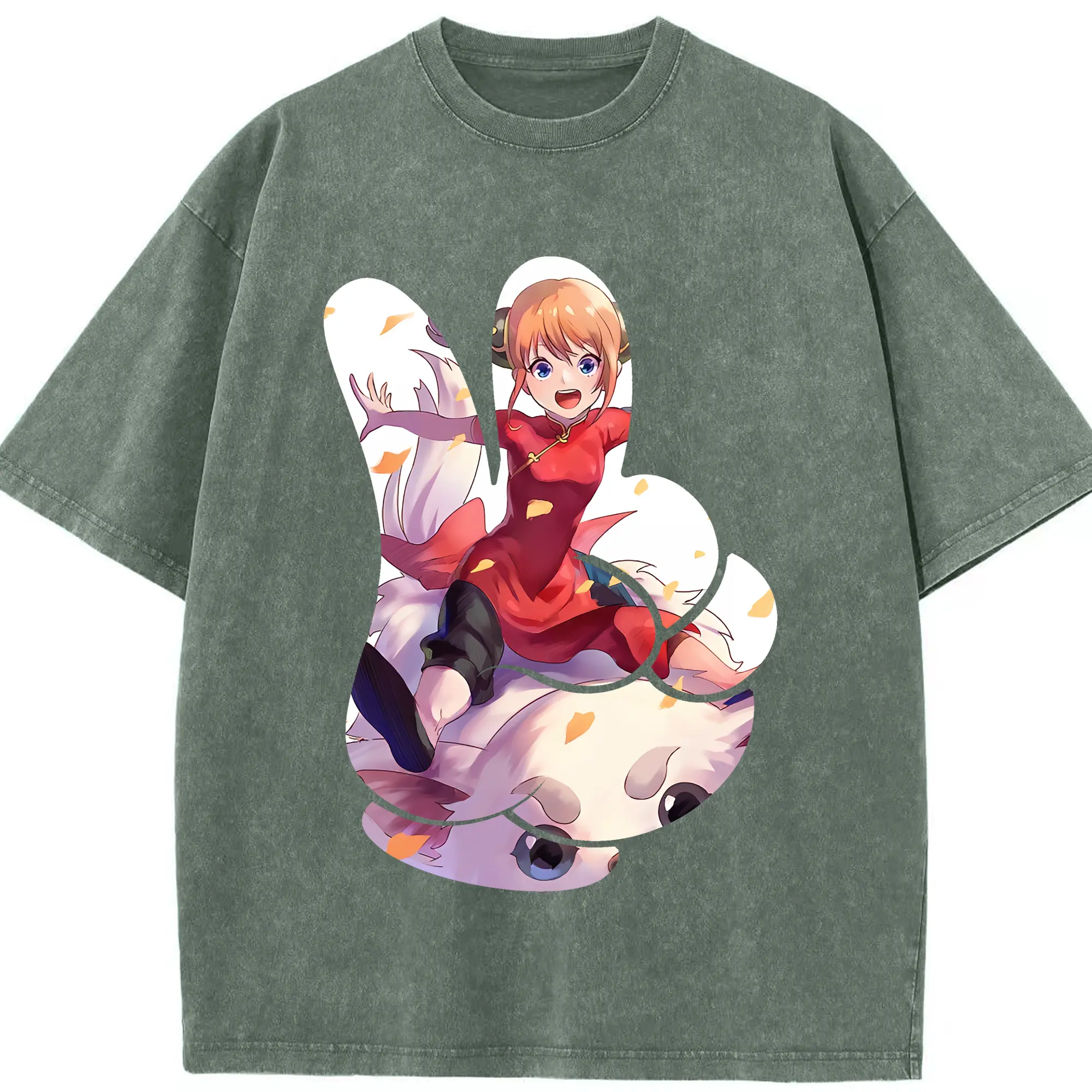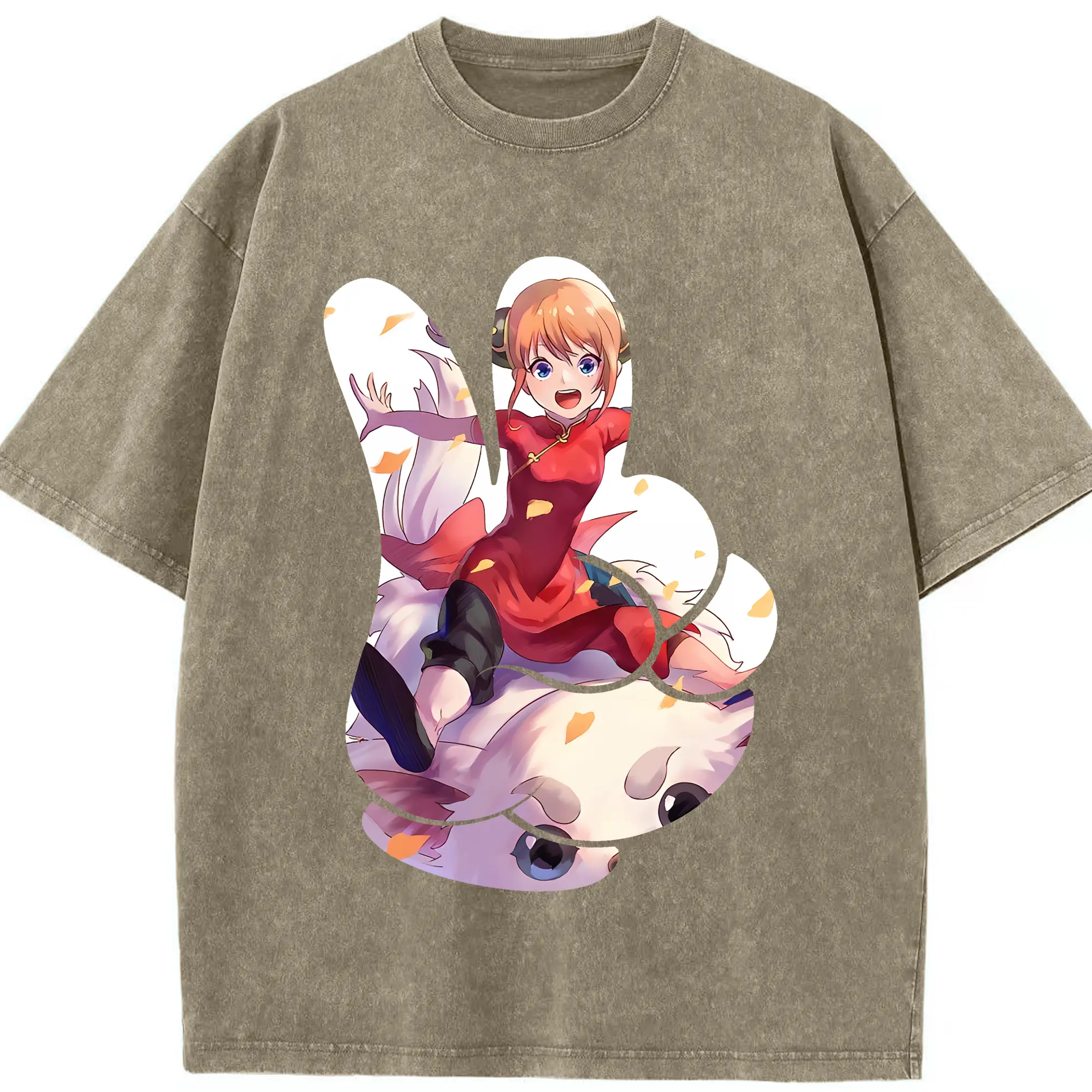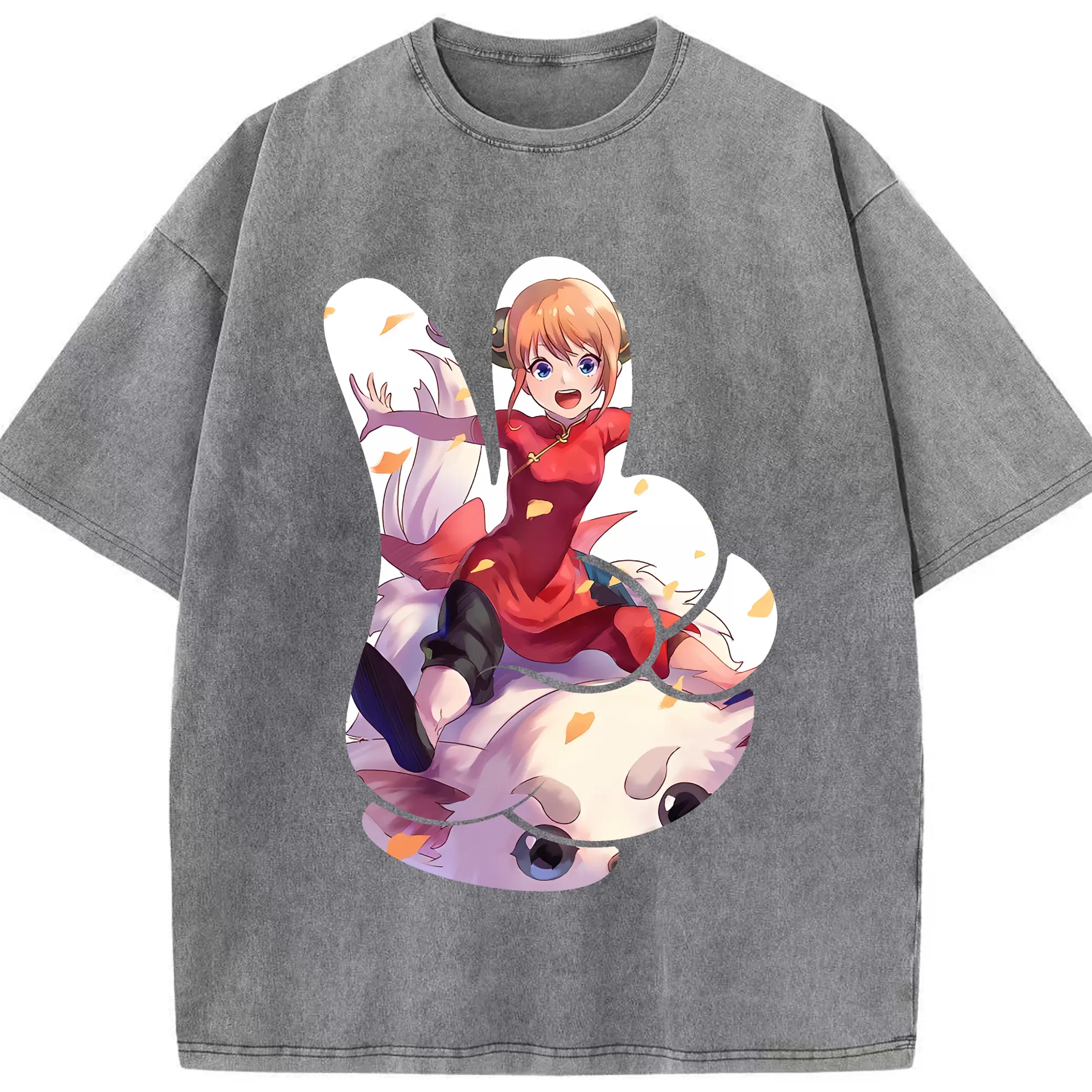 銀魂 グッズ 神楽 - 綿100% ヴィンテージ風 半袖Tシャツ ・ 背面プリント ・ 柔らか肌触り ・ 通気性 快適 ・ スポーツ カジュアル 外出用