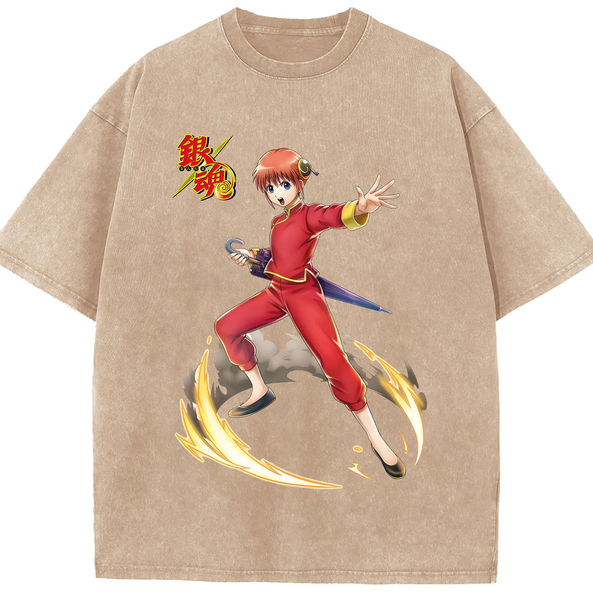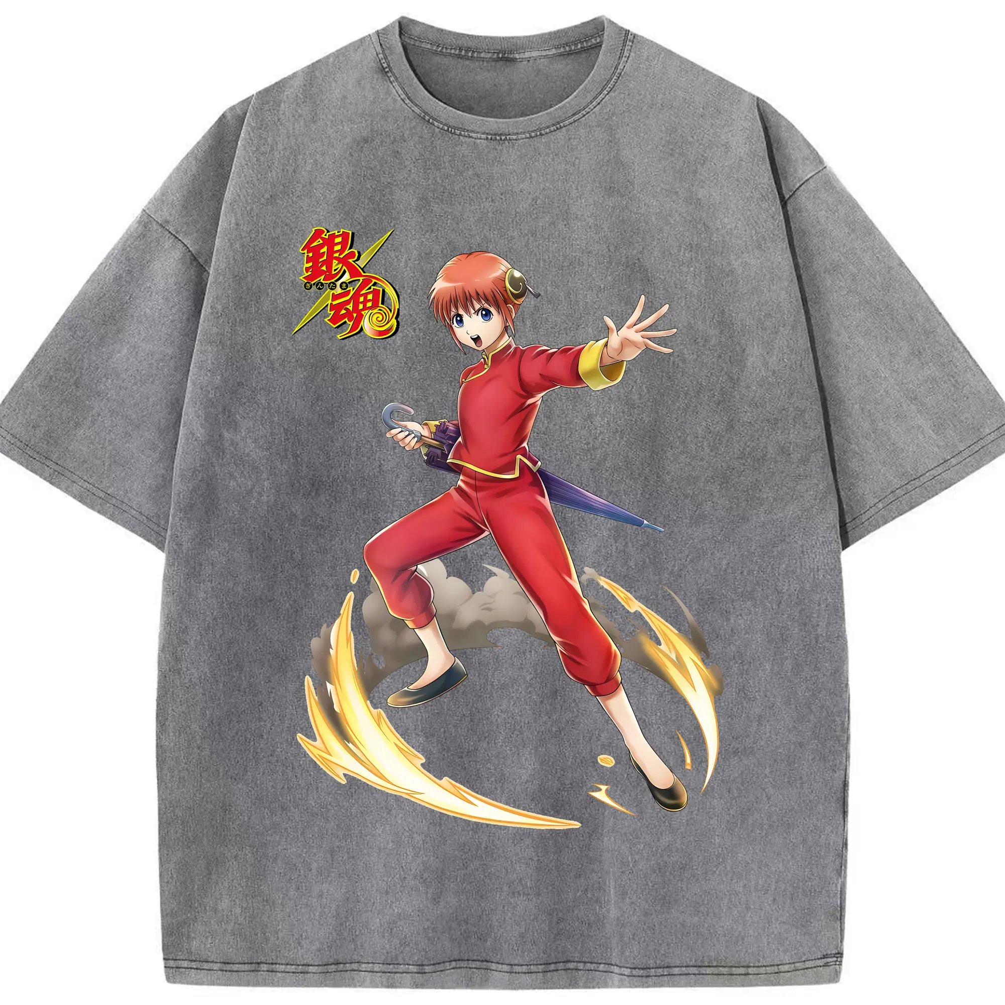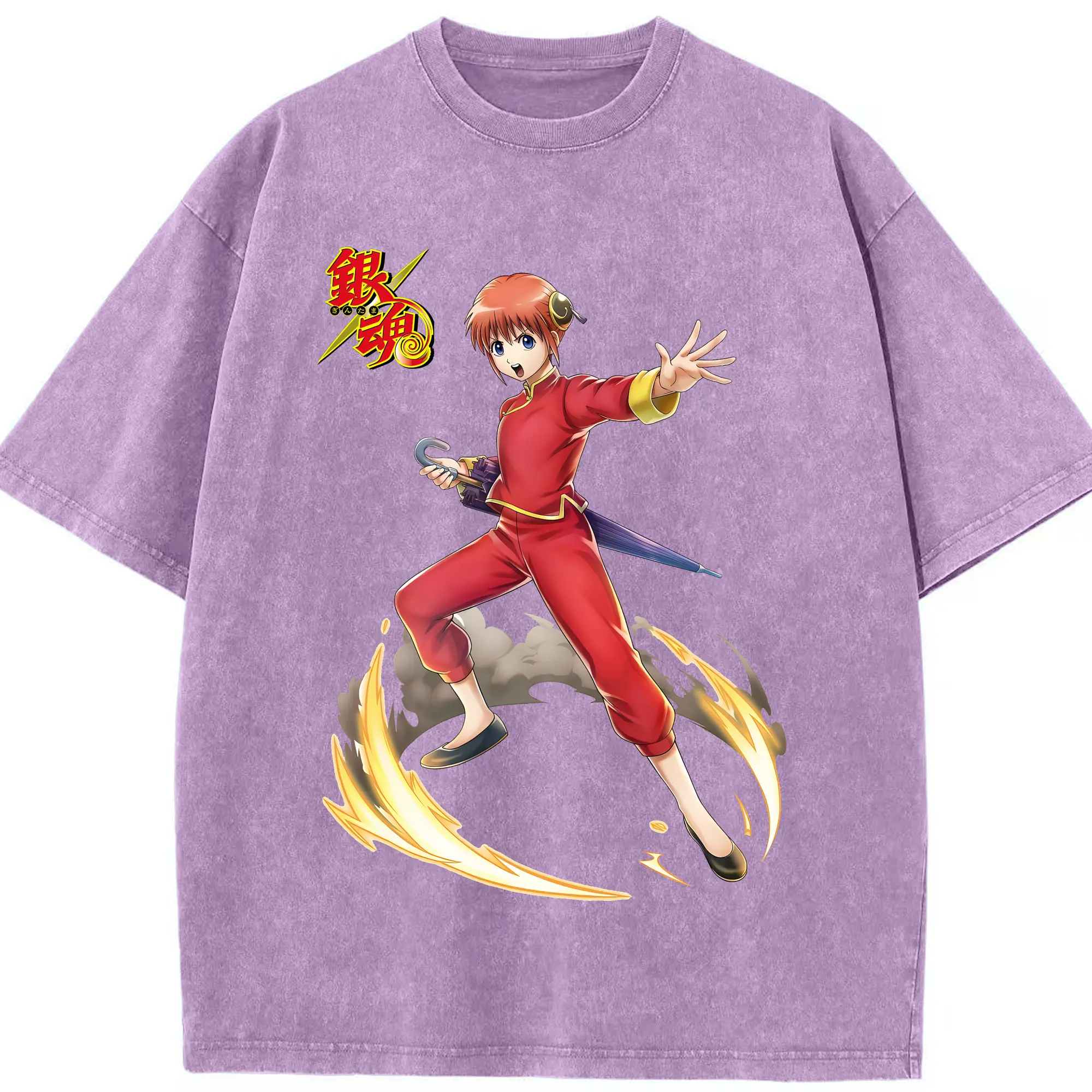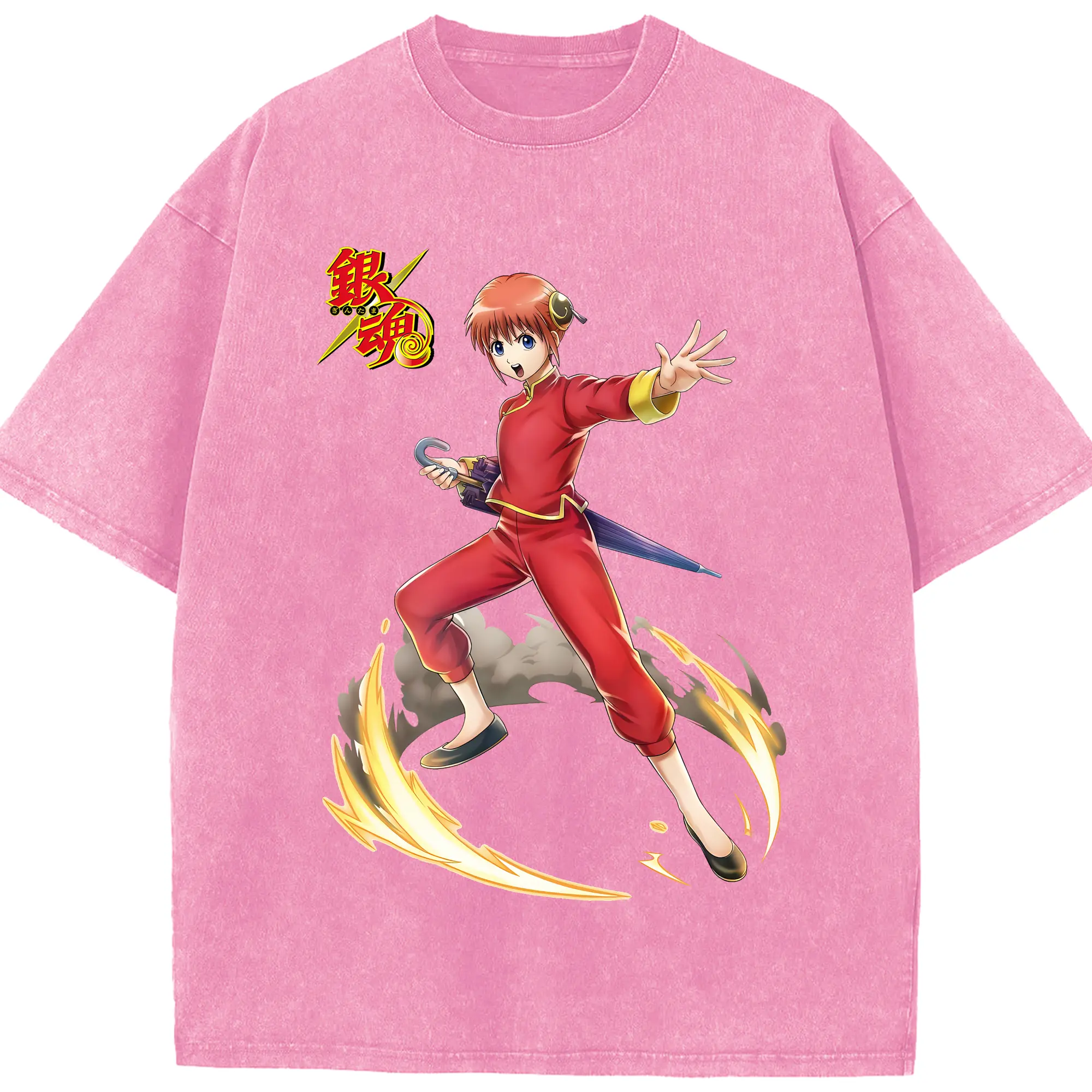 銀魂 グッズ 神楽 - 綿100% ヴィンテージ風 半袖Tシャツ ・ 背面プリント ・ 柔らか肌触り ・ 通気性 快適 ・ スポーツ カジュアル 外出用