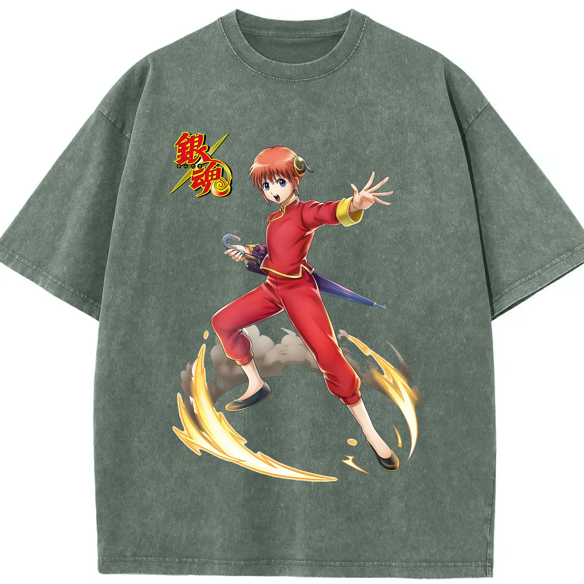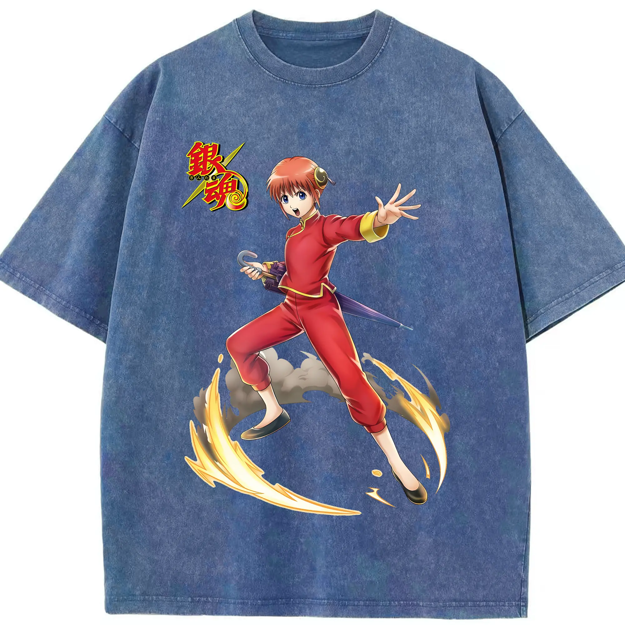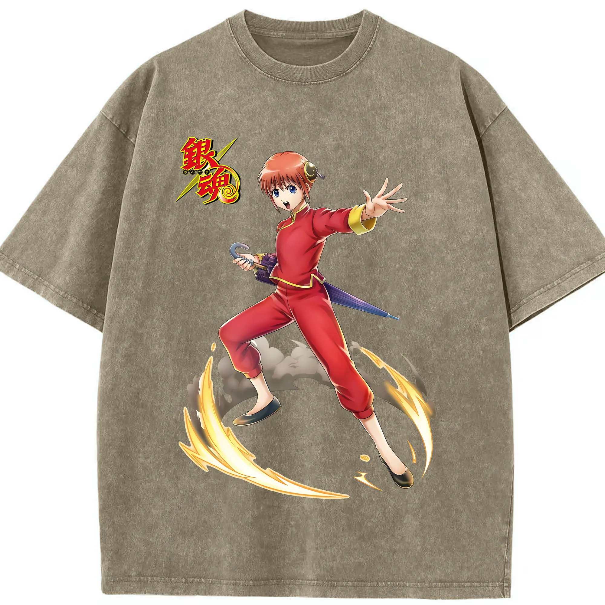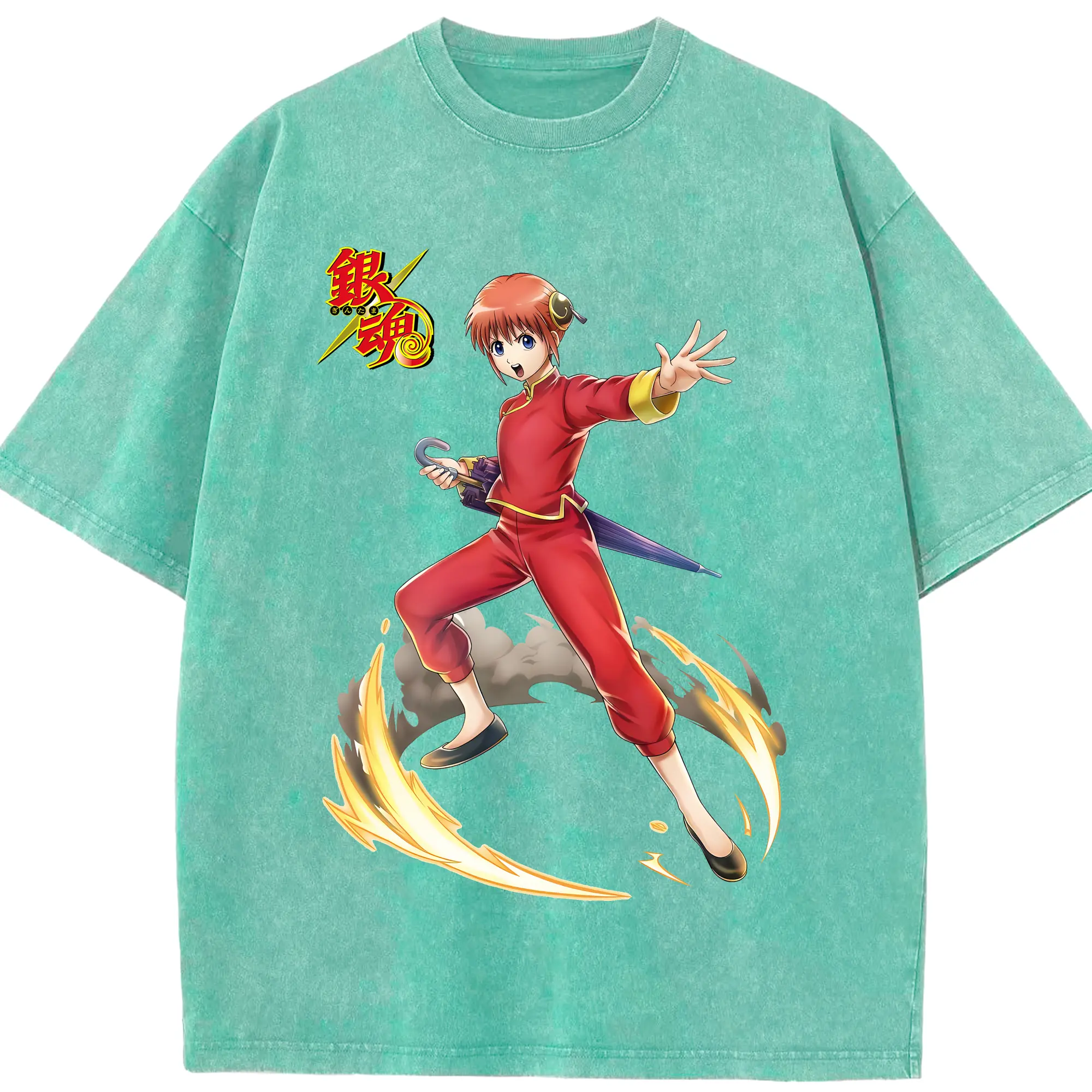 銀魂 グッズ 神楽 - 綿100% ヴィンテージ風 半袖Tシャツ ・ 背面プリント ・ 柔らか肌触り ・ 通気性 快適 ・ スポーツ カジュアル 外出用
