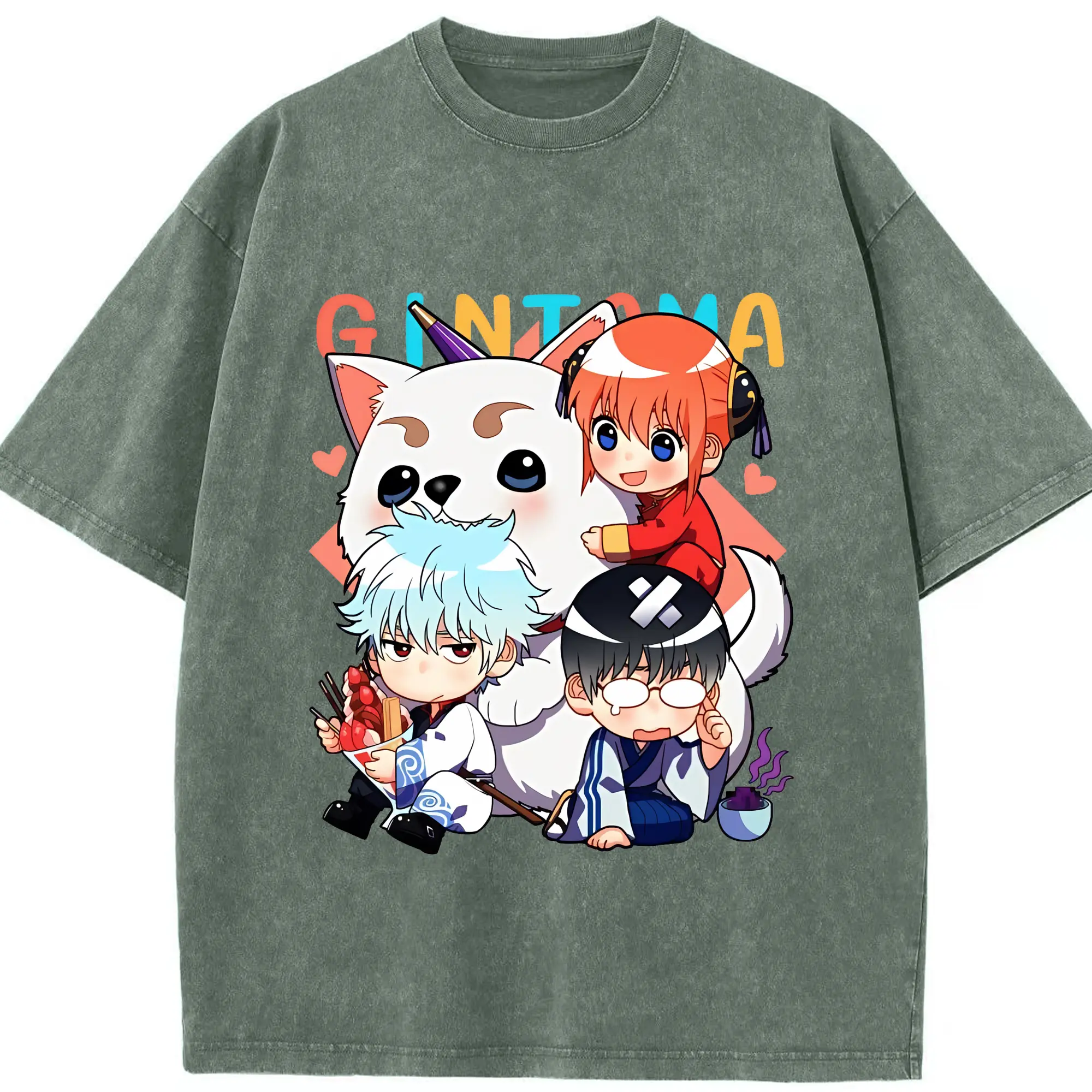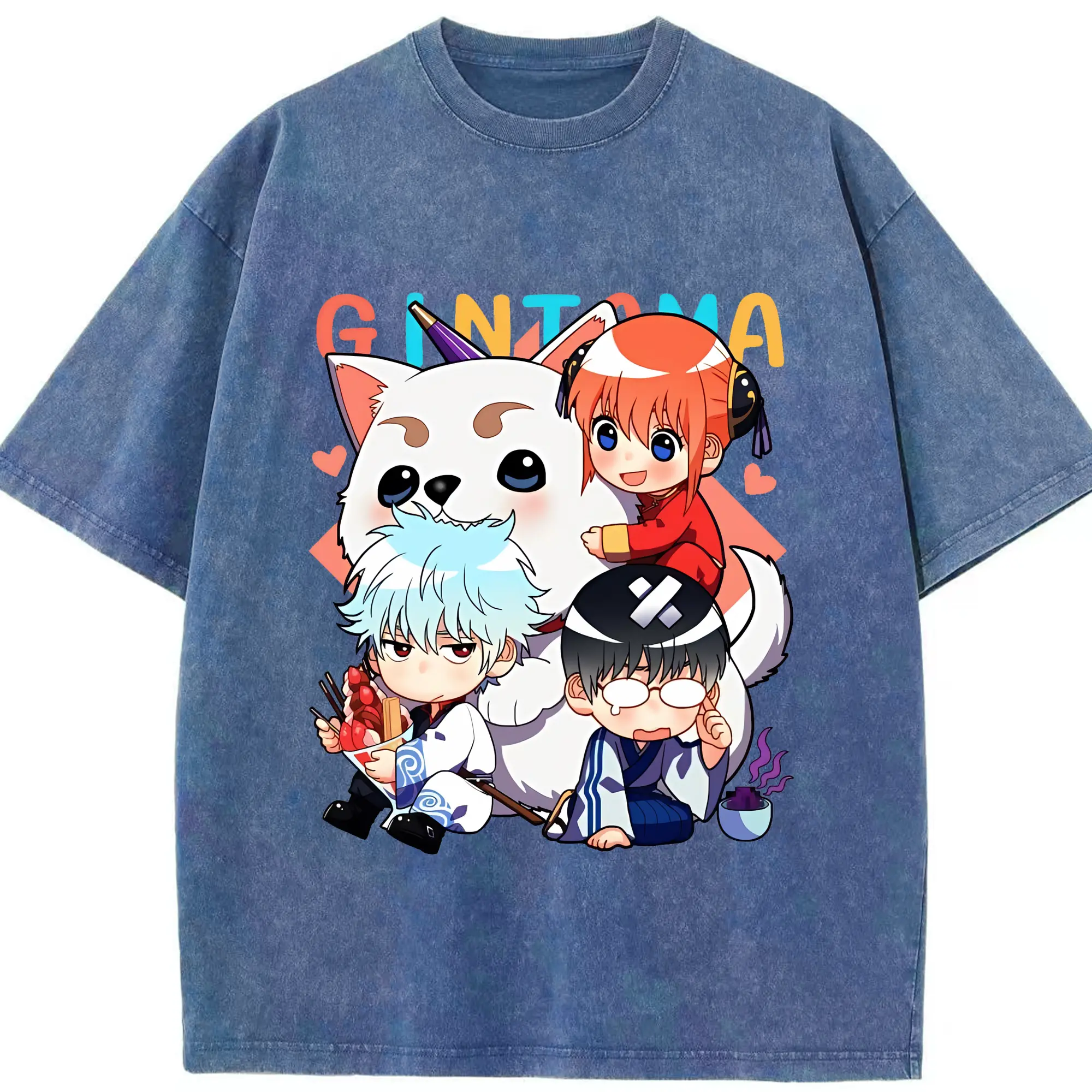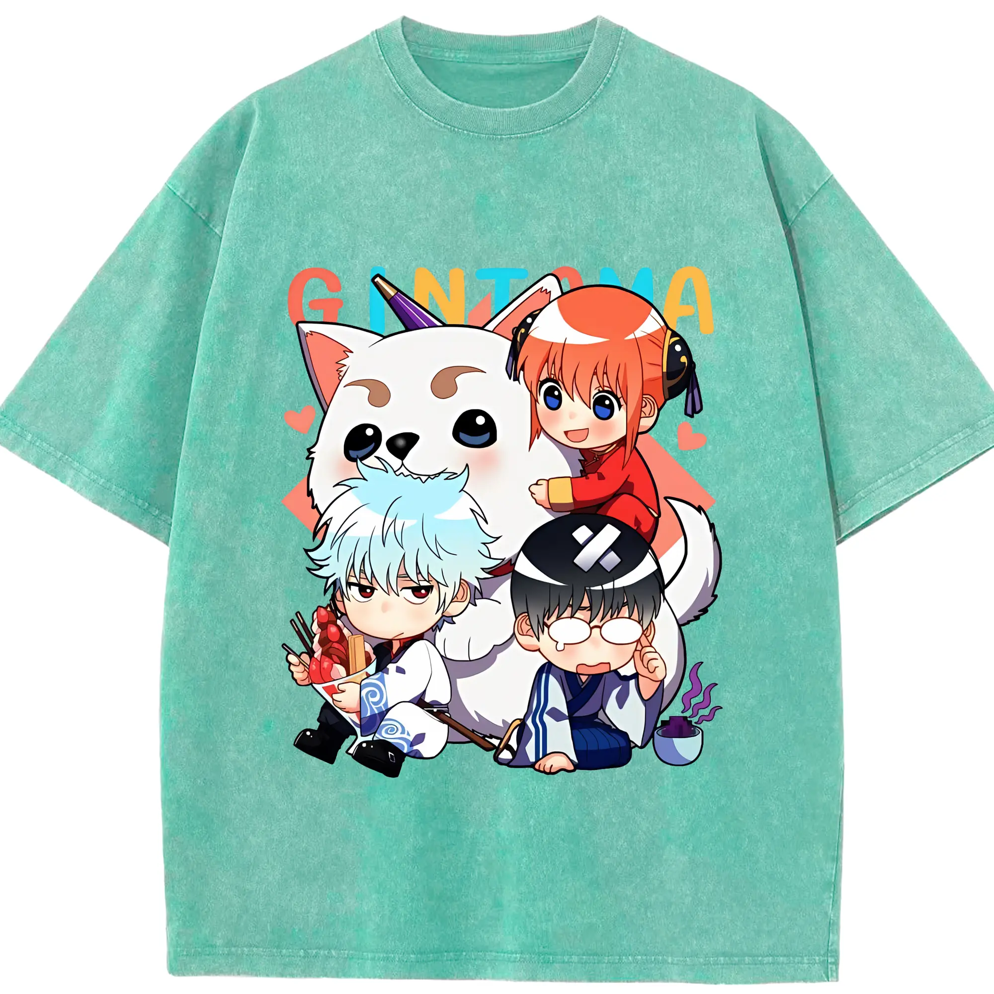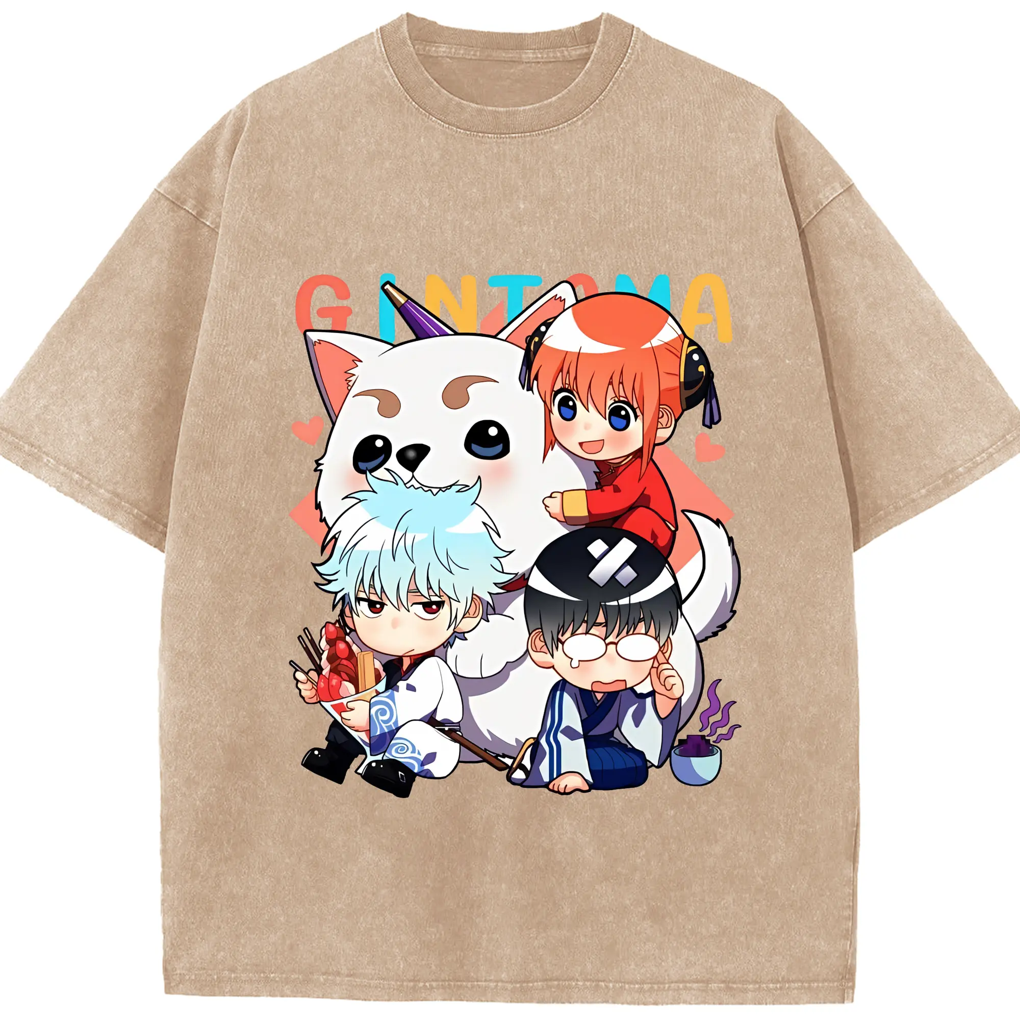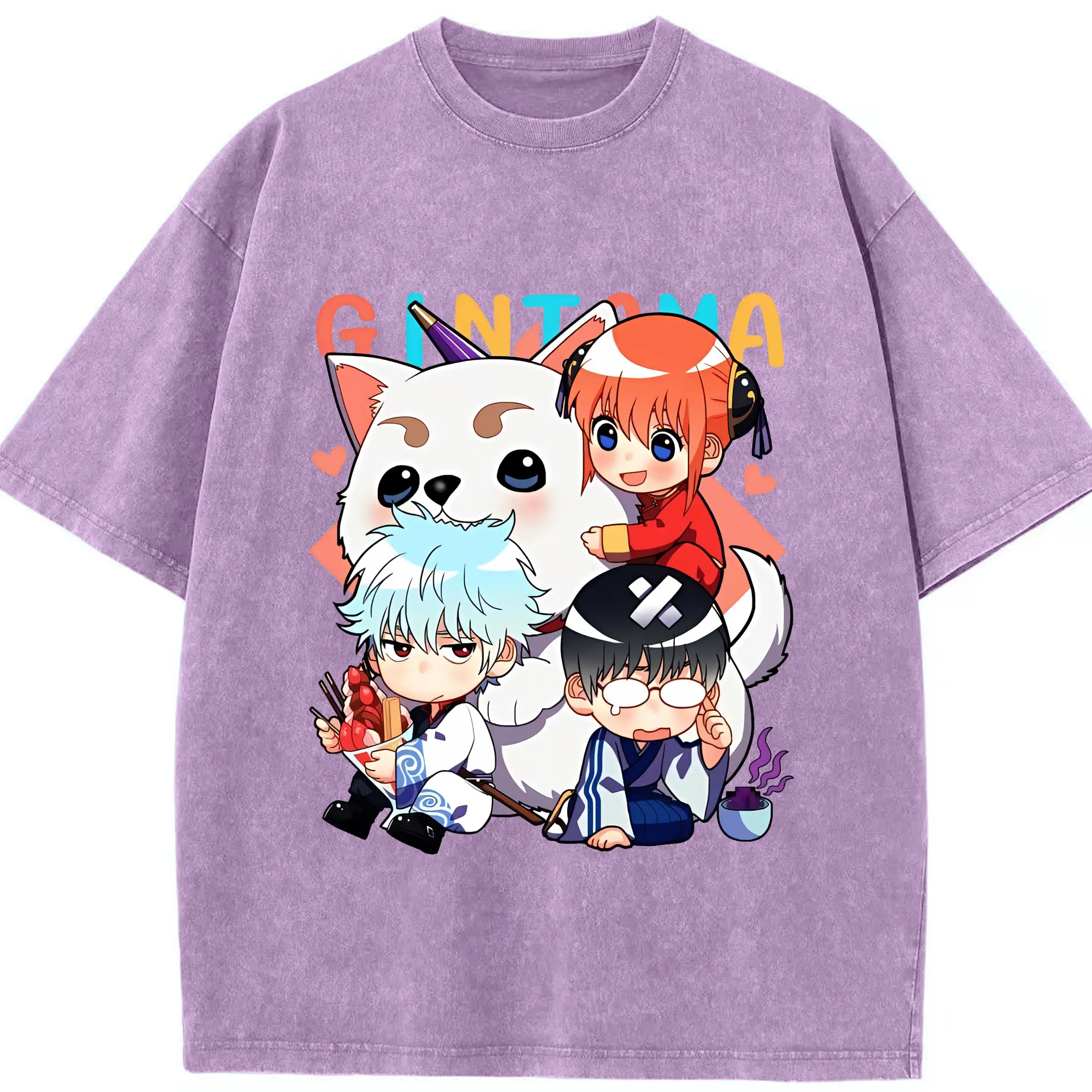 銀魂 グッズ 神楽 - 綿100% ヴィンテージ風 半袖Tシャツ ・ 背面プリント ・ 柔らか肌触り ・ 通気性 快適 ・ スポーツ カジュアル 外出用
