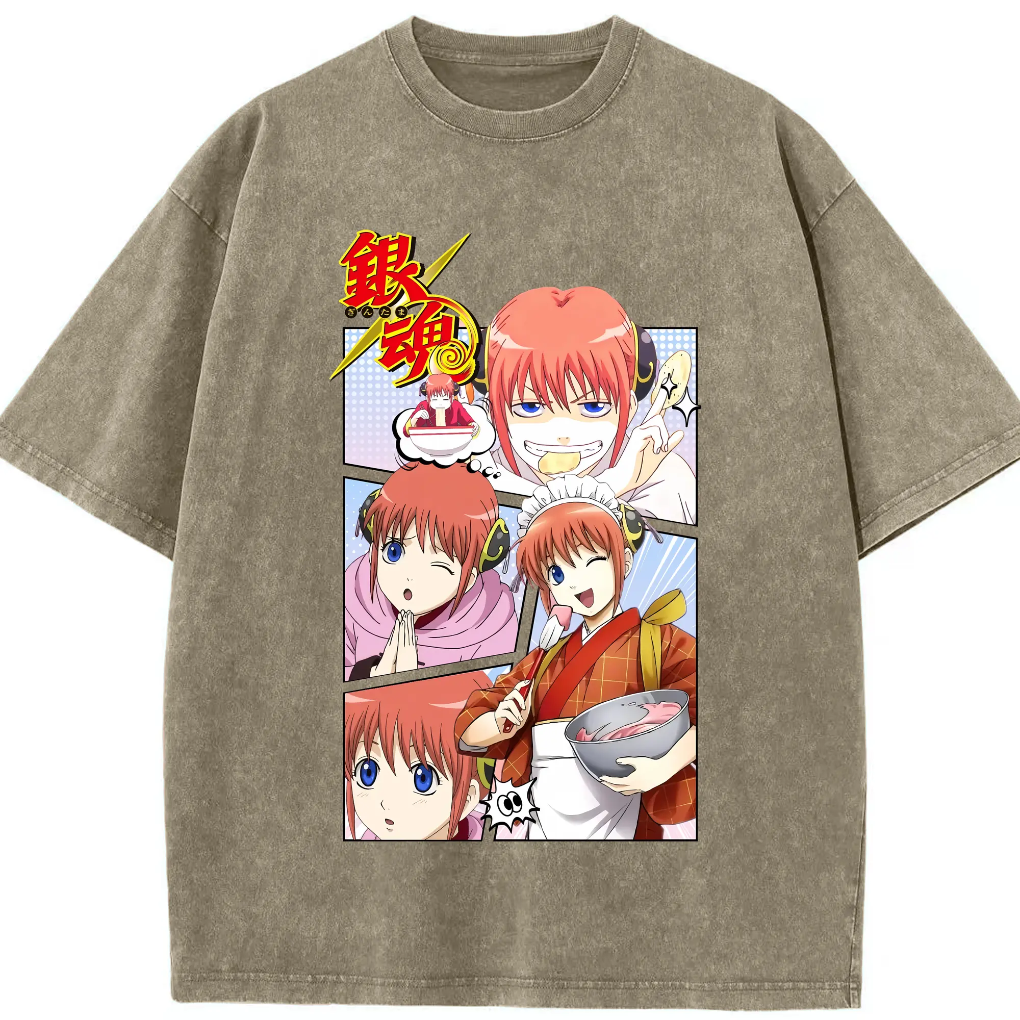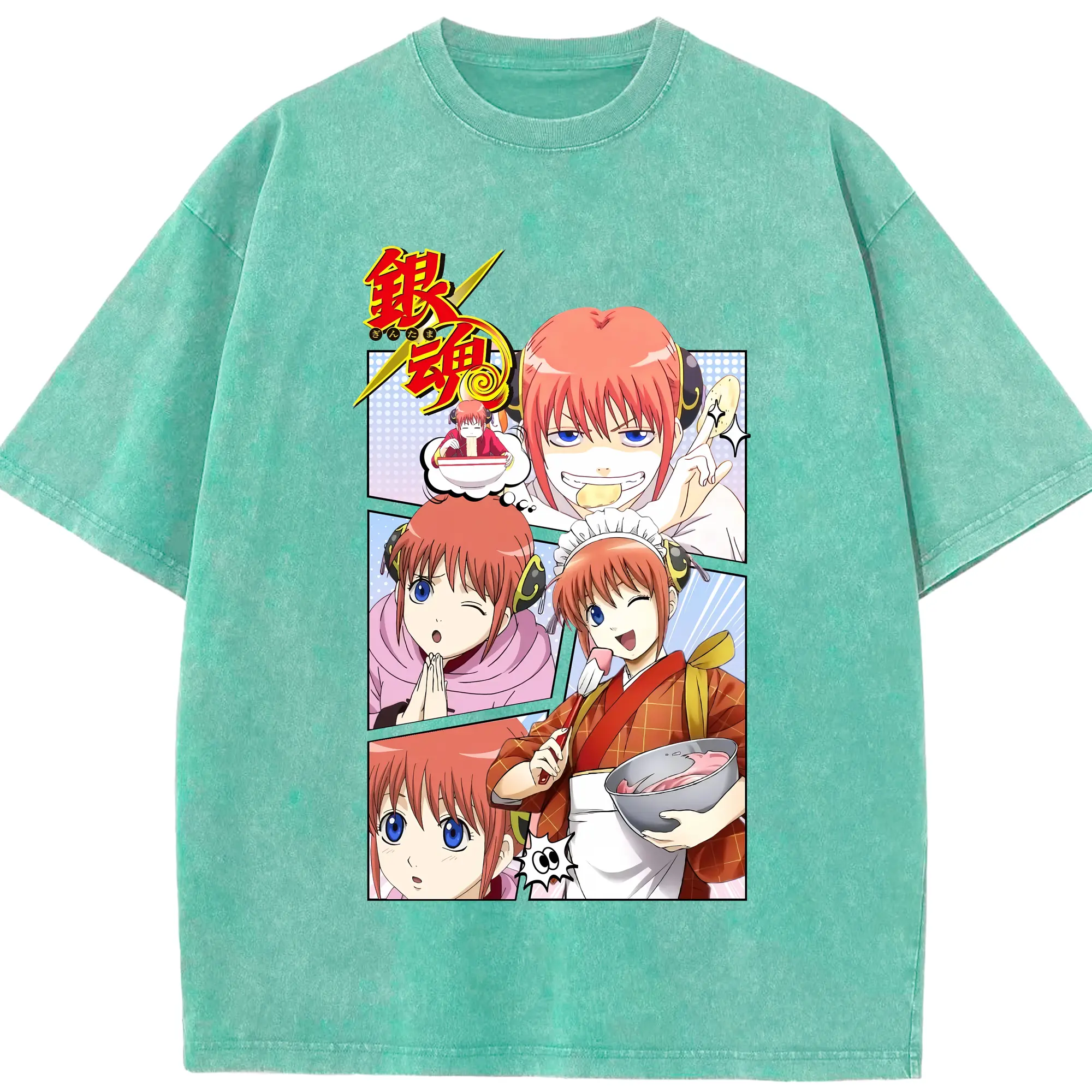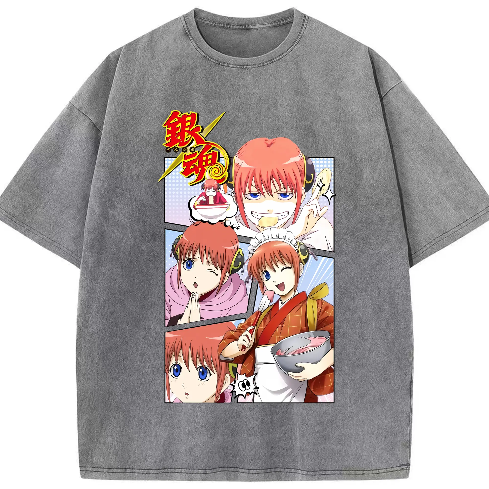 銀魂 グッズ 神楽 - 綿100% ヴィンテージ風 半袖Tシャツ ・ 背面プリント ・ 柔らか肌触り ・ 通気性 快適 ・ スポーツ カジュアル 外出用