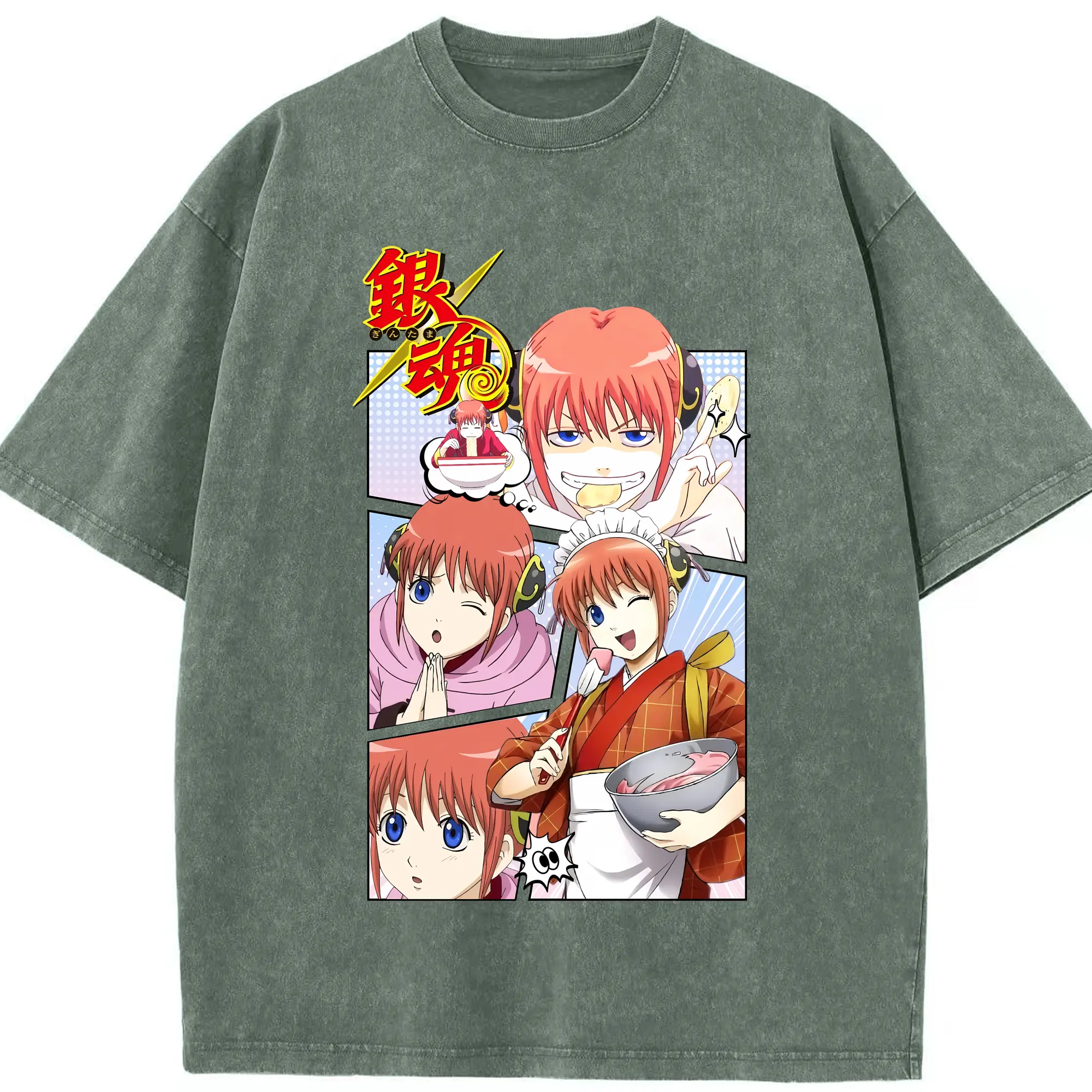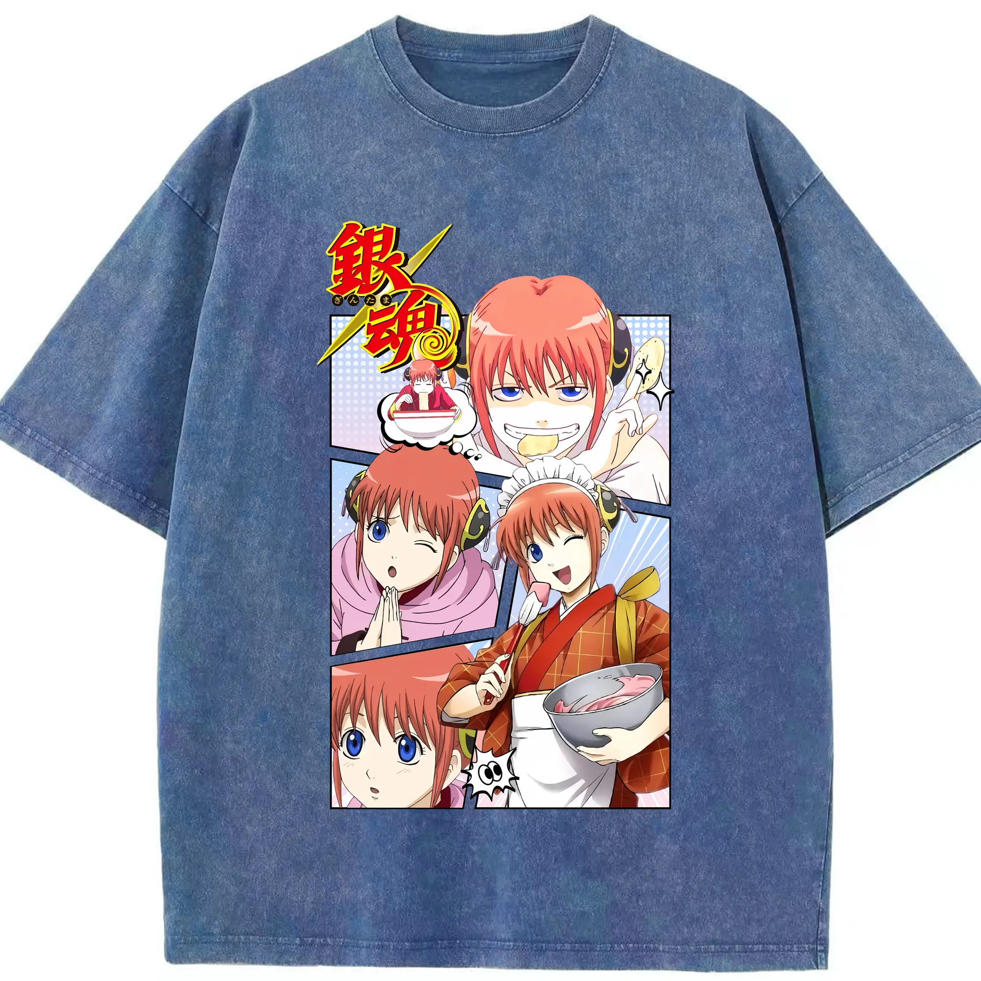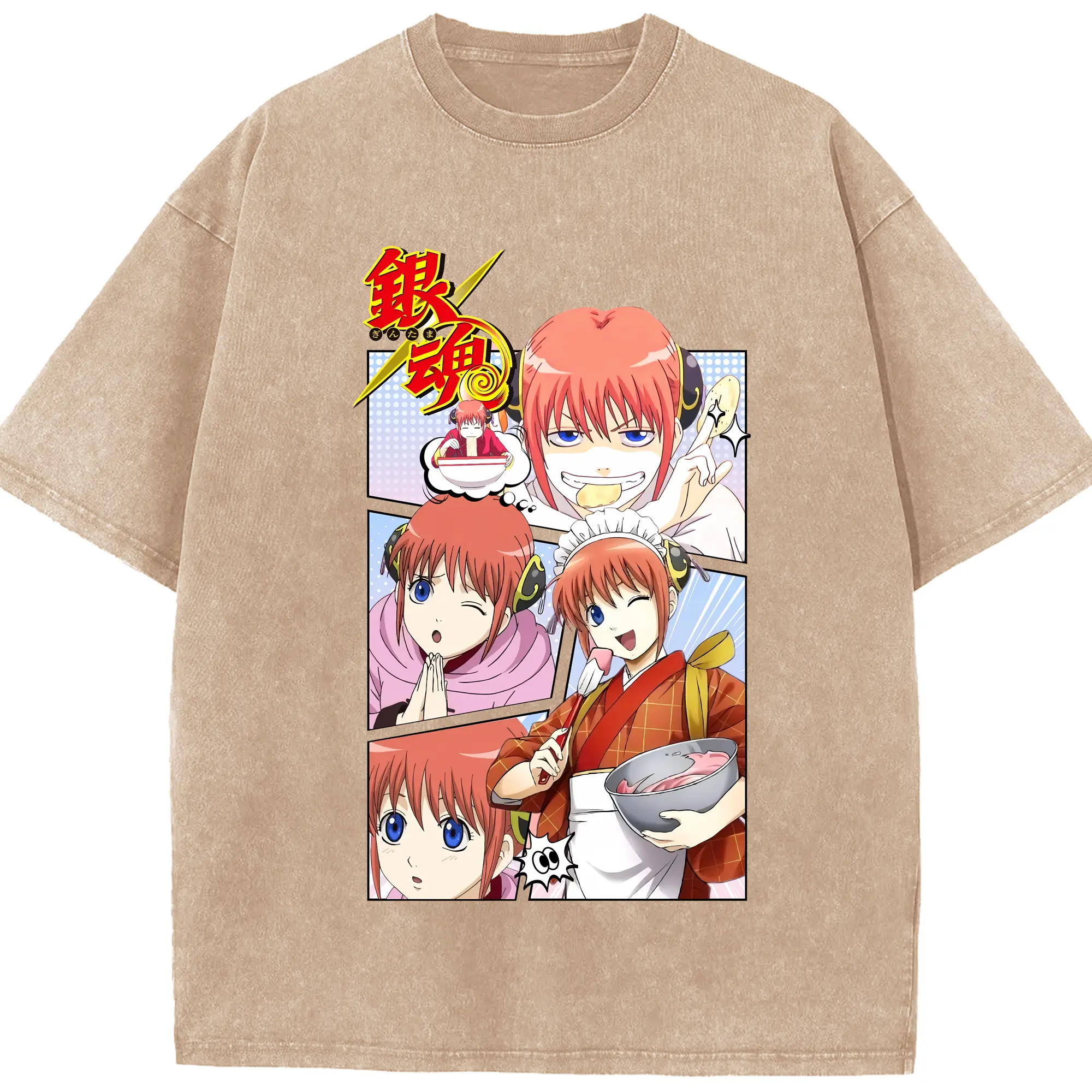 銀魂 グッズ 神楽 - 綿100% ヴィンテージ風 半袖Tシャツ ・ 背面プリント ・ 柔らか肌触り ・ 通気性 快適 ・ スポーツ カジュアル 外出用