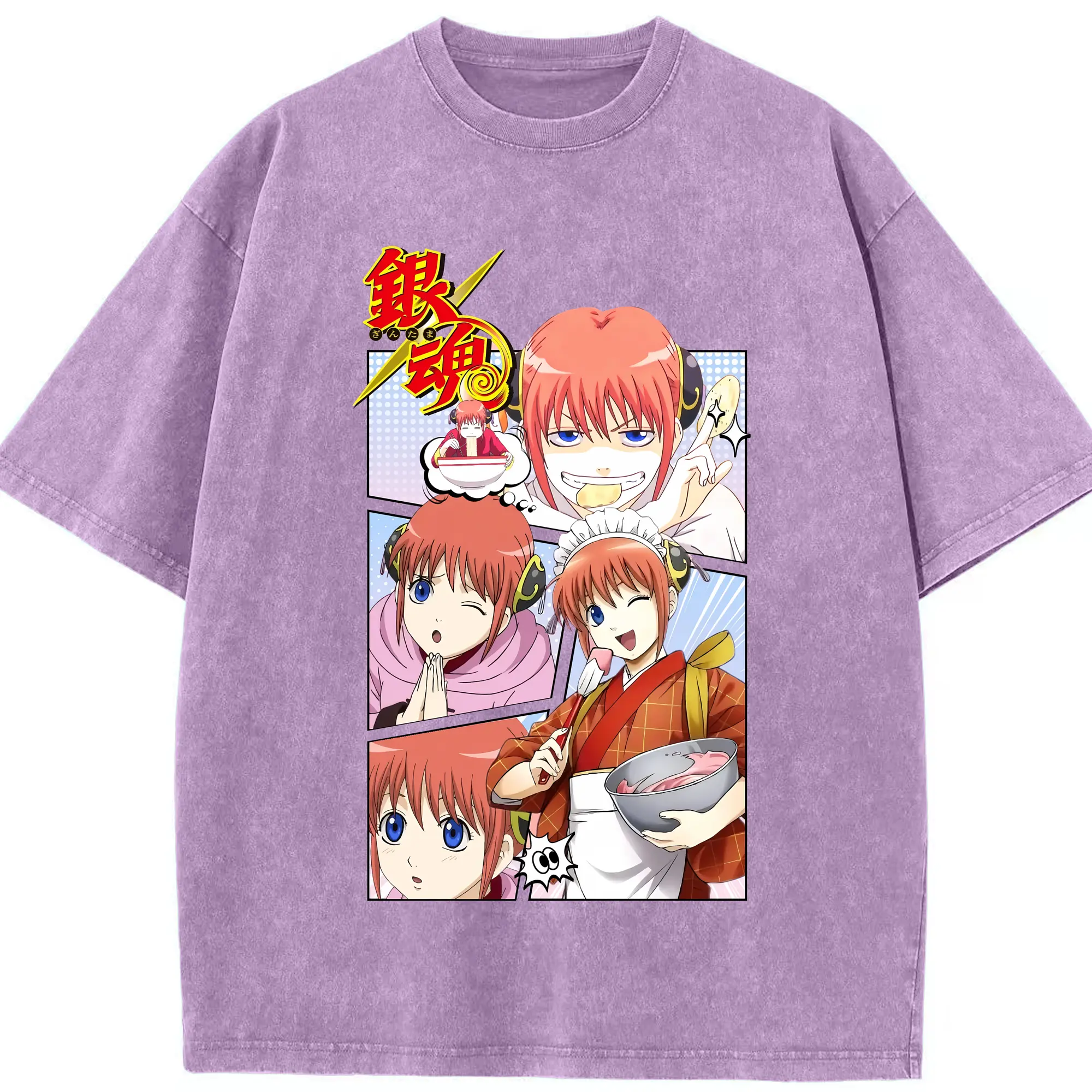 銀魂 グッズ 神楽 - 綿100% 半袖Tシャツ ・ フロントプリント ・ 快適 通気性 ・ 日常使い 散歩 スポーツ用