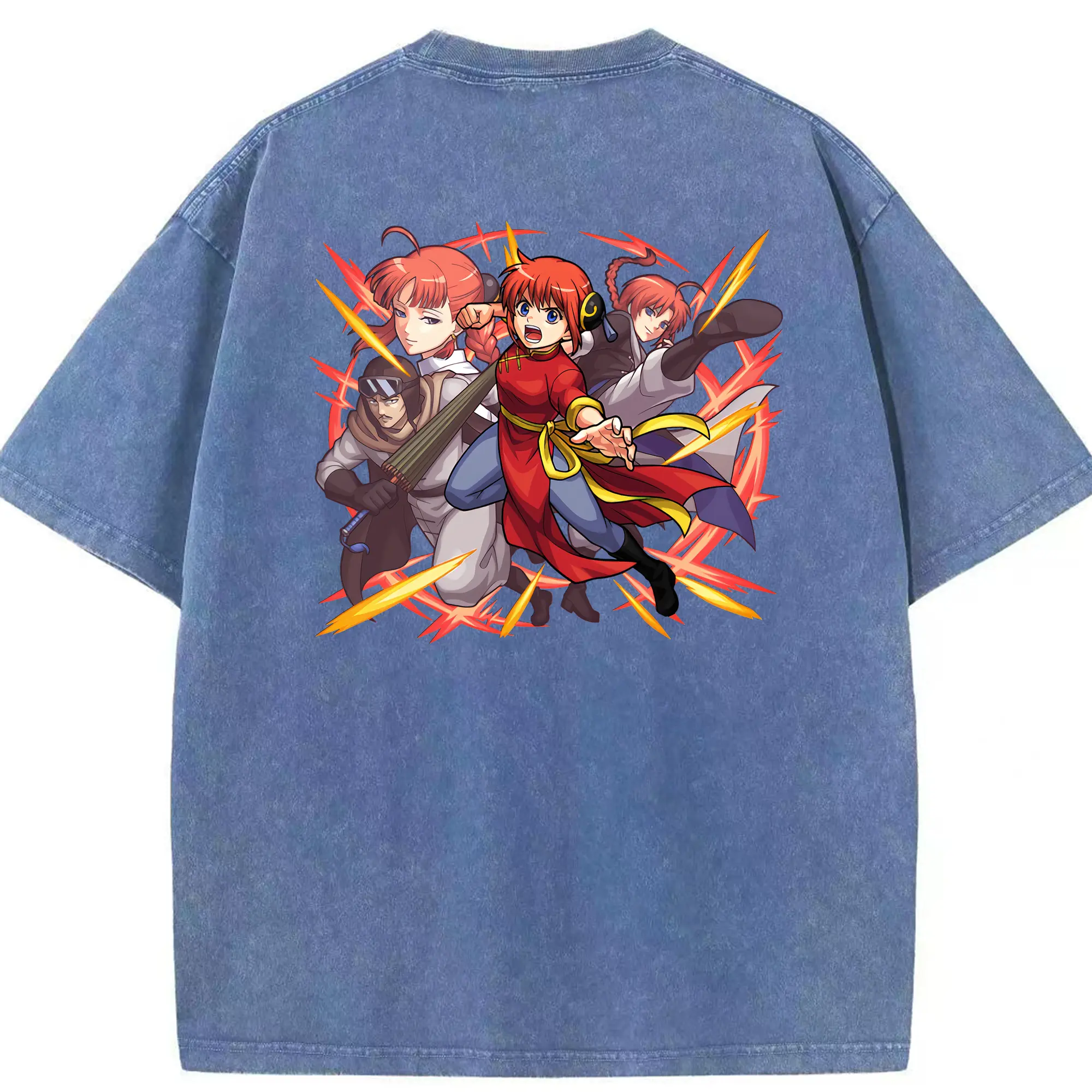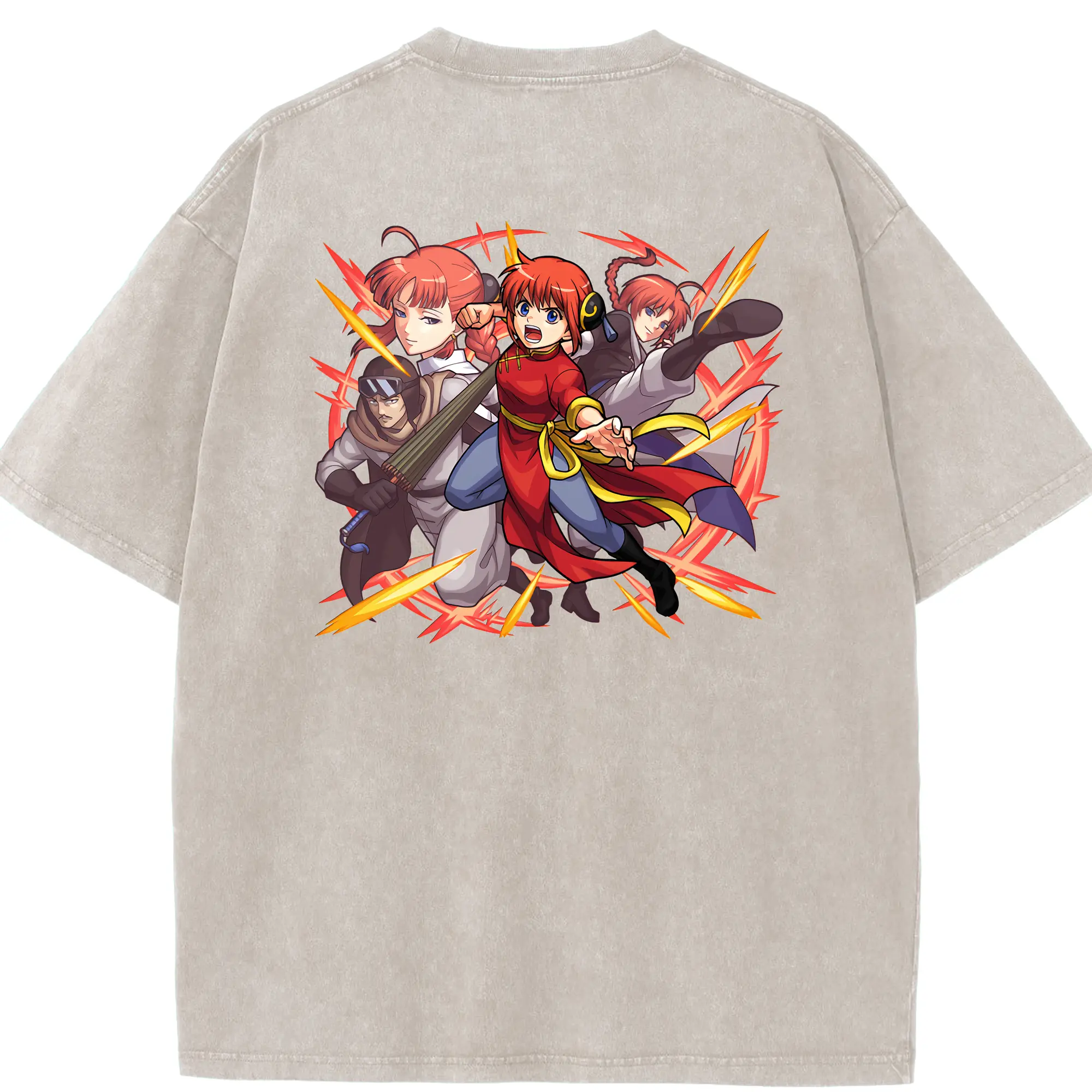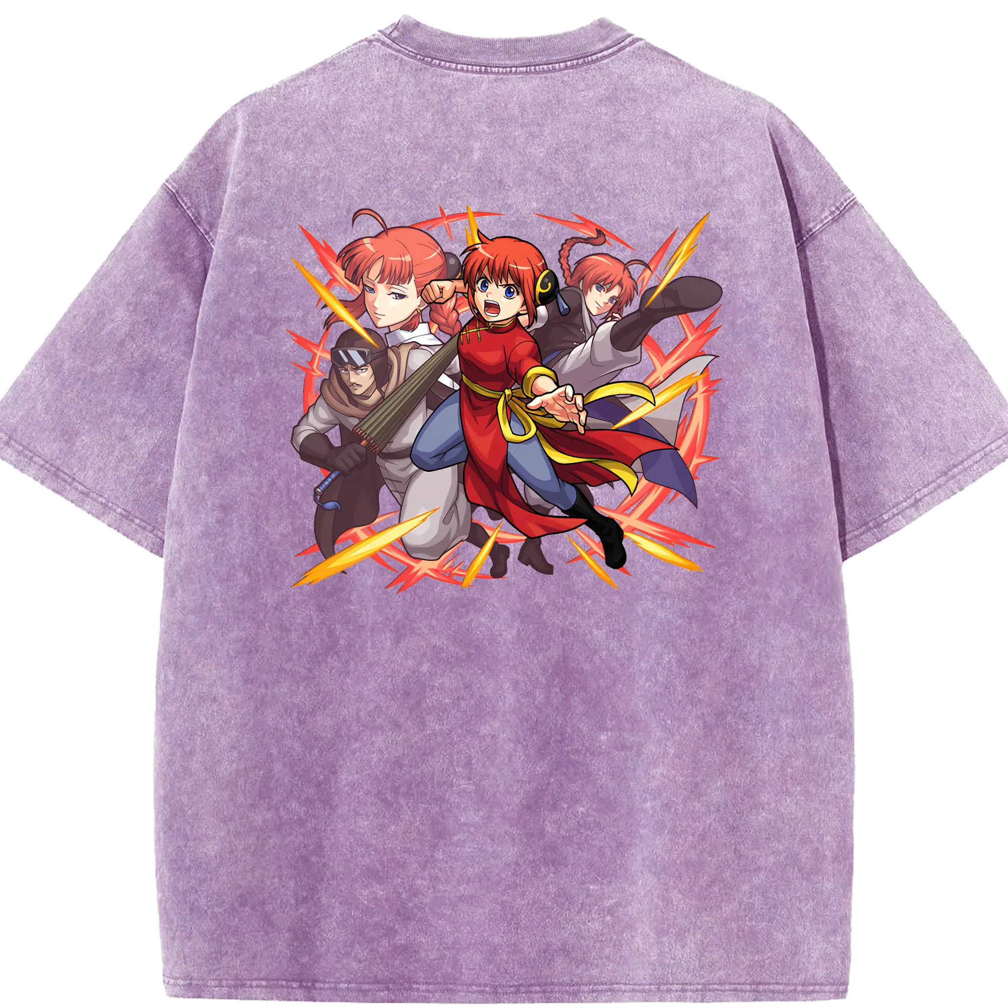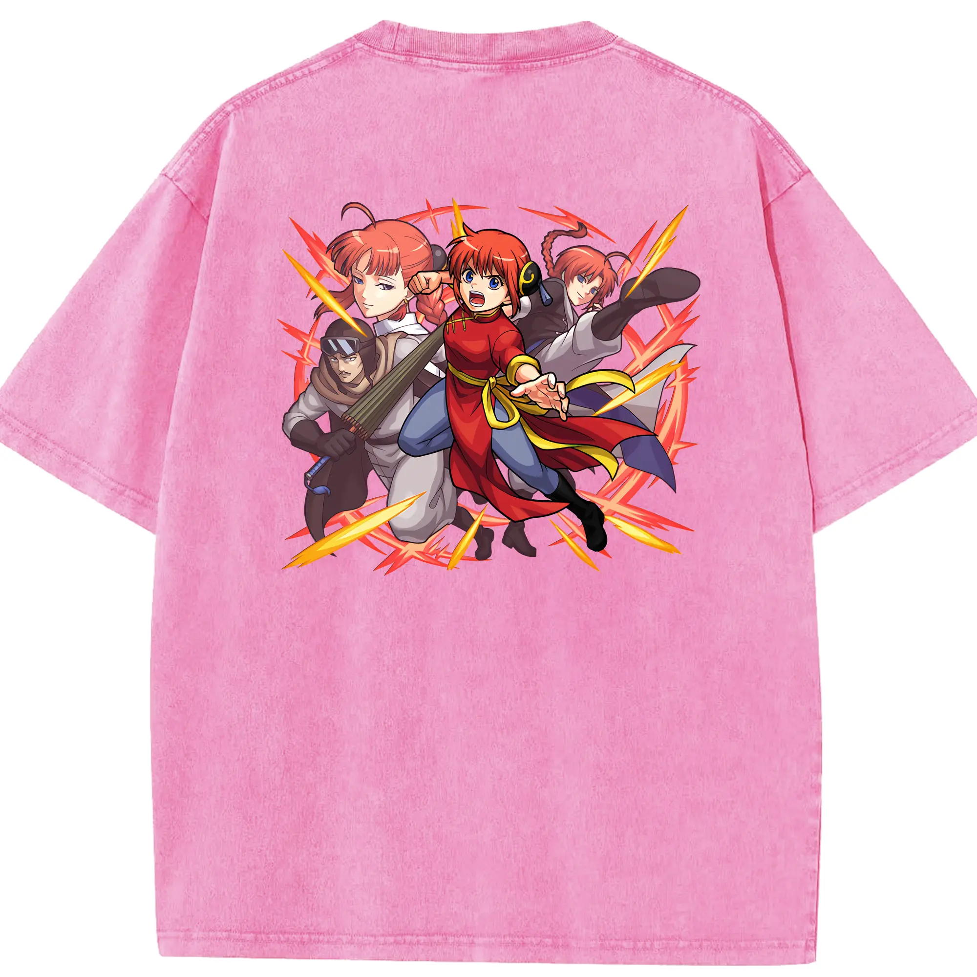 銀魂 グッズ 神楽 - 綿100% ヴィンテージ風 半袖Tシャツ ・ フロントプリント ・ 柔らか肌触り ・ 通気性 快適 ・ スポーツ カジュアル 外出用