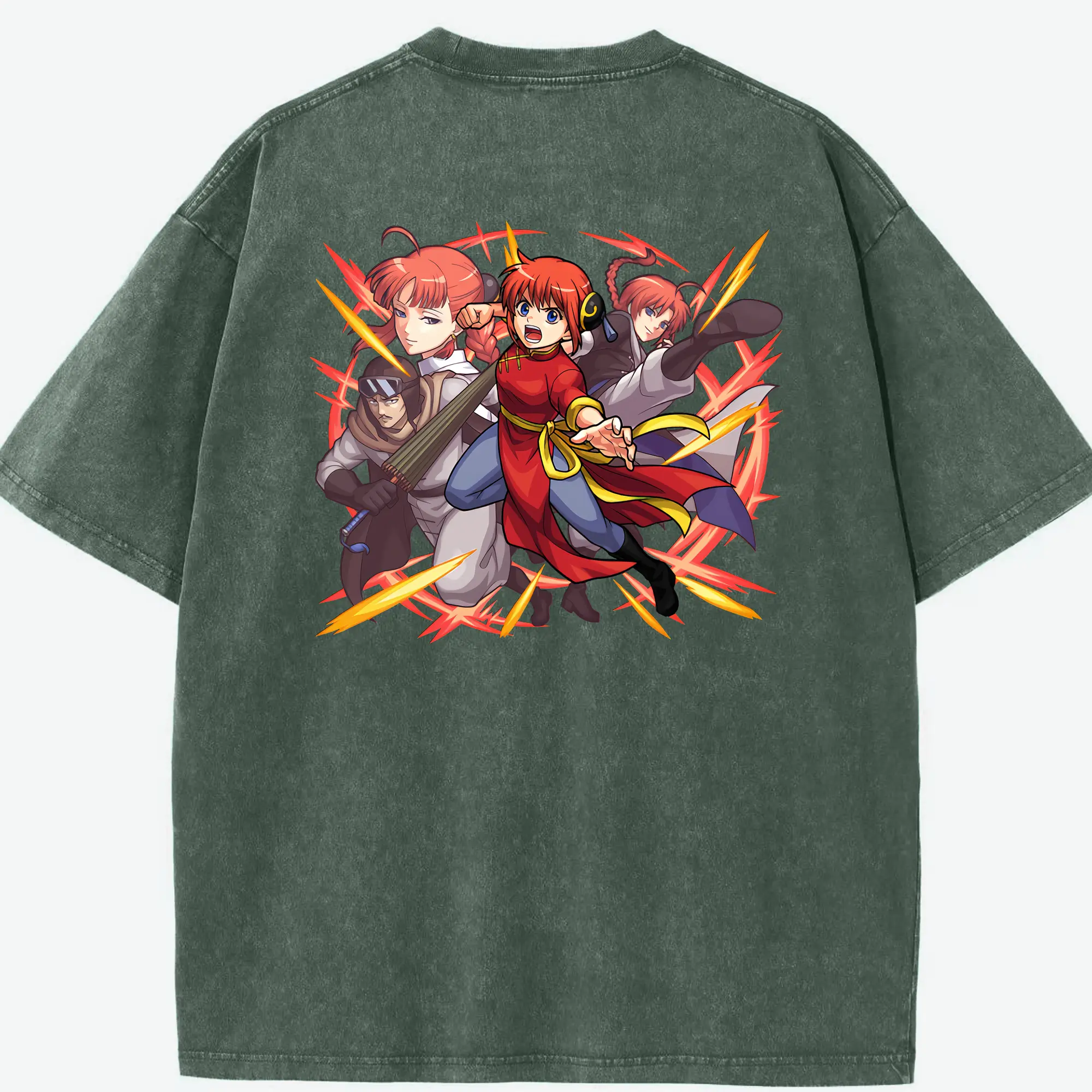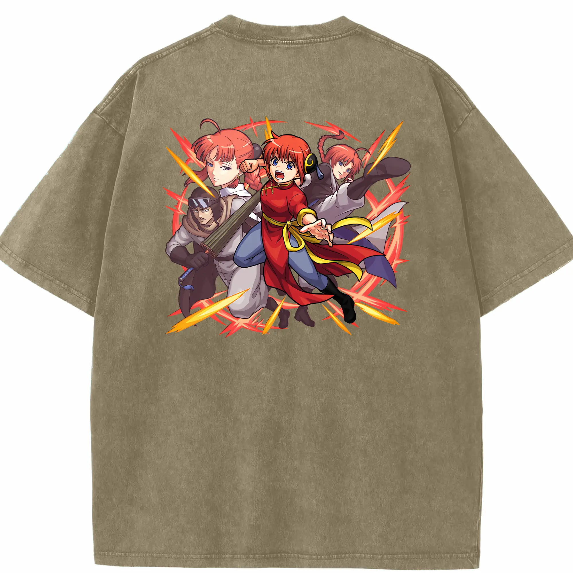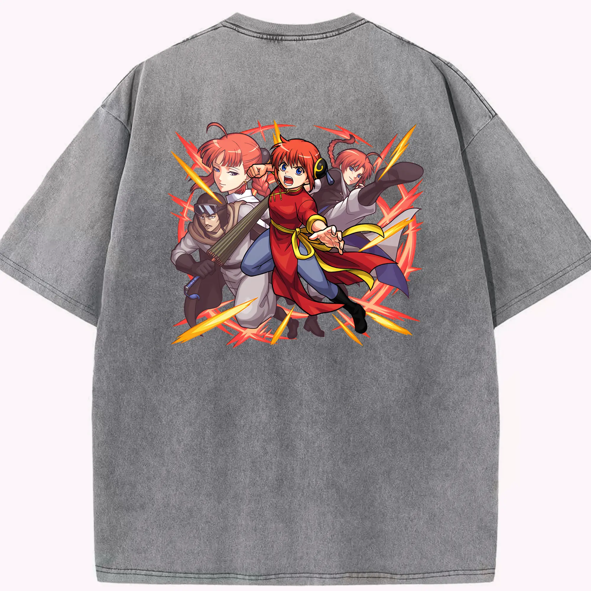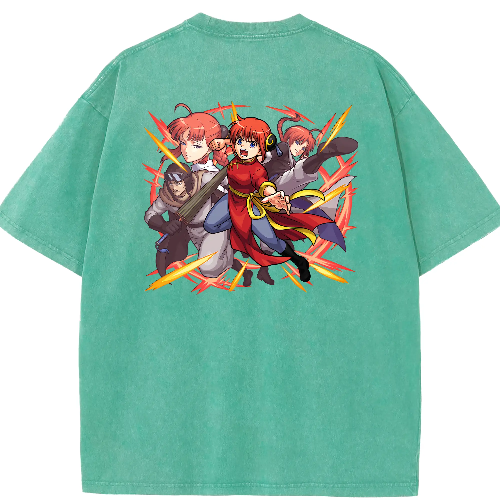 銀魂 グッズ 神楽 - 綿100% ヴィンテージ風 半袖Tシャツ ・ フロントプリント ・ 柔らか肌触り ・ 通気性 快適 ・ スポーツ カジュアル 外出用
