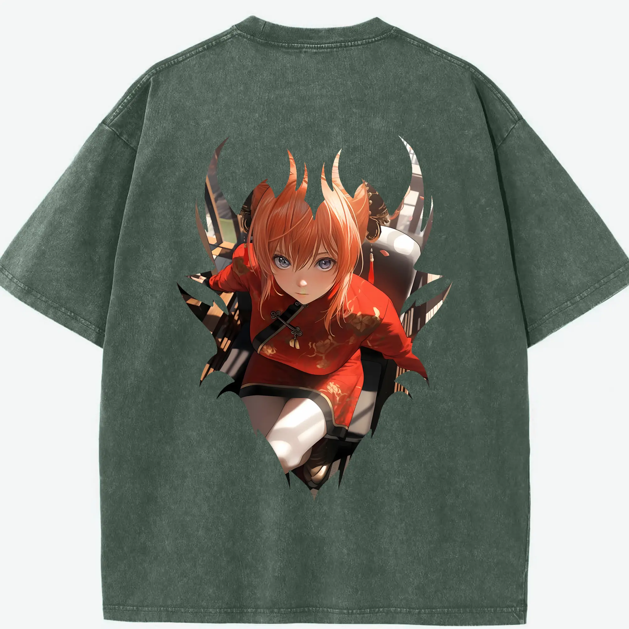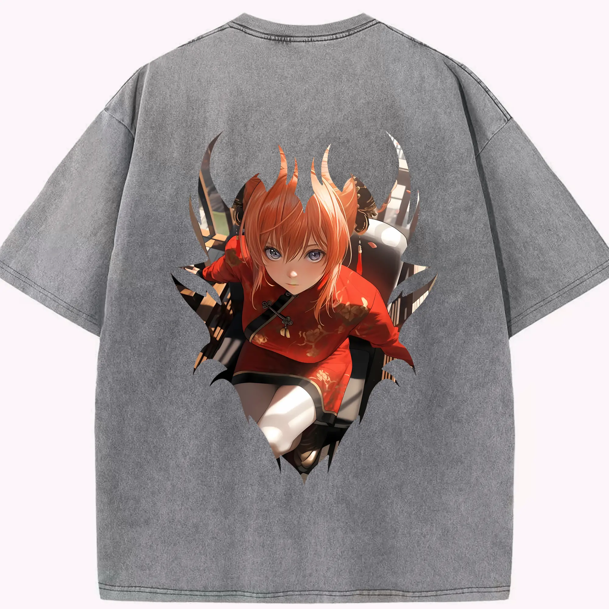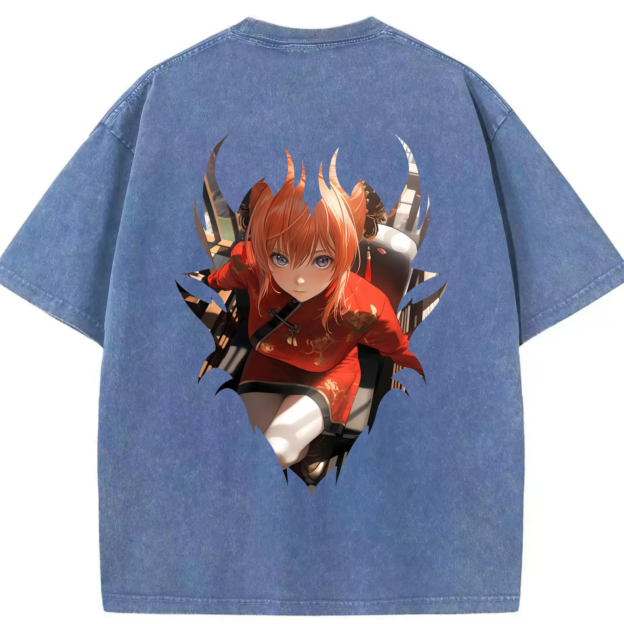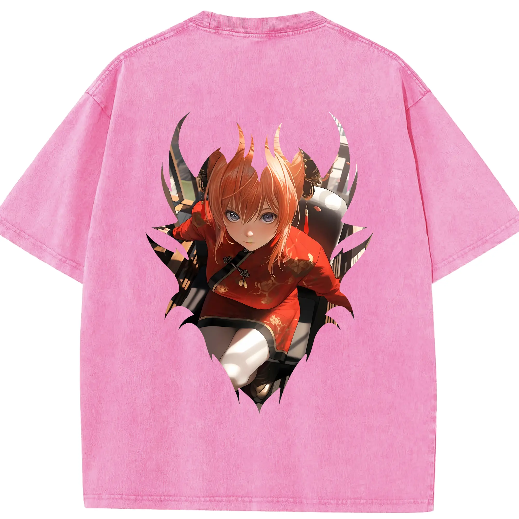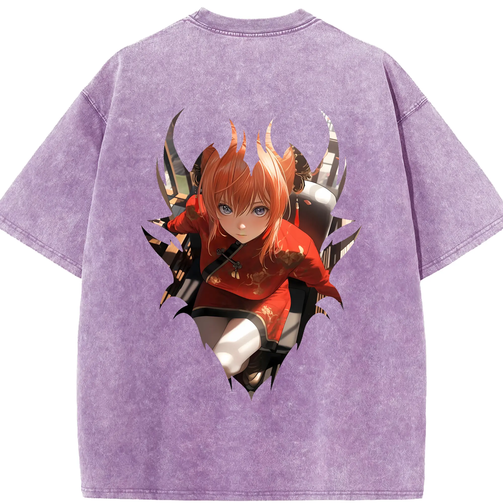 銀魂 グッズ 神楽 - 綿100% ヴィンテージ風 半袖Tシャツ ・ フロントプリント ・ 柔らか肌触り ・ 通気性 快適 ・ スポーツ カジュアル 外出用