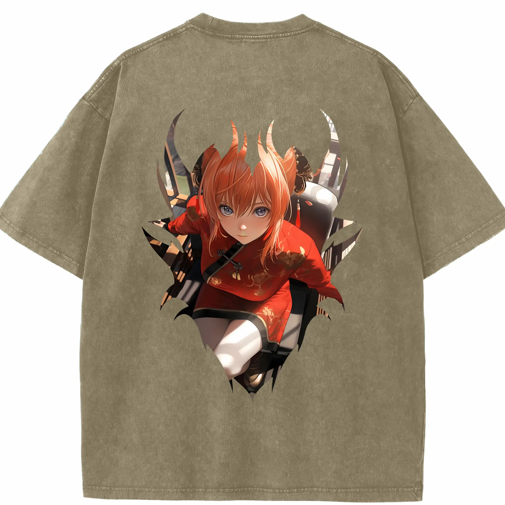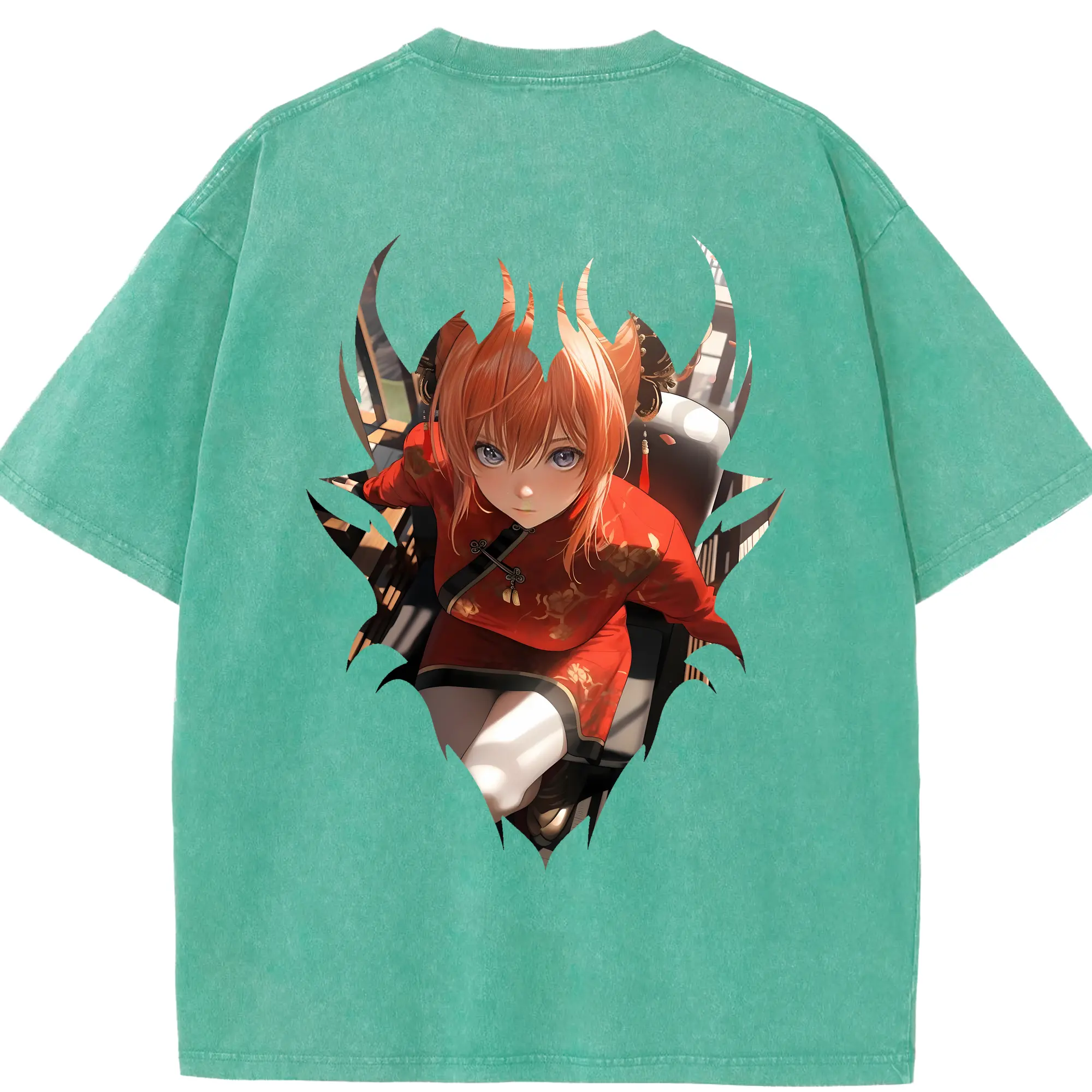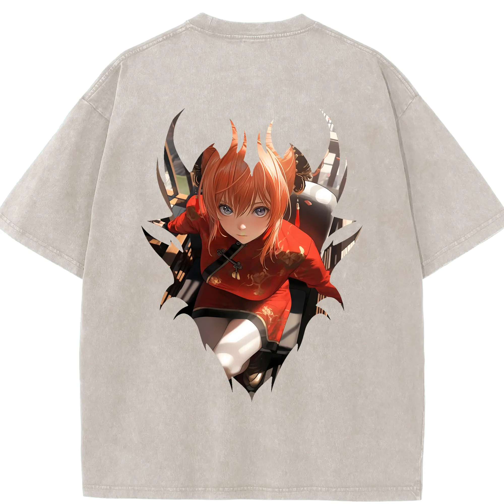 鳴潮 グッズ アンコ - 綿100% ヴィンテージ風 半袖Tシャツ ・ 背面プリント ・ 柔らか肌触り ・ 通気性 快適 ・ スポーツ カジュアル 外出用