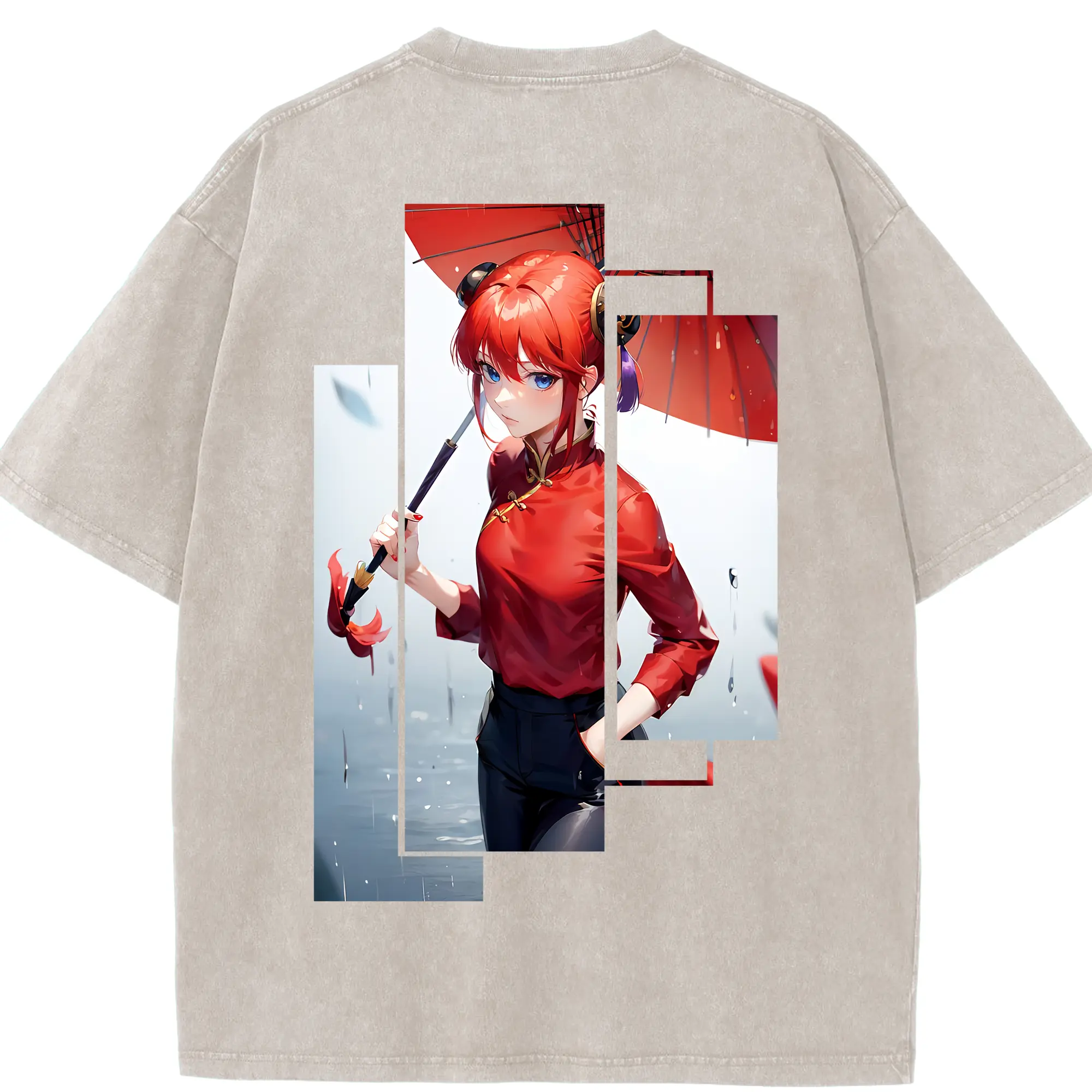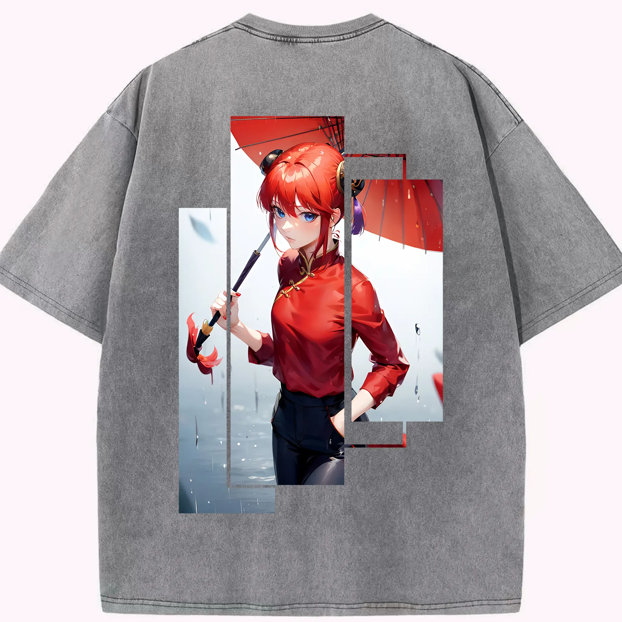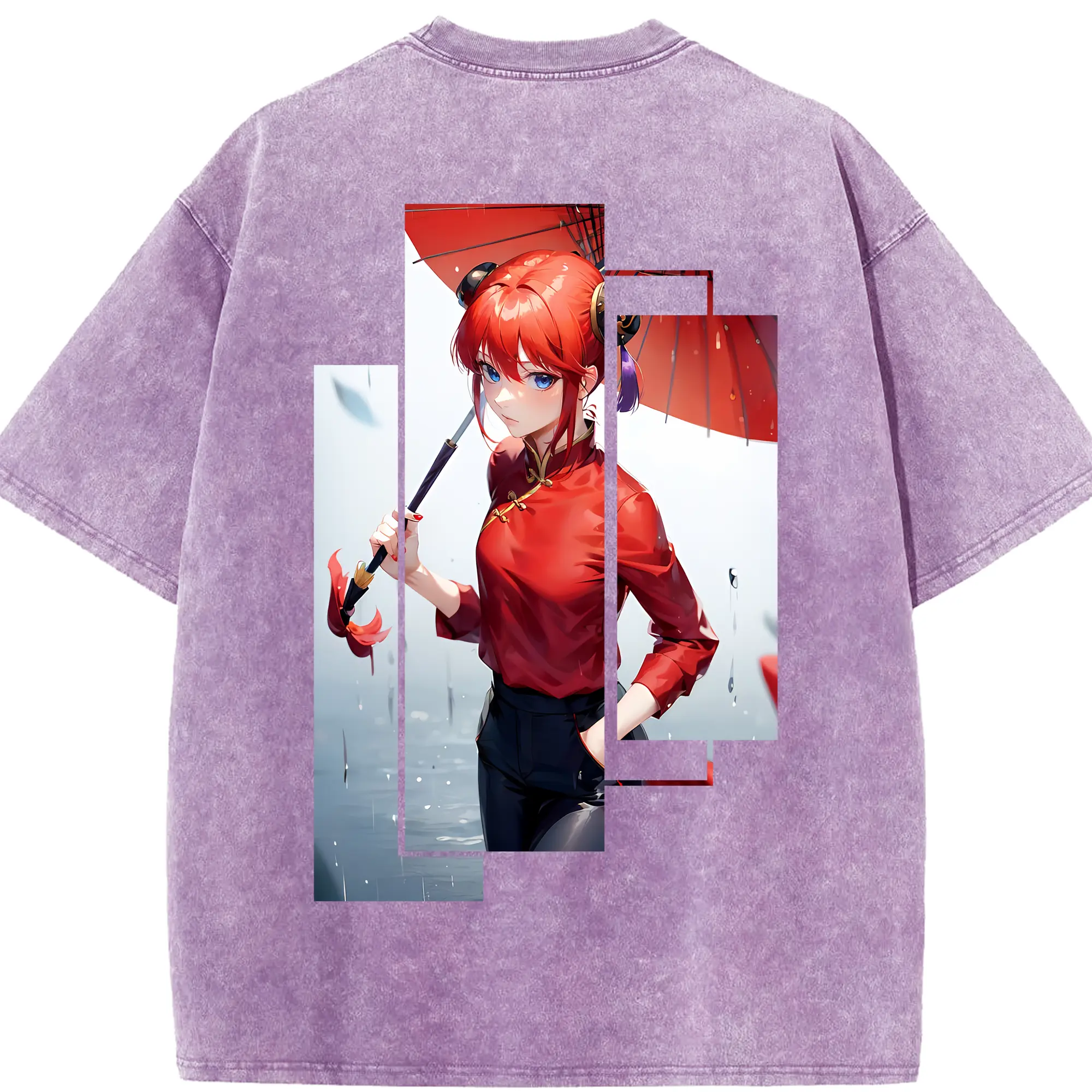 銀魂 グッズ 神楽 - 綿100% ヴィンテージ風 半袖Tシャツ ・ フロントプリント ・ 柔らか肌触り ・ 通気性 快適 ・ スポーツ カジュアル 外出用