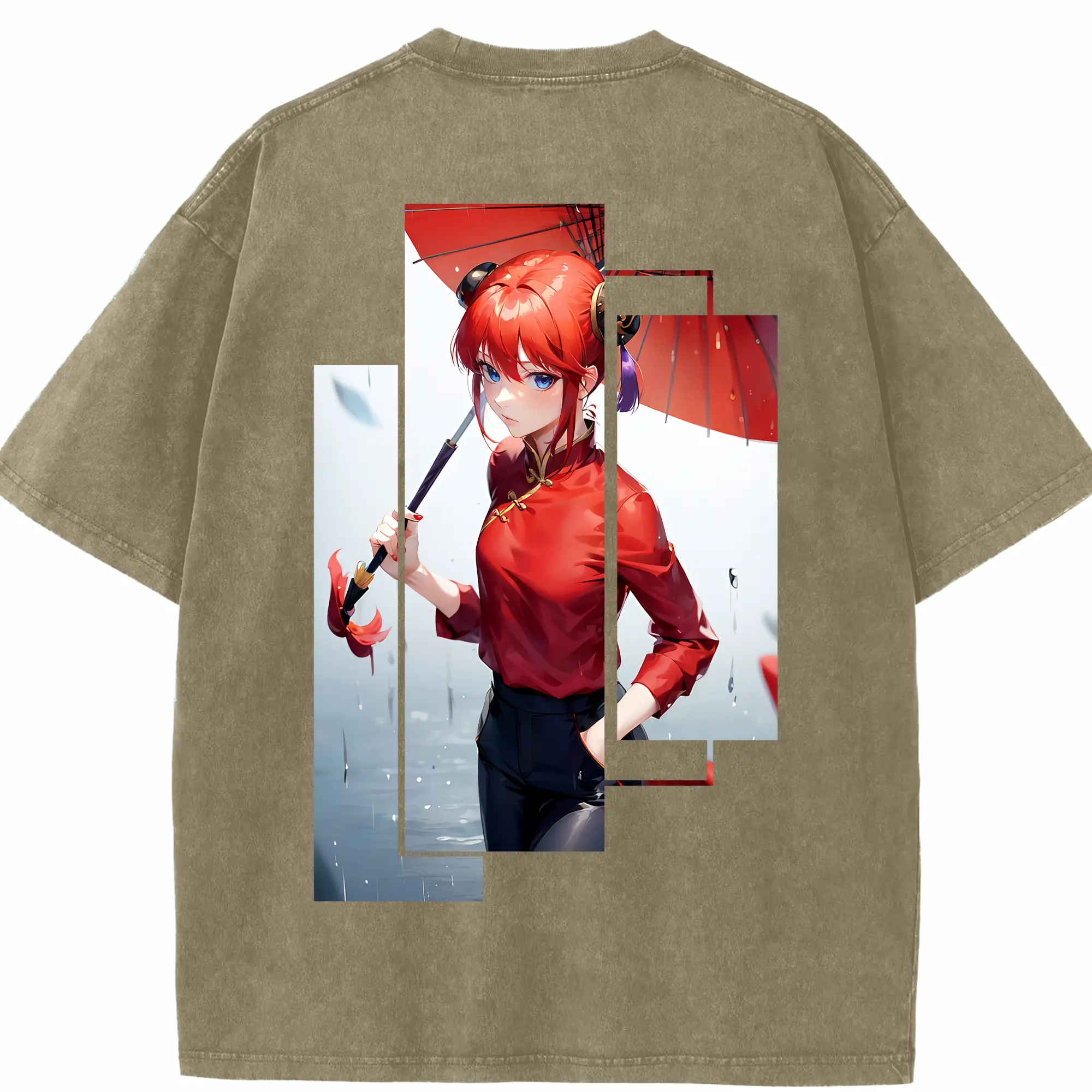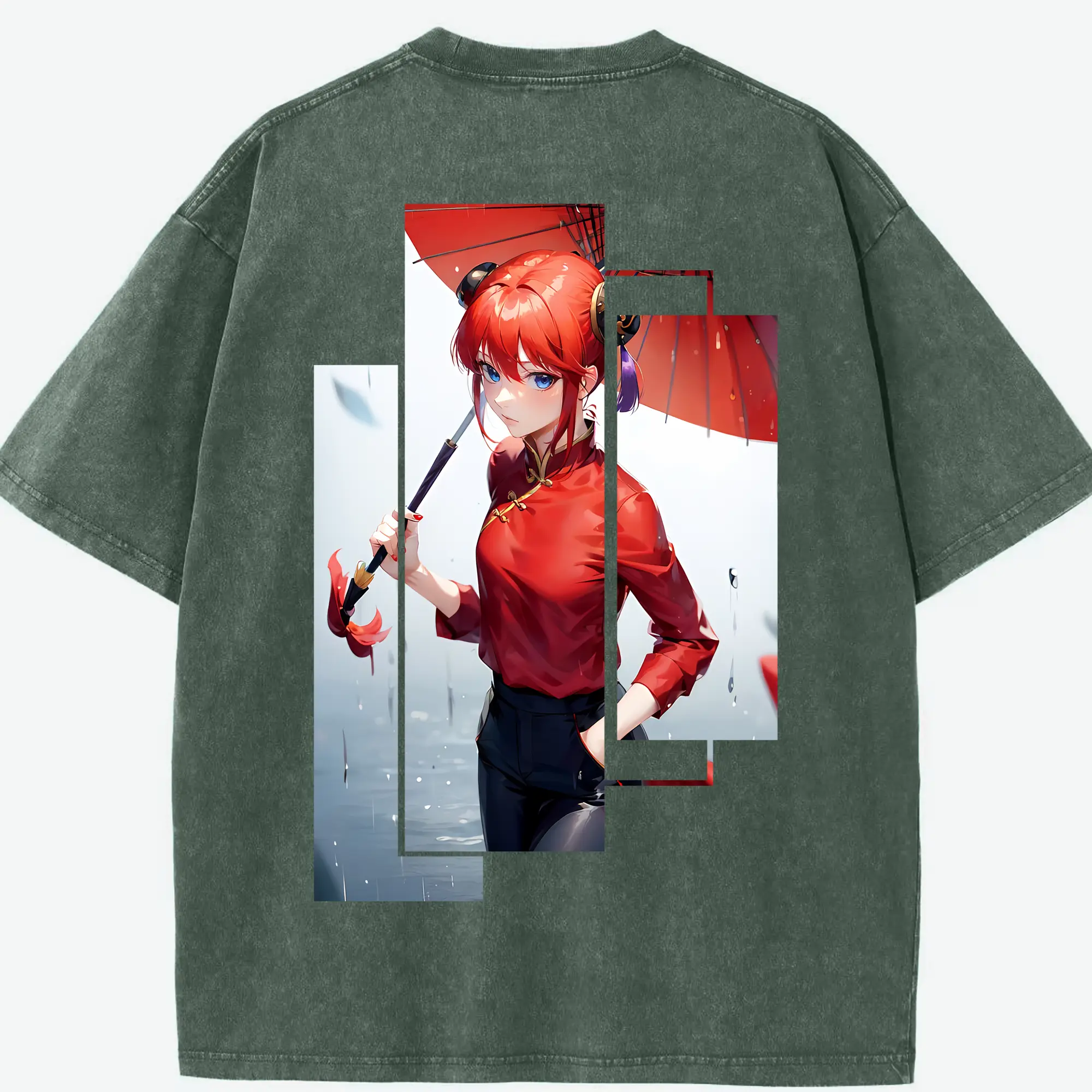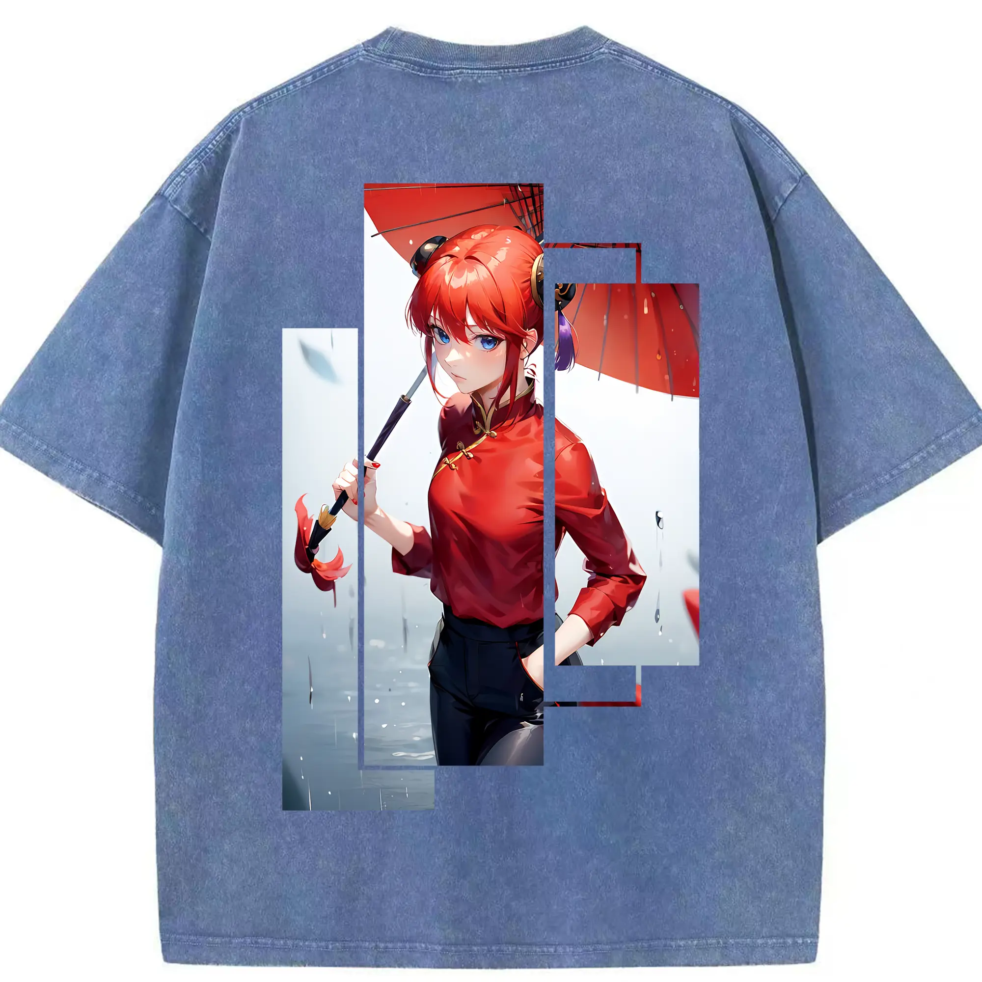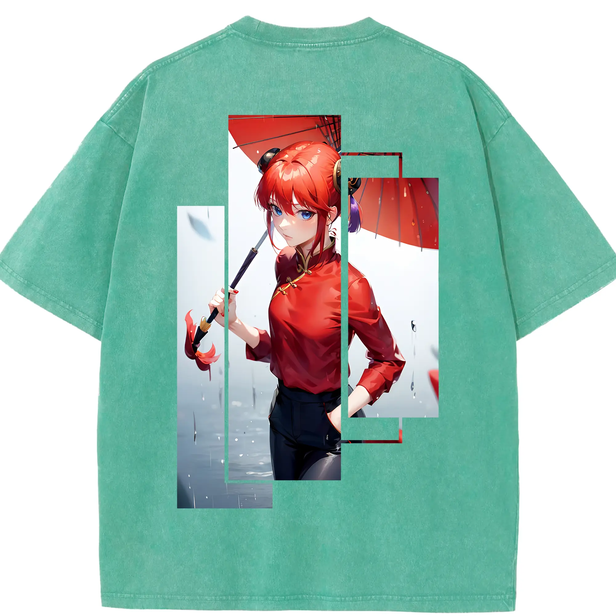 銀魂 グッズ 神楽 - 綿100% ヴィンテージ風 半袖Tシャツ ・ フロントプリント ・ 柔らか肌触り ・ 通気性 快適 ・ スポーツ カジュアル 外出用