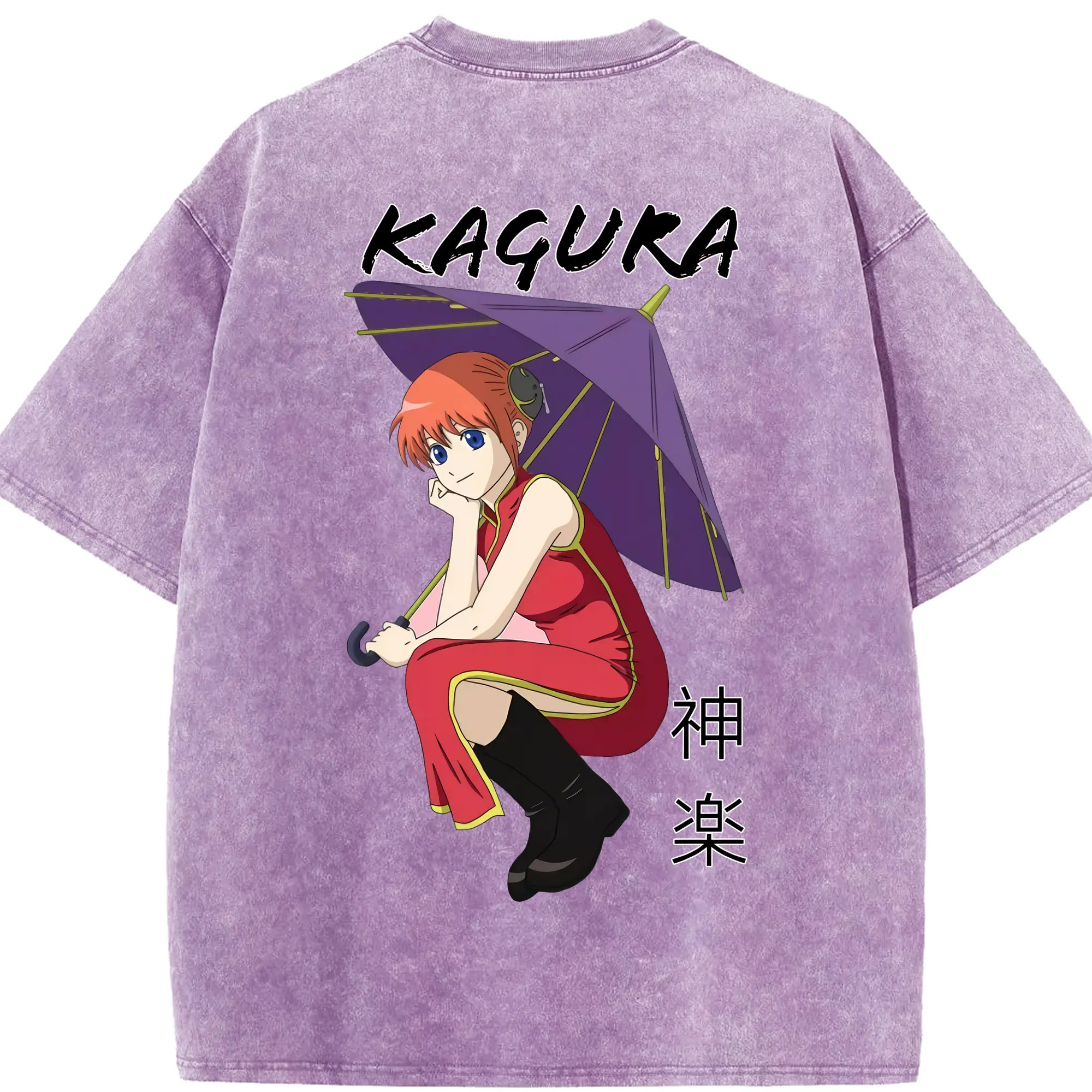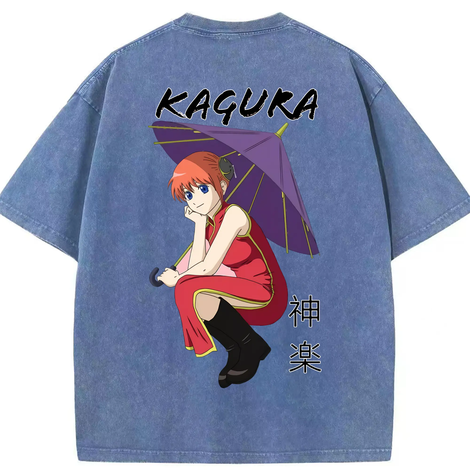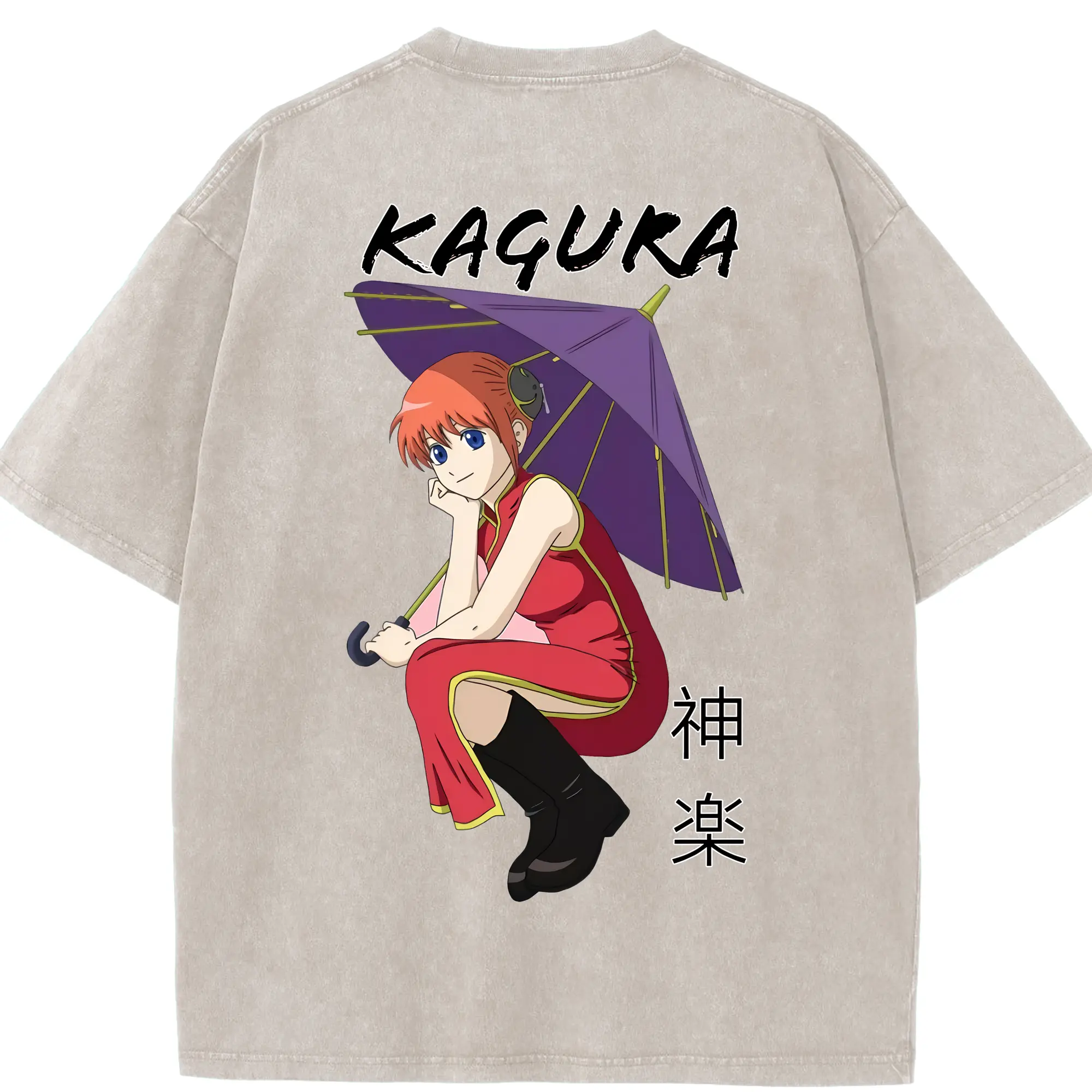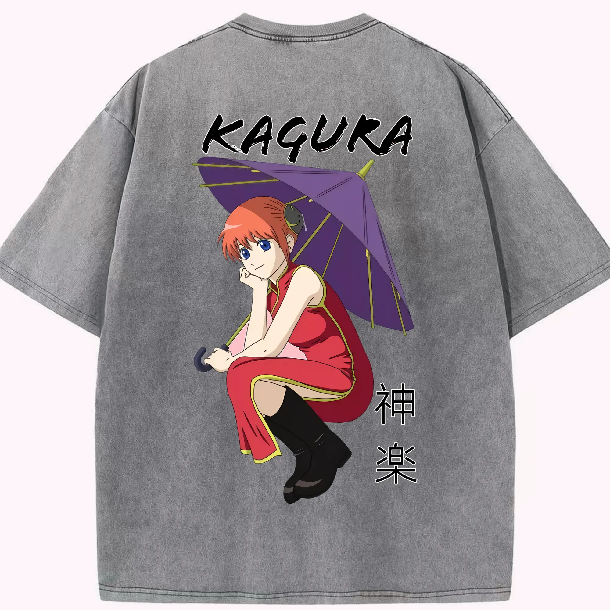 銀魂 グッズ 神楽 - 綿100% ヴィンテージ風 半袖Tシャツ ・ フロントプリント ・ 柔らか肌触り ・ 通気性 快適 ・ スポーツ カジュアル 外出用