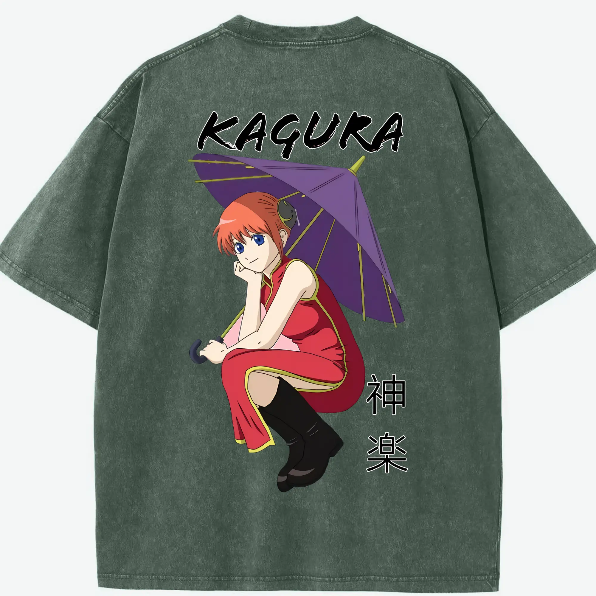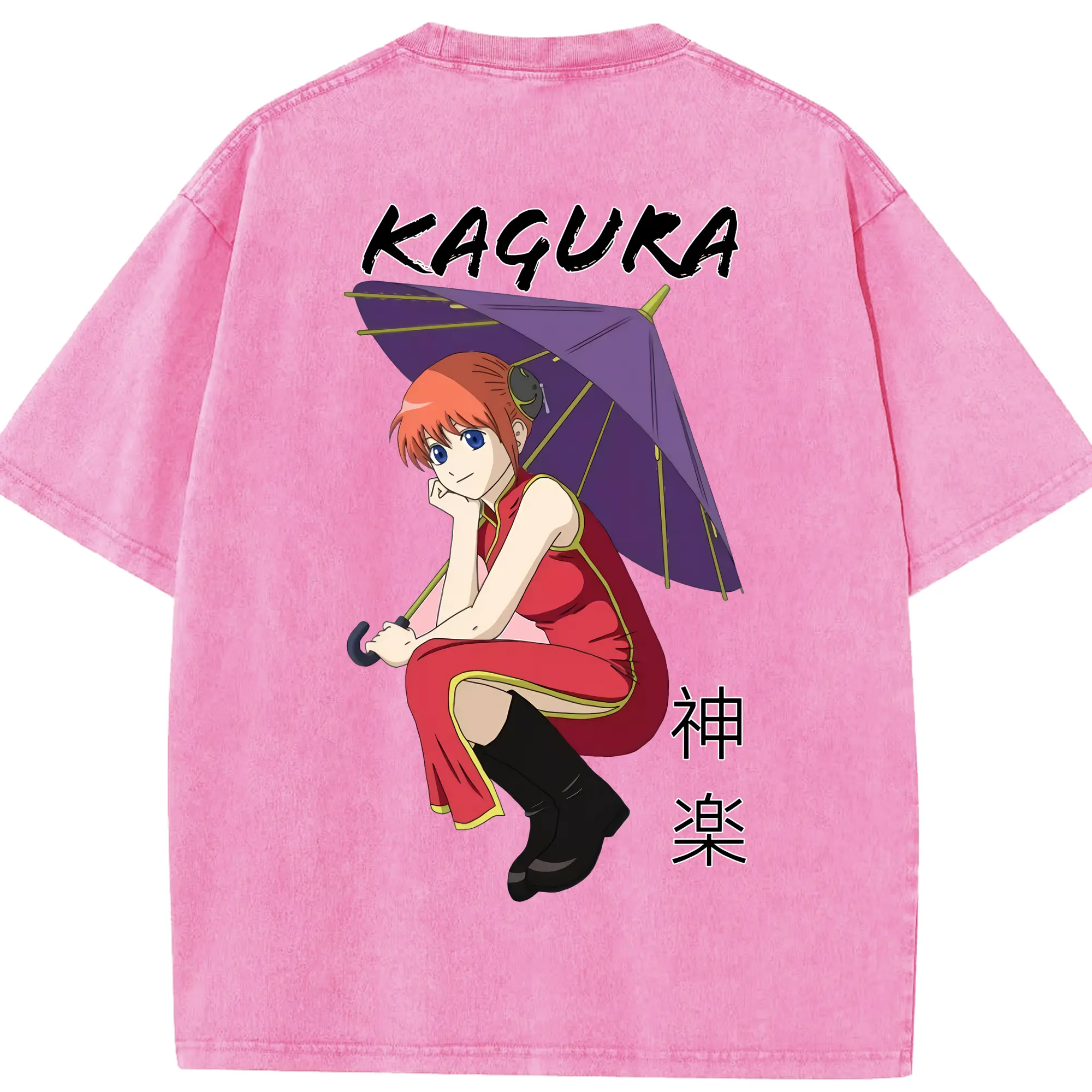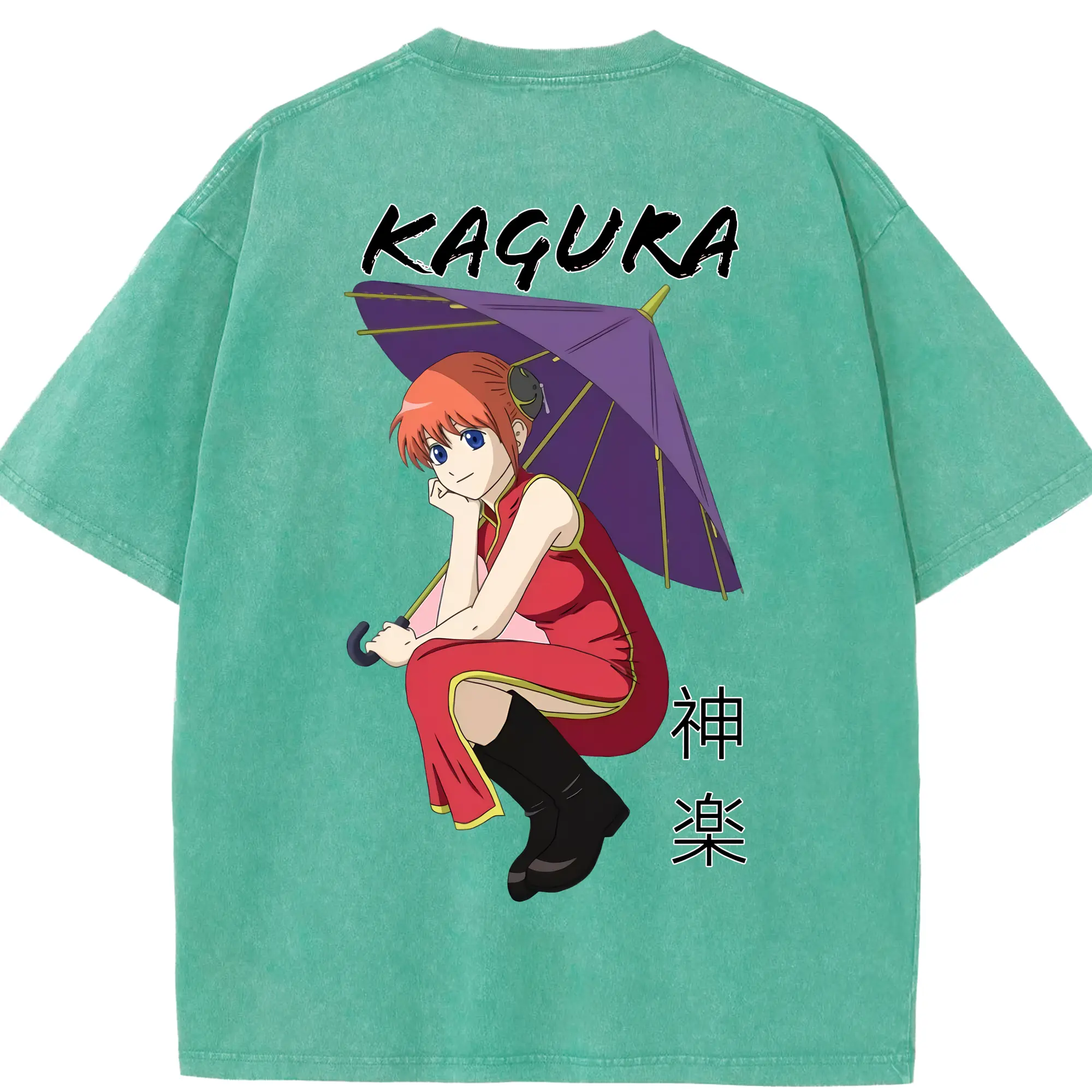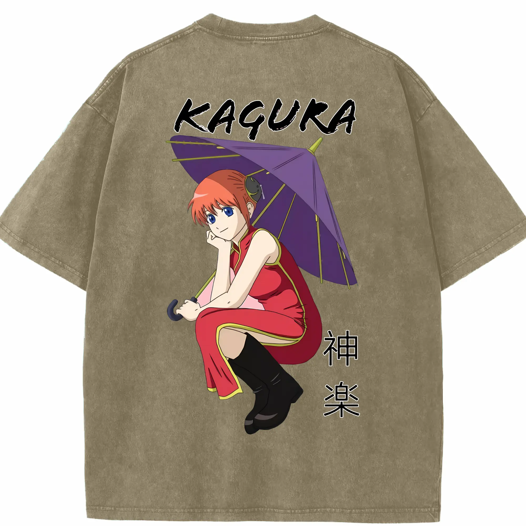 銀魂 グッズ 神楽 - 綿100% ヴィンテージ風 半袖Tシャツ ・ フロントプリント ・ 柔らか肌触り ・ 通気性 快適 ・ スポーツ カジュアル 外出用