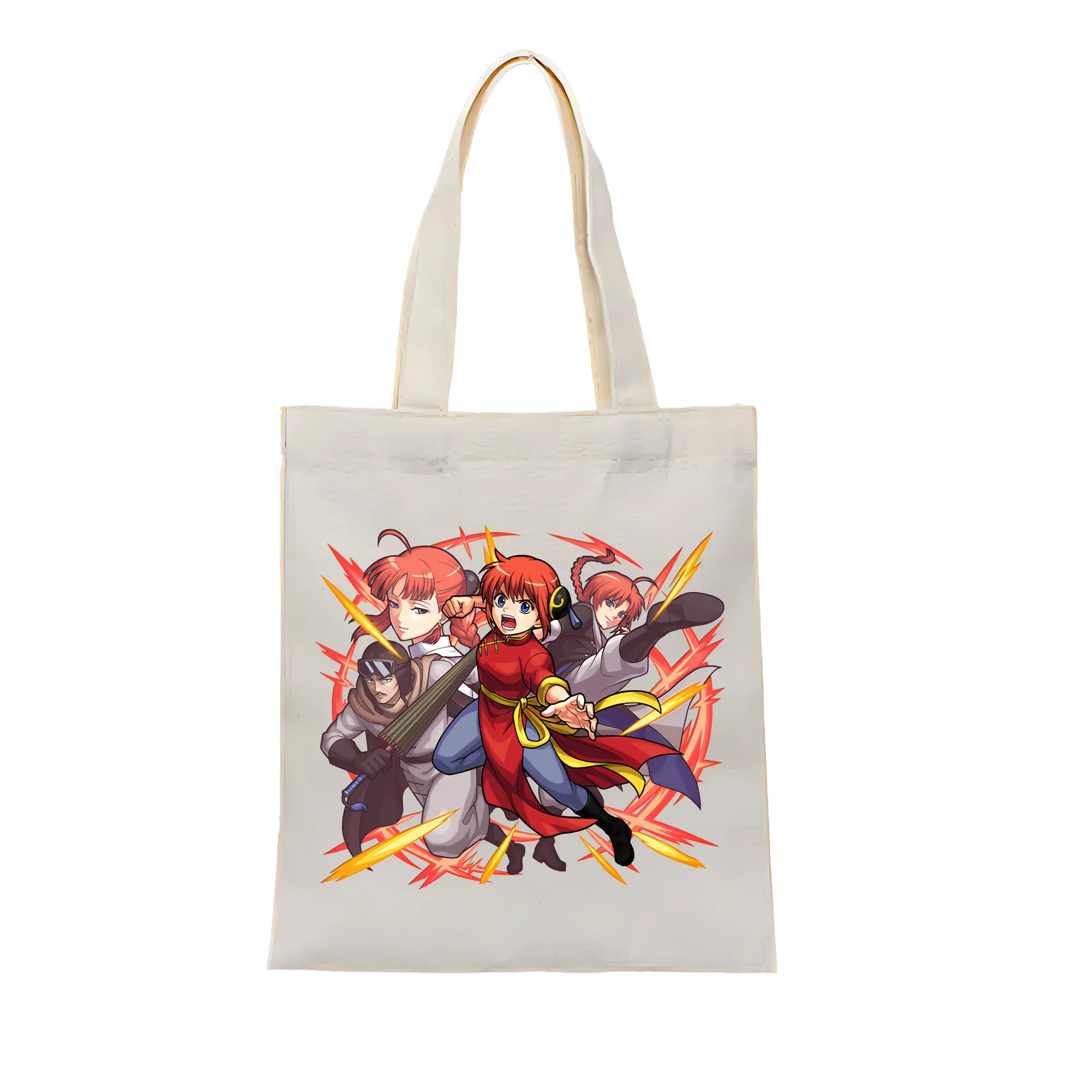 銀魂 グッズ 神楽 - 縦型キャンバス手提げバッグ(トートバッグ) ・ キャンバス素材 ・ ショッピング用 ・ 軽量 丈夫 お手入れ簡単