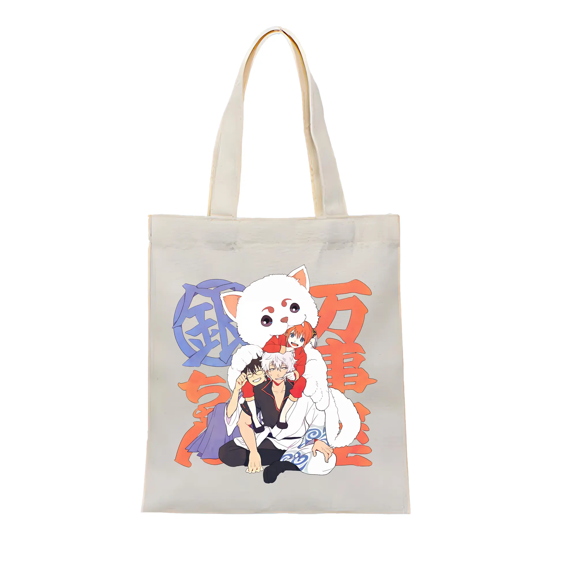 銀魂 グッズ 神楽 - 縦型キャンバス手提げバッグ(トートバッグ) ・ キャンバス素材 ・ ショッピング用 ・ 軽量 丈夫 お手入れ簡単