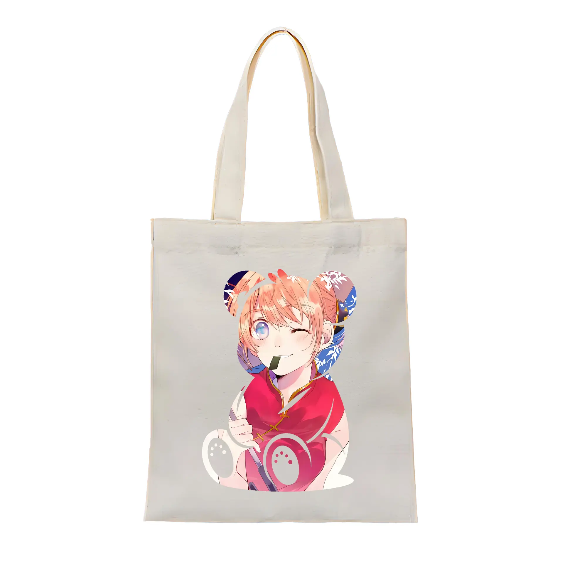 銀魂 グッズ 神楽 - 縦型キャンバス手提げバッグ(トートバッグ) ・ キャンバス素材 ・ ショッピング用 ・ 軽量 丈夫 お手入れ簡単