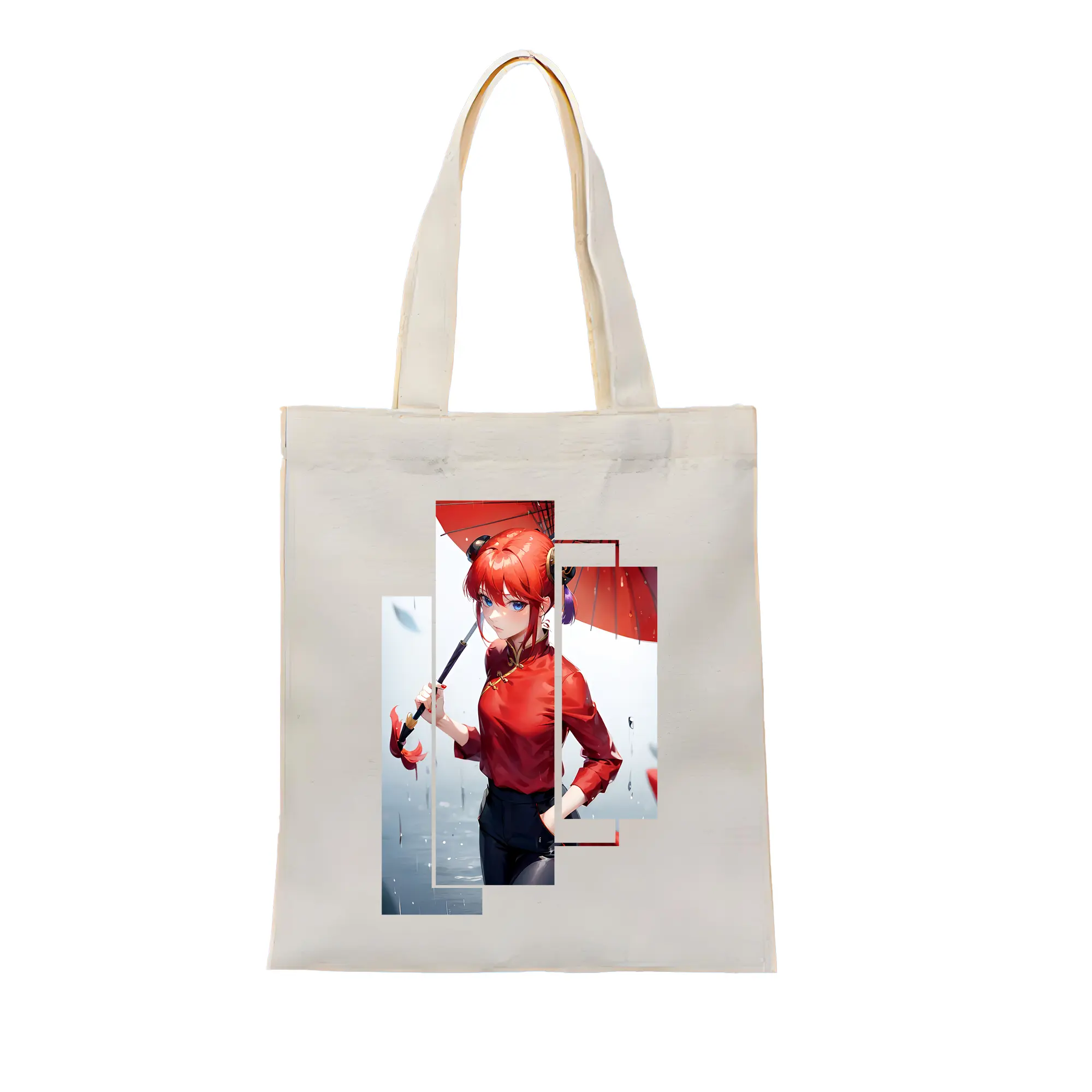 銀魂 グッズ 神楽 - 縦型キャンバス手提げバッグ(トートバッグ) ・ キャンバス素材 ・ ショッピング用 ・ 軽量 丈夫 お手入れ簡単