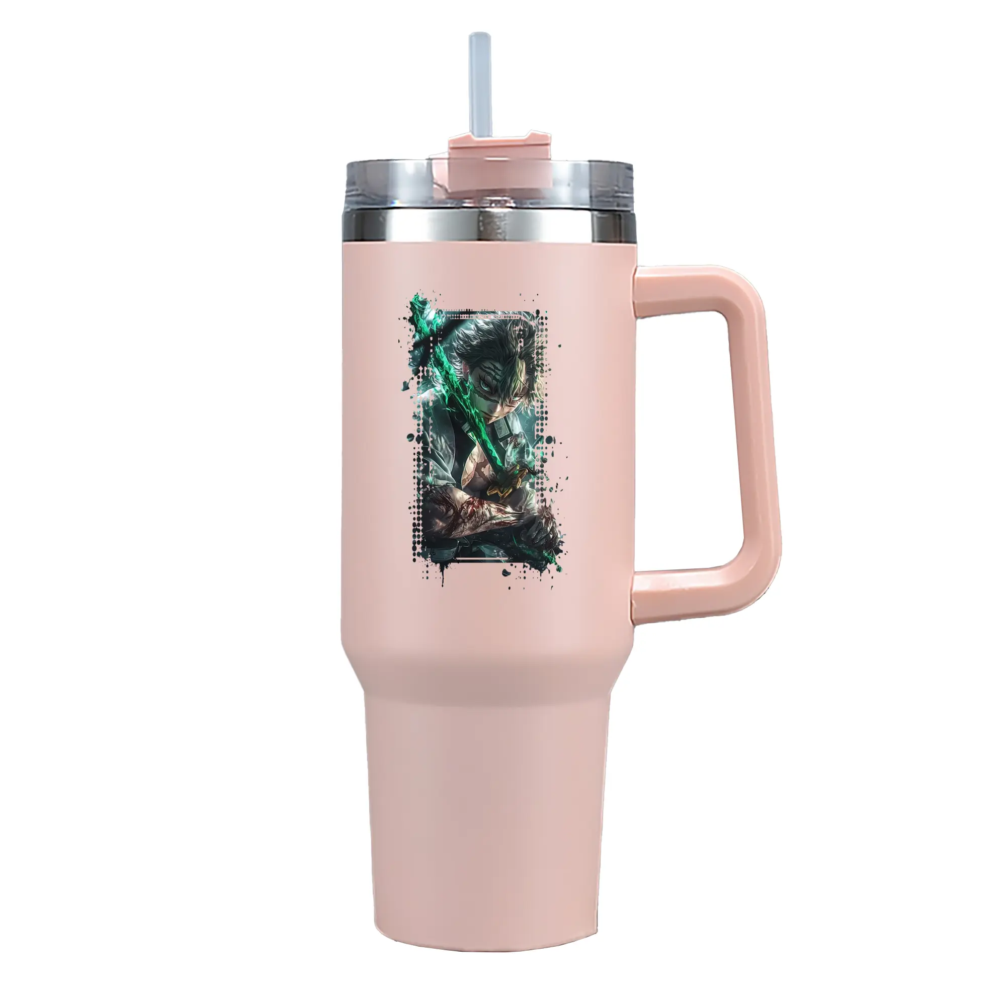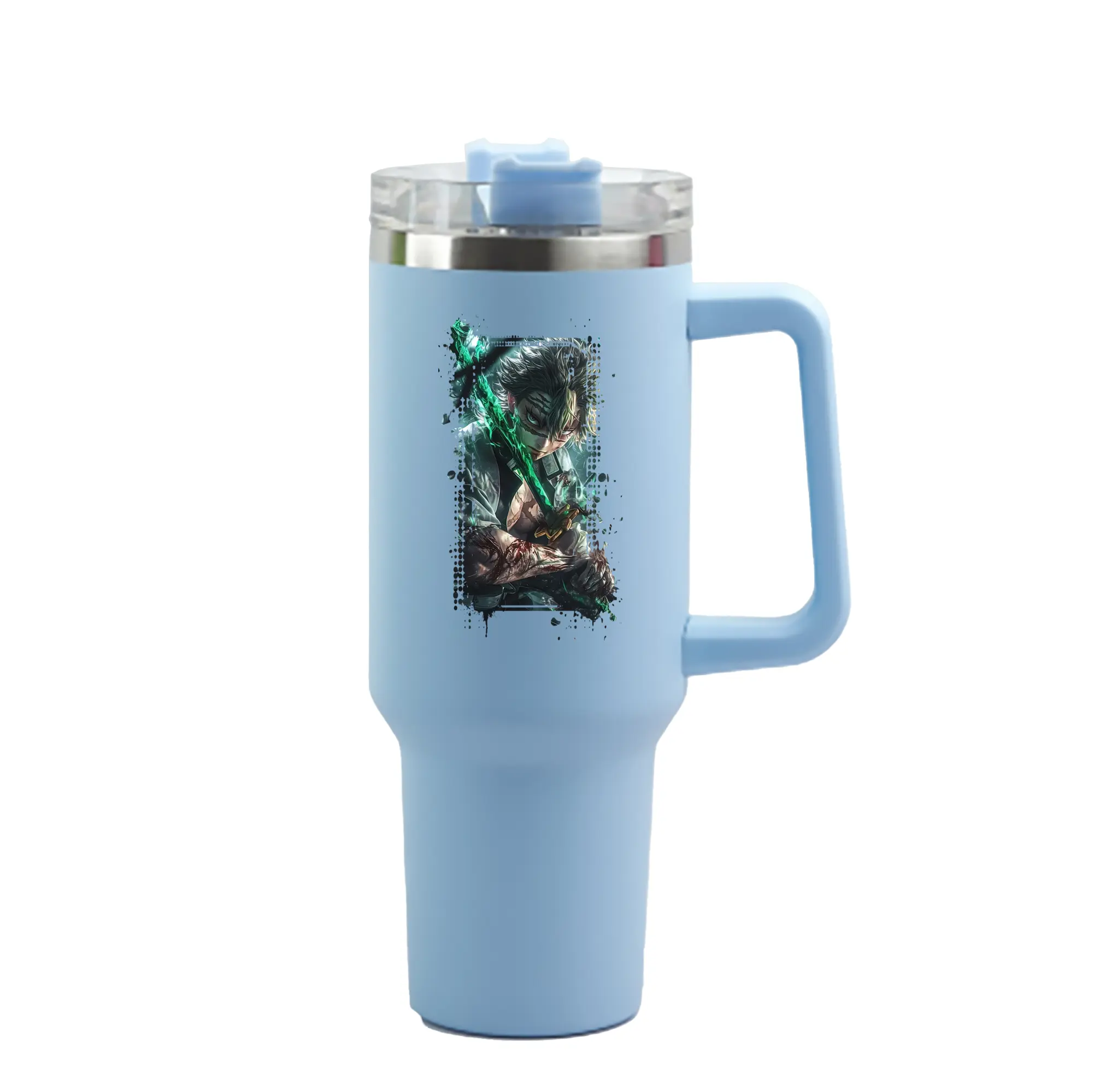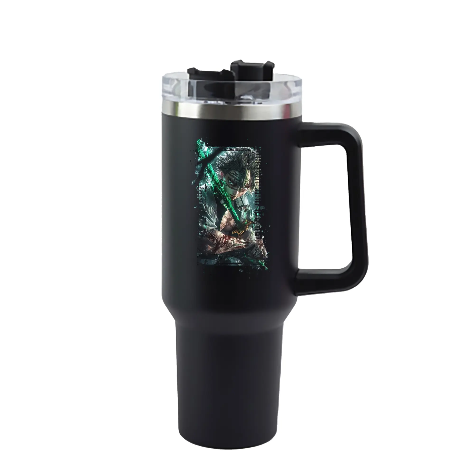 鬼滅の刃 グッズ,不死川 実弥 - 1200mL 車用タンブラー ・ クリスタルステッカー ・ 304ステンレス 内側 ・ 201ステンレス 外側 ・ 保温 保冷 ・ ハンドル&ストロー付き ・ 通勤 ドライブ アウトドア用