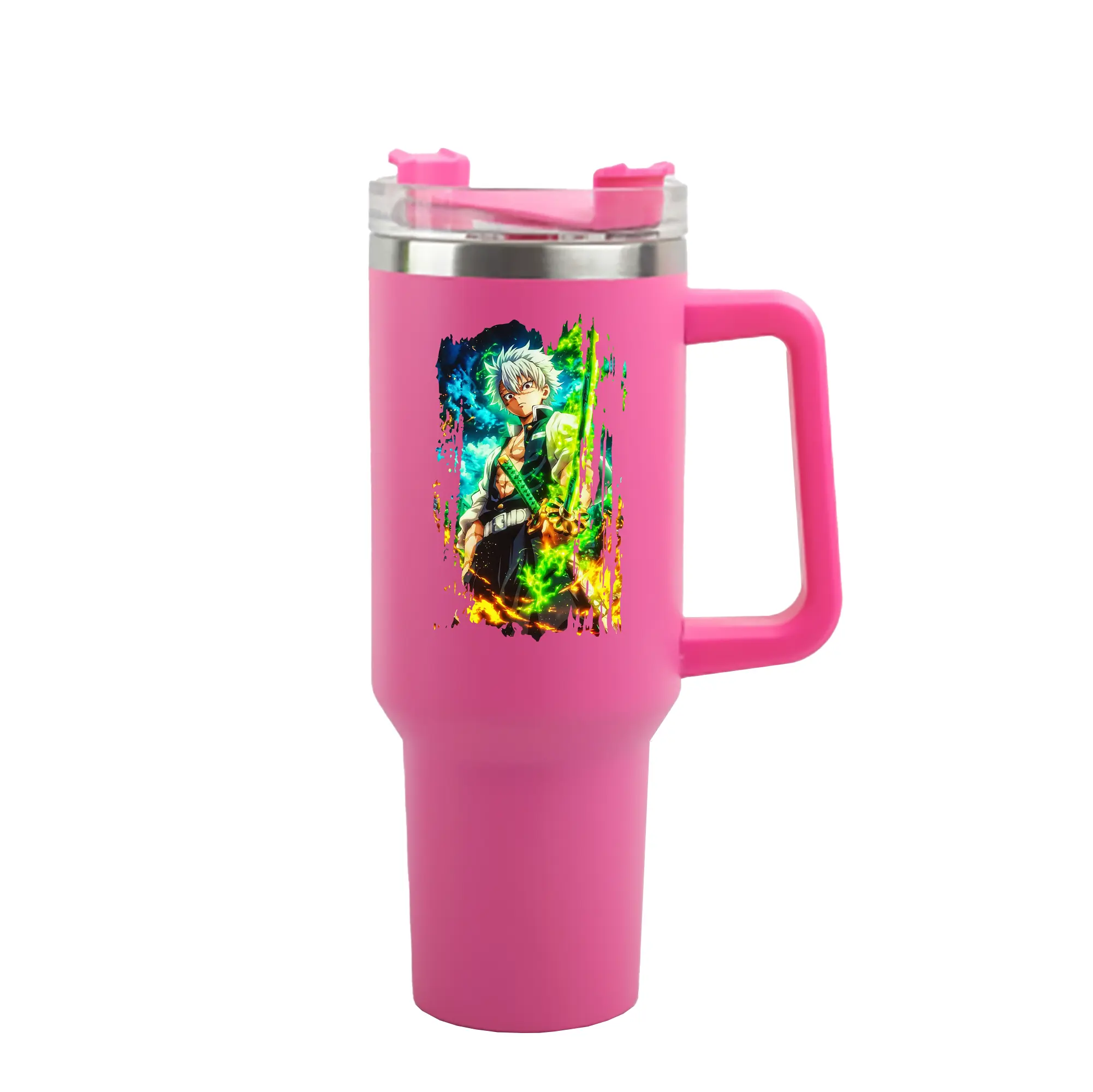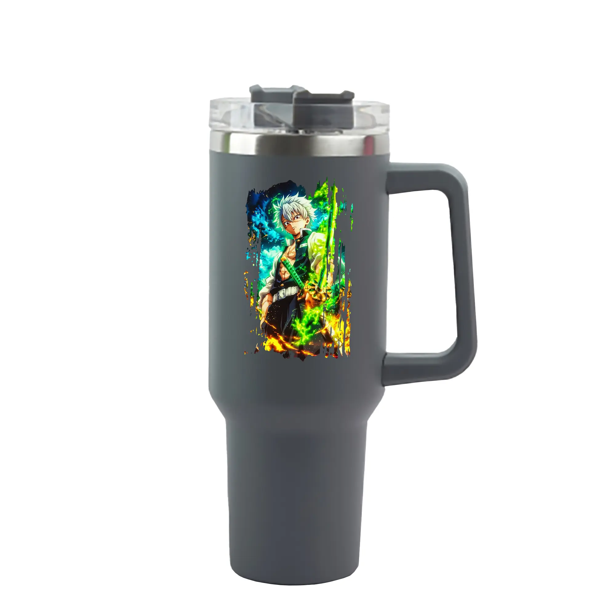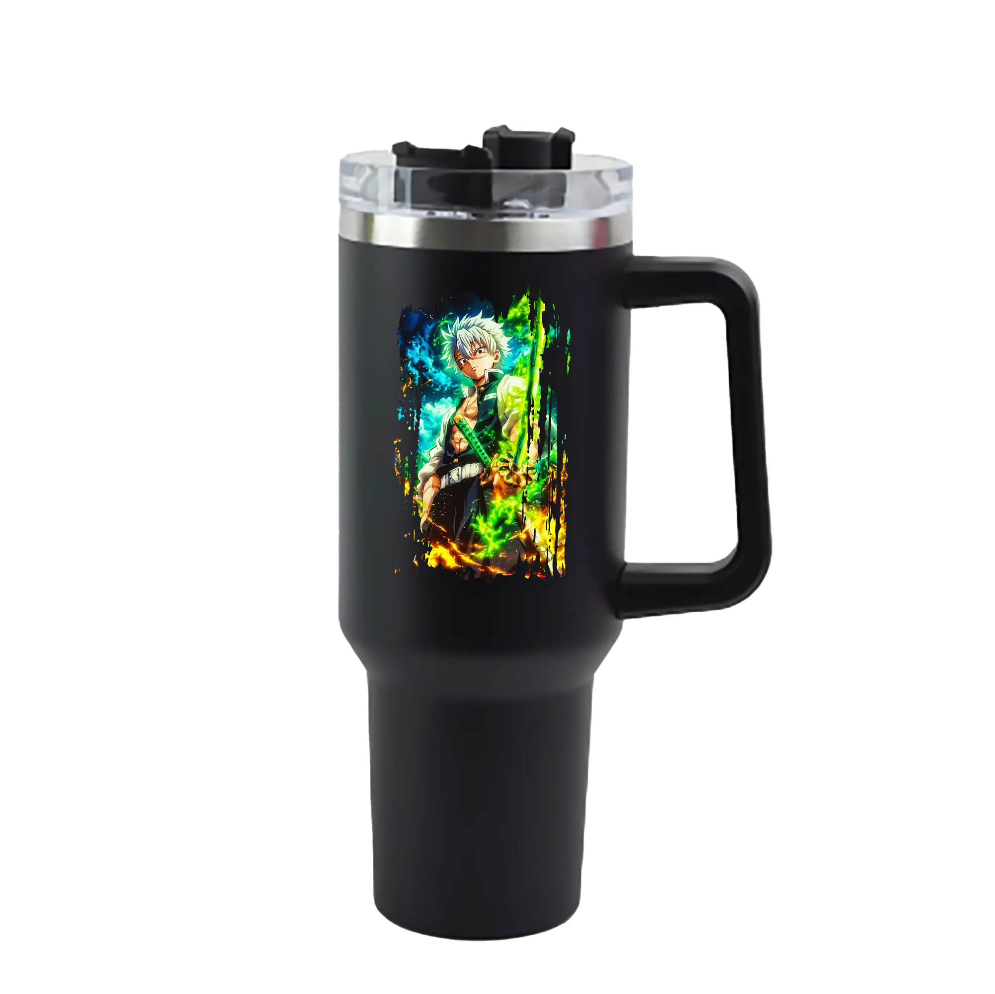 鬼滅の刃 グッズ,不死川 実弥 - 1200mL 車用タンブラー ・ クリスタルステッカー ・ 304ステンレス 内側 ・ 201ステンレス 外側 ・ 保温 保冷 ・ ハンドル&ストロー付き ・ 通勤 ドライブ アウトドア用