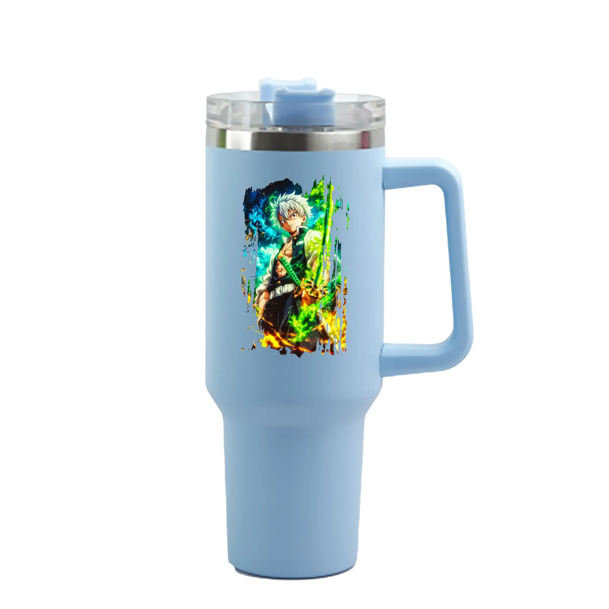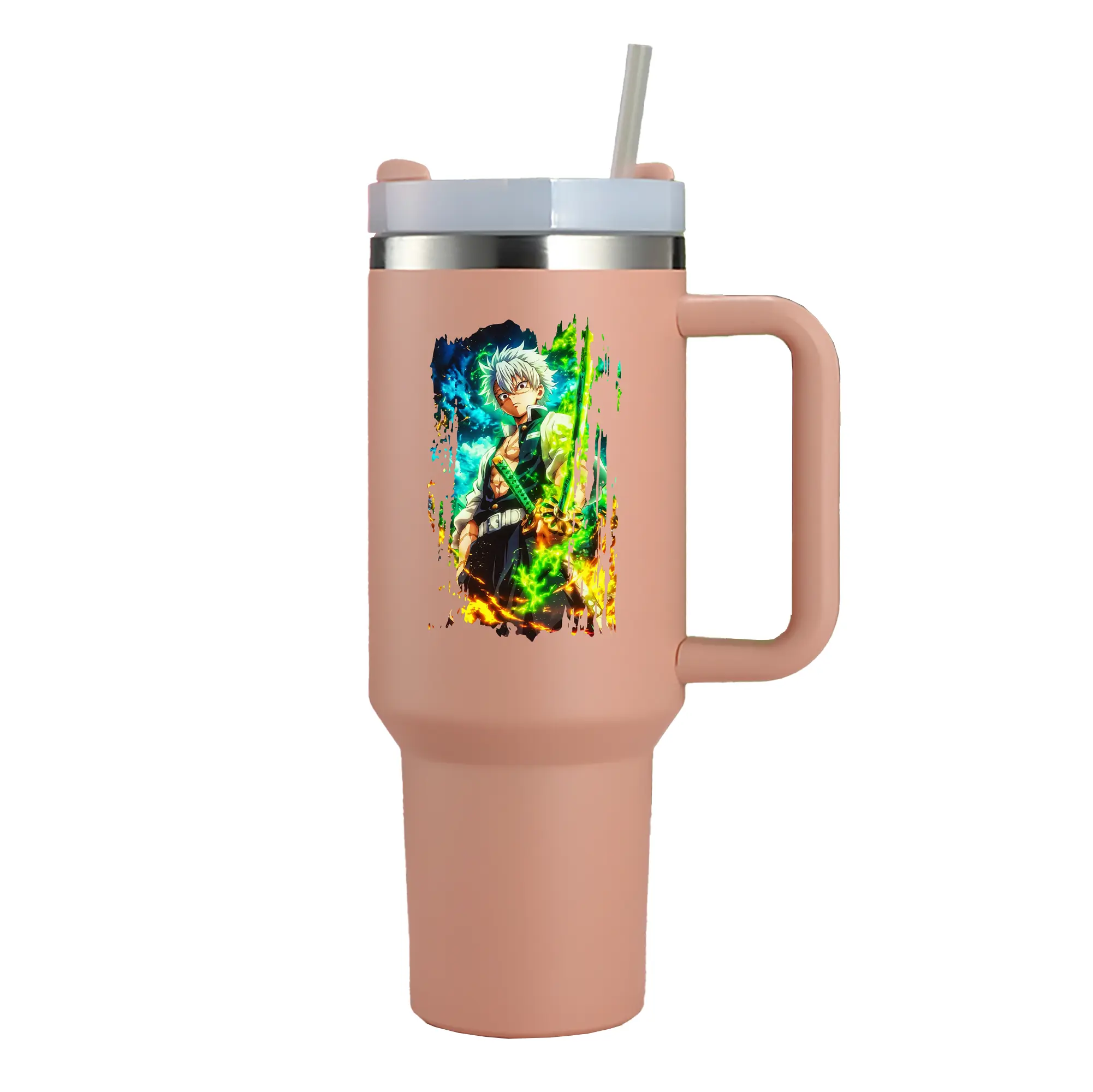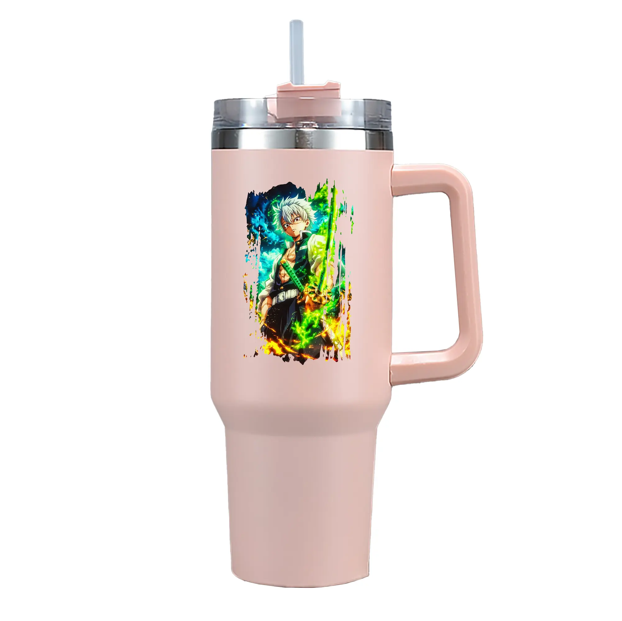鬼滅の刃 グッズ,不死川 実弥 - 1200mL 車用タンブラー ・ クリスタルステッカー ・ 304ステンレス 内側 ・ 201ステンレス 外側 ・ 保温 保冷 ・ ハンドル&ストロー付き ・ 通勤 ドライブ アウトドア用
