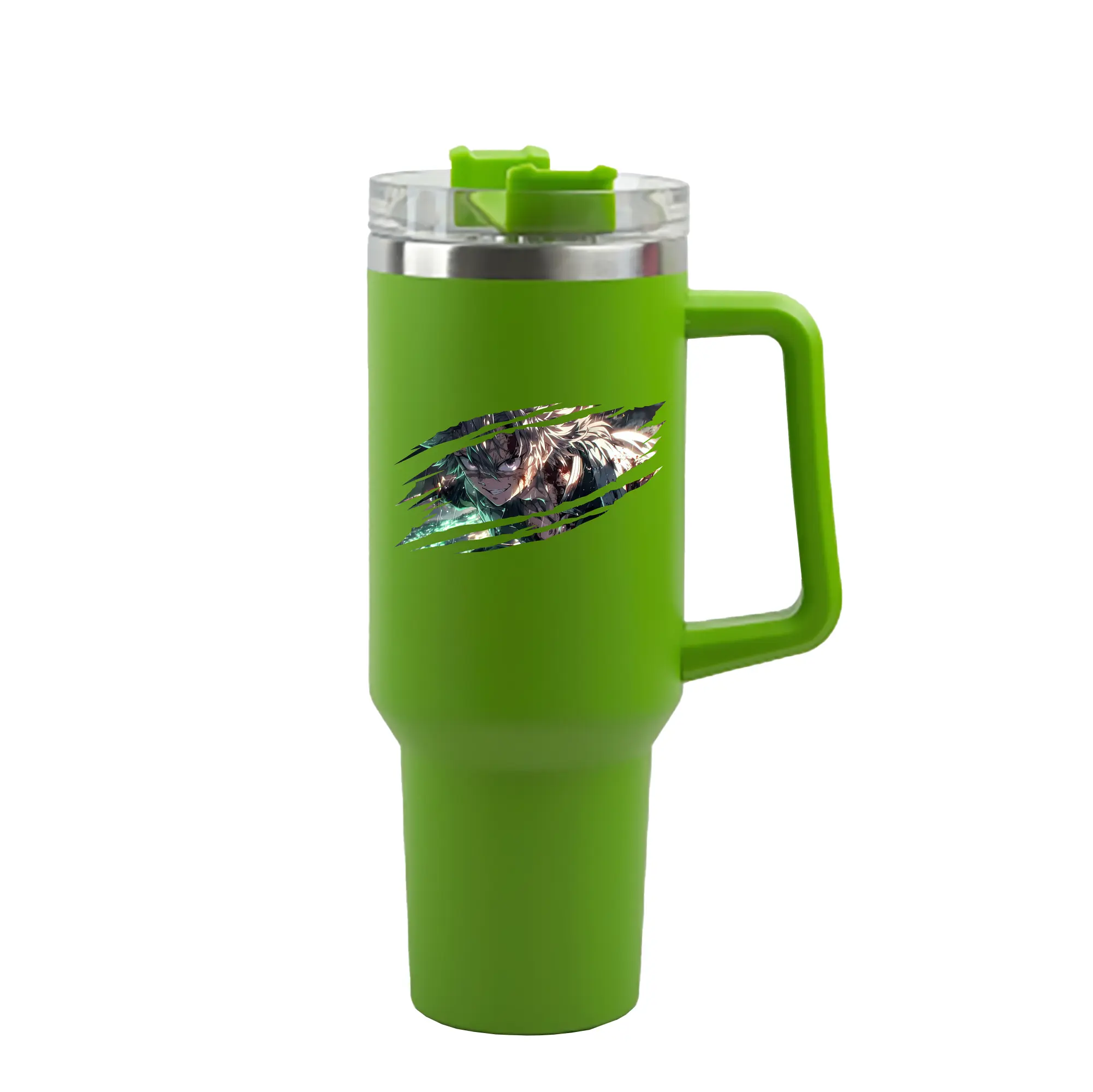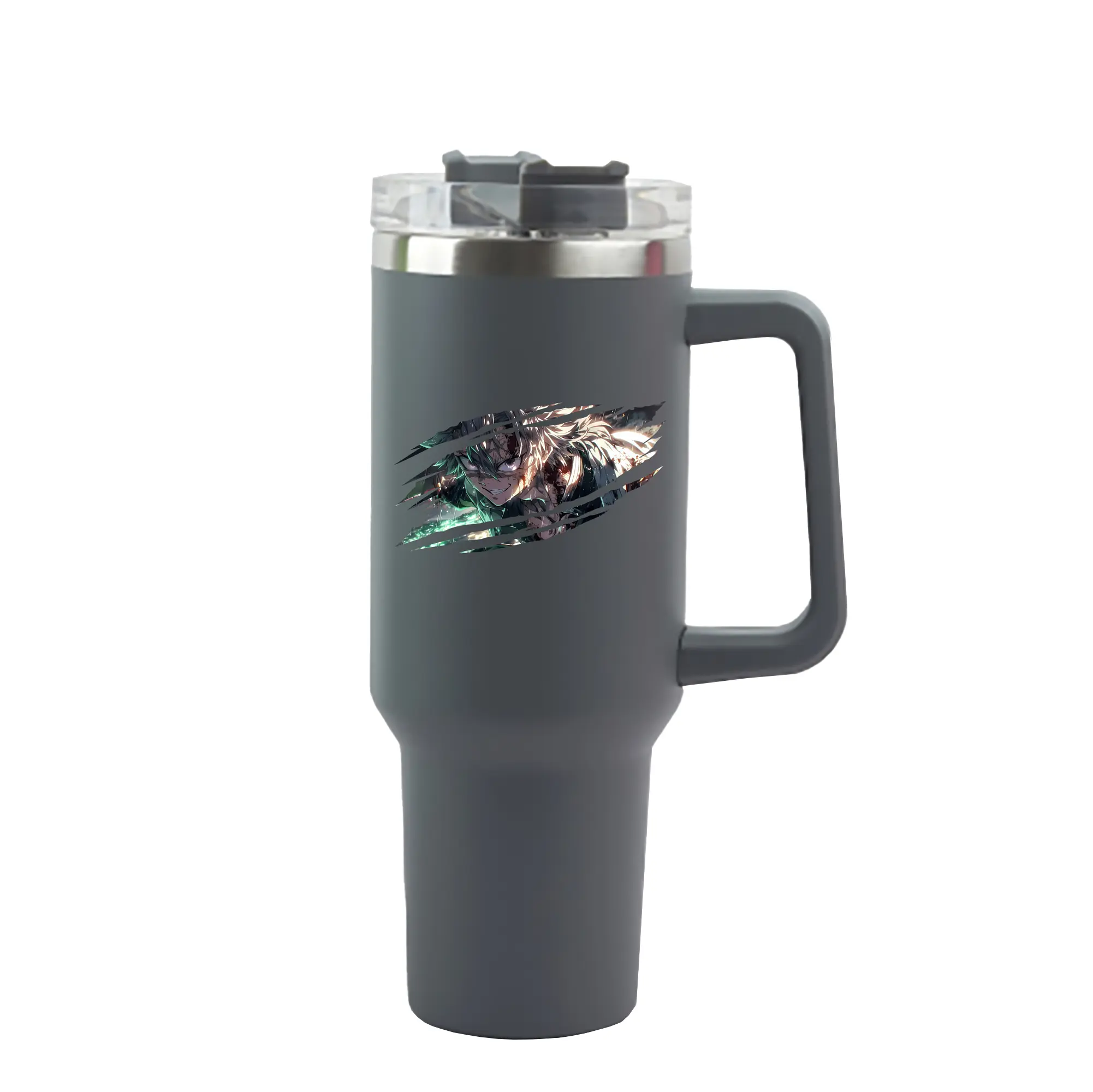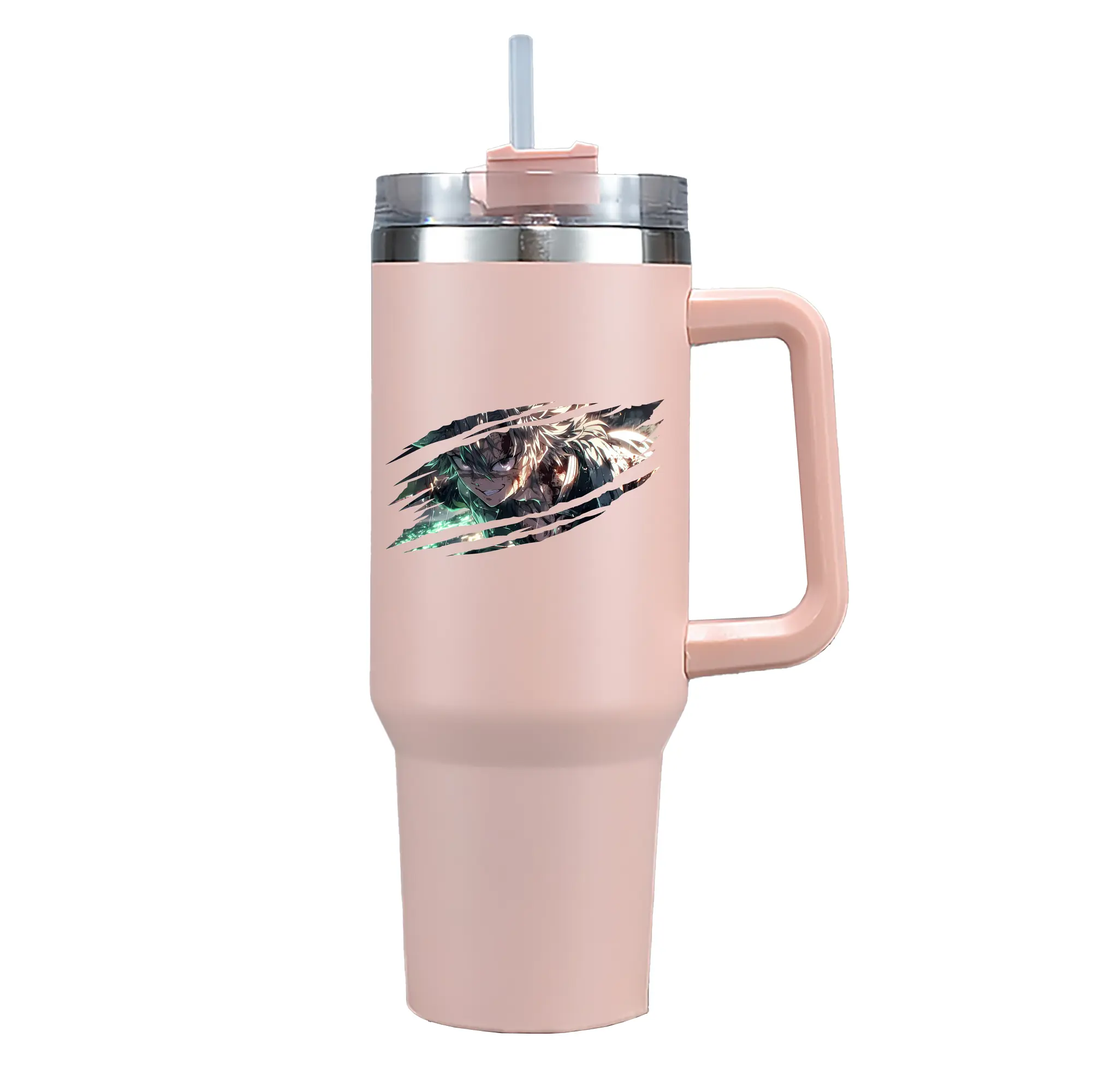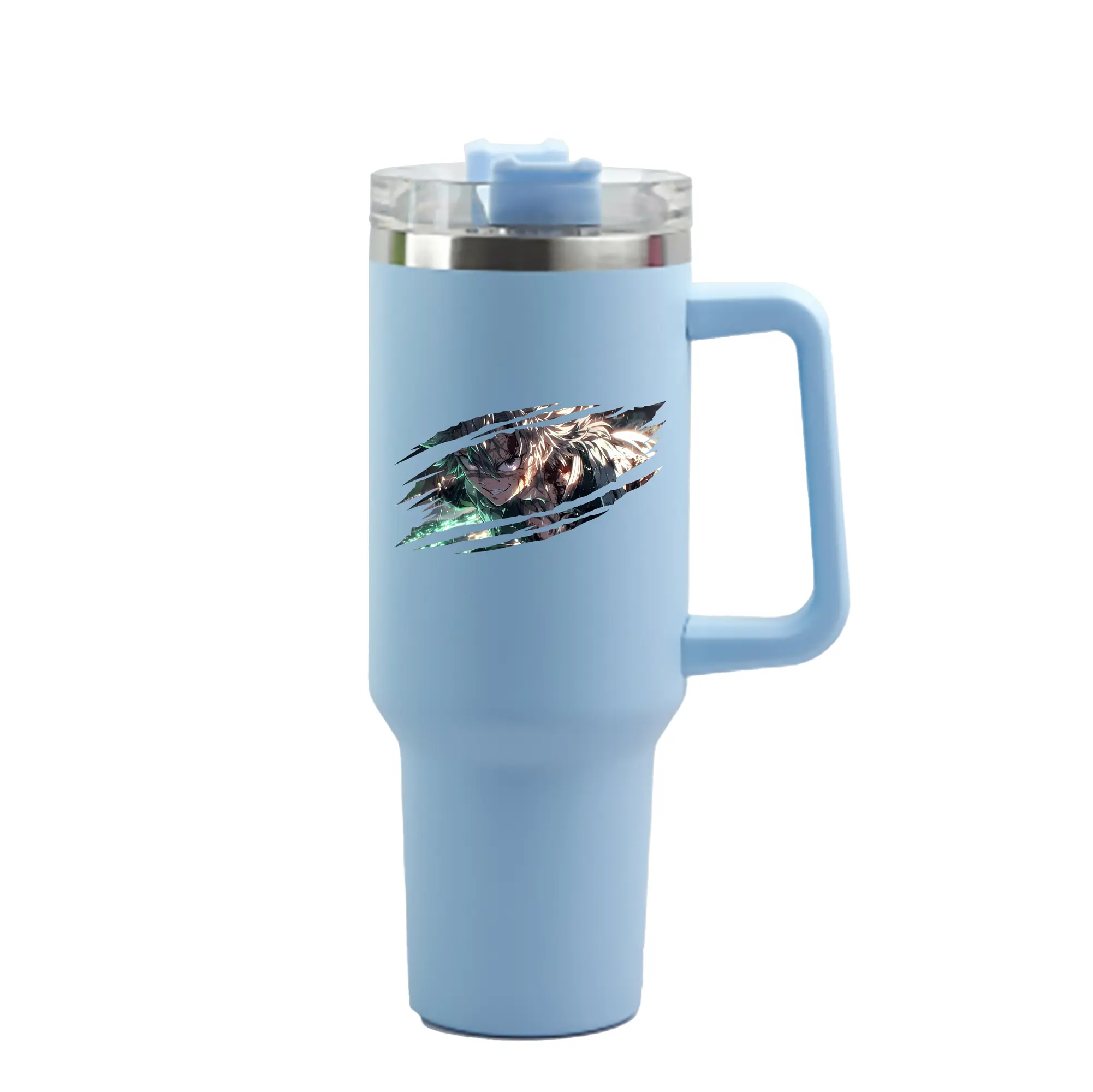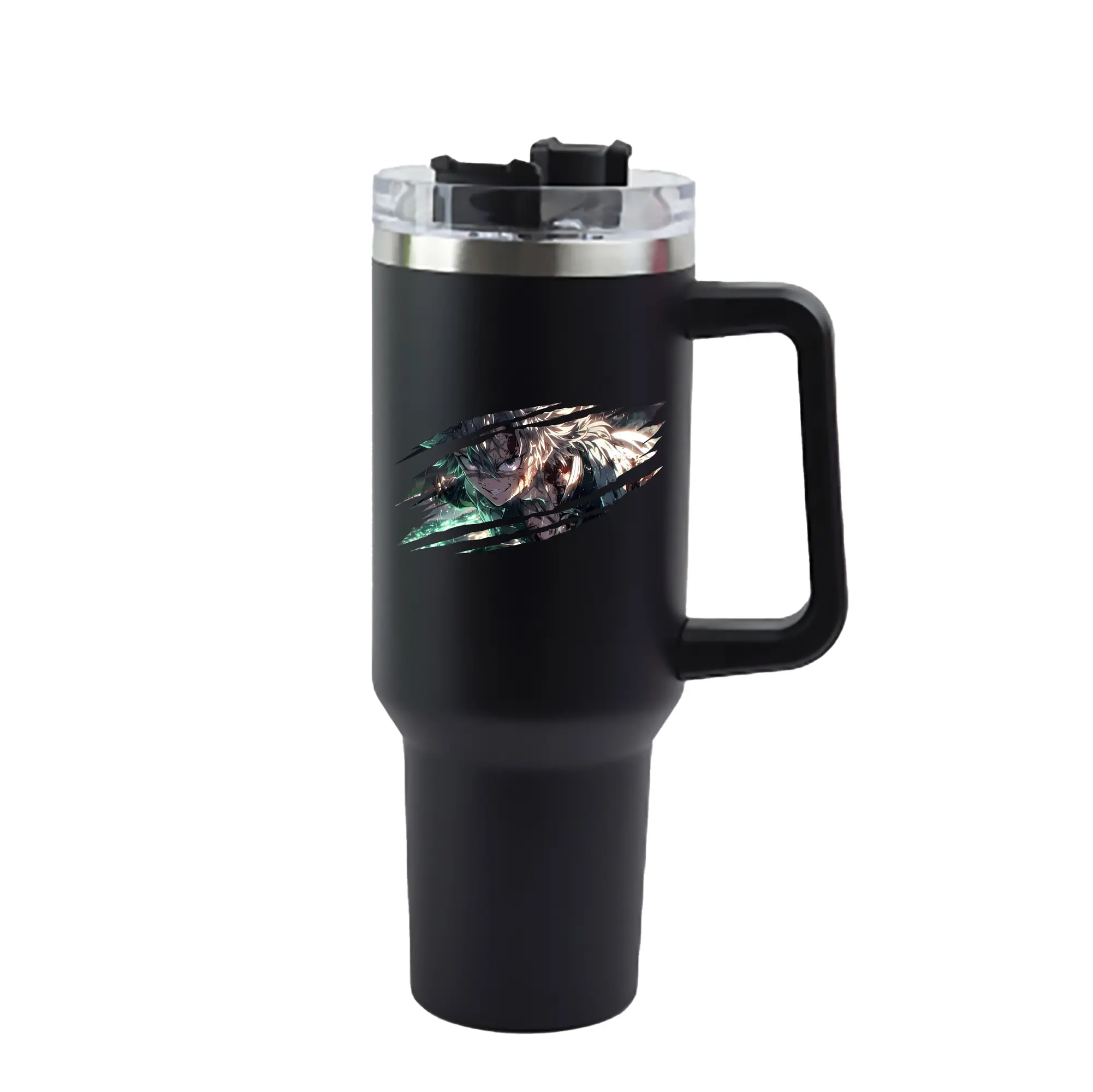 鬼滅の刃 グッズ,不死川 実弥 - 1200mL 車用タンブラー ・ クリスタルステッカー ・ 304ステンレス 内側 ・ 201ステンレス 外側 ・ 保温 保冷 ・ ハンドル&ストロー付き ・ 通勤 ドライブ アウトドア用