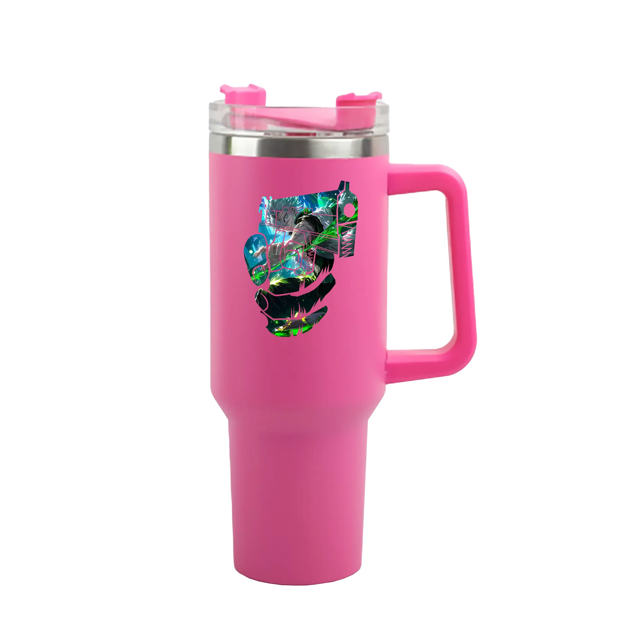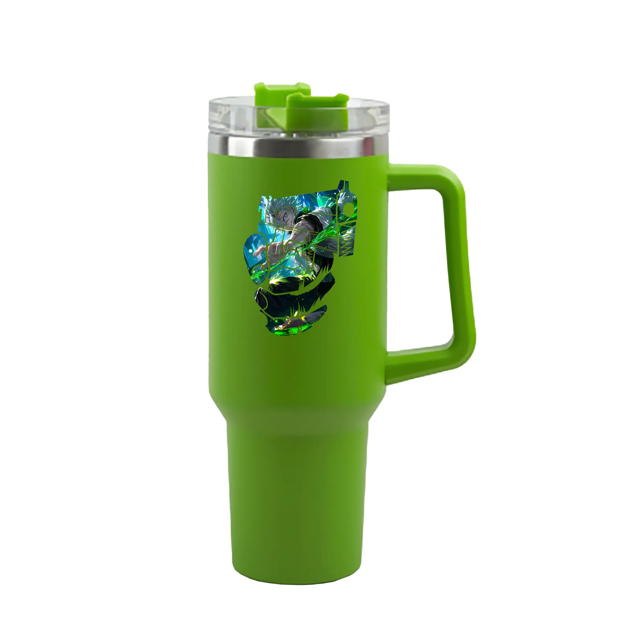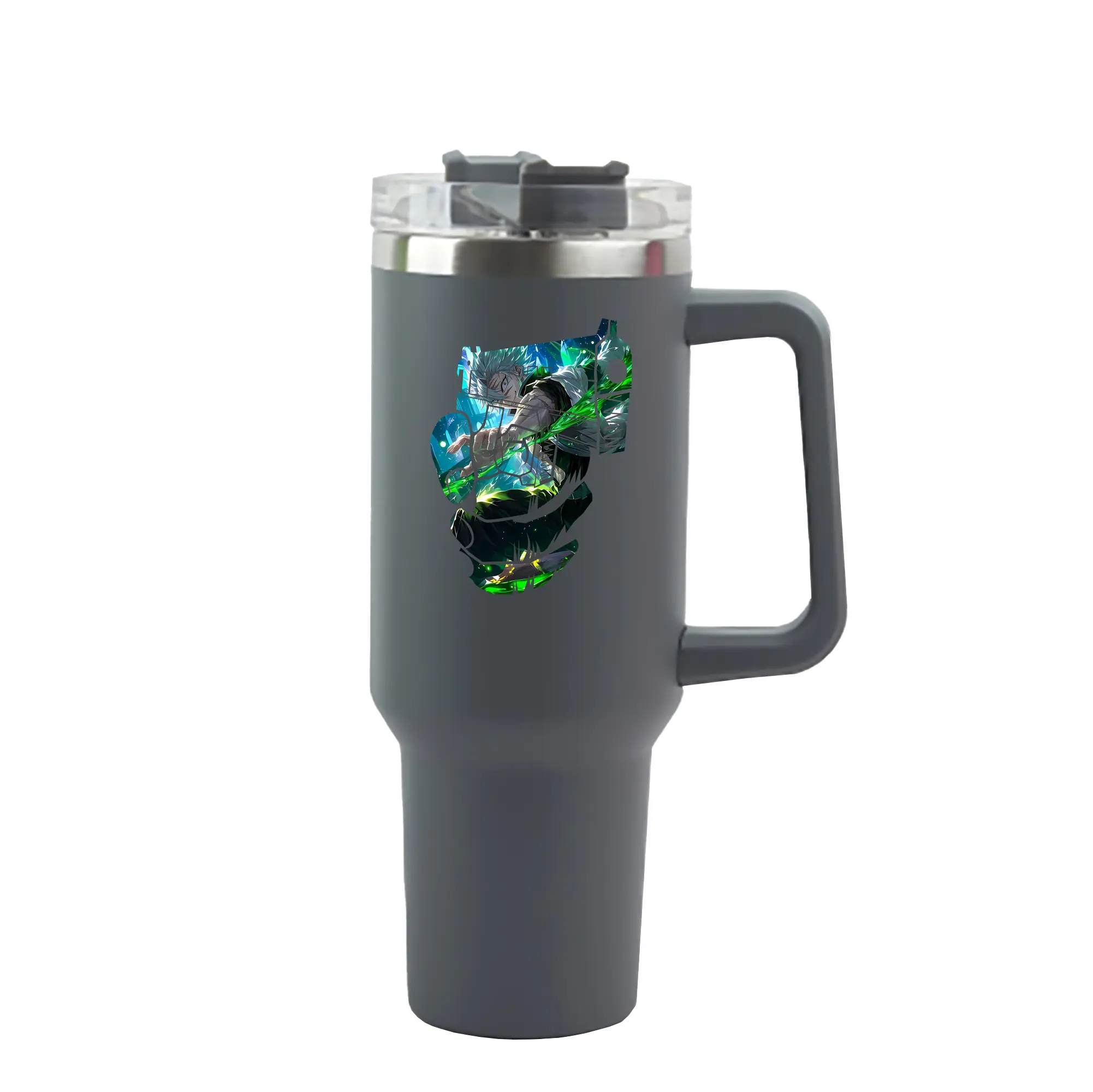 鬼滅の刃 グッズ,不死川 実弥 - 1200mL 車用タンブラー ・ クリスタルステッカー ・ 304ステンレス 内側 ・ 201ステンレス 外側 ・ 保温 保冷 ・ ハンドル&ストロー付き ・ 通勤 ドライブ アウトドア用
