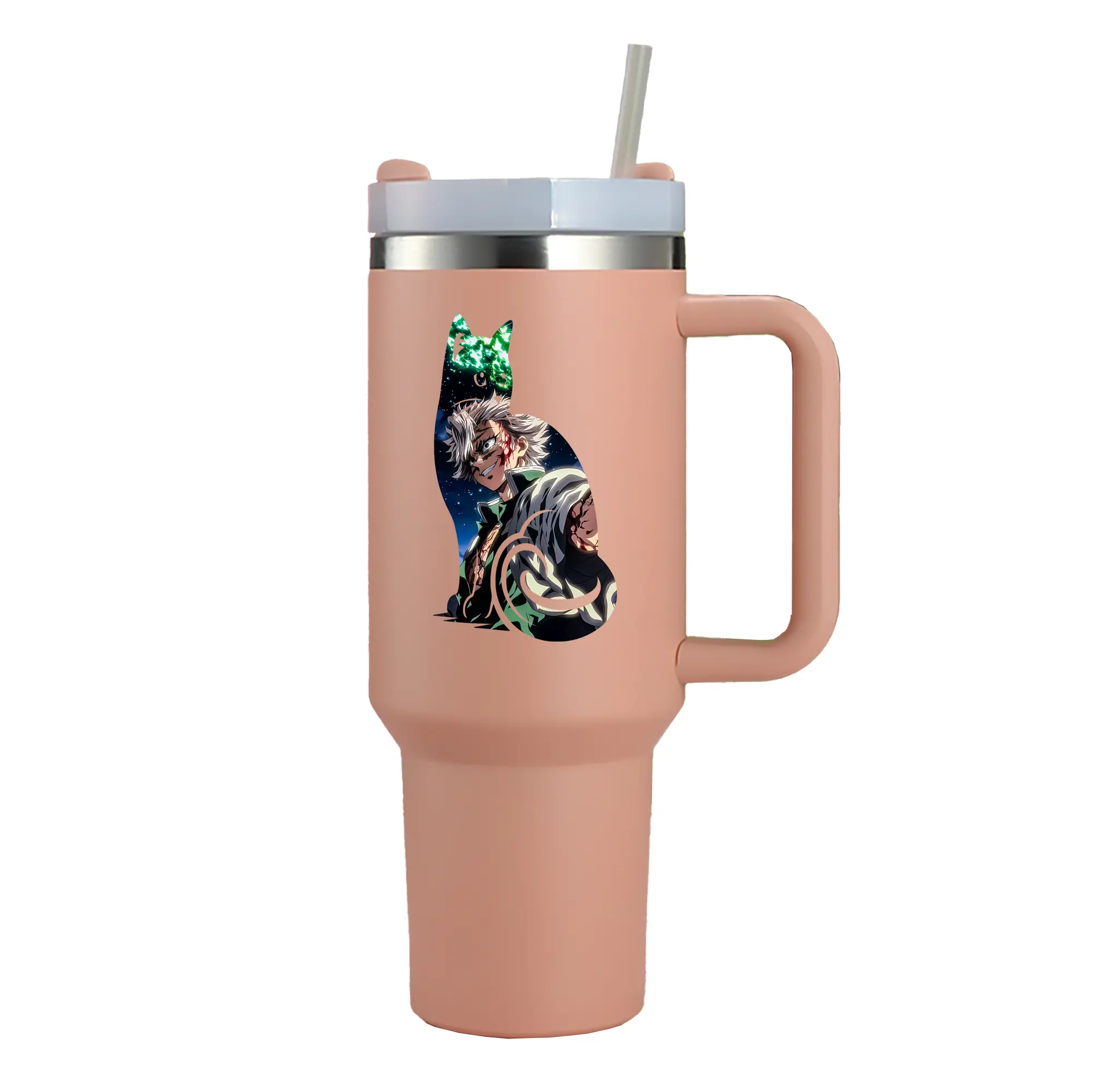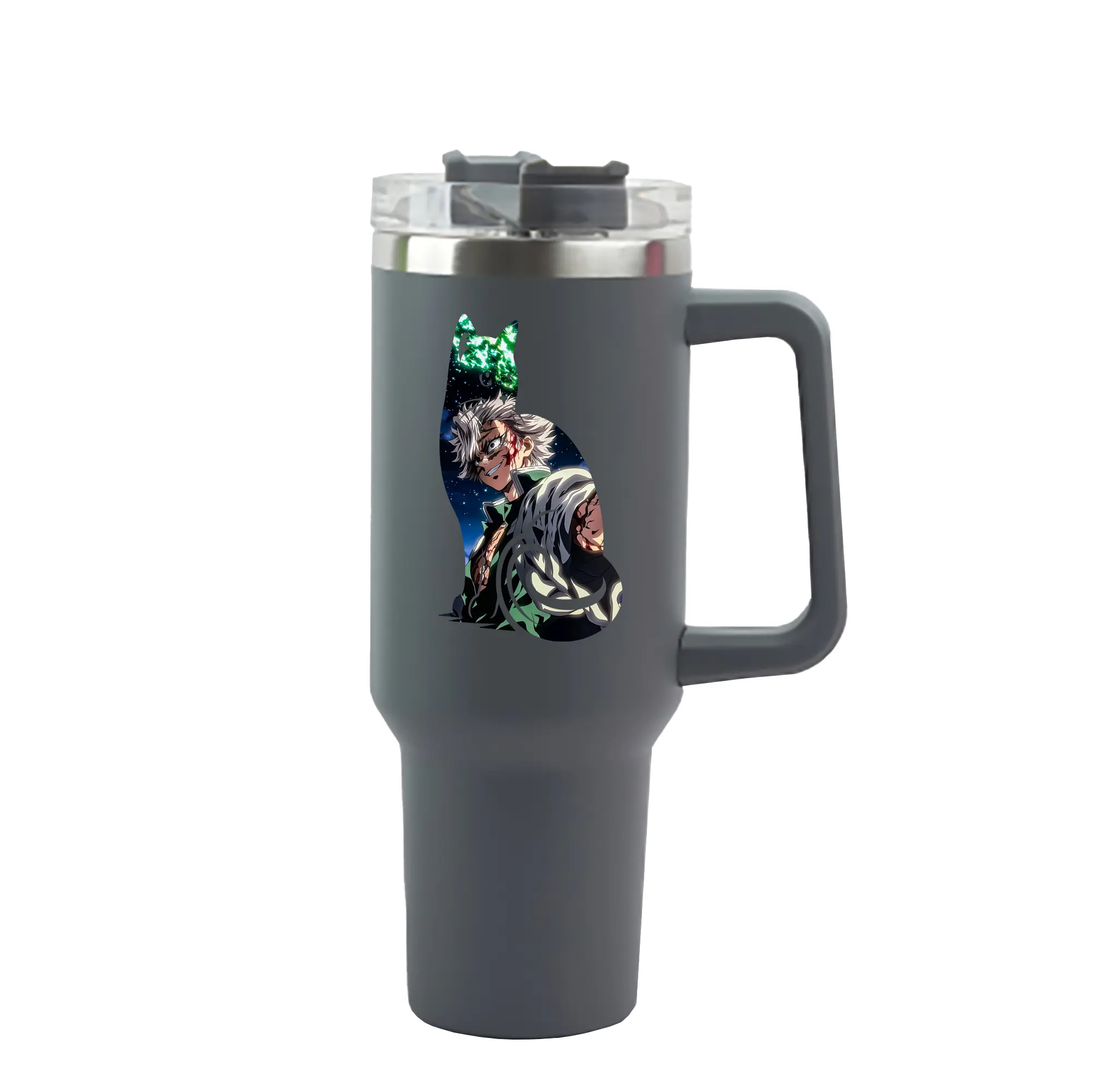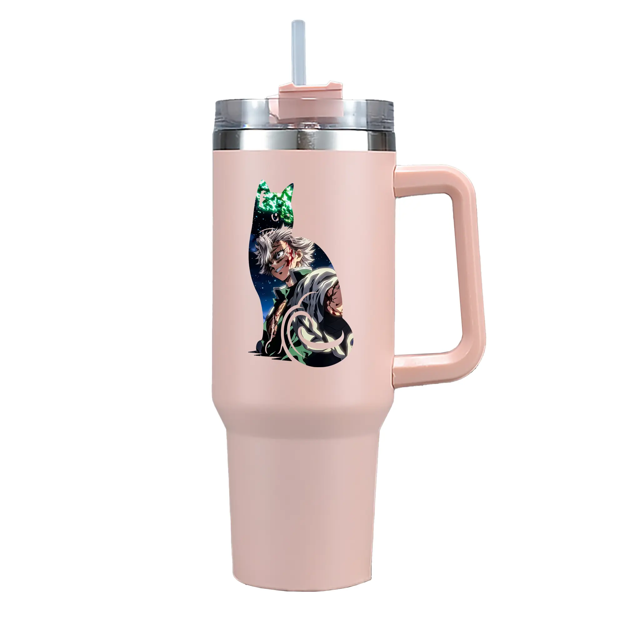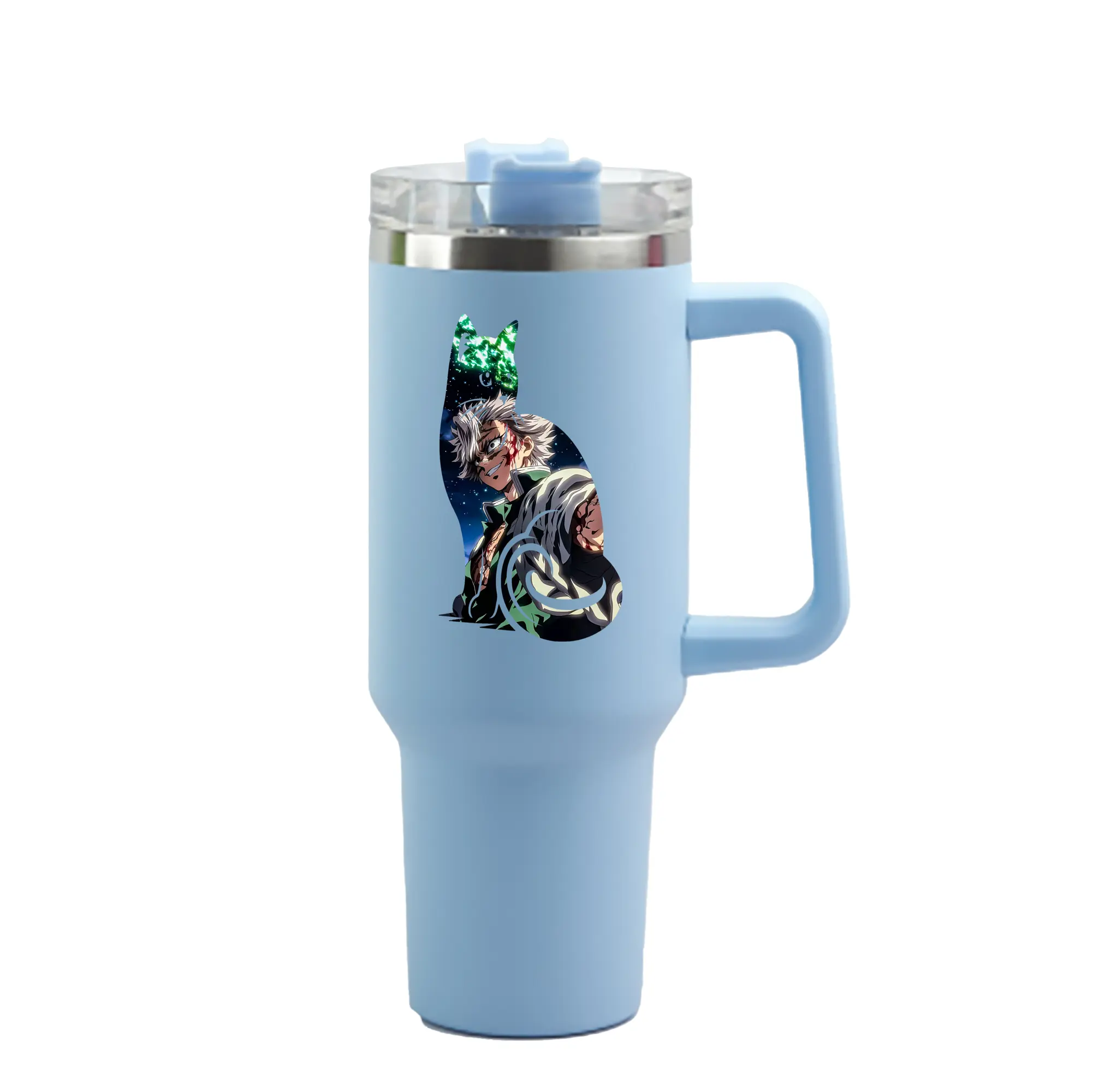 鬼滅の刃 グッズ,不死川 実弥 - 1200mL 車用タンブラー ・ クリスタルステッカー ・ 304ステンレス 内側 ・ 201ステンレス 外側 ・ 保温 保冷 ・ ハンドル&ストロー付き ・ 通勤 ドライブ アウトドア用