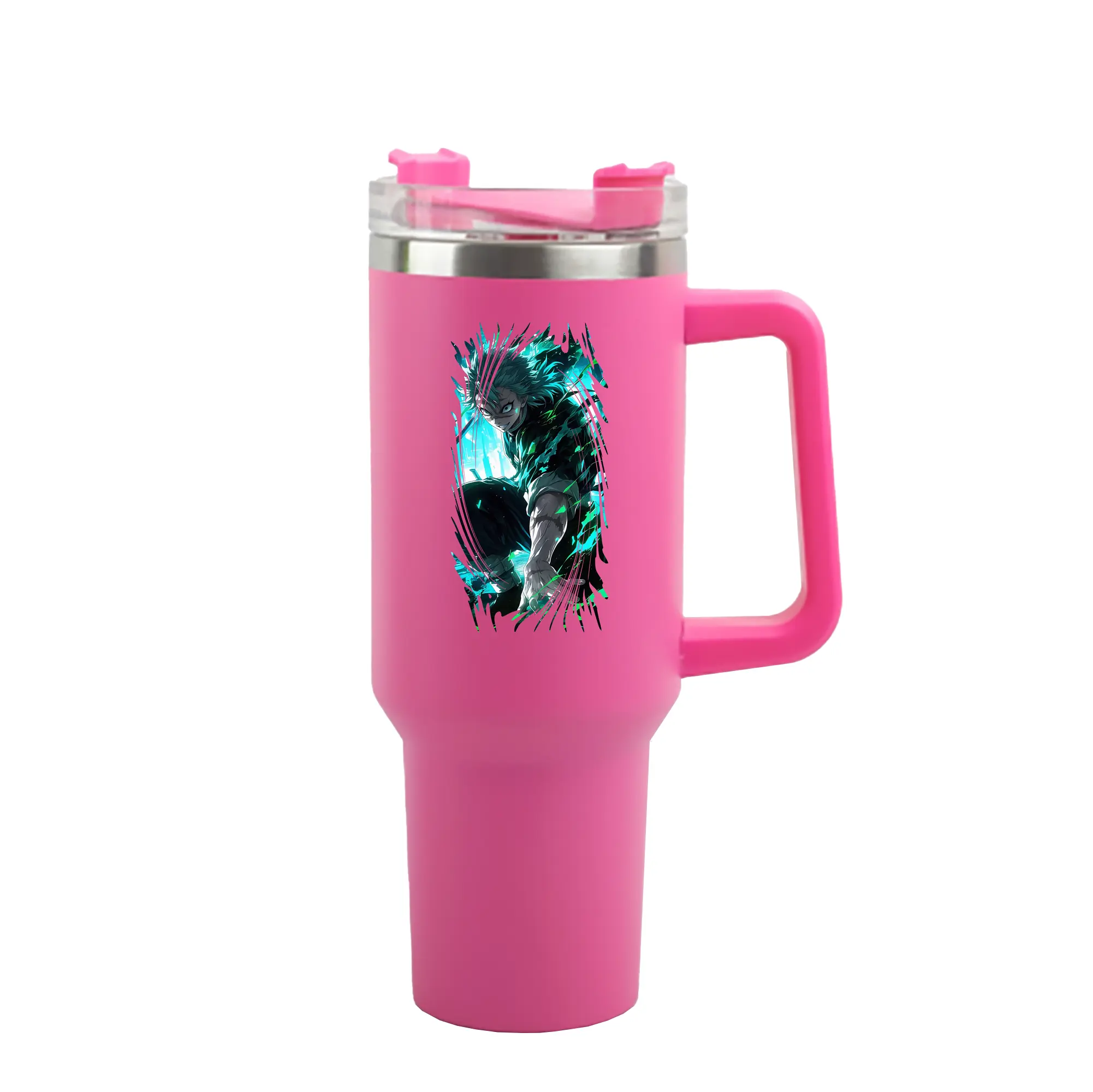 鬼滅の刃 グッズ,不死川 実弥 - 1200mL 車用タンブラー ・ クリスタルステッカー ・ 304ステンレス 内側 ・ 201ステンレス 外側 ・ 保温 保冷 ・ ハンドル&ストロー付き ・ 通勤 ドライブ アウトドア用