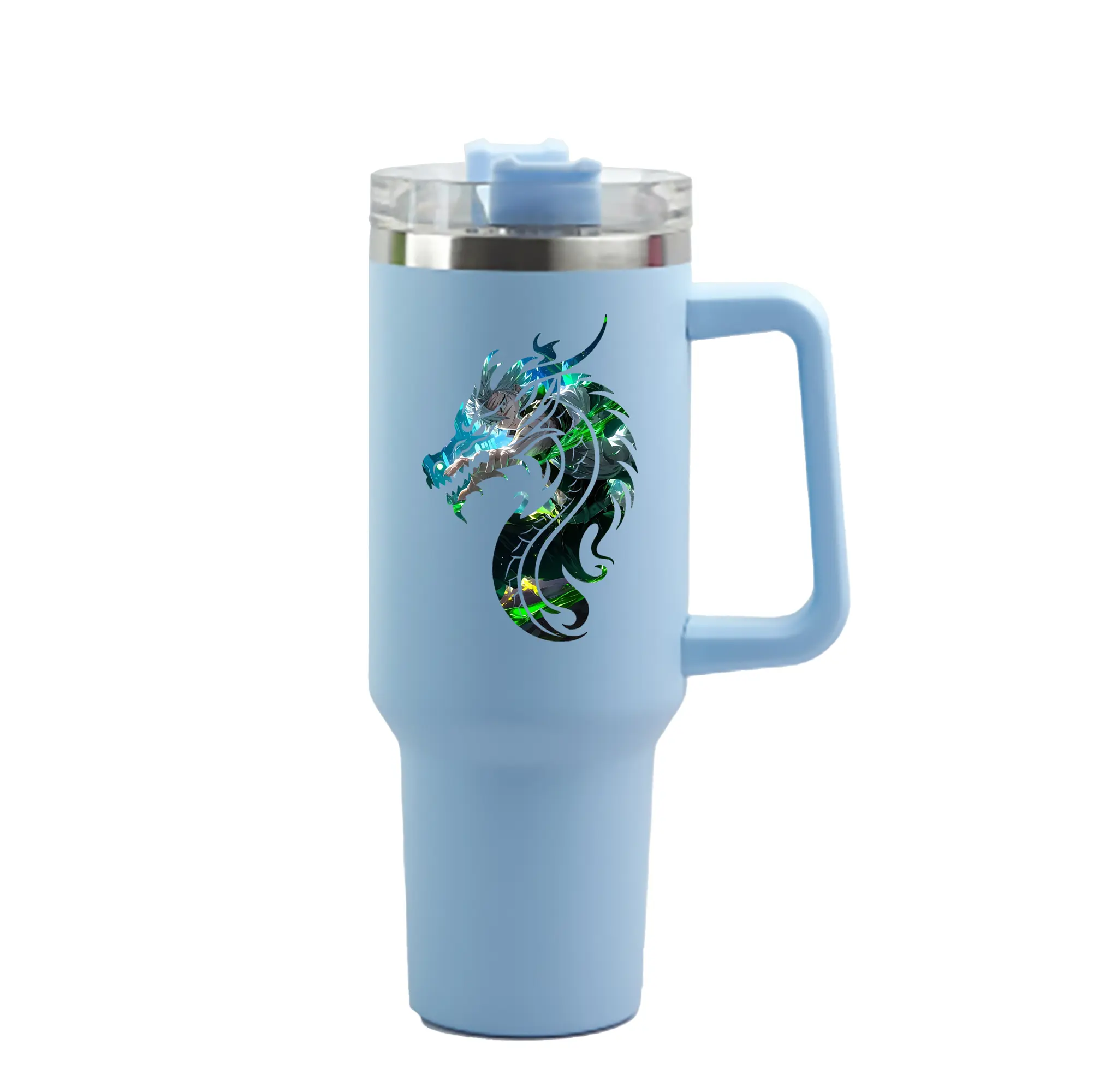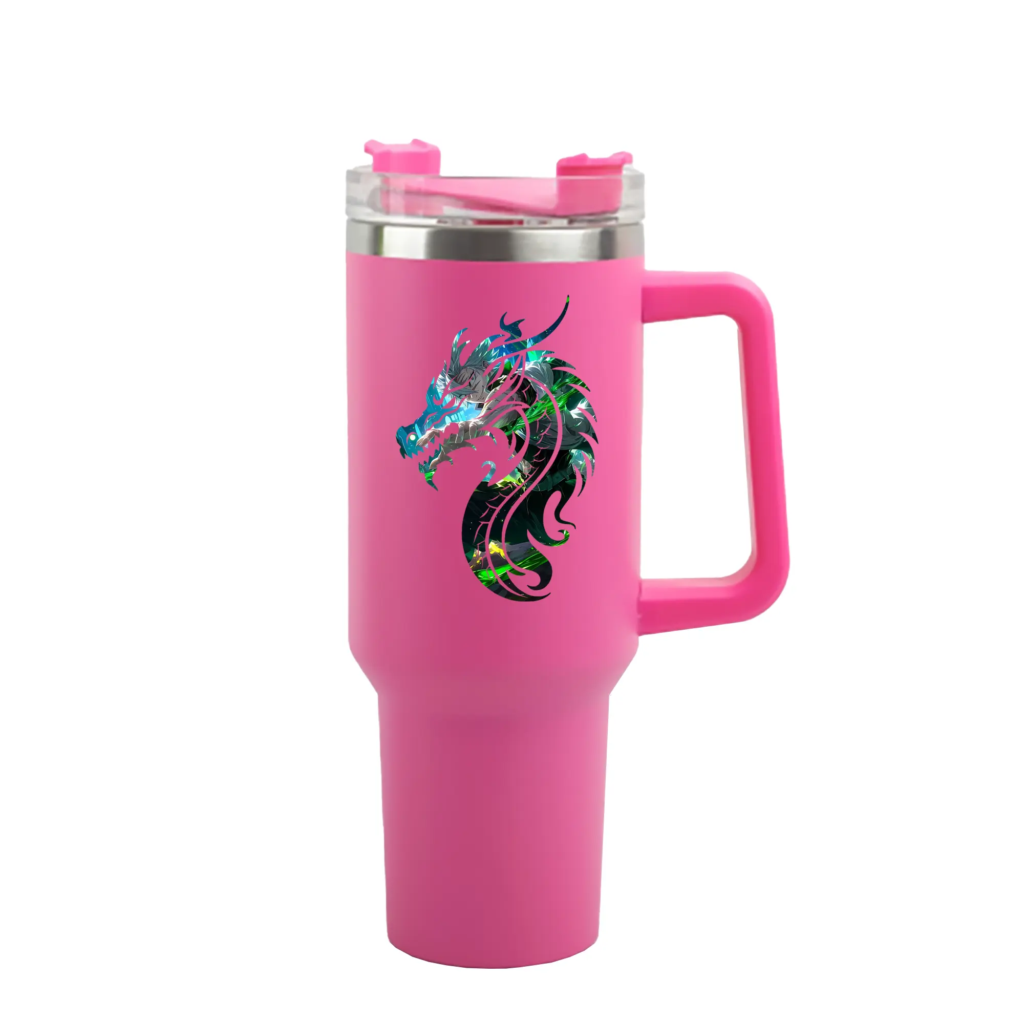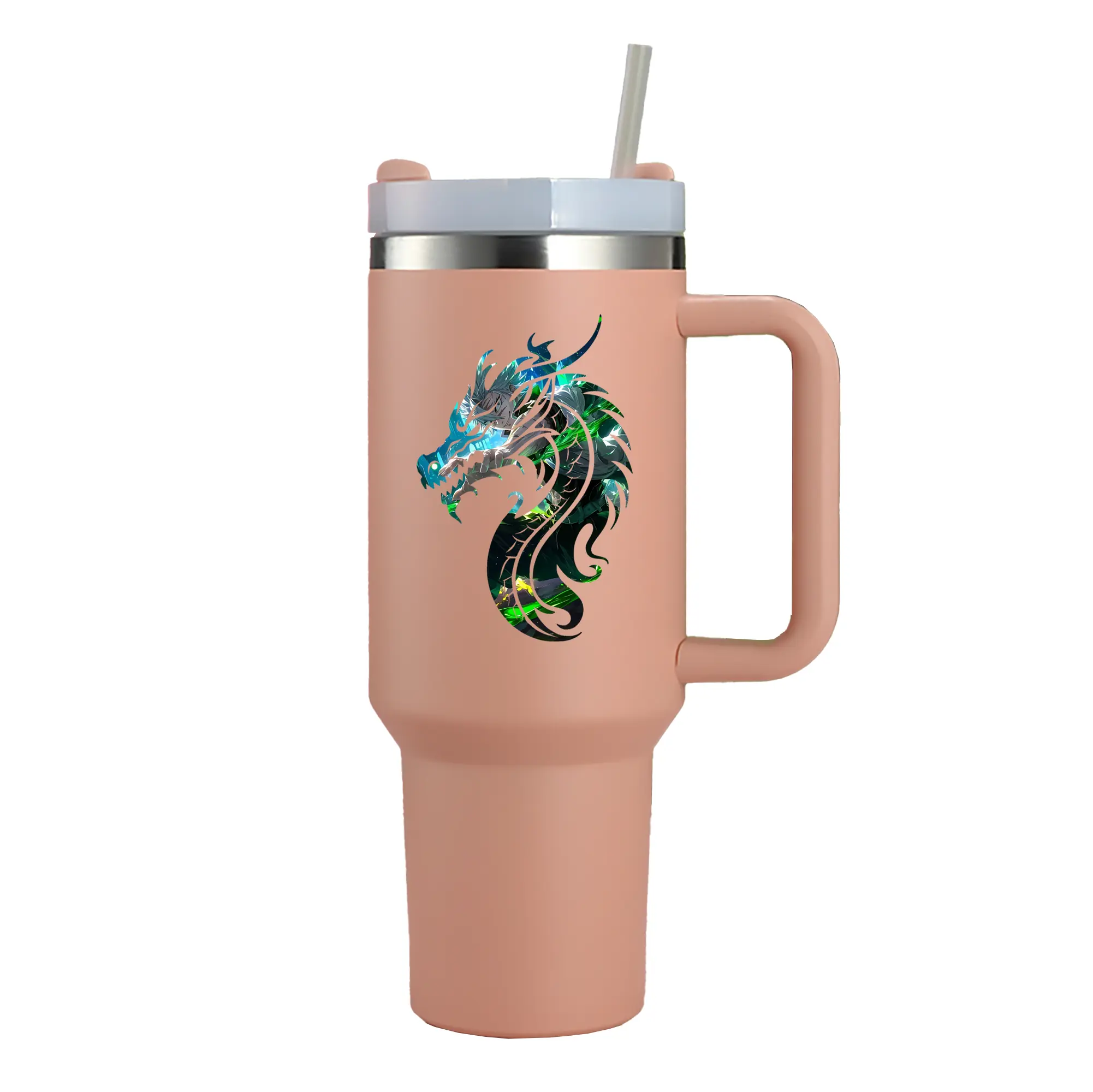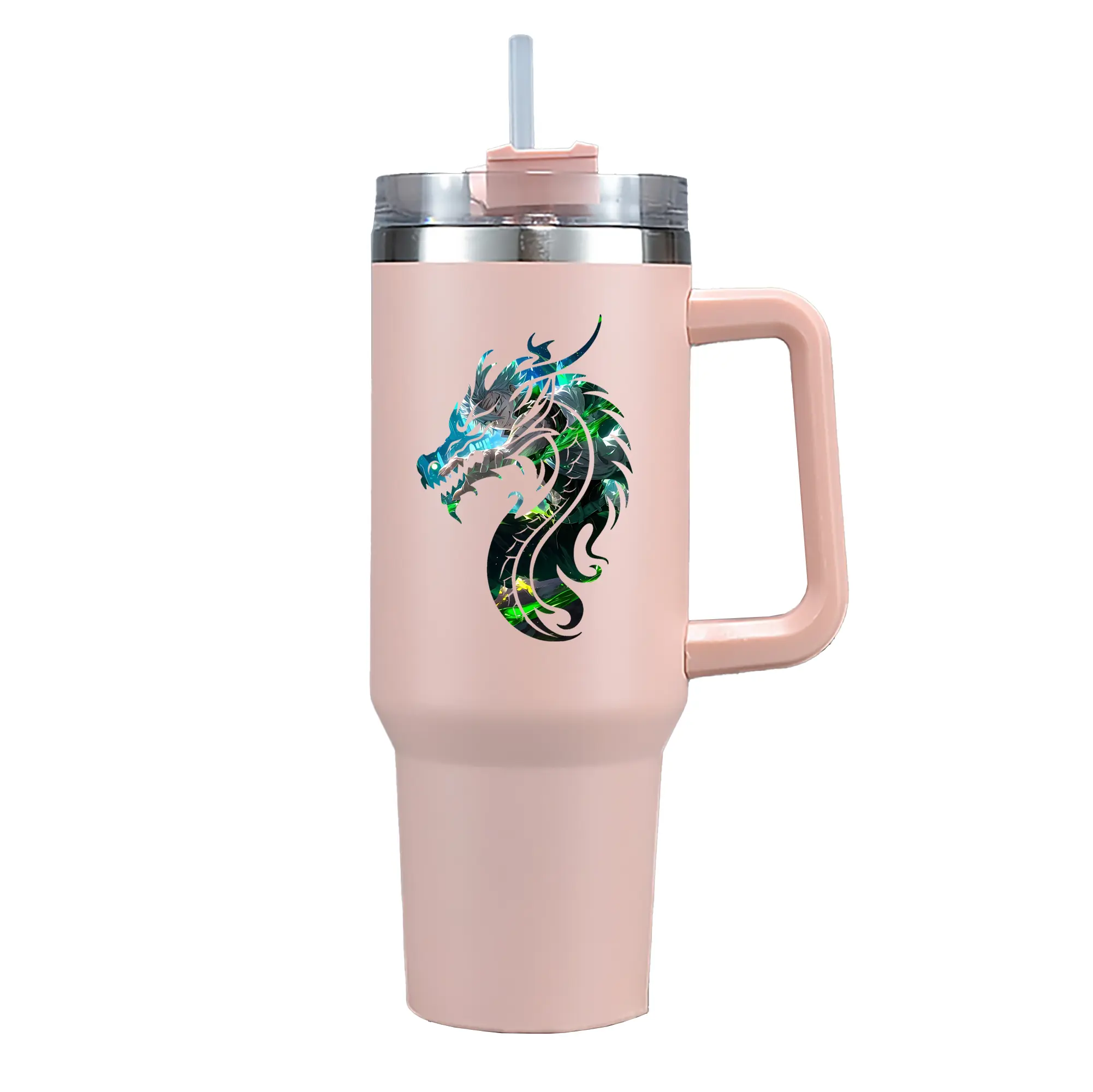 1200mL(40オンス)の大容量ハンドル付きカータンブラー。キラキラと輝くクリスタルステッカーデザインが、毎日の使用に華やかさをプラスします。食品グレード304ステンレスの内側と頑丈な201ステンレスの外側を採用し、耐久性・耐腐食性・安全性を兼ね備えています。