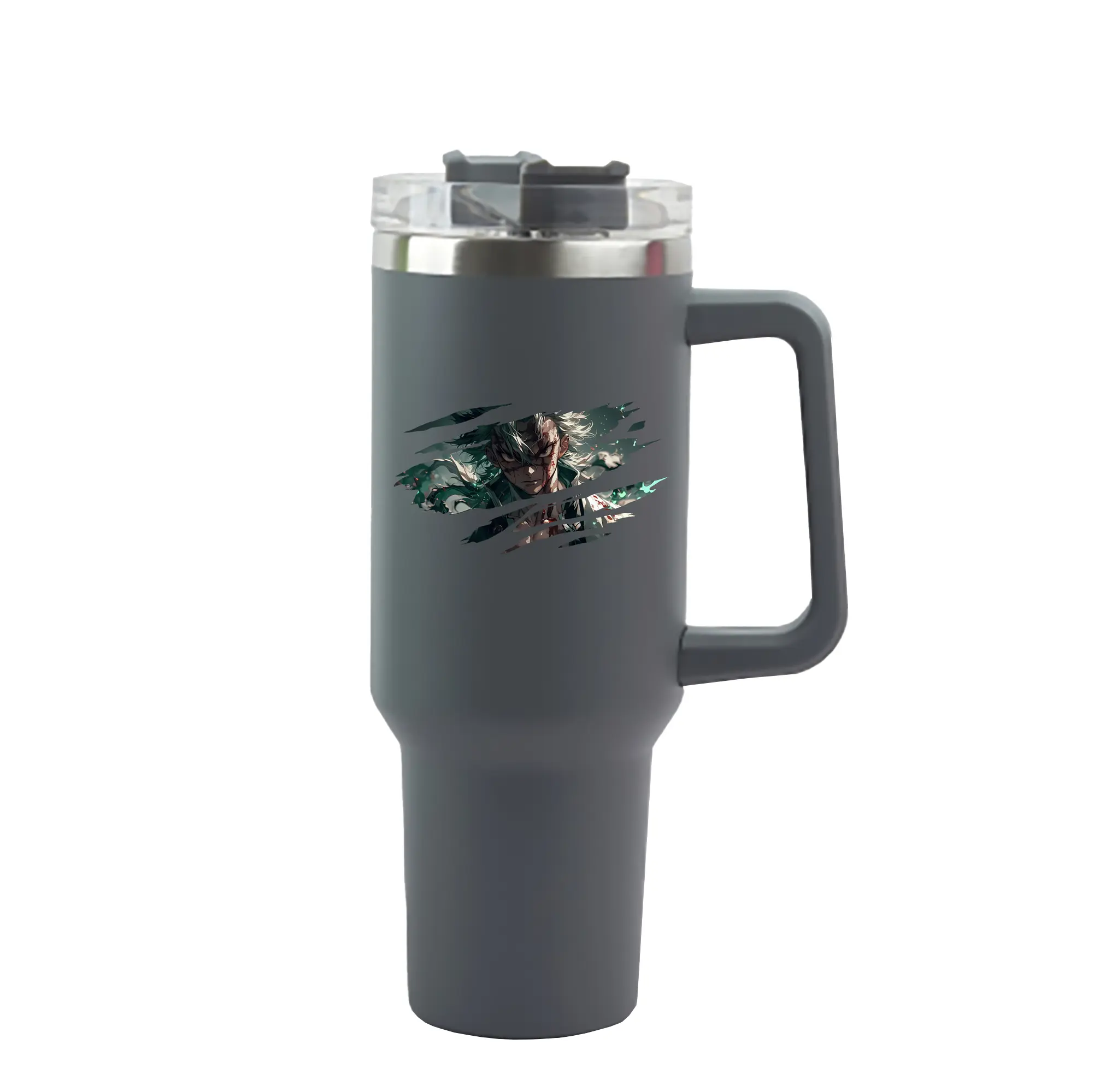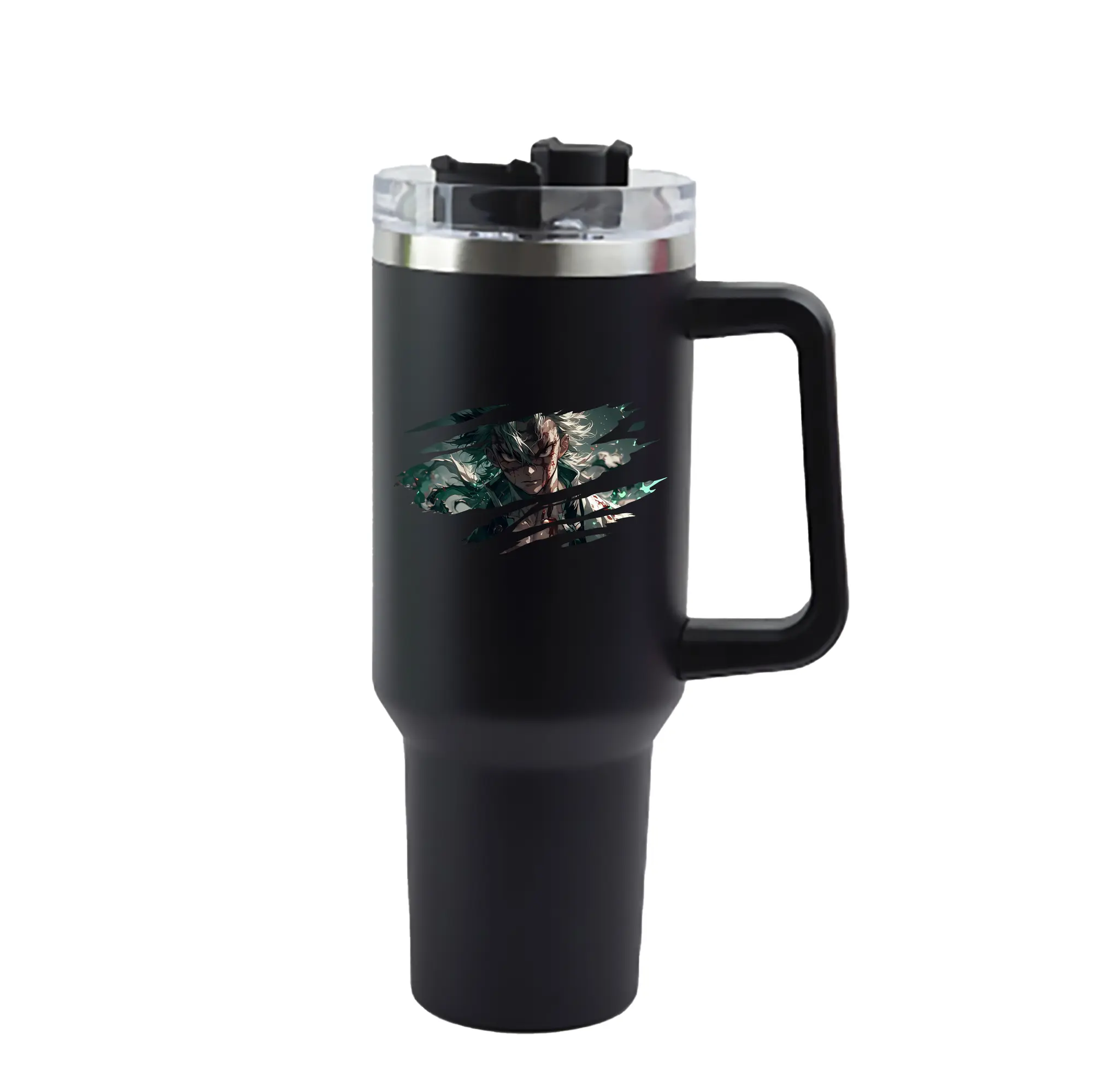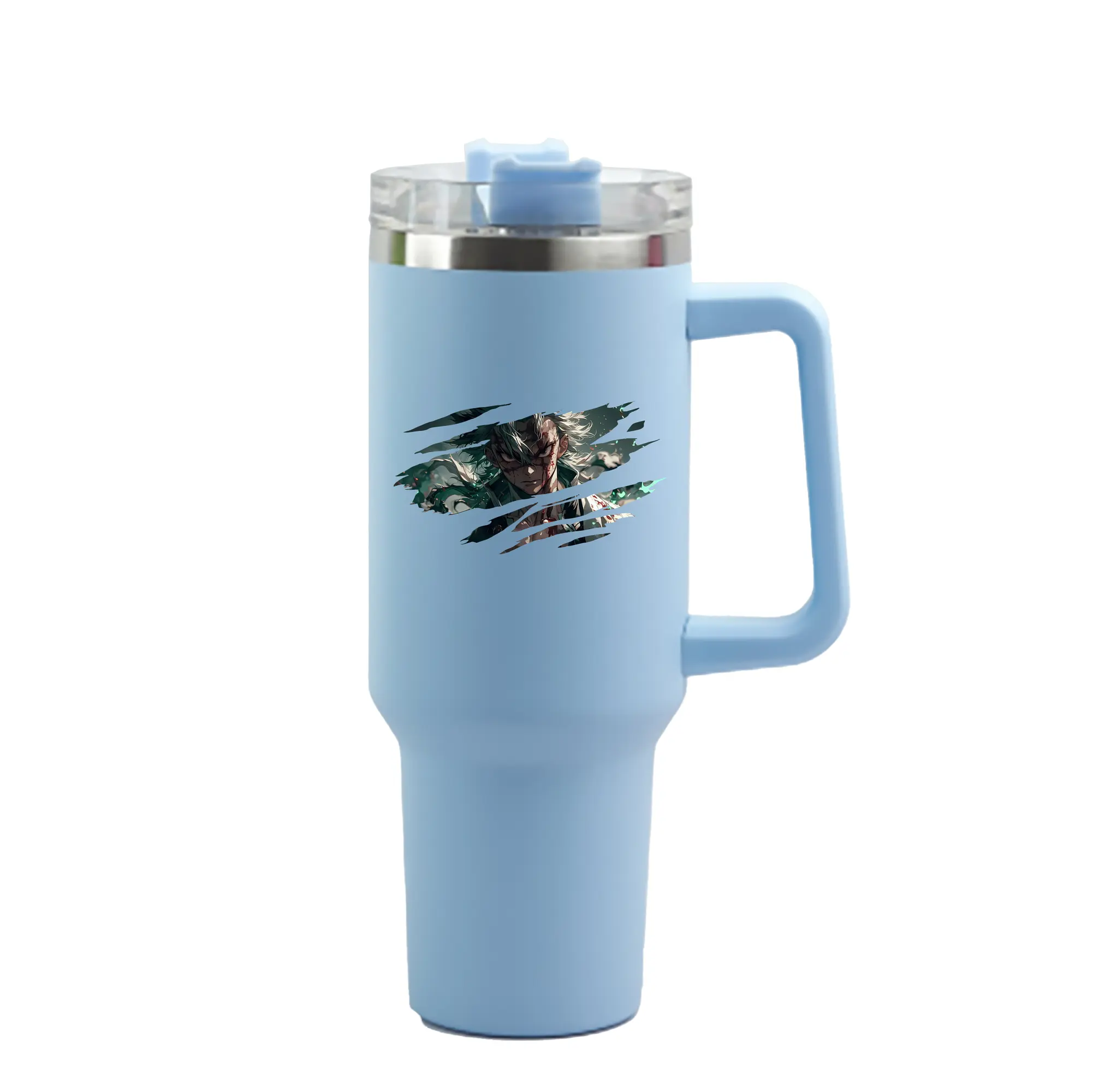 鬼滅の刃 グッズ,不死川 実弥 - 1200mL 車用タンブラー ・ クリスタルステッカー ・ 304ステンレス 内側 ・ 201ステンレス 外側 ・ 保温 保冷 ・ ハンドル&ストロー付き ・ 通勤 ドライブ アウトドア用