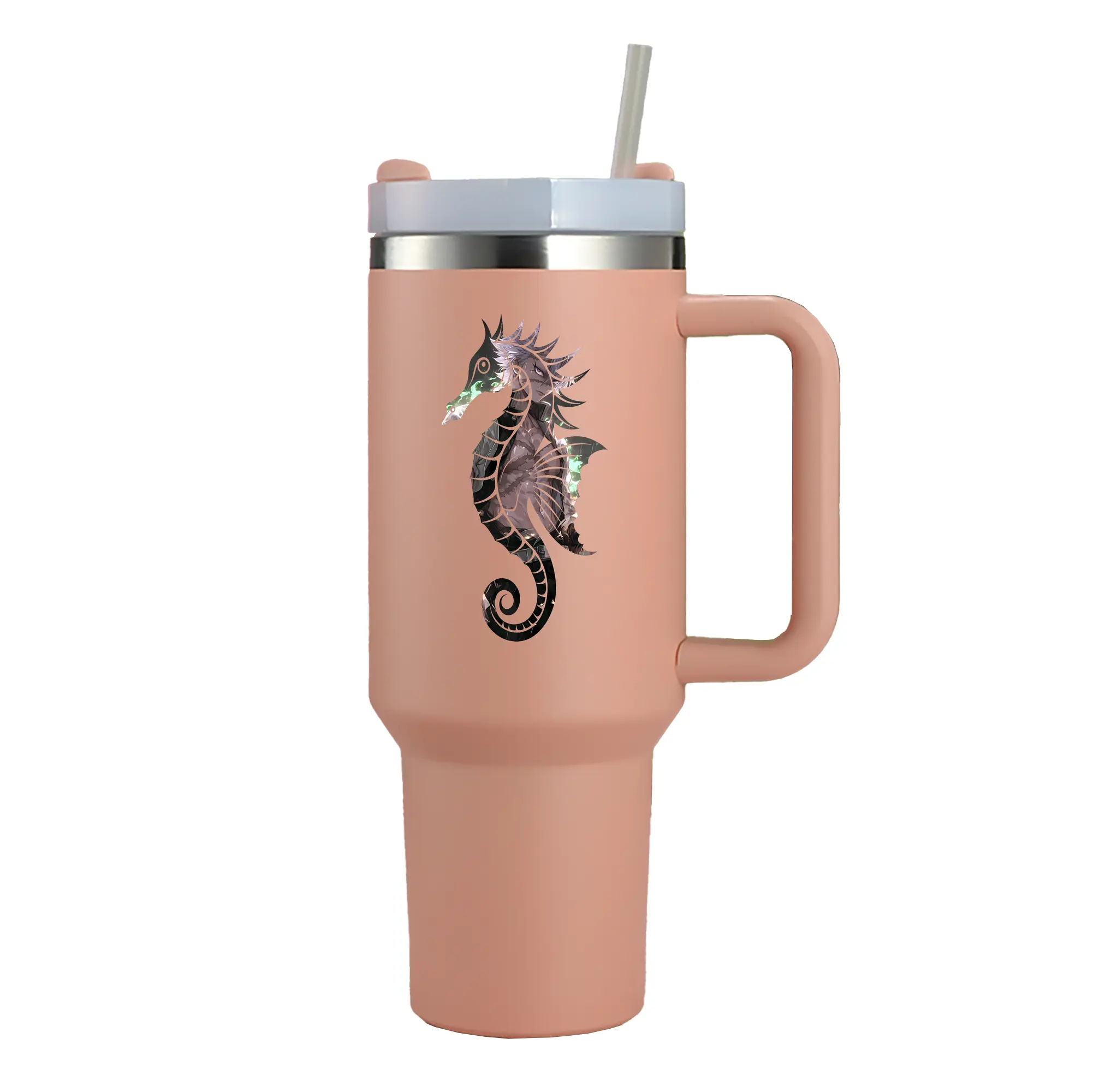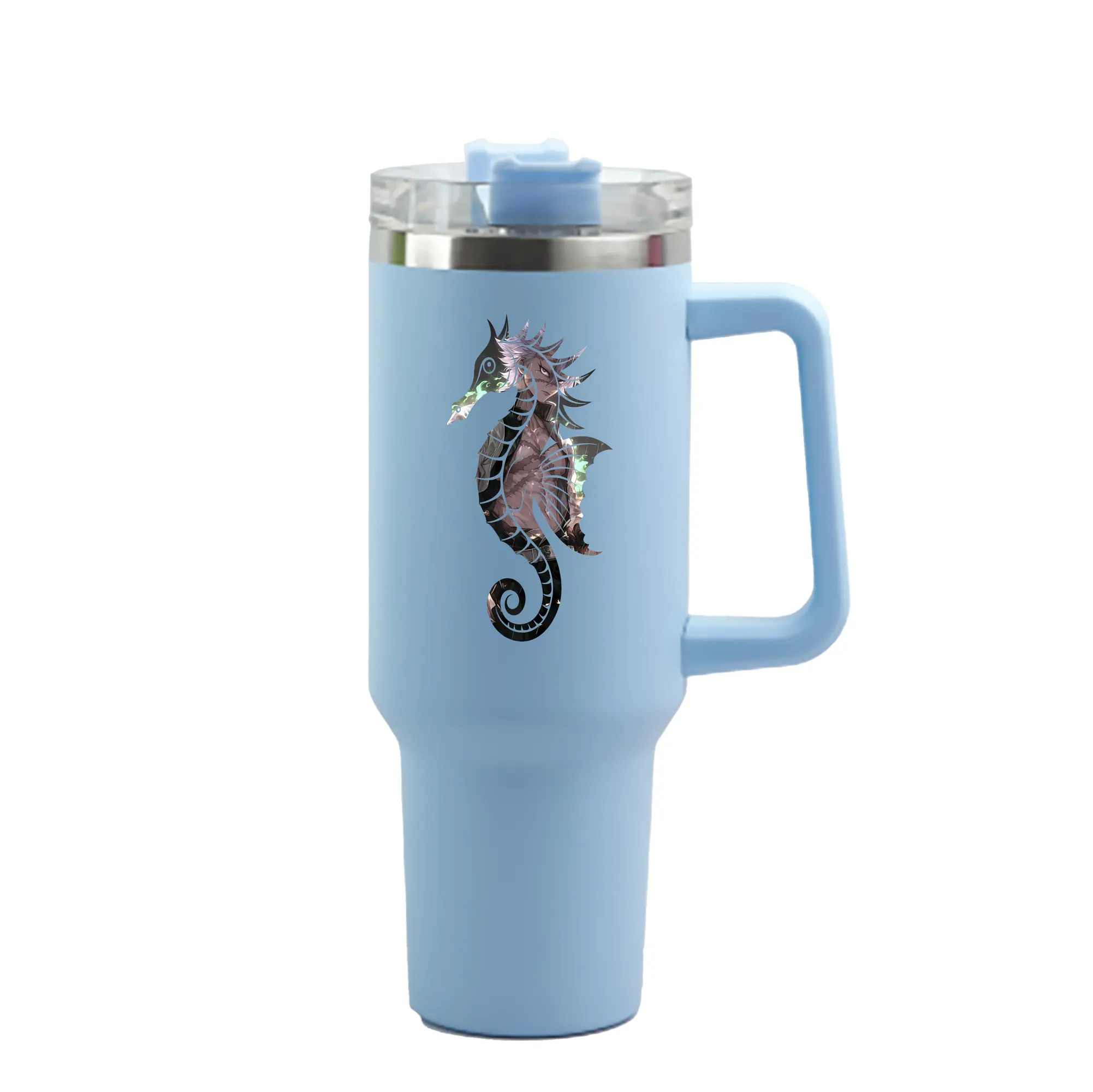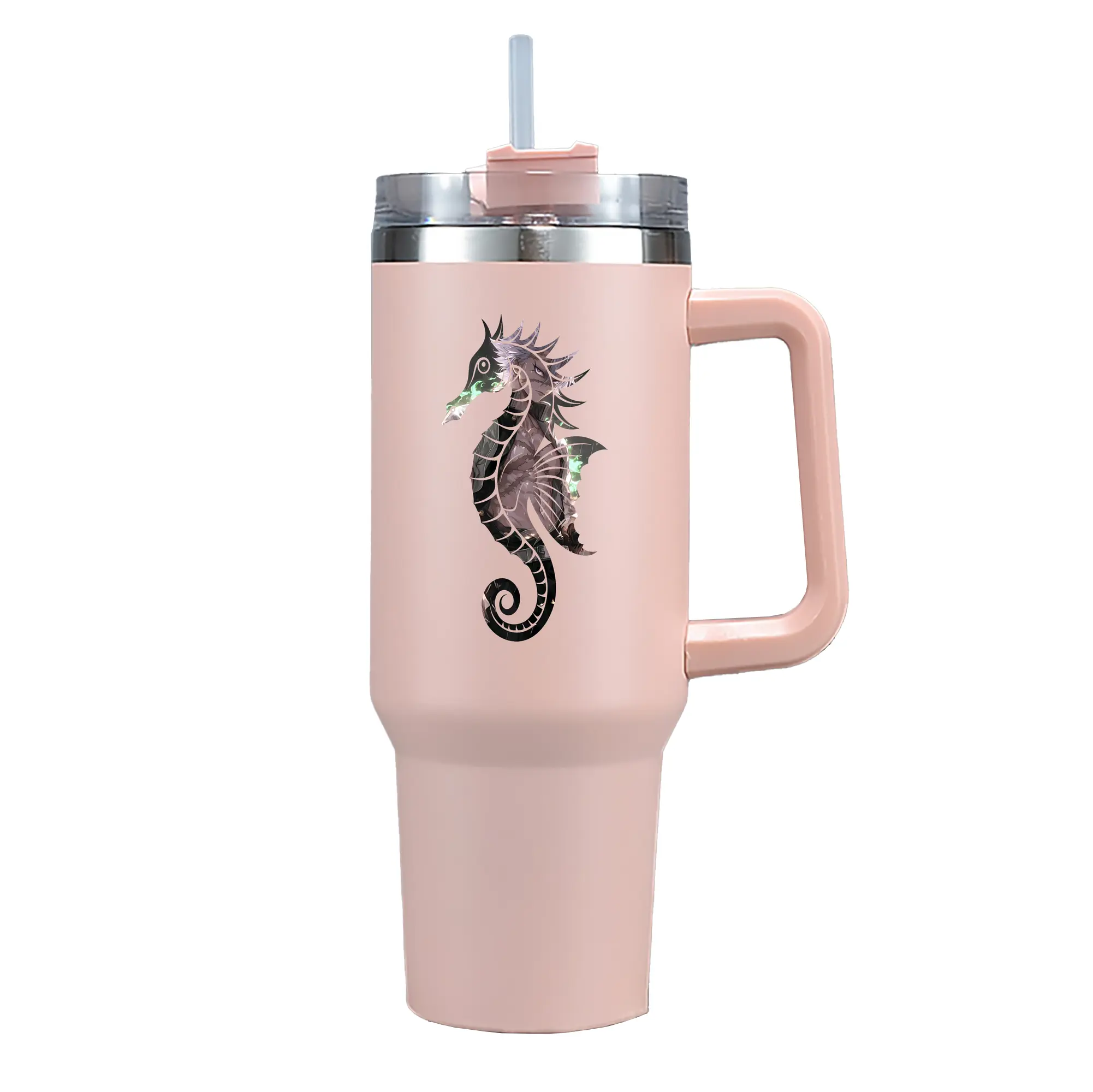 1200mL(40オンス)の大容量ハンドル付きカータンブラー。キラキラと輝くクリスタルステッカーデザインが、毎日の使用に華やかさをプラスします。食品グレード304ステンレスの内側と頑丈な201ステンレスの外側を採用し、耐久性・耐腐食性・安全性を兼ね備えています。