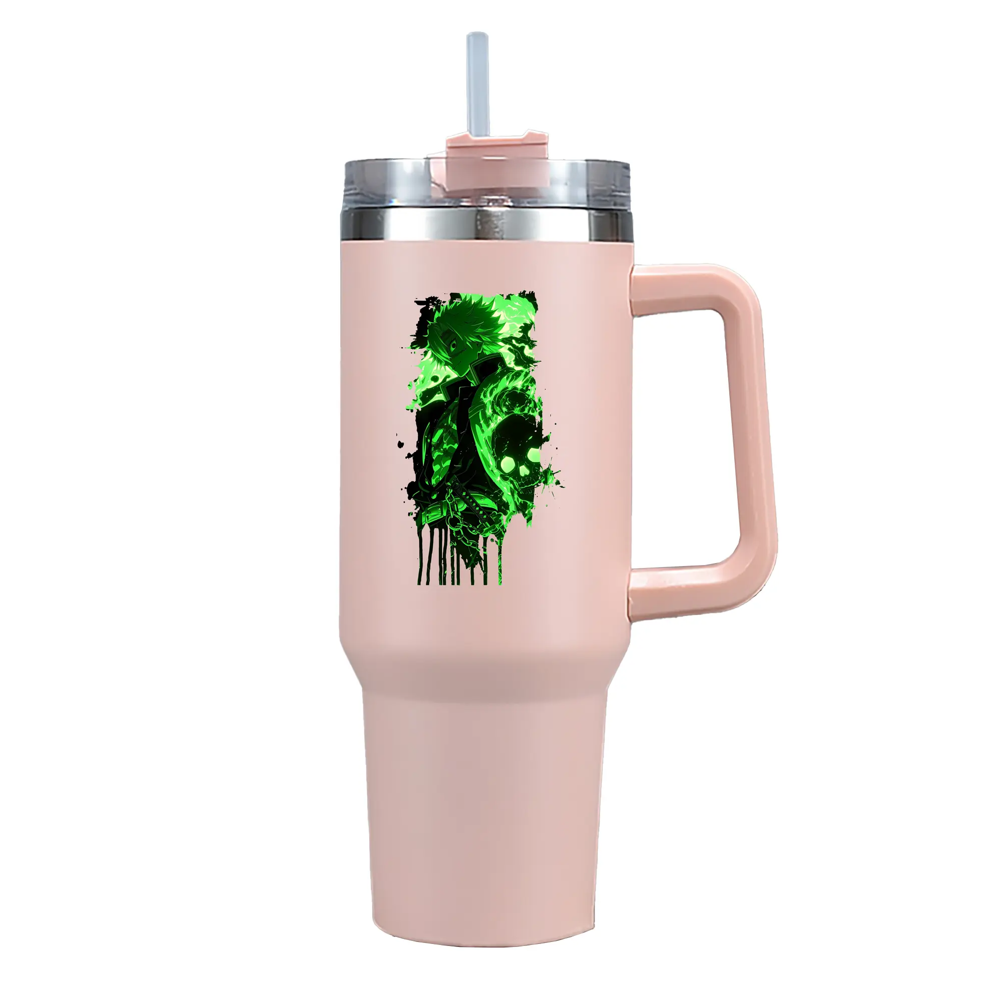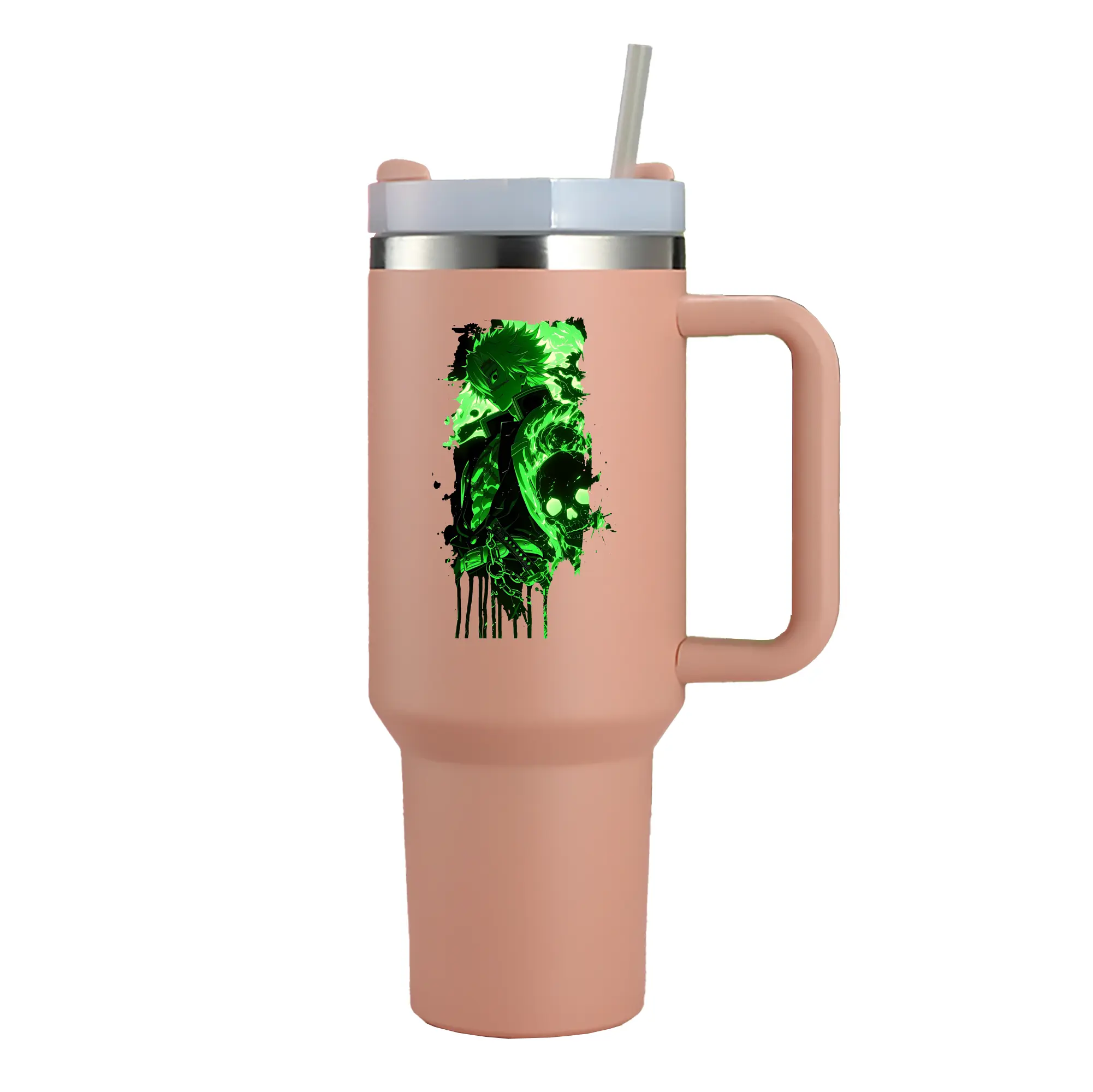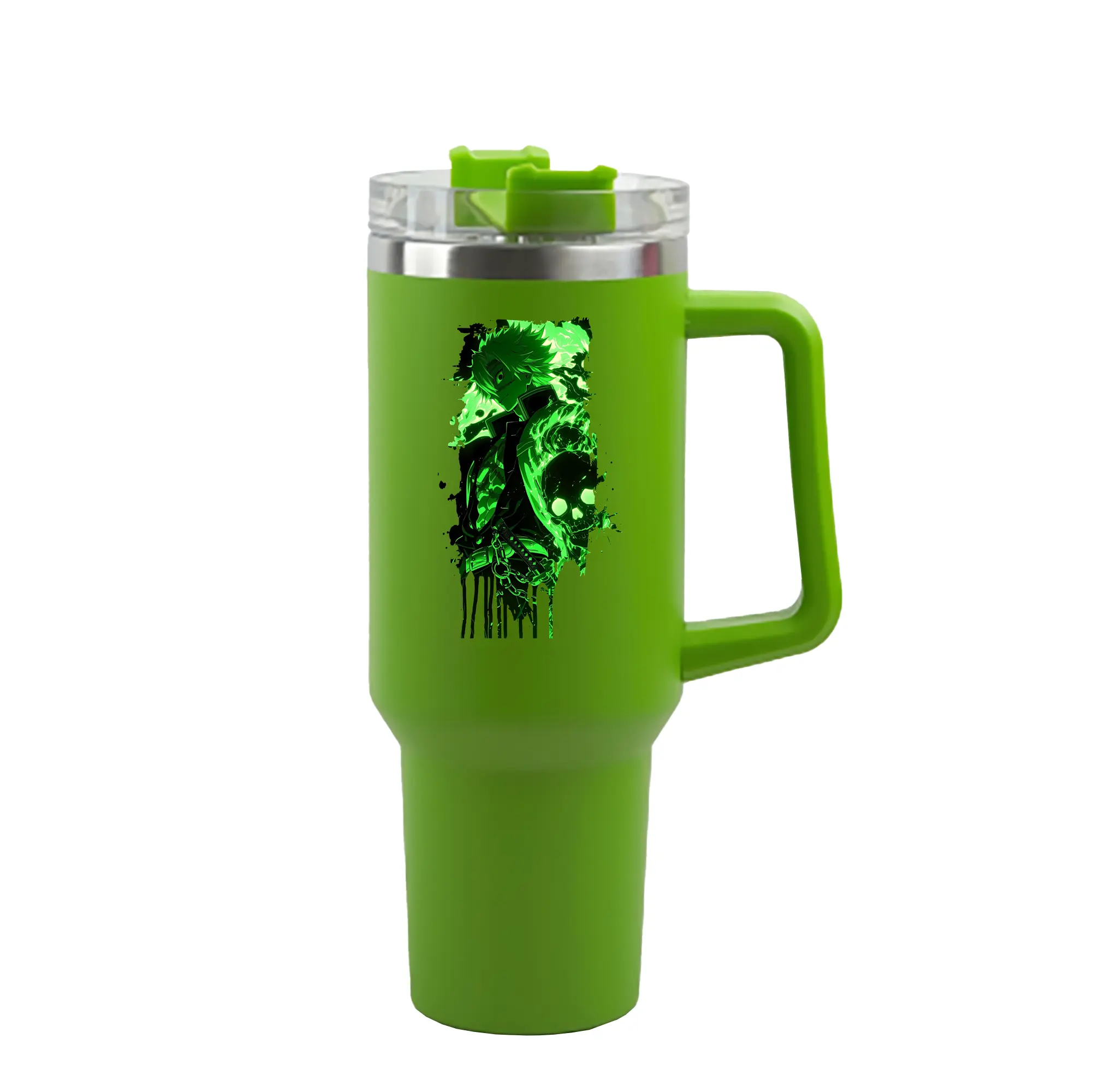 鬼滅の刃 グッズ,不死川 実弥 - 1200mL 車用タンブラー ・ クリスタルステッカー ・ 304ステンレス 内側 ・ 201ステンレス 外側 ・ 保温 保冷 ・ ハンドル&ストロー付き ・ 通勤 ドライブ アウトドア用